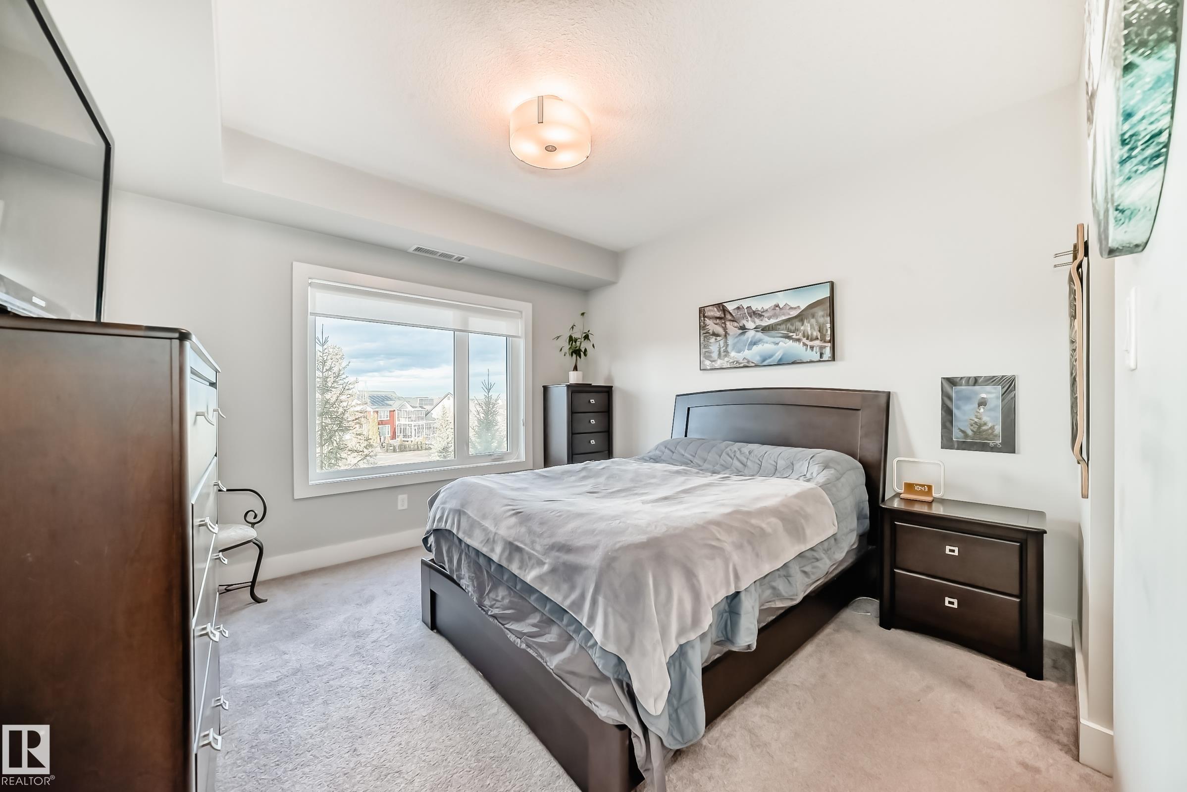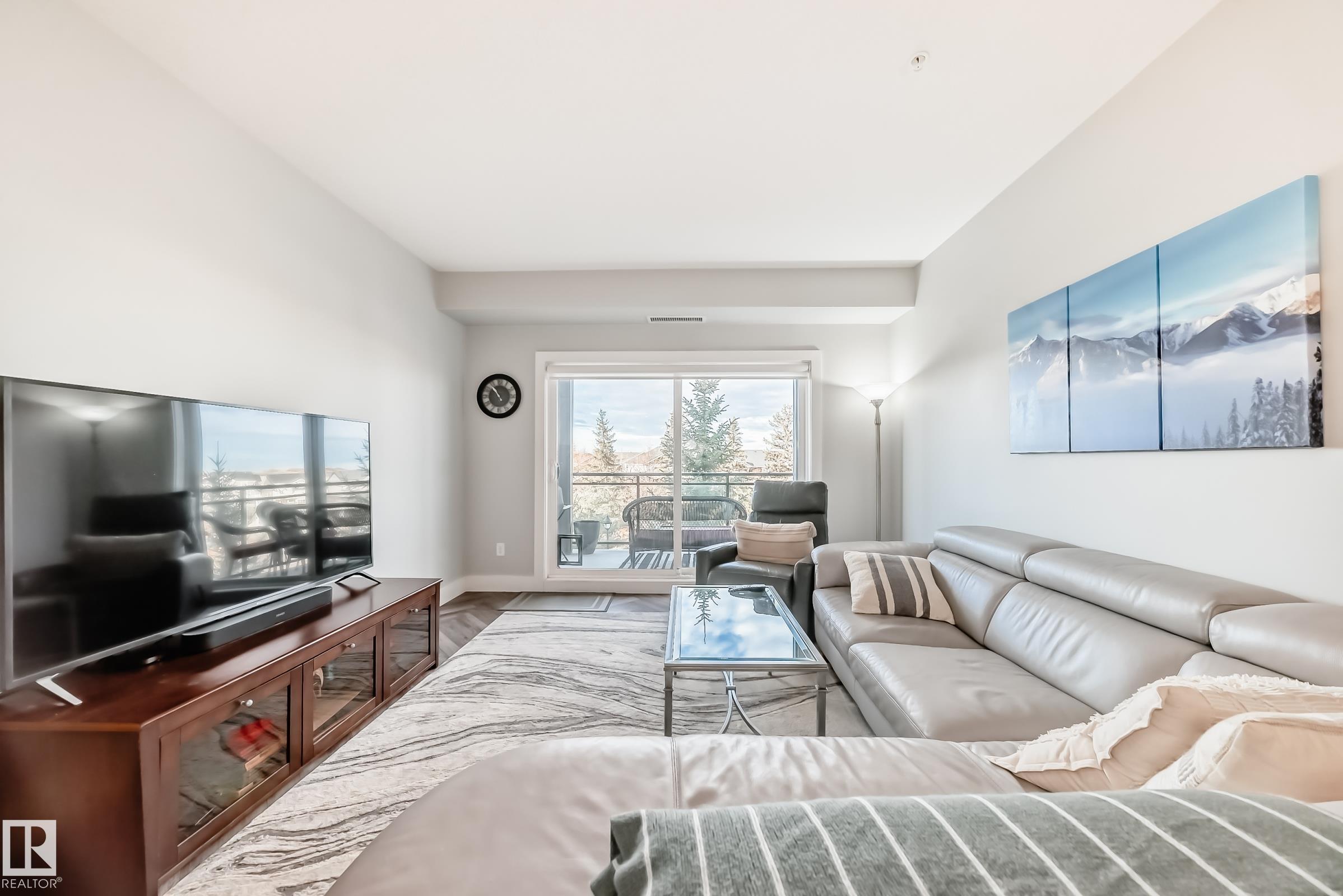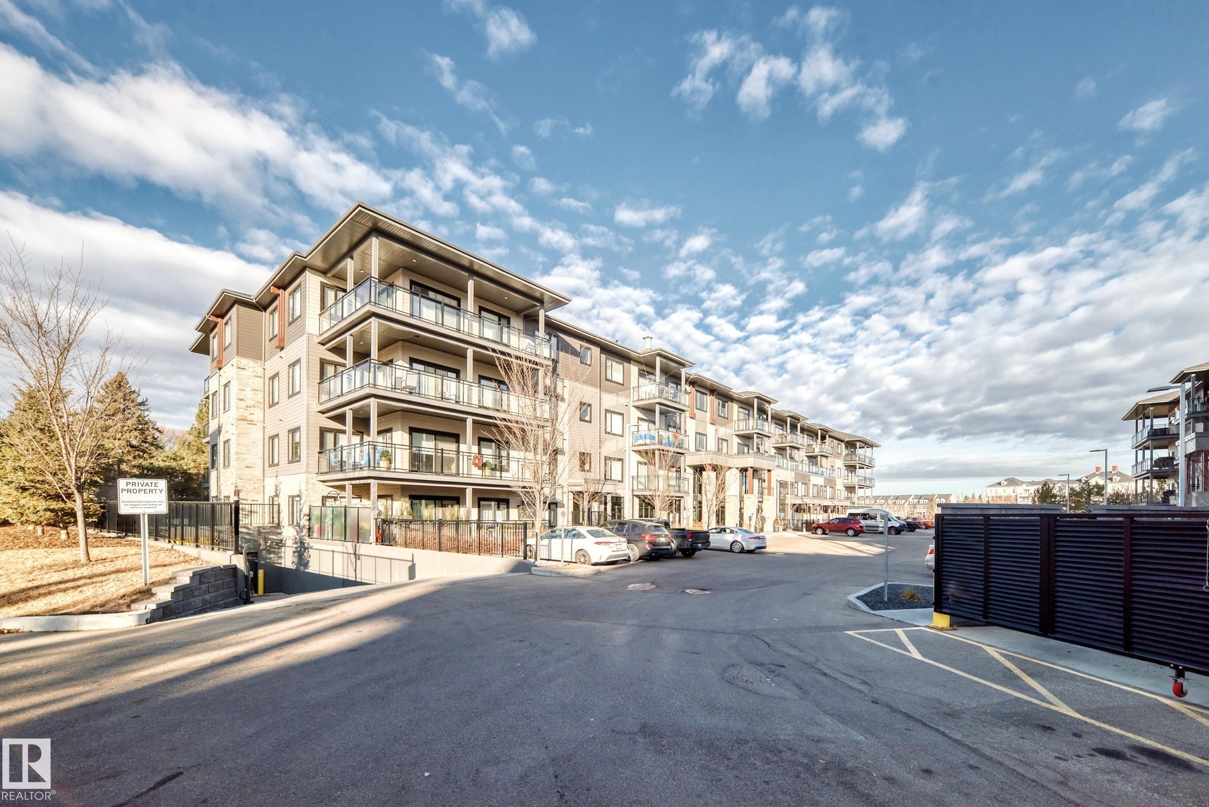 Beautiful Griesbach executive style 1,130 square foot, 2 bedroom, 2 bathroom, 2018 built, 3rd floor condo, in and incredible location backing onto greenspace and lake. The main floor has vinyl plank flooring, separate wet bar with mini fridge, and a great open floor plan with eat up island style kitchen having 2 tone cabinets, quartz countertops, upgraded stainless appliances, walk in pantry & sliding doors to a large balcony. The spacious primary bedroom has walk-through closets, and a 4 piece bathroom. The second bedroom is located close to the main 4 piece bathroom. There are 2 titled parking stalls included underground #98 and surface stall #11. The area has many amenities just minutes away, including shopping, transportation, schools, walking trails, and much more. The Veritas condominium complex has a beautiful front entrance and many extras including, fitness room, air conditioning, guest room, social room, & visitor parking out front. This unit shows pride of ownership and shows a 10 out of 10