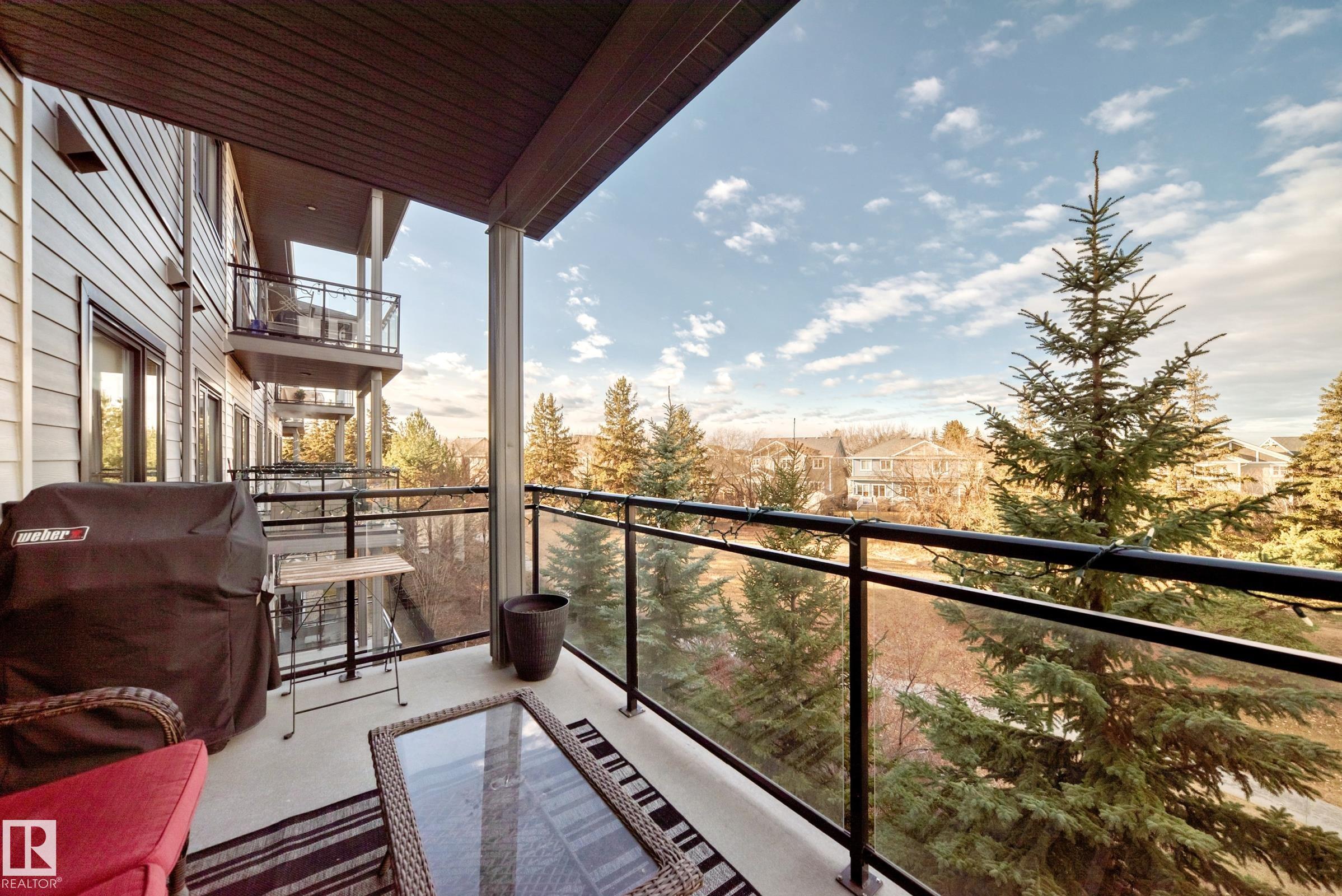 Beautiful Griesbach executive style 1,130 square foot, 2 bedroom, 2 bathroom, 2018 built, 3rd floor condo, in and incredible location backing onto greenspace and lake. The main floor has vinyl plank flooring, separate wet bar with mini fridge, and a great open floor plan with eat up island style kitchen having 2 tone cabinets, quartz countertops, upgraded stainless appliances, walk in pantry & sliding doors to a large balcony. The spacious primary bedroom has walk-through closets, and a 4 piece bathroom. The second bedroom is located close to the main 4 piece bathroom.  There are 2 titled parking stalls included underground #98 and surface stall #11. The area has many amenities just minutes away, including shopping, transportation, schools, walking trails, and much more. The Veritas condominium complex has a beautiful front entrance and many extras including, fitness room, air conditioning, guest room, social room, & visitor parking out front.  This unit shows pride of ownership and shows a 10 out of 10