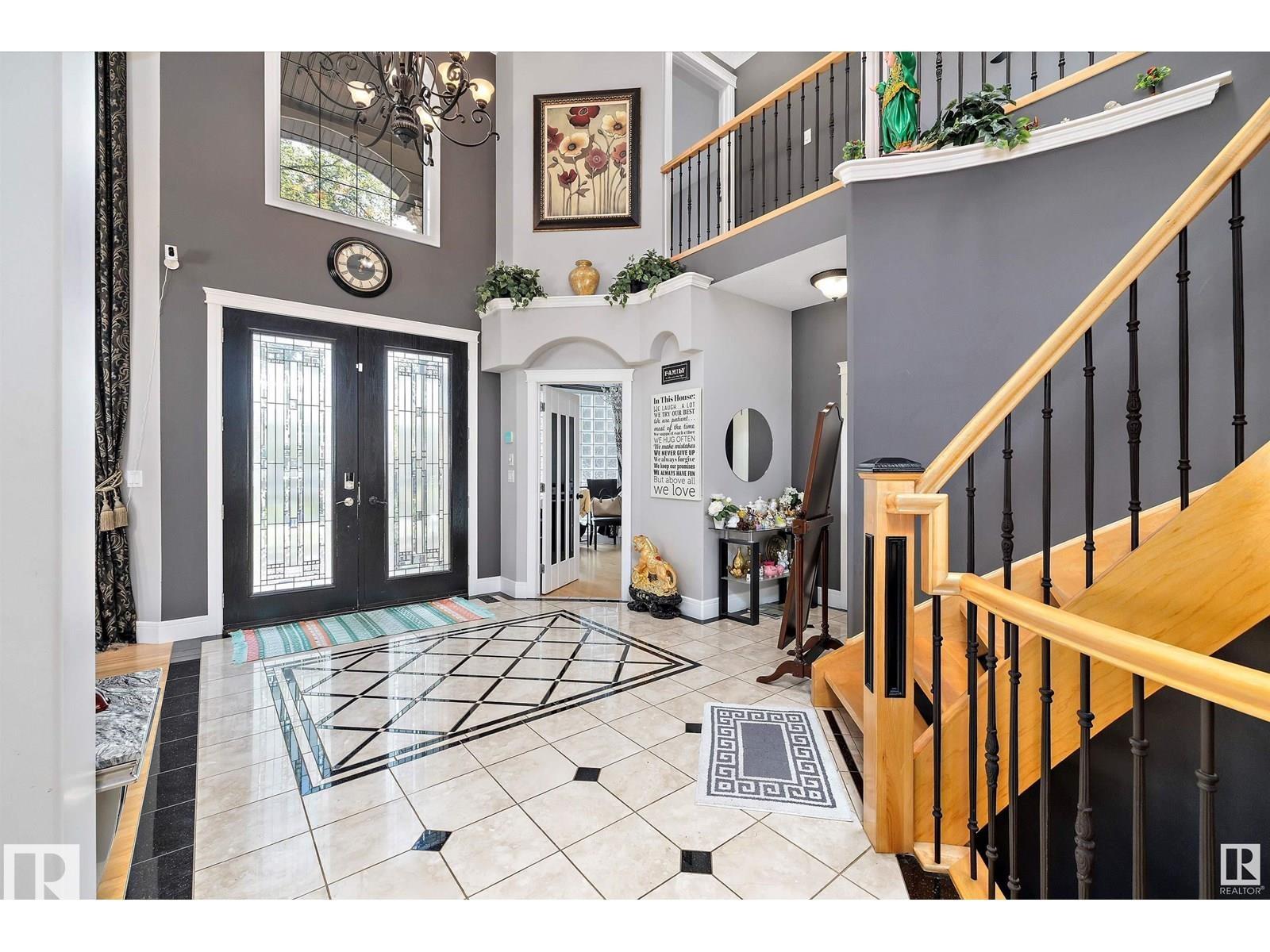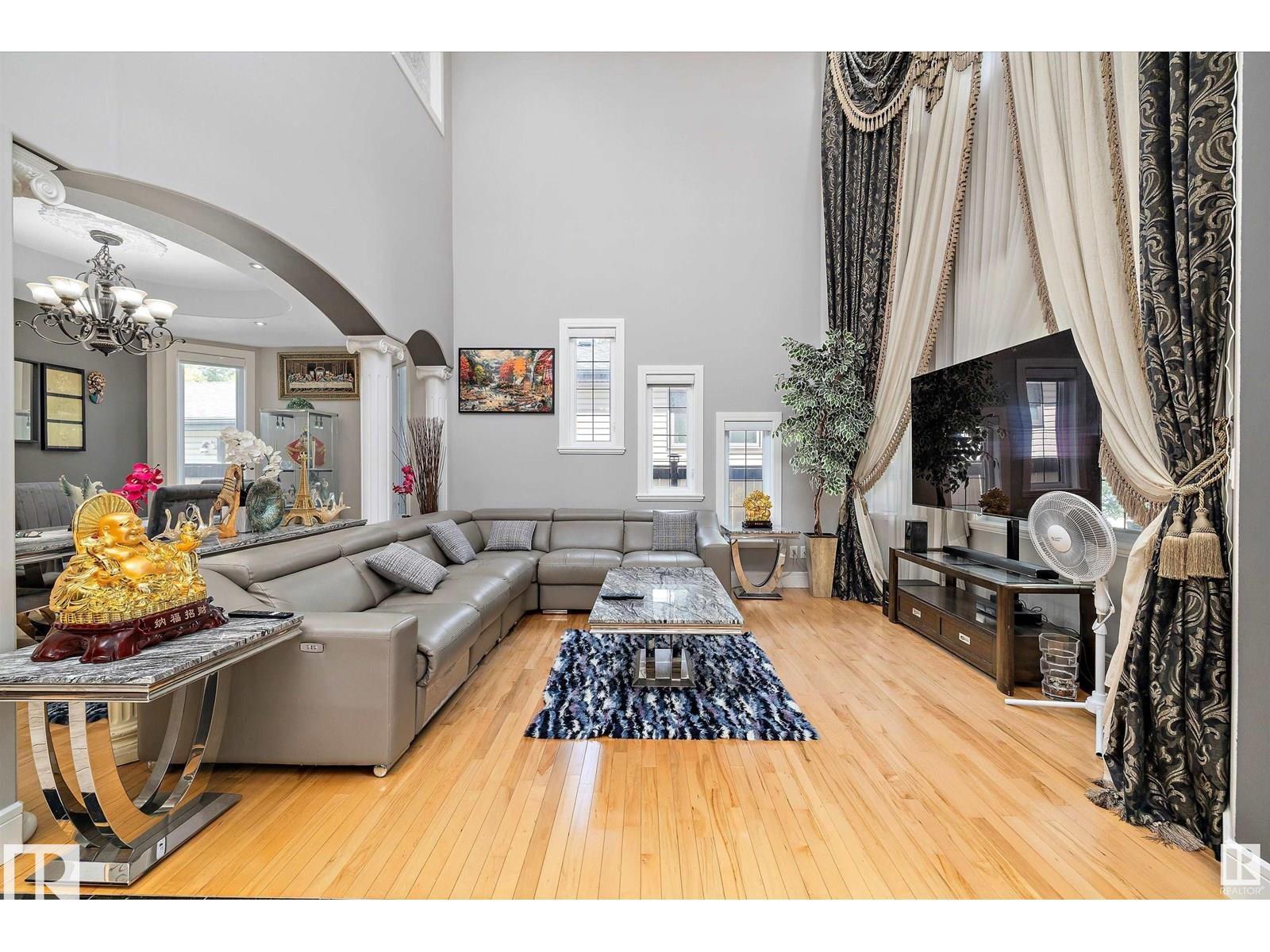 Welcome to this stunning 2-storey home with TRIPLE CAR GARAGE +10 car parking, offering nearly 3,100 sq ft of luxurious living space, located just minutes from Downtown Edmonton and West Edmonton Mall. This spacious home features 7 bedrooms and 4.5 full bathrooms, perfect for large or extended families. A grand foyer and curved staircase create a striking first impression with an open-to-below design that elevates the space. The main floor offers two living areas, two dinning areas, a den, engineered hardwood, upgraded tile flooring, a gourmet kitchen with quartz countertops, gas stove, SS appliances, and a spice kitchen, Two furnaces, water softner. Upstairs, you?ll find 4 large bedrooms all attached to 3 full bathrooms, including a massive primary suite with a luxurious 5-piece ensuite. The fully finished basement features a Separate Entrance, second kitchen, 3 bedrooms, a 3-piece bath, and a spacious living room.