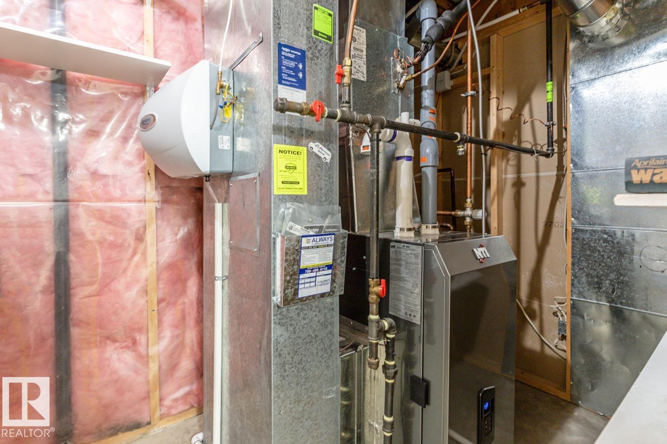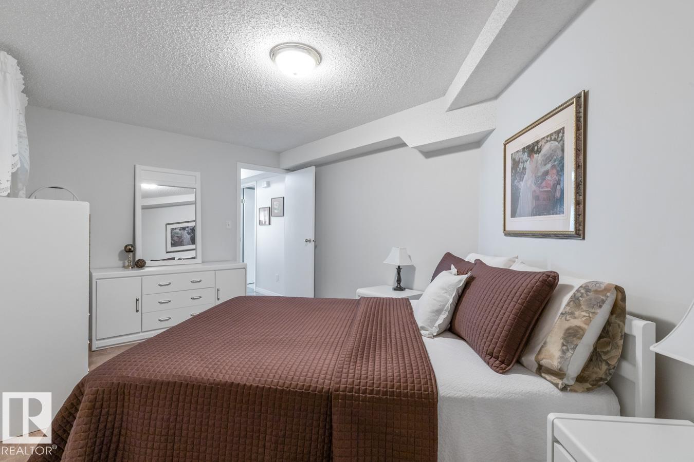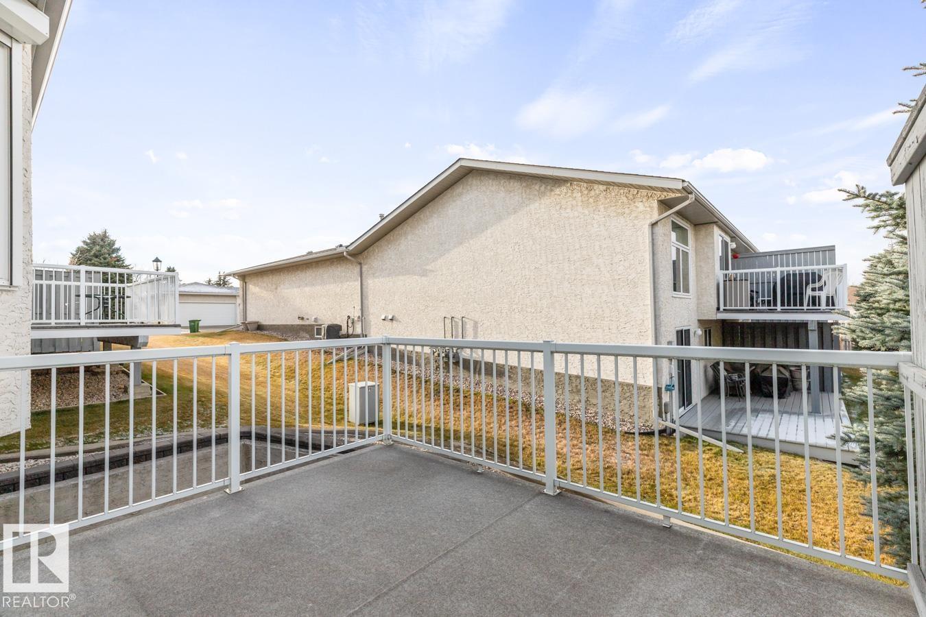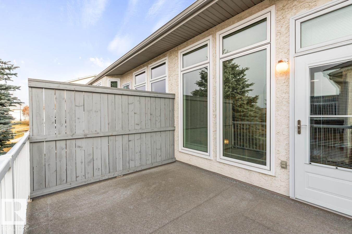 Welcome to this beautifully maintained 55+ walkout bungalow in a quiet North Edmonton. Designed with comfort and ease in mind, this home features a bright open-concept layout, double attached garage, hardwood flooring, AC, and hot water on demand. The main level offers a spacious living area and an efficient kitchen with crisp white cabinetry, overlooking a serene west-facing deck. The generous primary bedroom includes a walk-in closet and 3-piece ensuite, while a versatile den and a full 4-piece bathroom complete the main floor. Downstairs, the fully finished walkout basement features a large recreation room with a gas fireplace, a spacious bedroom, a 4-piece bathroom, and a dedicated laundry area with plenty of storage. Step outside to your private west-facing patio, ideal for relaxing or entertaining. The well-managed McLeod Ridge complex is perfect for a low maintenance lifestyle and is conveniently located near shopping, transit, and the Anthony Henday.