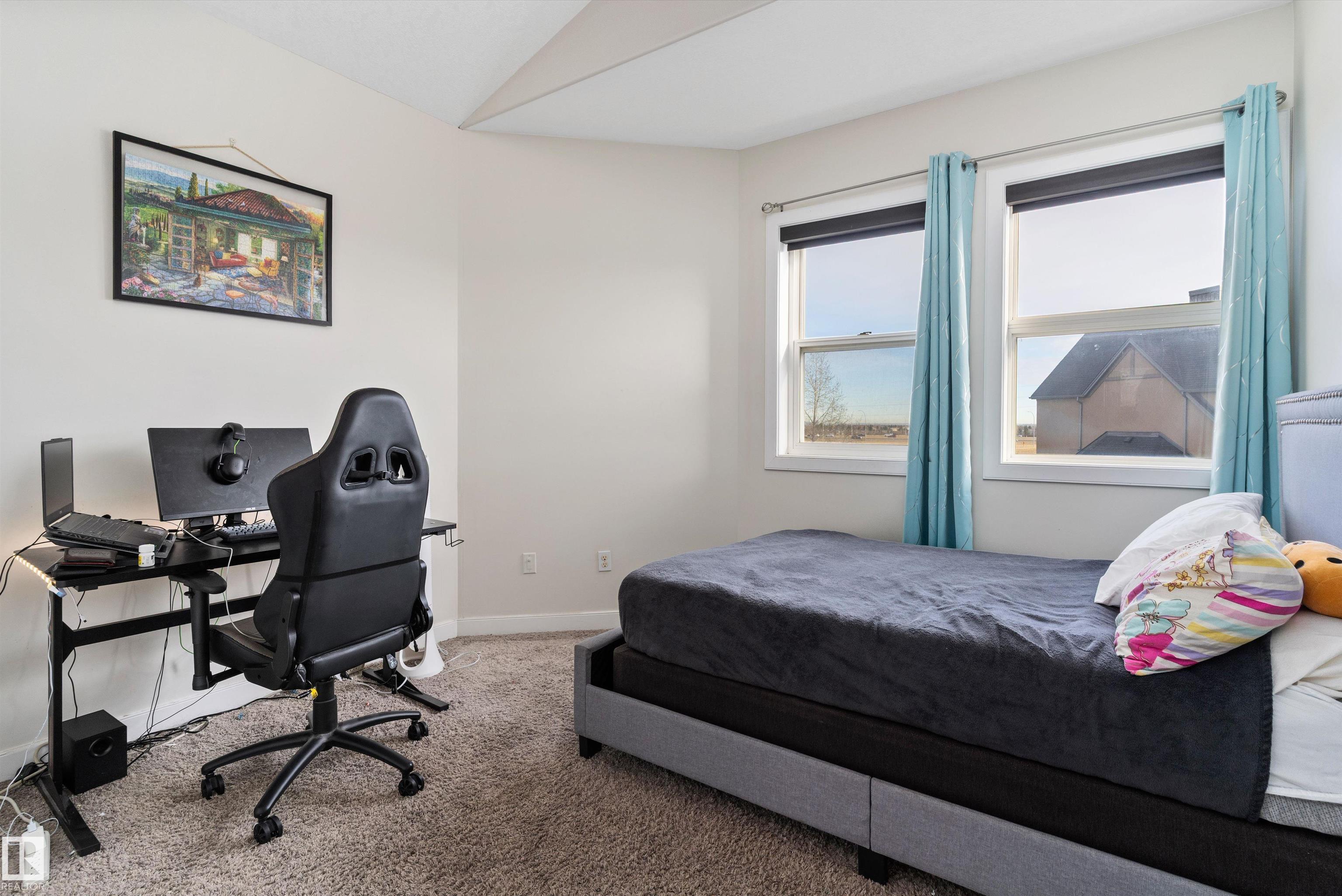This half duplex is located in the highly desirable, family-friendly neighbourhood of Glastonbury. The main floor features an open-concept layout with plenty of natural light, perfect for comfortable living and entertaining. Upstairs, enjoy vaulted ceilings, a spacious primary bedroom with a 4-piece ensuite, and two additional generously sized bedrooms. The main living area offers fantastic views of the Anthony Henday and downtown skyline. The unfinished basement provides endless potential for a future rec room, home gym, or added storage ready for your personal touch. With low condo fees and a prime West Edmonton location close to parks, schools, shopping, and major routes, this property is a great opportunity for homeowners and investors alike.