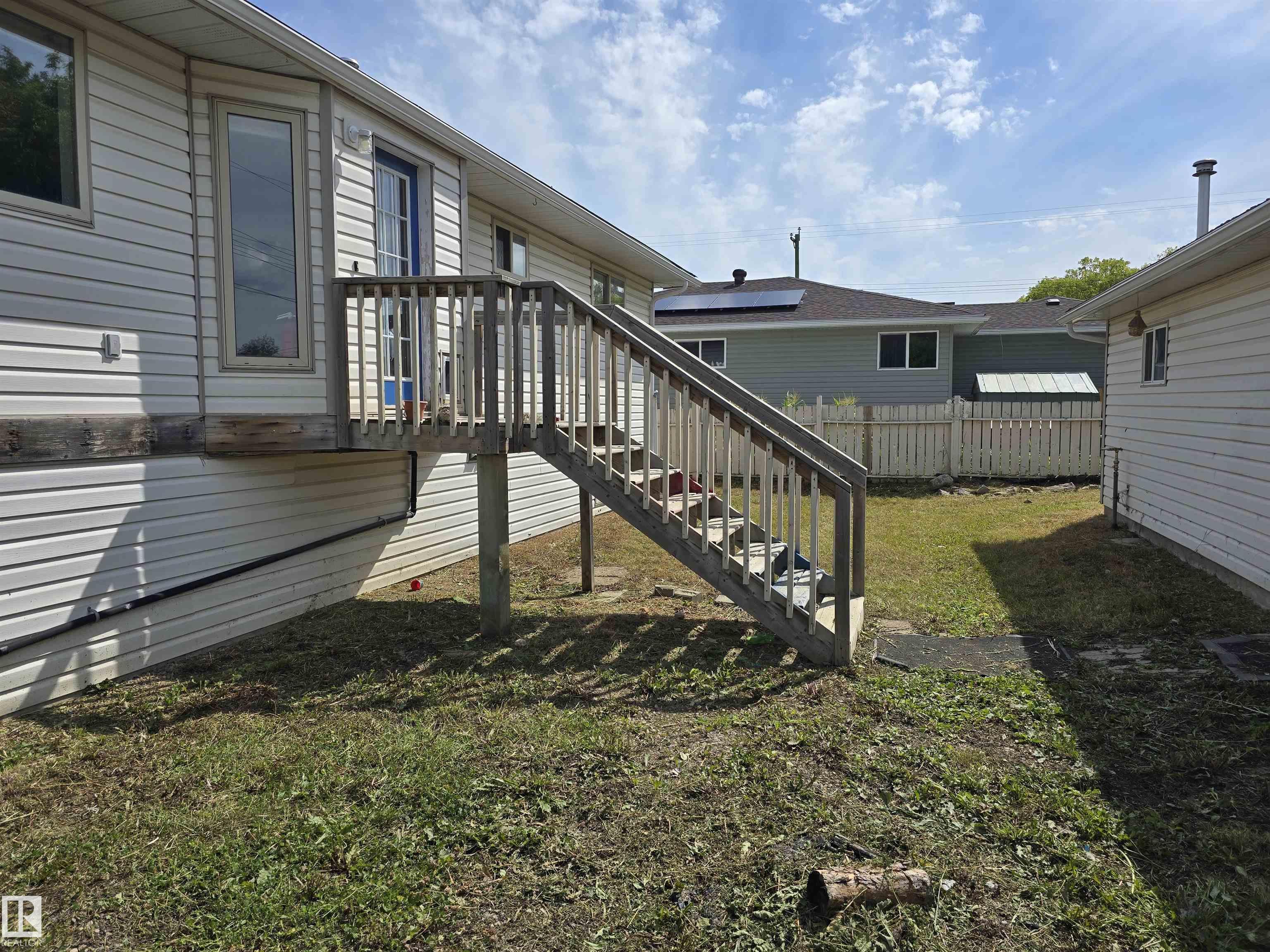 This home has 5 bedrooms and 3 bathrooms, including a 3/4 bath ensuite with shower. The one secondary basement bedroom is oversized, at 13'9"x10'7", with plenty of natural light. The home also has plenty of storage in the basement, with both under stair storage, and a large 12' x 7' storage area off the furnace room. The home also has main floor laundry, which conveniently limits going up and down stairs with clothes for washing and drying. There is a decent sized living room upstairs, and a family room downstairs. The backyard fence needs to be replaced, and a larger deck could be built and added onto the back, but there is also a shed with vinyl siding [approximately 8'x12'], and a large double car detached 22'x26' garage with a heater.