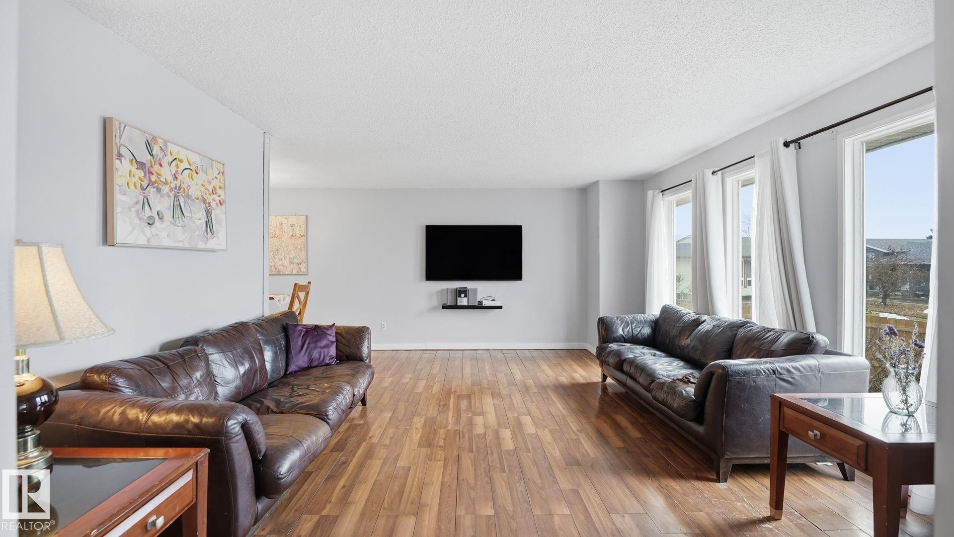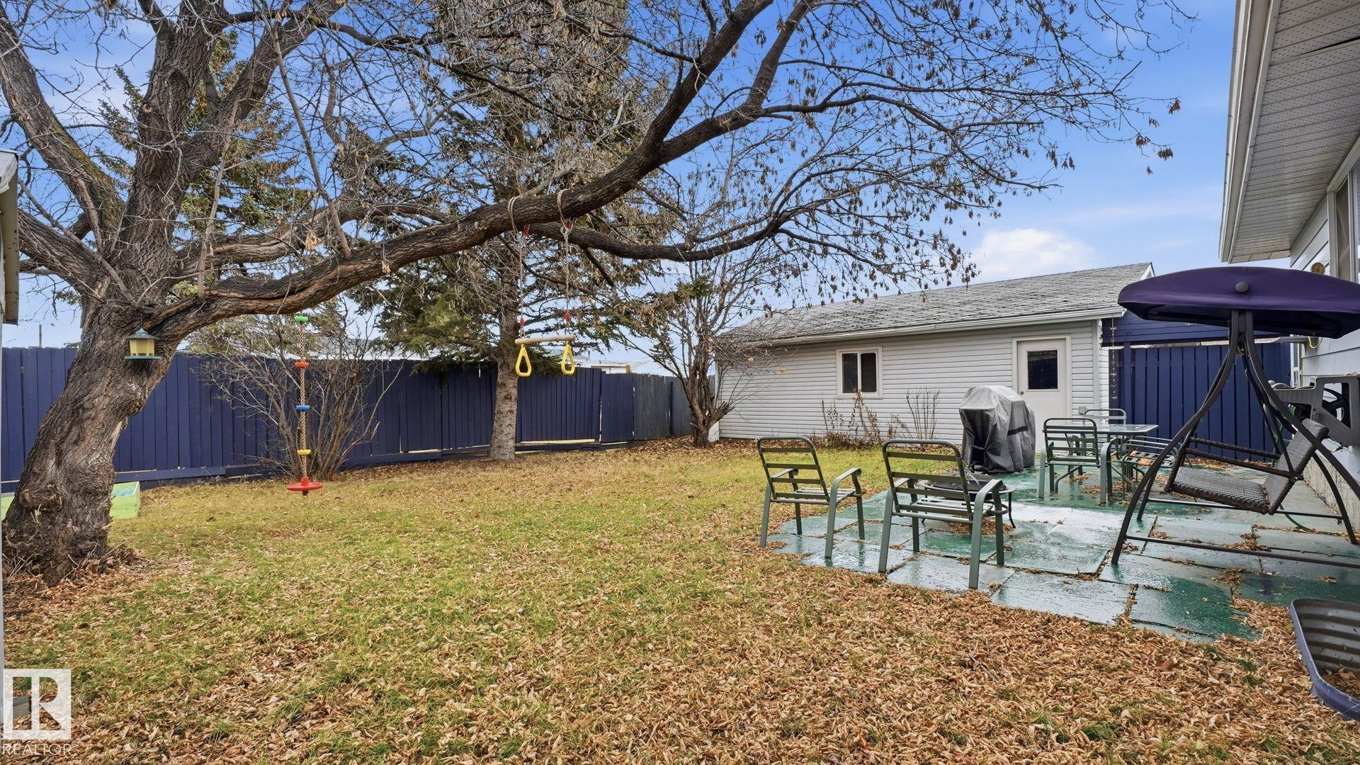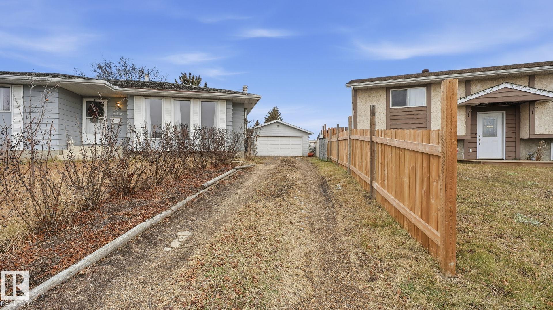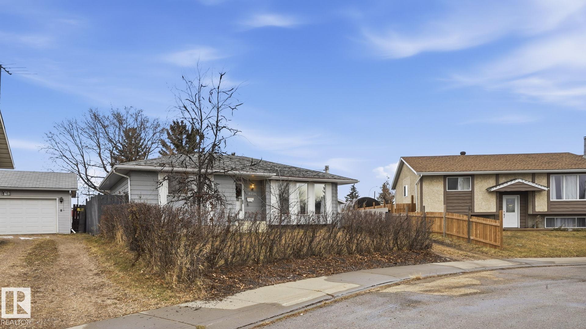 Best Priced Bungalow in Gibbons! So much charm here. This 3 bed, 3 bath 1,270 sq ft bungalow sits on a massive pie-shaped lot with a double oversized garage on a quiet, family-friendly street. Great-sized kitchen and a large main floor living area, plus 3 bedrooms, a nicely sized full bath, and a primary bedroom with its own 3pc ensuite. The fully finished basement is big ? featuring 1 bedroom, a 3pc bath, tons of storage, and a huge rec space perfect for the kids. The wood-burning stove keeps the home warm, cozy, and full of character. Outside is a huge private backyard and a large driveway with room for all the cars. This Gibbons gem is also steps from a great neighborhood park, just 2 minutes from Gibbons School, and close to all local amenities ? an unbeatable location for families.