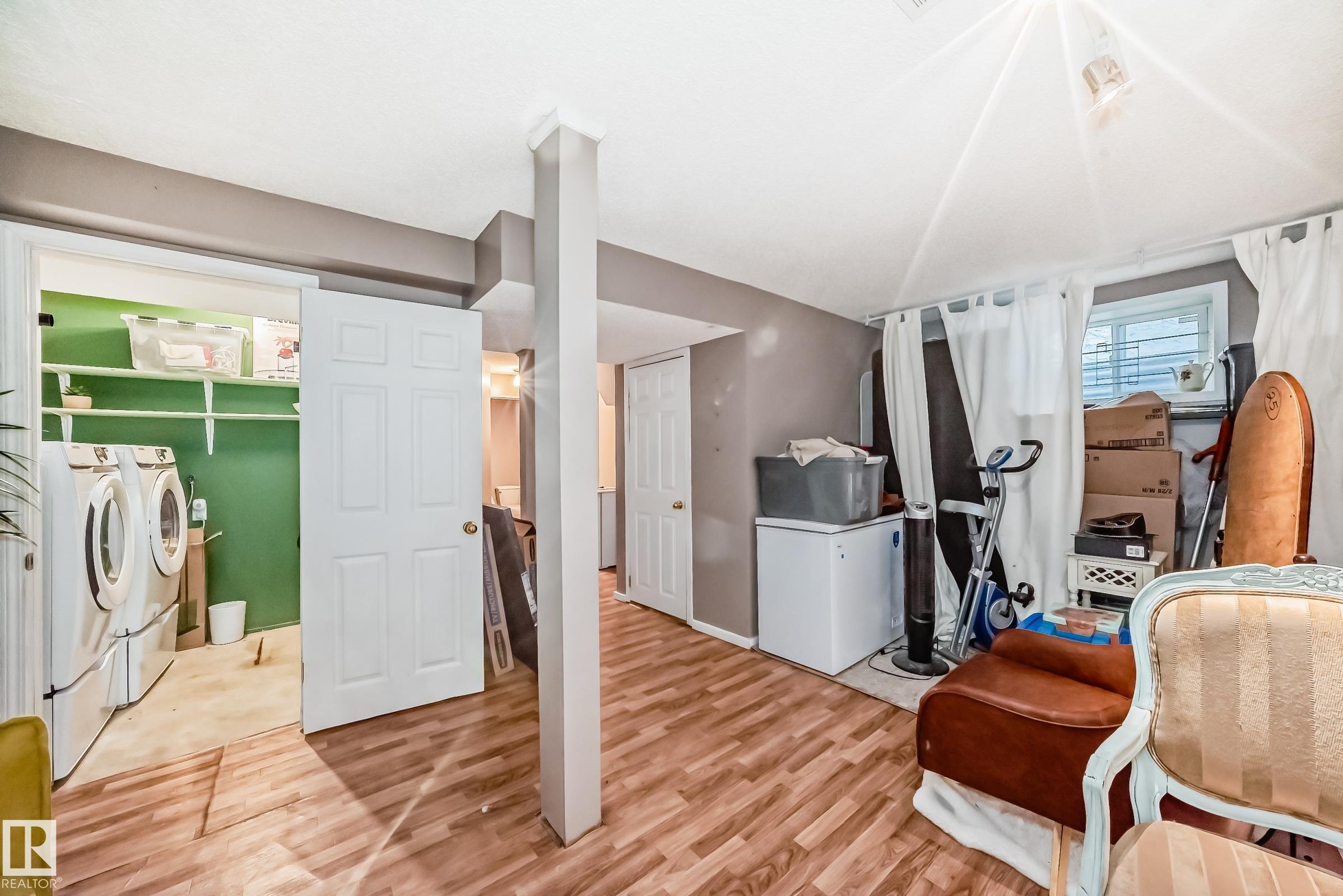 Rare find! Fantastic 3 bedroom, two story, with two full and two half baths! This home has a bright and open floorplan, a finished basement, and a single attached garage with additional parking on the front pad. Just steps away from a green space located in a quiet location in the Heart of Riverbend is close to schools, shopping, walking trails. Bright open concept main floor with lots of light, the kitchen and dining area have patio doors that lead out to a large deck in the quiet Southeast facing back yard. The 3 generous-sized bedrooms upstairs the primary bedroom has a four piece ensuite with a soaker tub, and a walk-in closet. The developed basement has a huge flex room, laundry and a 2 pc bathroom. This unit does not back onto Rabbit Hill Road. It is nestled in a quiet location.