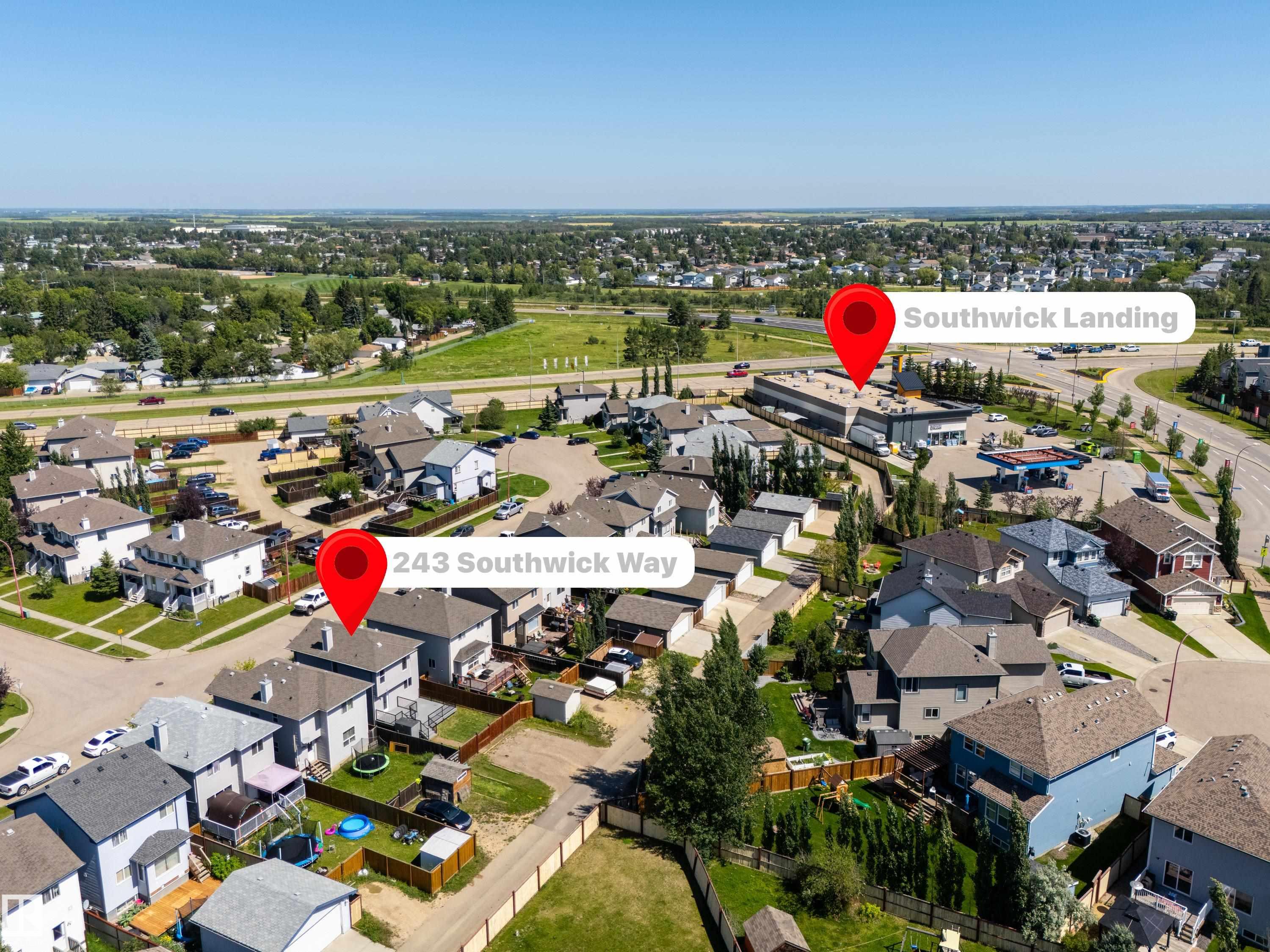 Affordable comfort in desirable Southfork! Ideal for families & first time buyers, this home offers CENTRAL A/C, over 1300 sq ft of living space, 3 beds, 2.5 baths, main floor laundry & a sunken living rm with 9' ceilings! This bright & airy home has been recently updated with BRAND NEW CARPETS upstairs and FRESHLY PAINTED walls, doors & trim! Entertaining is a breeze in this open concept layout, featuring well-sized rooms and an ISLAND KITCHEN! Upstairs you'll find a sprawling primary suite with a WALK-IN CLOSET & 4 pc ensuite, 2 additional bedrooms and the main 4 pc bath. Step outside into the sunny south-facing FULLY FENCED BACKYARD and soak in the sun on a two-tier COMPOSITE DECK (2023) spanning over 330 sq ft with 3 power outlets! Out back you'll find ample off-street parking for multiple vehicles or even your boat or RV! Opportunity awaits for you to build your future garage or develop the unfinished basement. All this and more just steps from playgrounds, schools, shopping & the community garden!