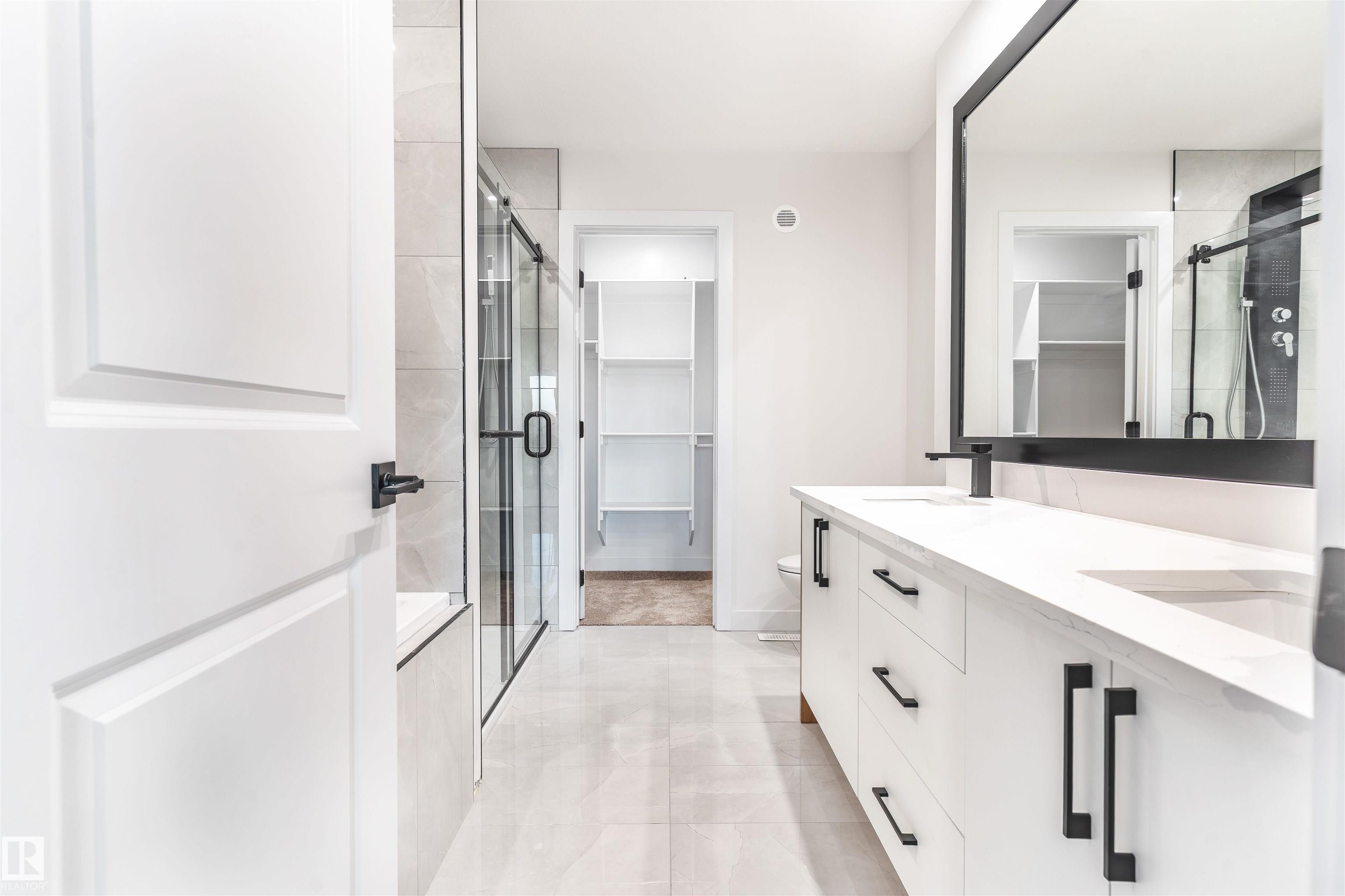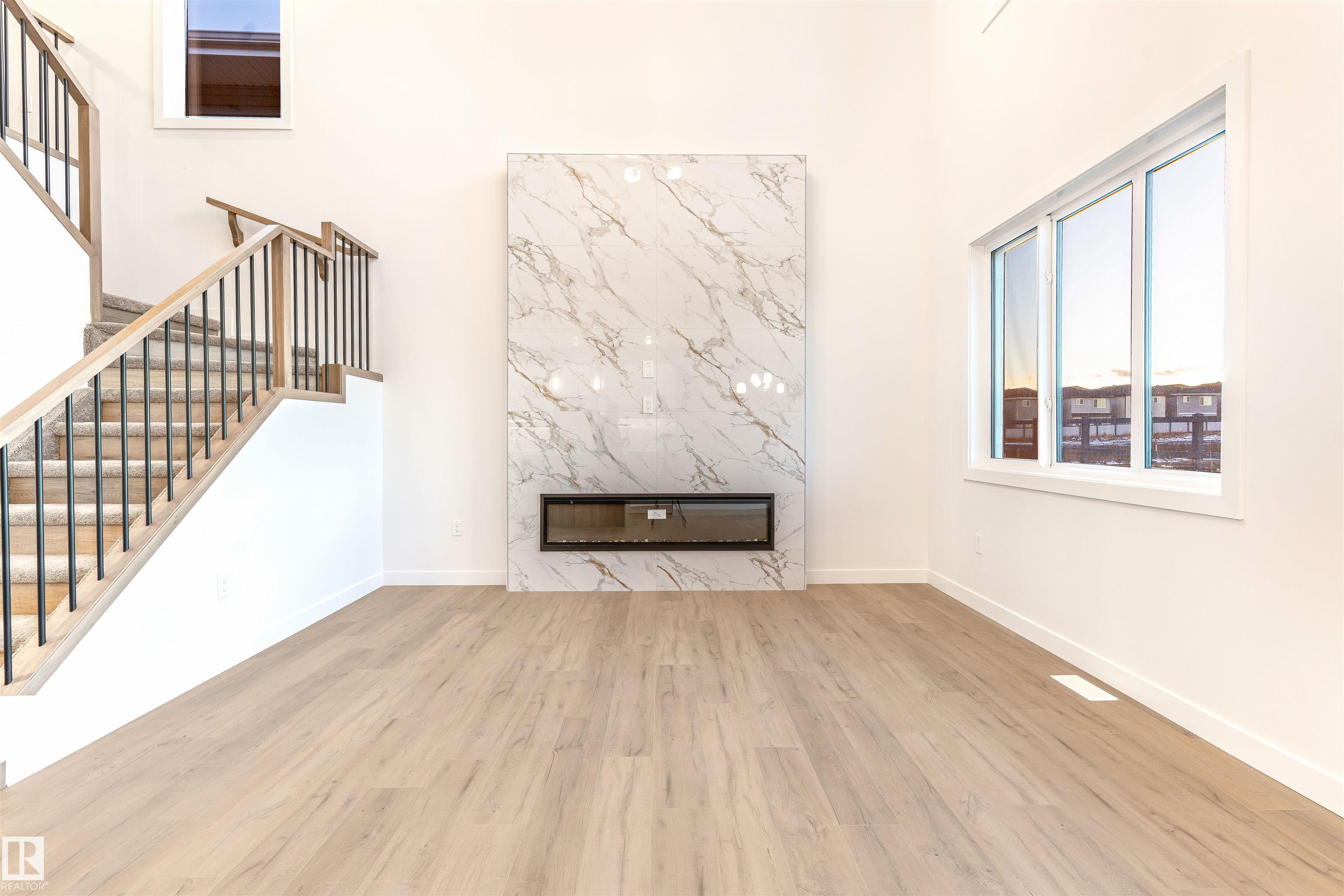 FULLY CUSTOM DUPLEX WITH OPEBN TO BELOW for starter/Investment/Downsizing opportunity Located in the Jesper dale Community of Spruce Grove. This 3 Bedroom, 3 Bath, plus loft is located close to schools & Recreation Centre. Main floor has high ceiling foyer and kitchen with modern high gloss cabinetry, quartz countertops, stainless steel appliances and spacious pantry. Perfect for cooking meals and entertaining! Family room has comfortable setting with fireplace and huge windows. Spacious nook with lots of sunlight and half bath finishes main level. Unfinished basement with separate entrance, 9' Ceiling and roughed in bathroom is waiting for creative ideas.TRIPLE PANE WINDOWS.
