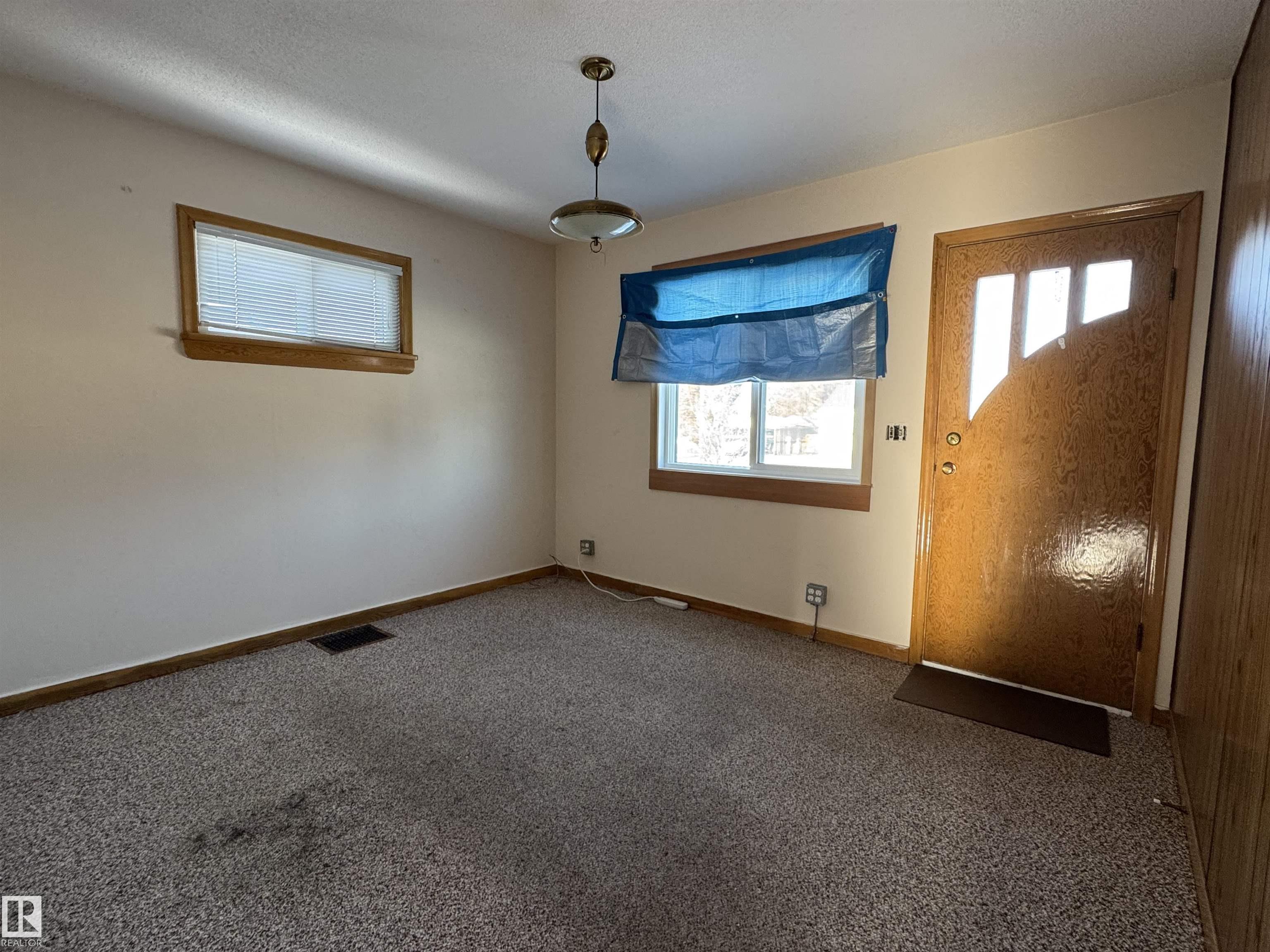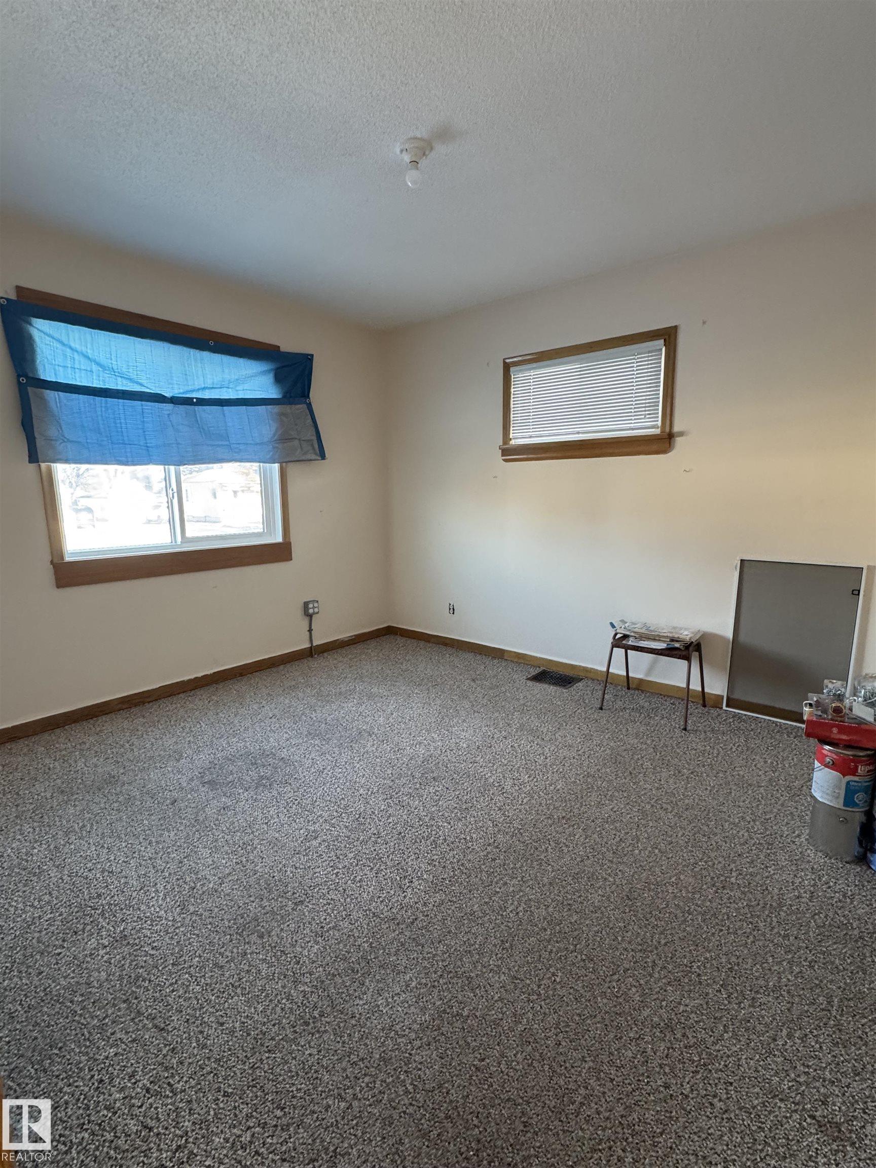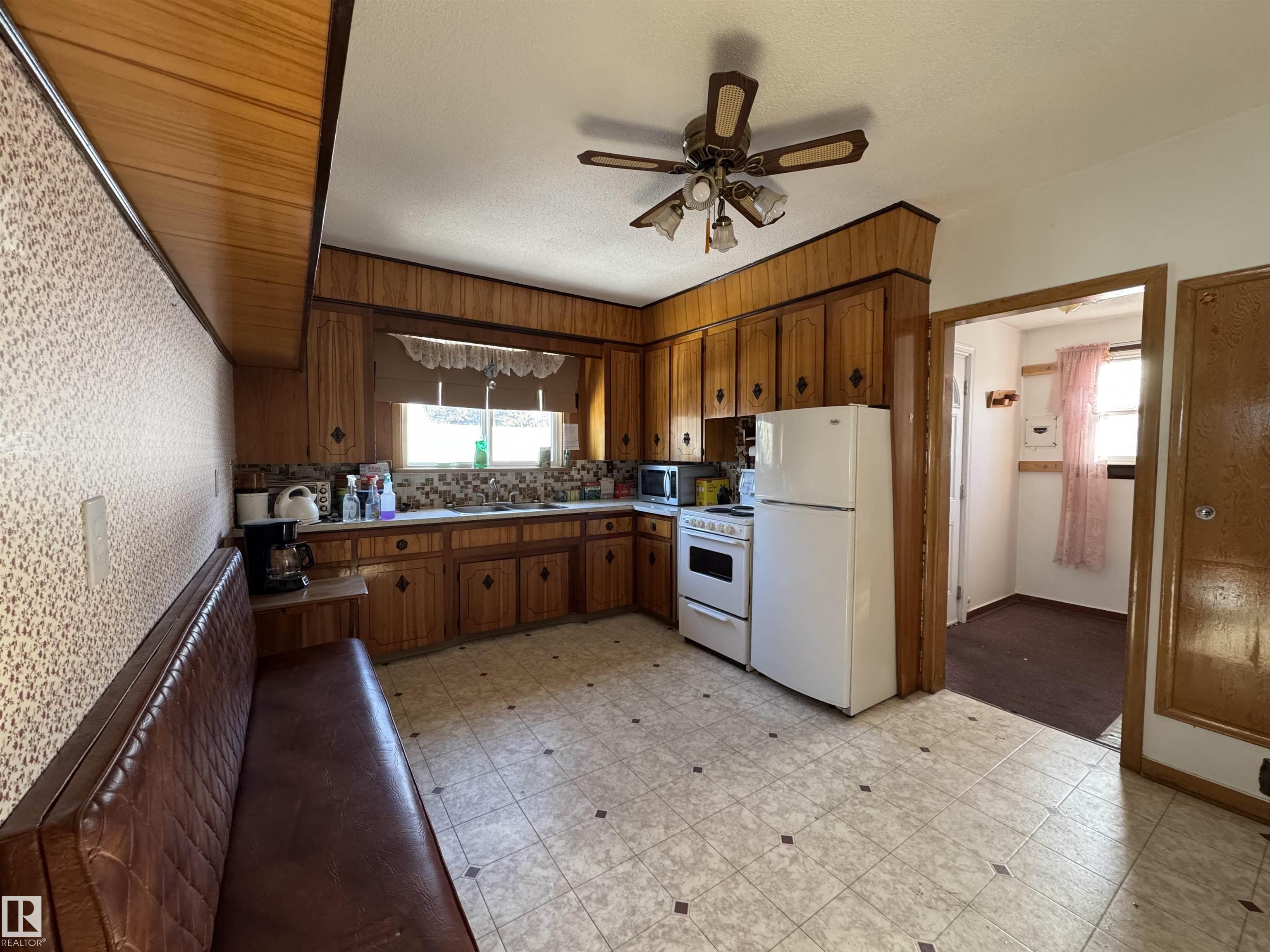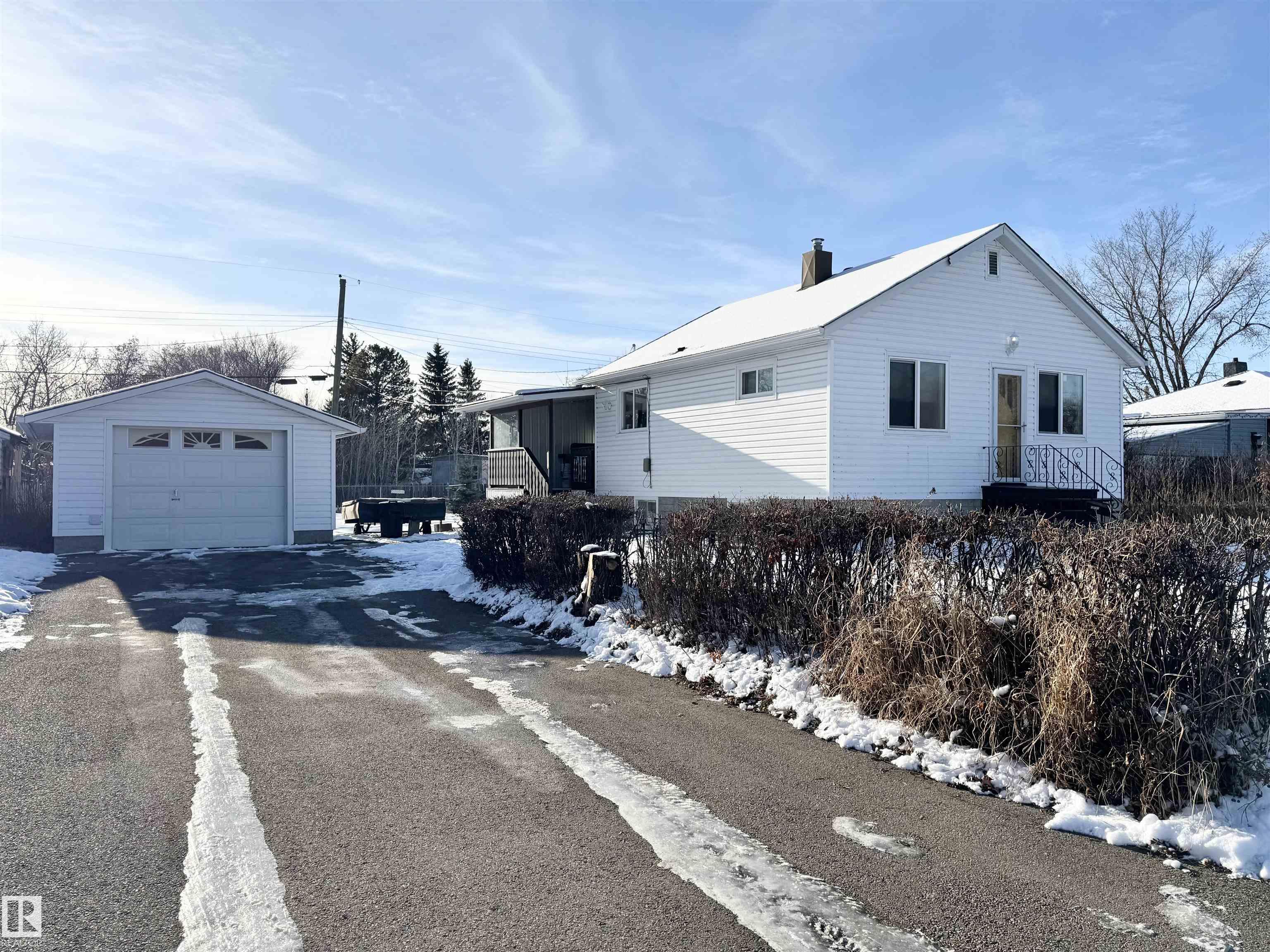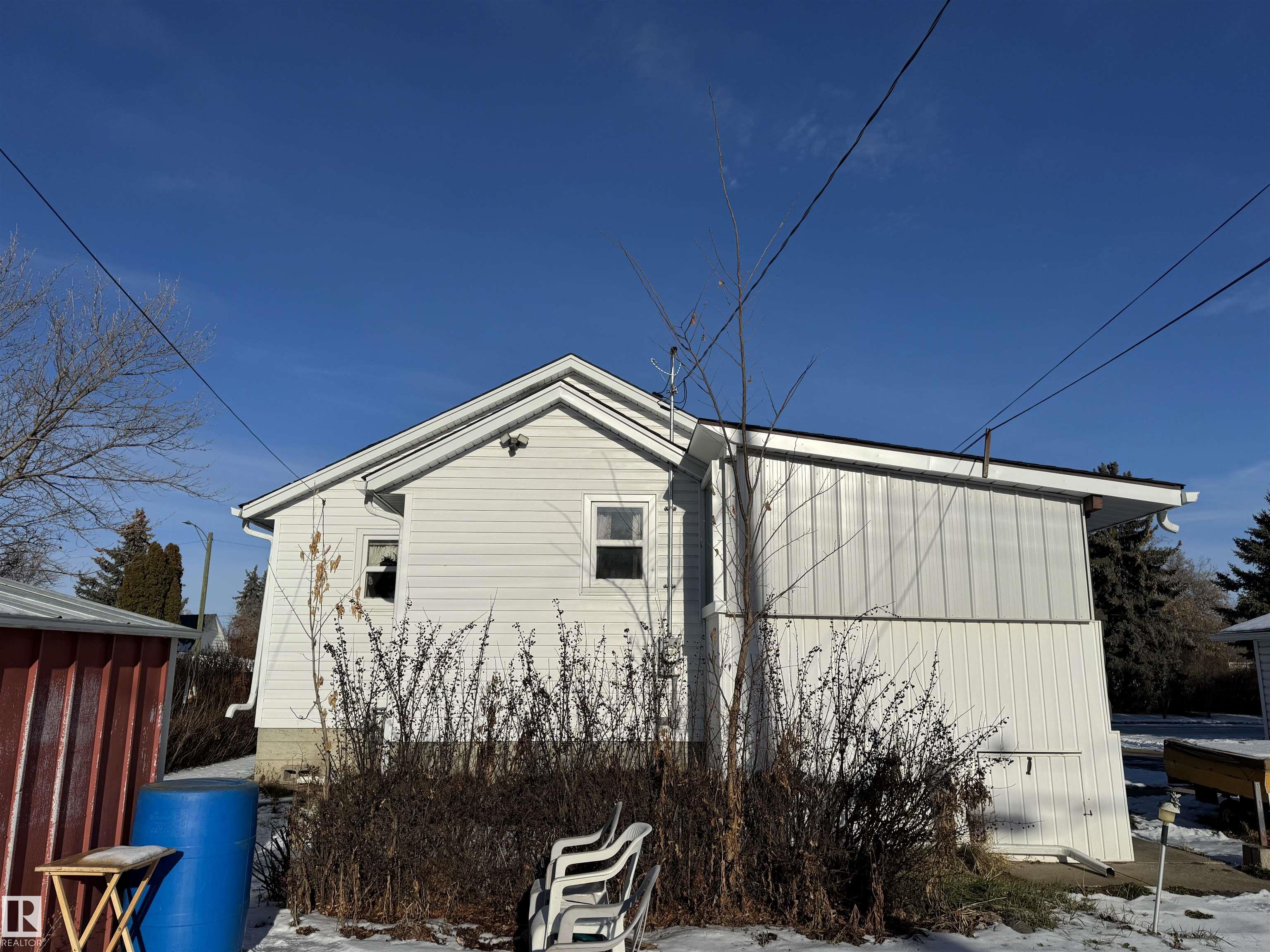 Situated on a large 9375 sq ft lot sits this lovely two bedroom bungalow. As one enters the home through a covered porch you are welcomed into the eat in kitchen with bench seating, a 4 pc updated bathroom and the secondary bedroom. A bright living room leads to a spacious primary bedroom. Downstairs features a partially finished basement complete with family room, laundry area, central vacuum and storage area. Updates throughout the years include, shingles, vinyl siding and windows, paved driveway, furnace, hot water tank, bathroom and 100 amp electrical. The spacious yard is partially fenced, offers RV parking, a single detached garage with long driveway and two storage sheds.