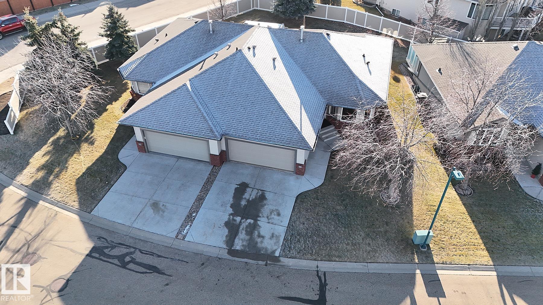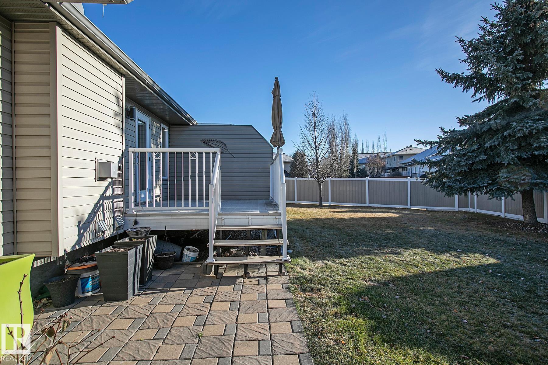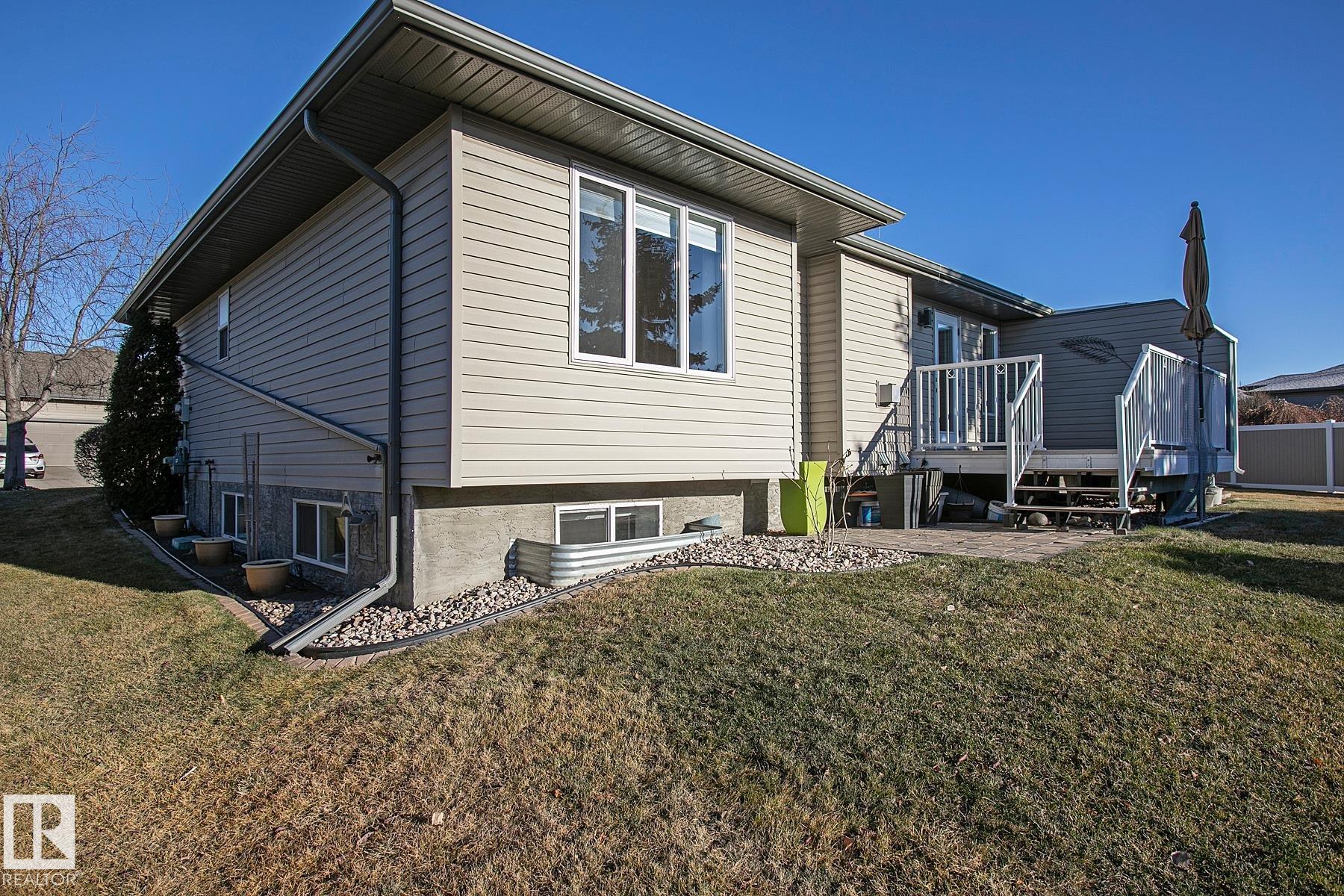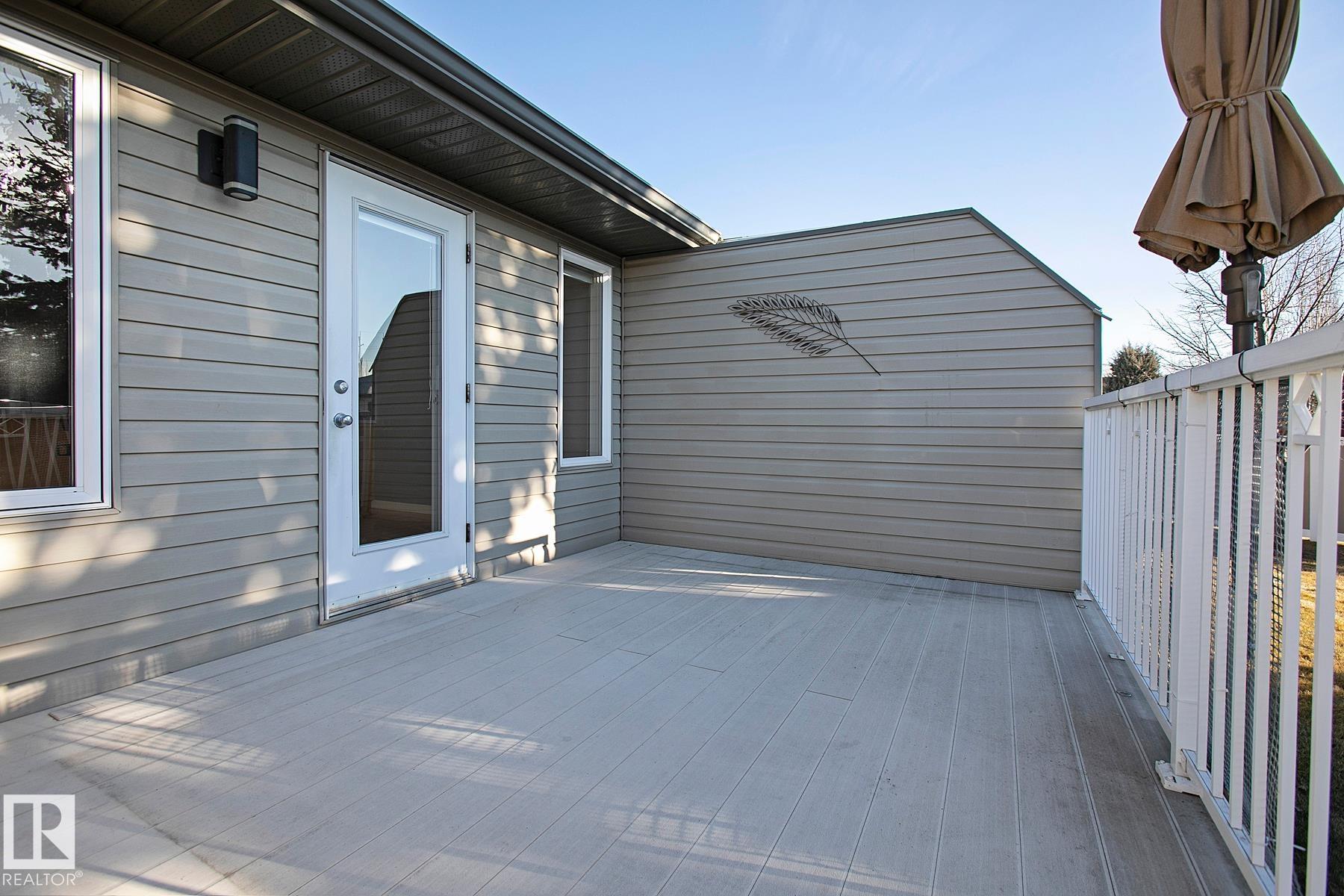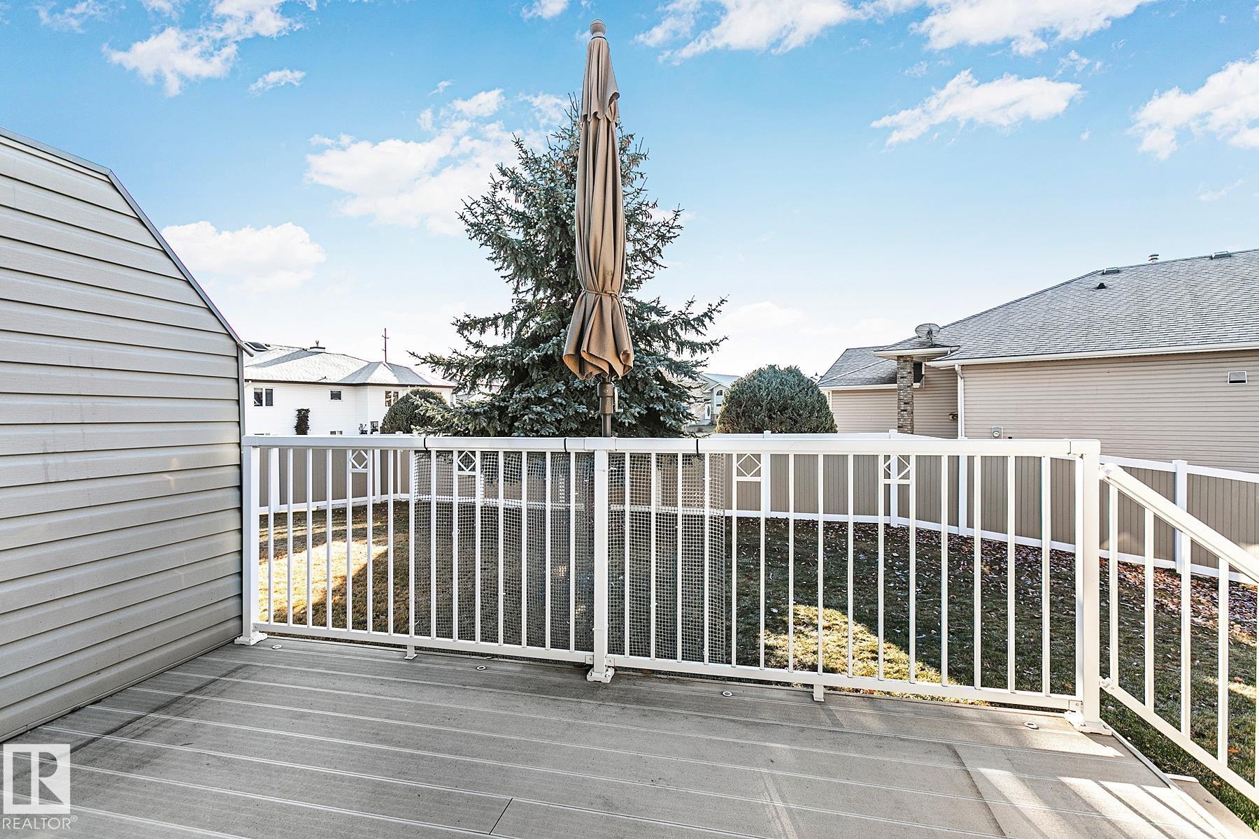 RARE FIND! Executive Adult (45+) living in Charlton Greens. Don't miss out on viewing this well maintained original owner 1,162 sq.ft 1/2 duplex bungalow design. Main floor features include vaulted ceilings & birch hardwood flooring; hickory kitchen cabinets, quartz countertops & glass tiled backsplash, corner pantry, stainless appliances, and an adjoining dinette area; spacious den/ office; 3pc. bath; main floor laundry closet; and primary bedroom w/ laminate flooring, walk-in closet and full 4pc. bath. The fully developed lower level is complete with family room & gas fireplace; 2 additional bedrooms; full 4pc. bath; optional laundry room and an extra storage area. Exterior amenities offer a double attached garage w/ heat & water; maintenance free south exposure deck w/ gas BBQ outlet; lawn & flower bed sprinkler system...and the list goes on. All this is conveniently located in a quiet residential neighbourhood adjacent to Clover Bar Ranch Park, and within a short commute to all local amenities.