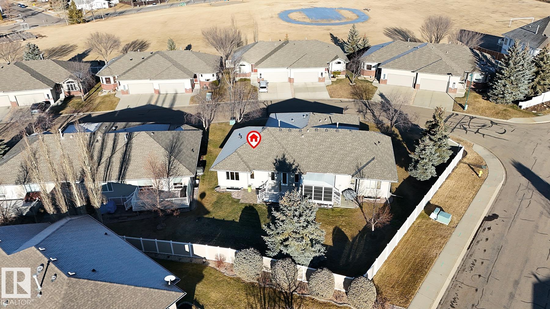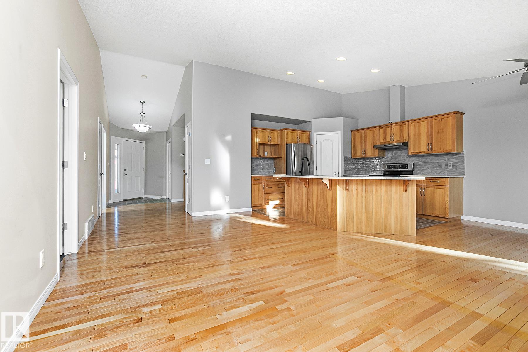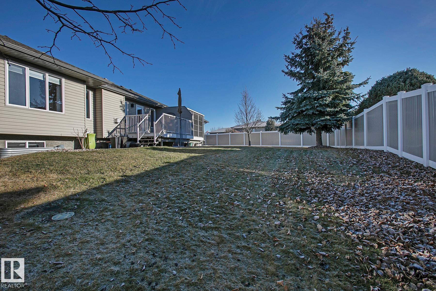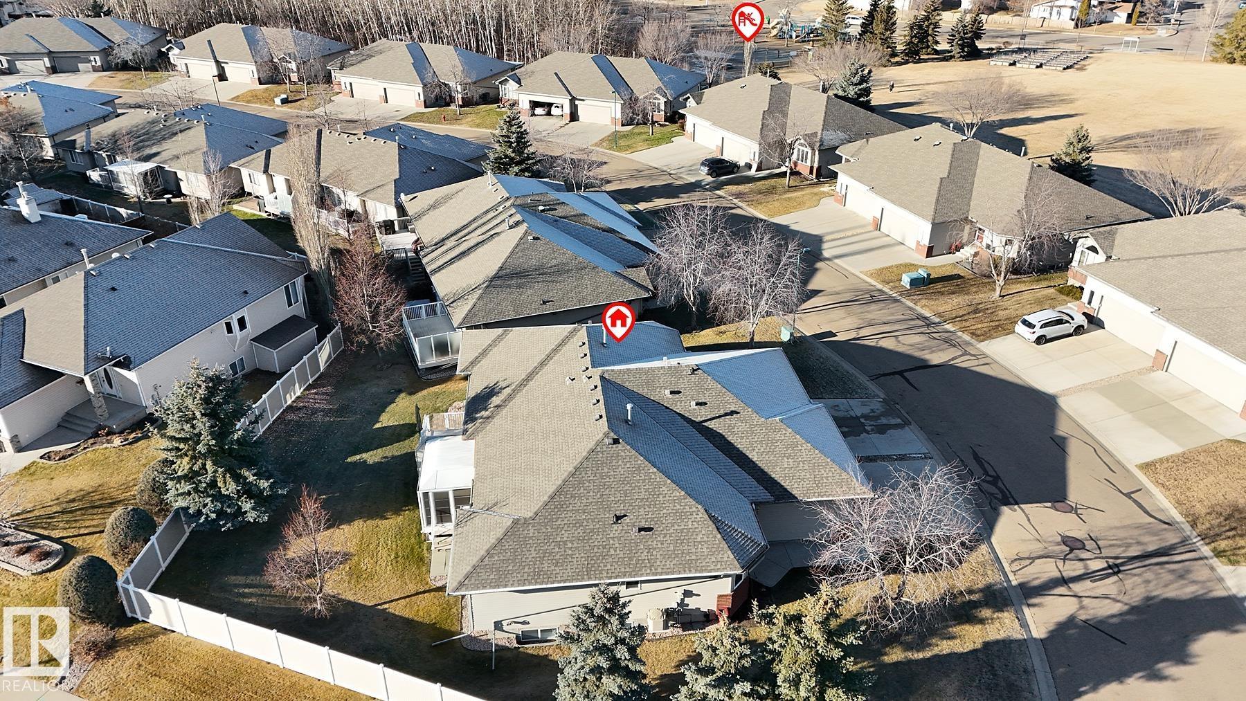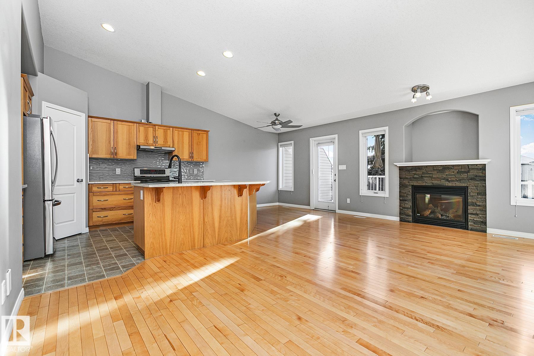RARE FIND! Executive Adult (45+) living in Charlton Greens. Don't miss out on viewing this well maintained original owner 1,162 sq.ft 1/2 duplex bungalow design. Main floor features include vaulted ceilings & birch hardwood flooring; hickory kitchen cabinets, quartz countertops & glass tiled backsplash, corner pantry, stainless appliances, and an adjoining dinette area; spacious den/ office; 3pc. bath; main floor laundry closet; and primary bedroom w/ laminate flooring, walk-in closet and full 4pc. bath. The fully developed lower level is complete with family room & gas fireplace; 2 additional bedrooms; full 4pc. bath; optional laundry room and an extra storage area. Exterior amenities offer a double attached garage w/ heat & water; maintenance free south exposure deck w/ gas BBQ outlet; lawn & flower bed sprinkler system...and the list goes on. All this is conveniently located in a quiet residential neighbourhood adjacent to Clover Bar Ranch Park, and within a short commute to all local amenities.