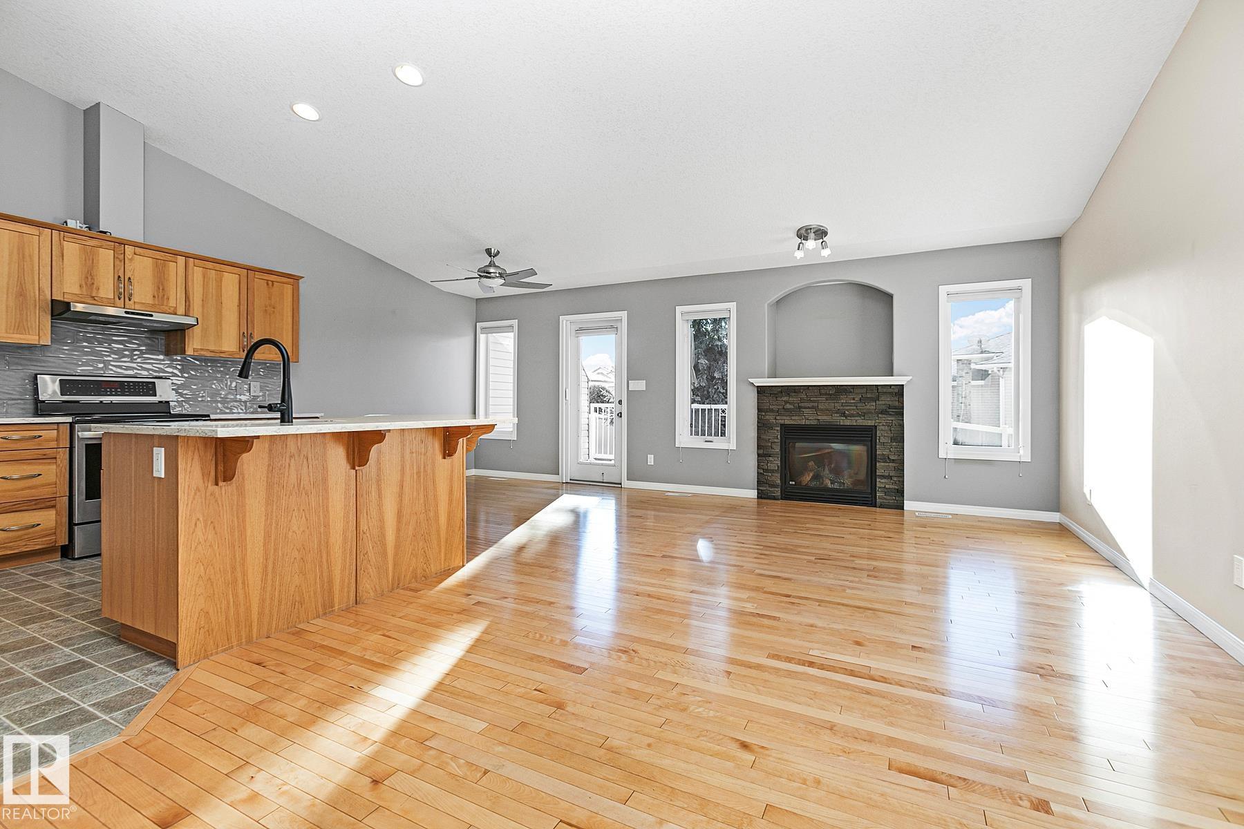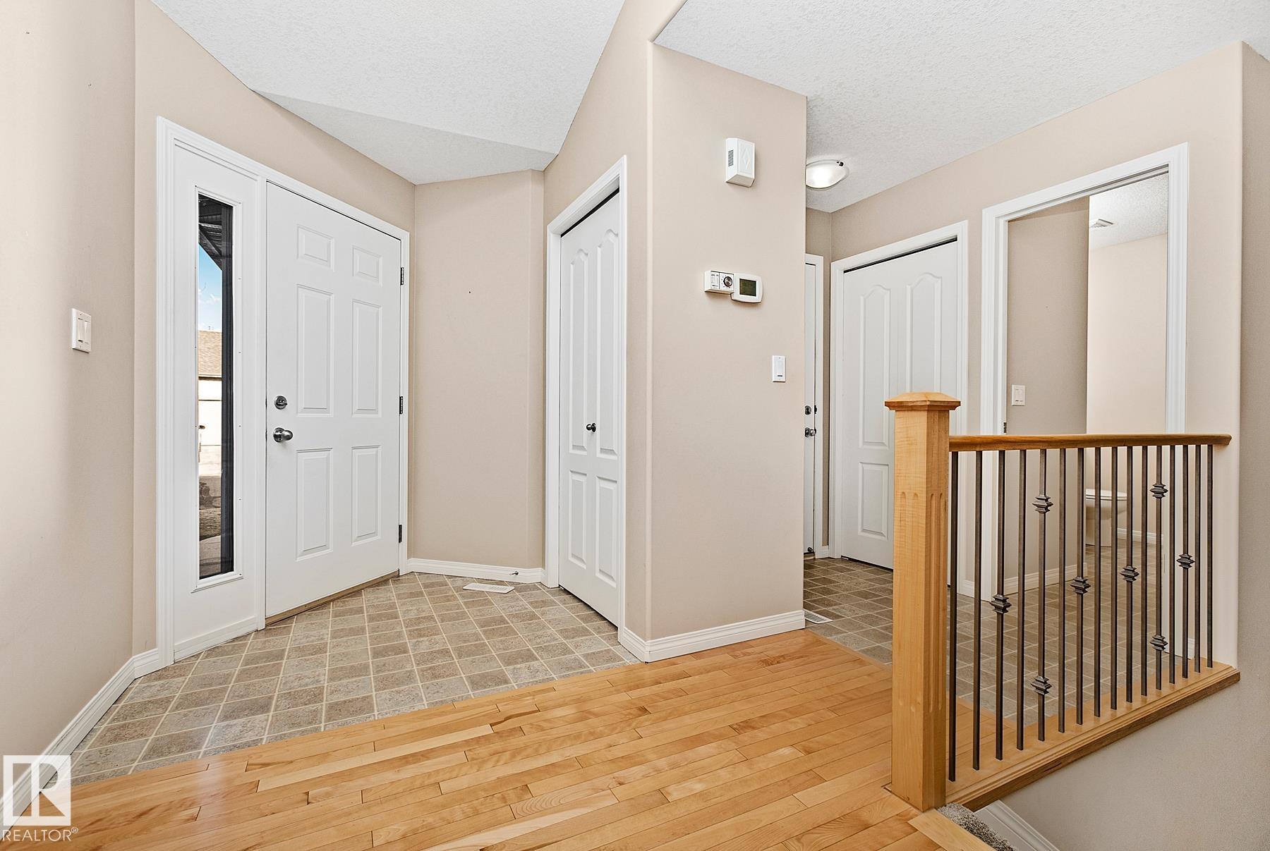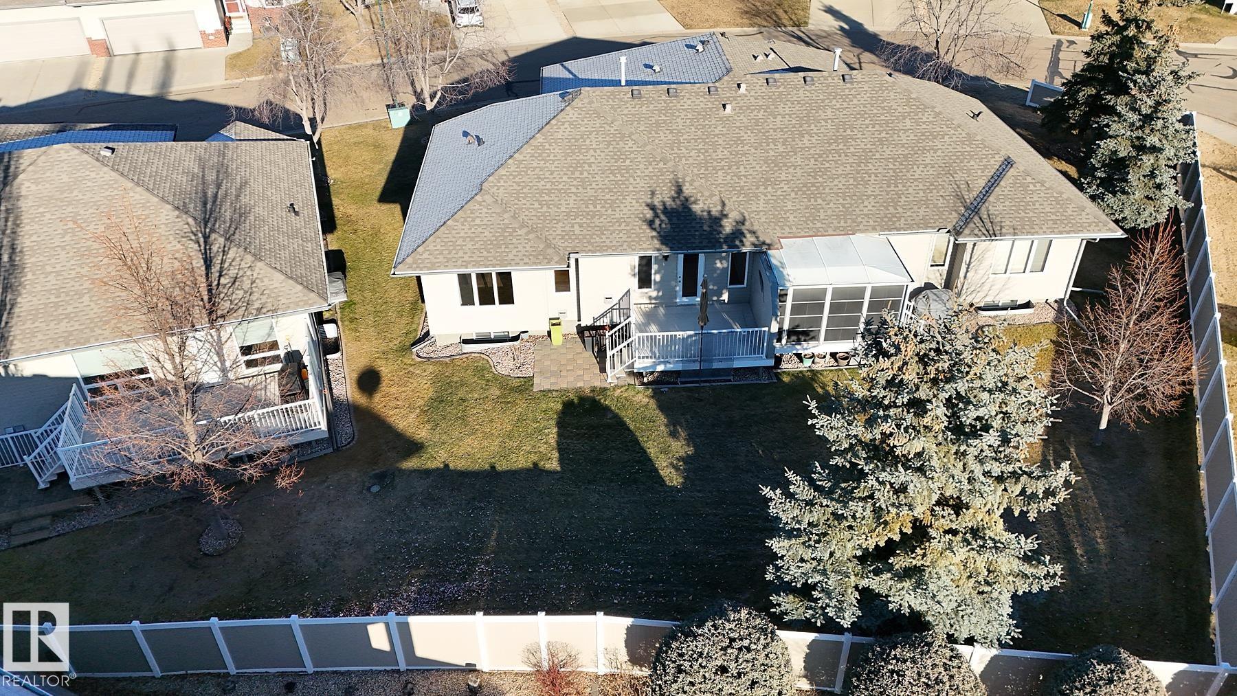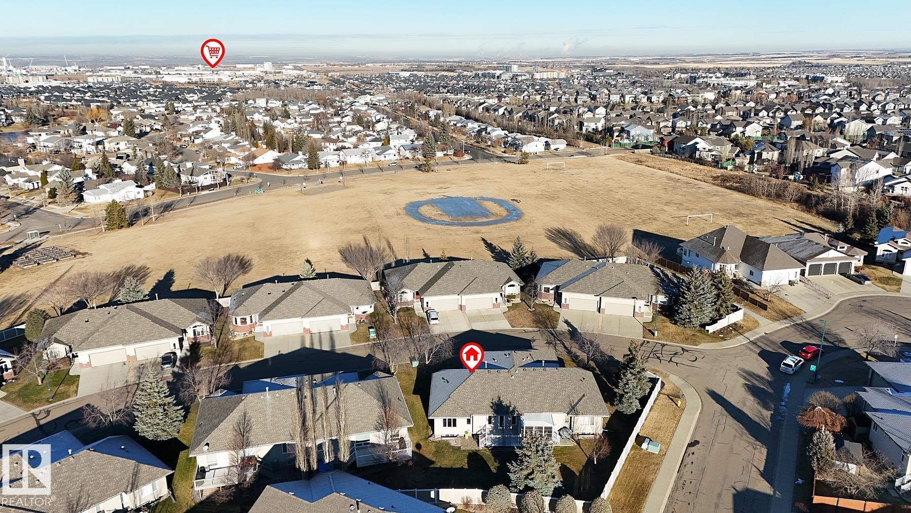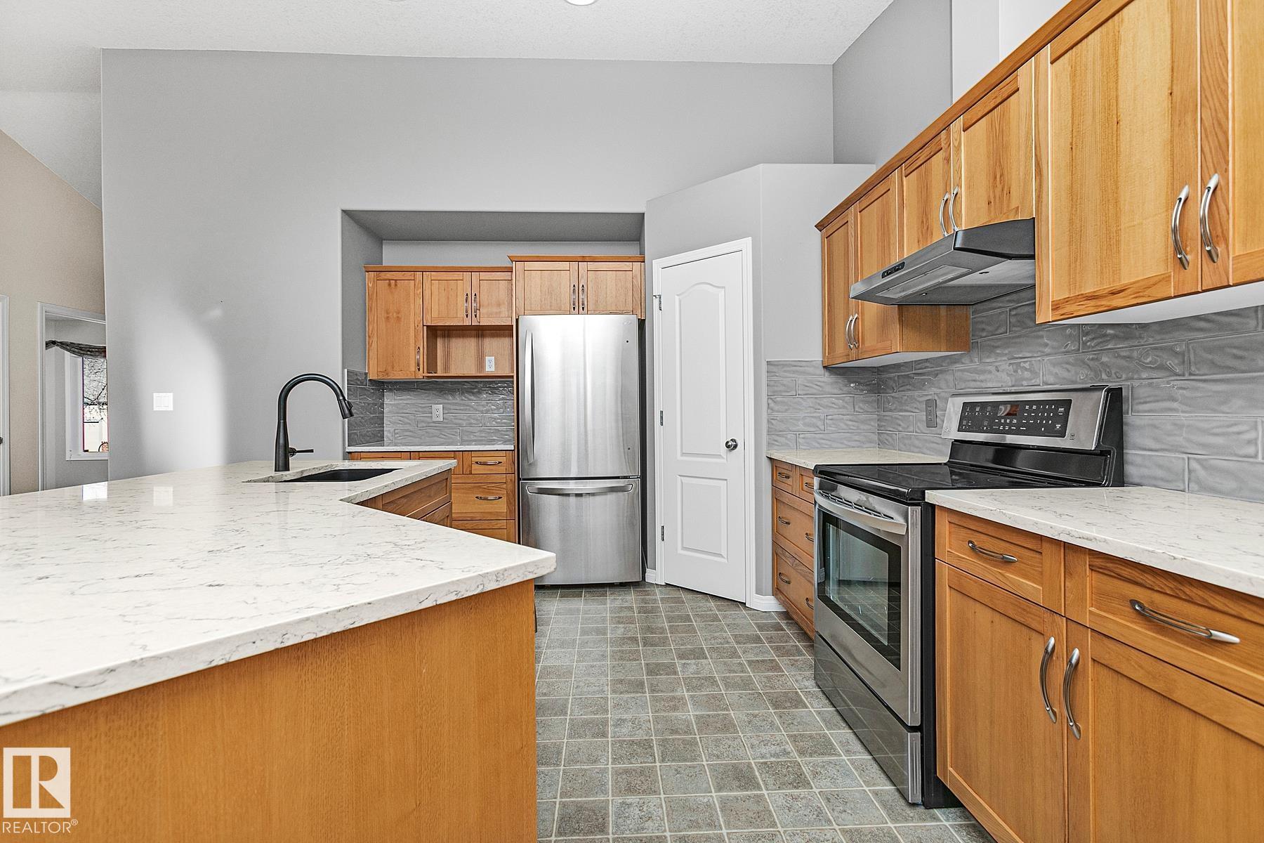 RARE FIND! Executive Adult (45+) living in Charlton Greens. Don't miss out on viewing this well maintained original owner 1,162 sq.ft 1/2 duplex bungalow design. Main floor features include vaulted ceilings & birch hardwood flooring; hickory kitchen cabinets, quartz countertops & glass tiled backsplash, corner pantry, stainless appliances, and an adjoining dinette area; spacious den/ office; 3pc. bath; main floor laundry closet; and primary bedroom w/ laminate flooring, walk-in closet and full 4pc. bath. The fully developed lower level is complete with family room & gas fireplace; 2 additional bedrooms; full 4pc. bath; optional laundry room and an extra storage area. Exterior amenities offer a double attached garage w/ heat & water; maintenance free south exposure deck w/ gas BBQ outlet; lawn & flower bed sprinkler system...and the list goes on. All this is conveniently located in a quiet residential neighbourhood adjacent to Clover Bar Ranch Park, and within a short commute to all local amenities.