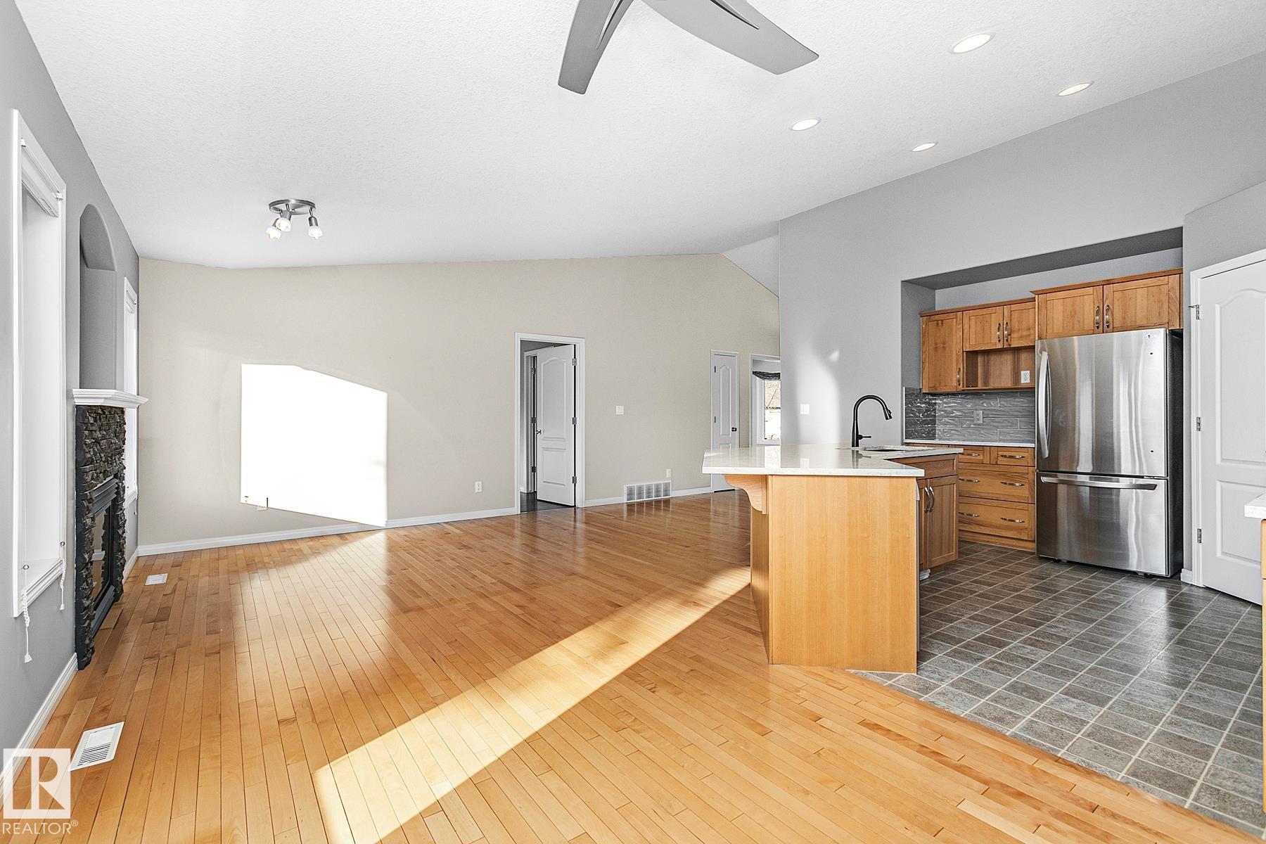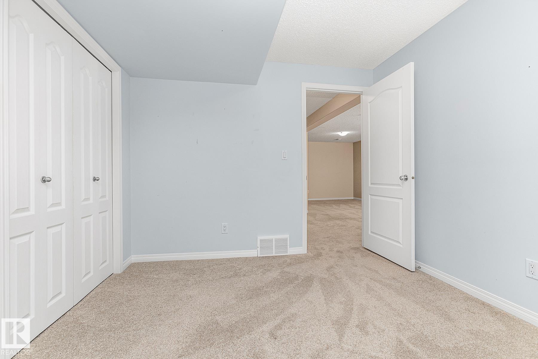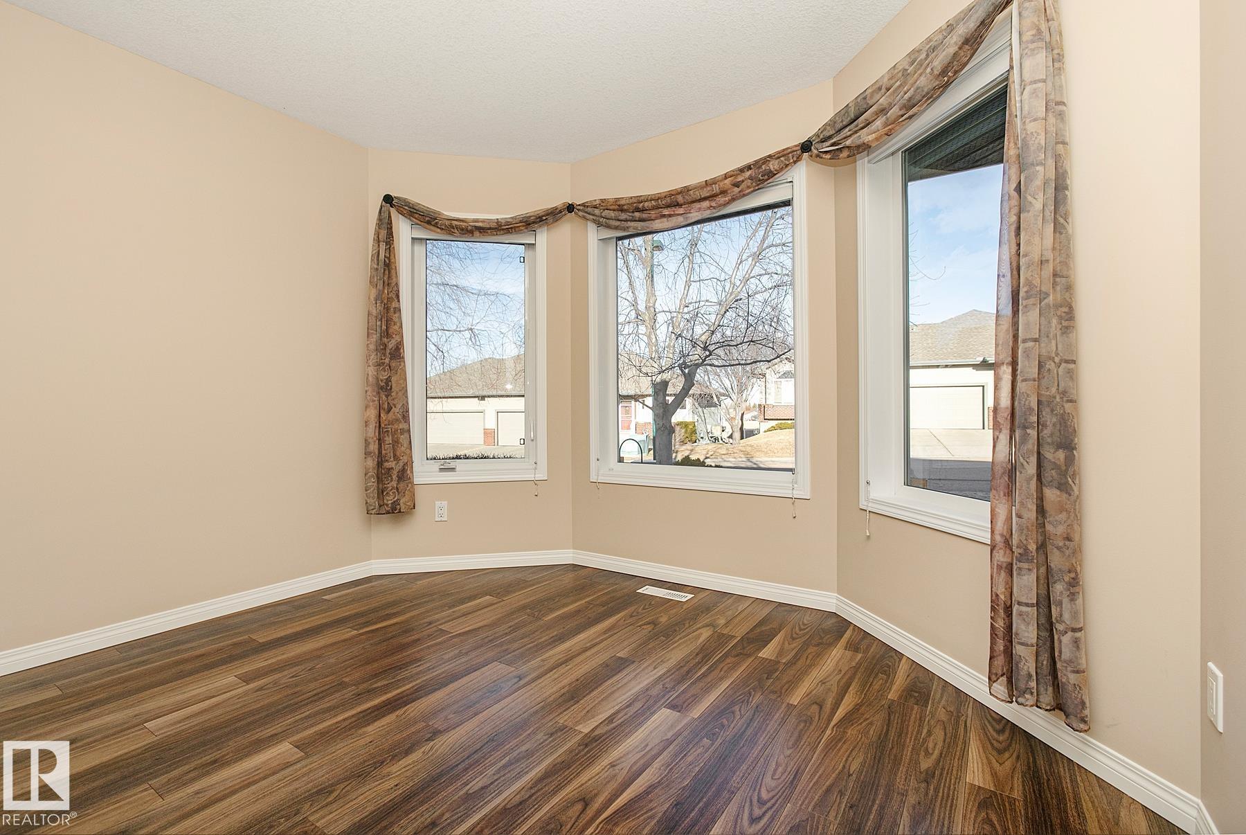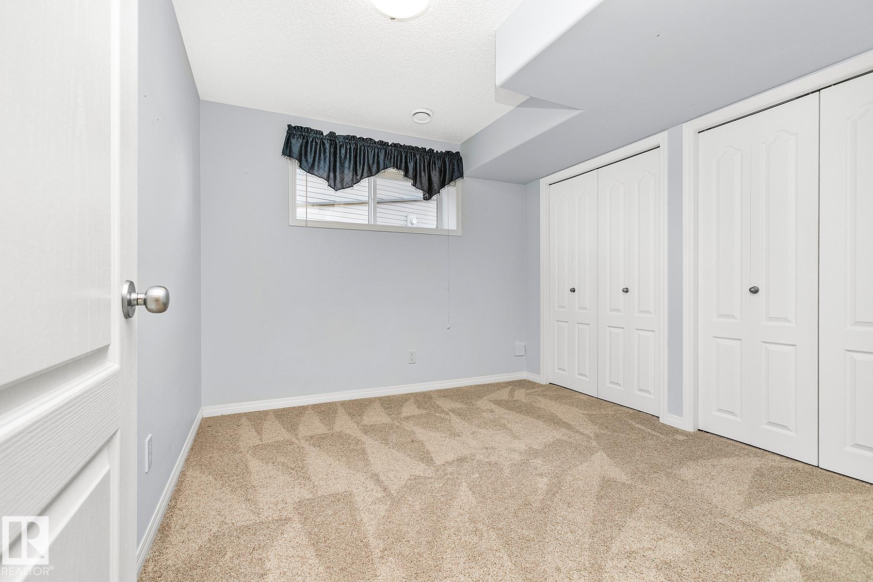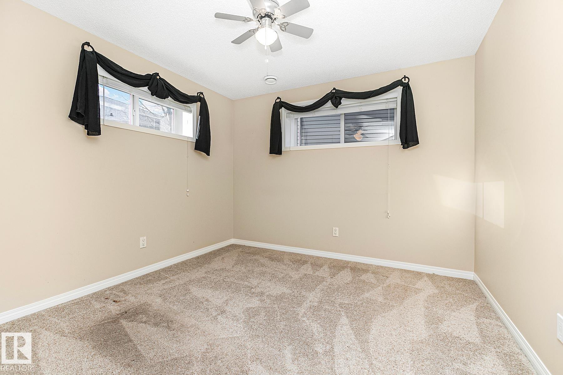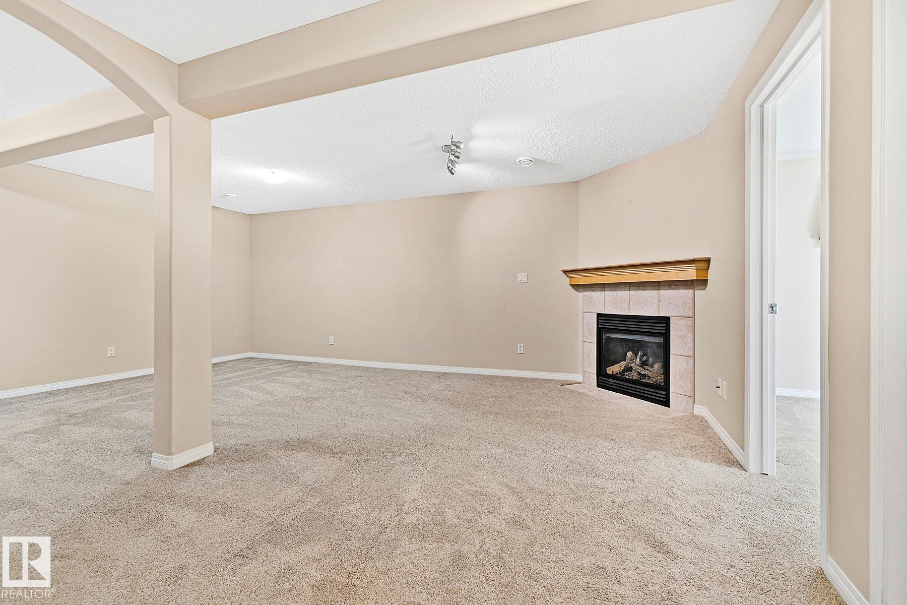 RARE FIND! Executive Adult (45+) living in Charlton Greens. Don't miss out on viewing this well maintained original owner 1,162 sq.ft 1/2 duplex bungalow design. Main floor features include vaulted ceilings & birch hardwood flooring; hickory kitchen cabinets, quartz countertops & glass tiled backsplash, corner pantry, stainless appliances, and an adjoining dinette area; spacious den/ office; 3pc. bath; main floor laundry closet; and primary bedroom w/ laminate flooring, walk-in closet and full 4pc. bath. The fully developed lower level is complete with family room & gas fireplace; 2 additional bedrooms; full 4pc. bath; optional laundry room and an extra storage area. Exterior amenities offer a double attached garage w/ heat & water; maintenance free south exposure deck w/ gas BBQ outlet; lawn & flower bed sprinkler system...and the list goes on. All this is conveniently located in a quiet residential neighbourhood adjacent to Clover Bar Ranch Park, and within a short commute to all local amenities.