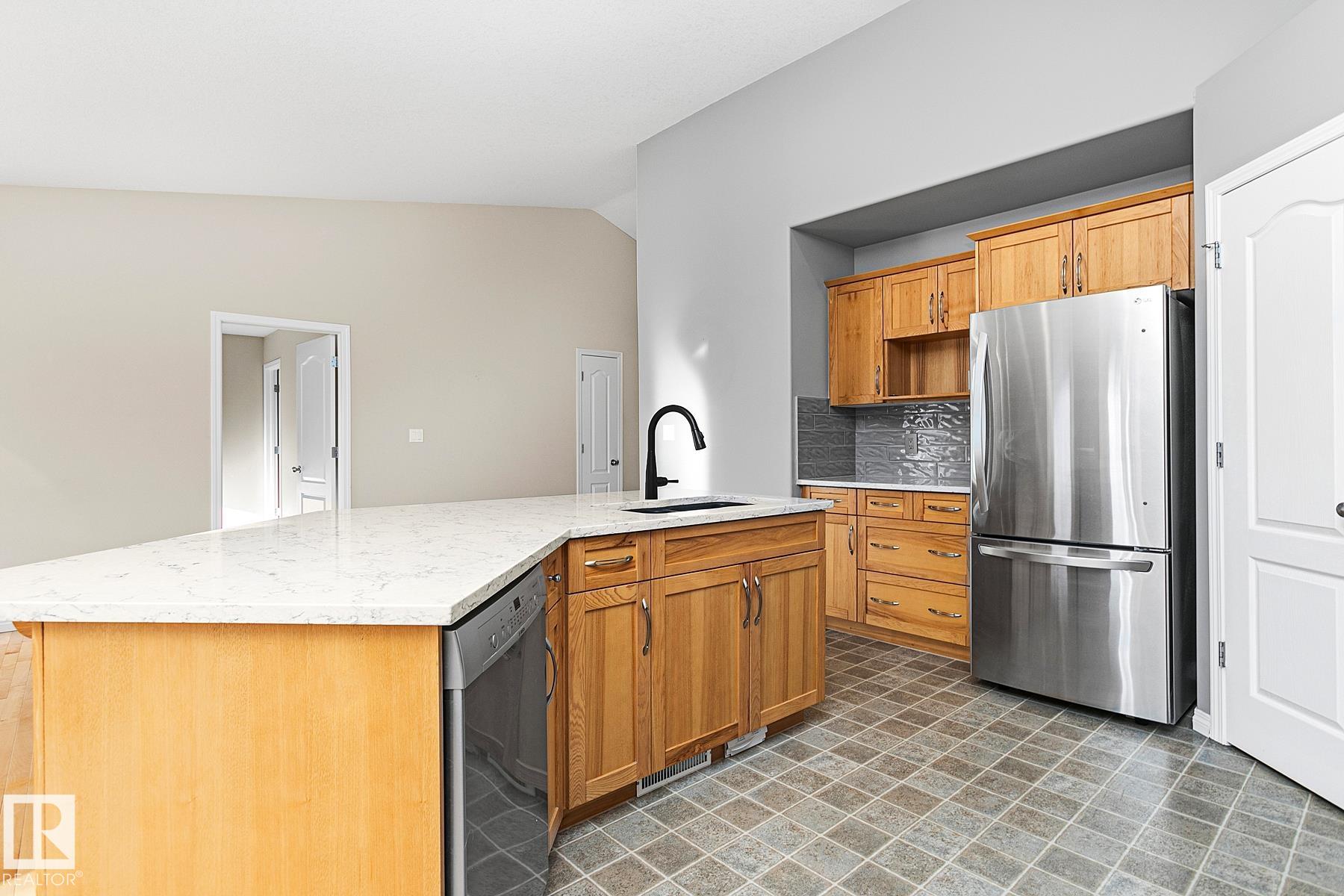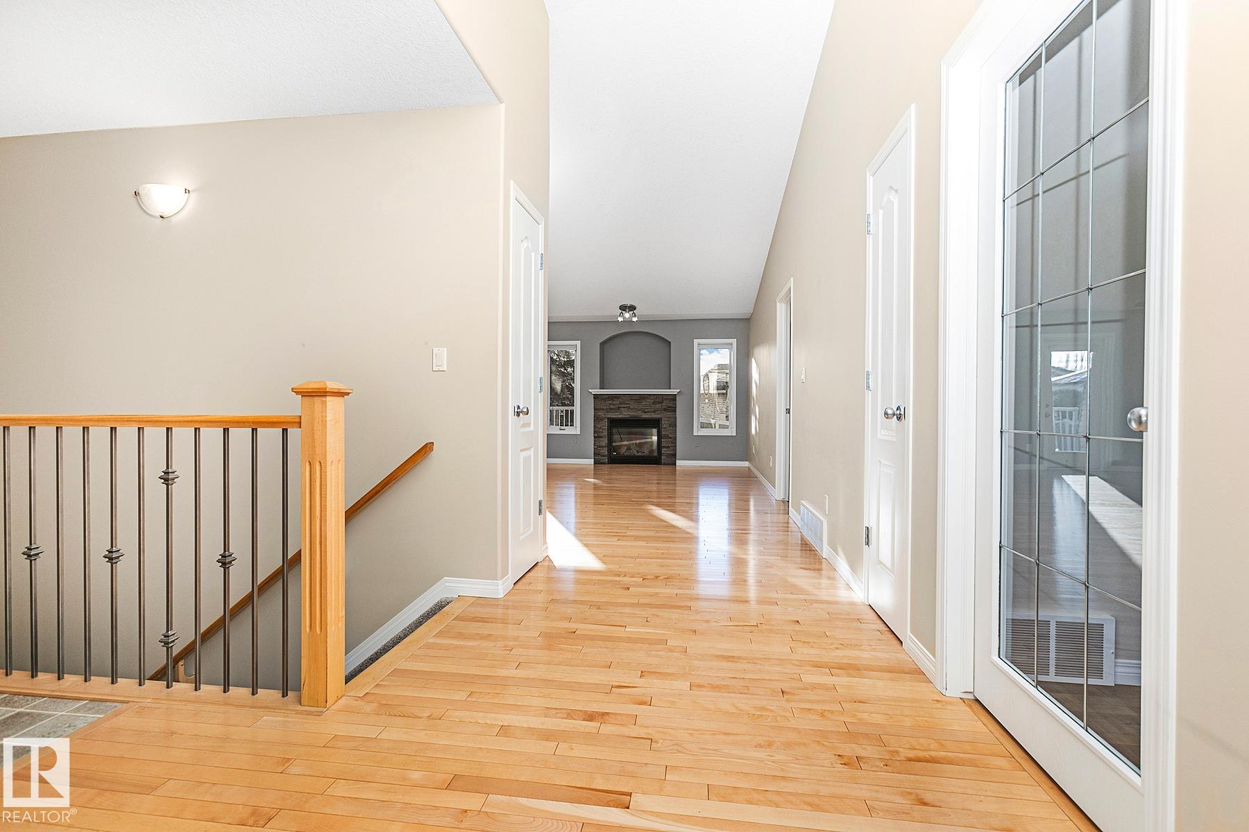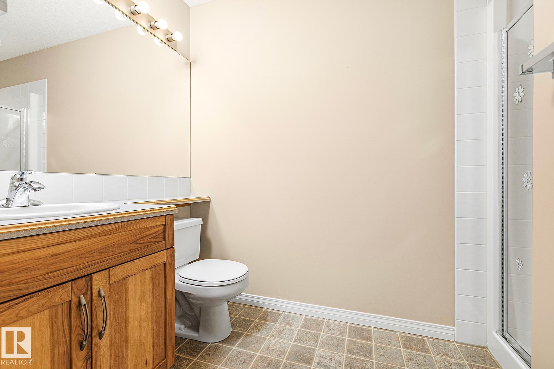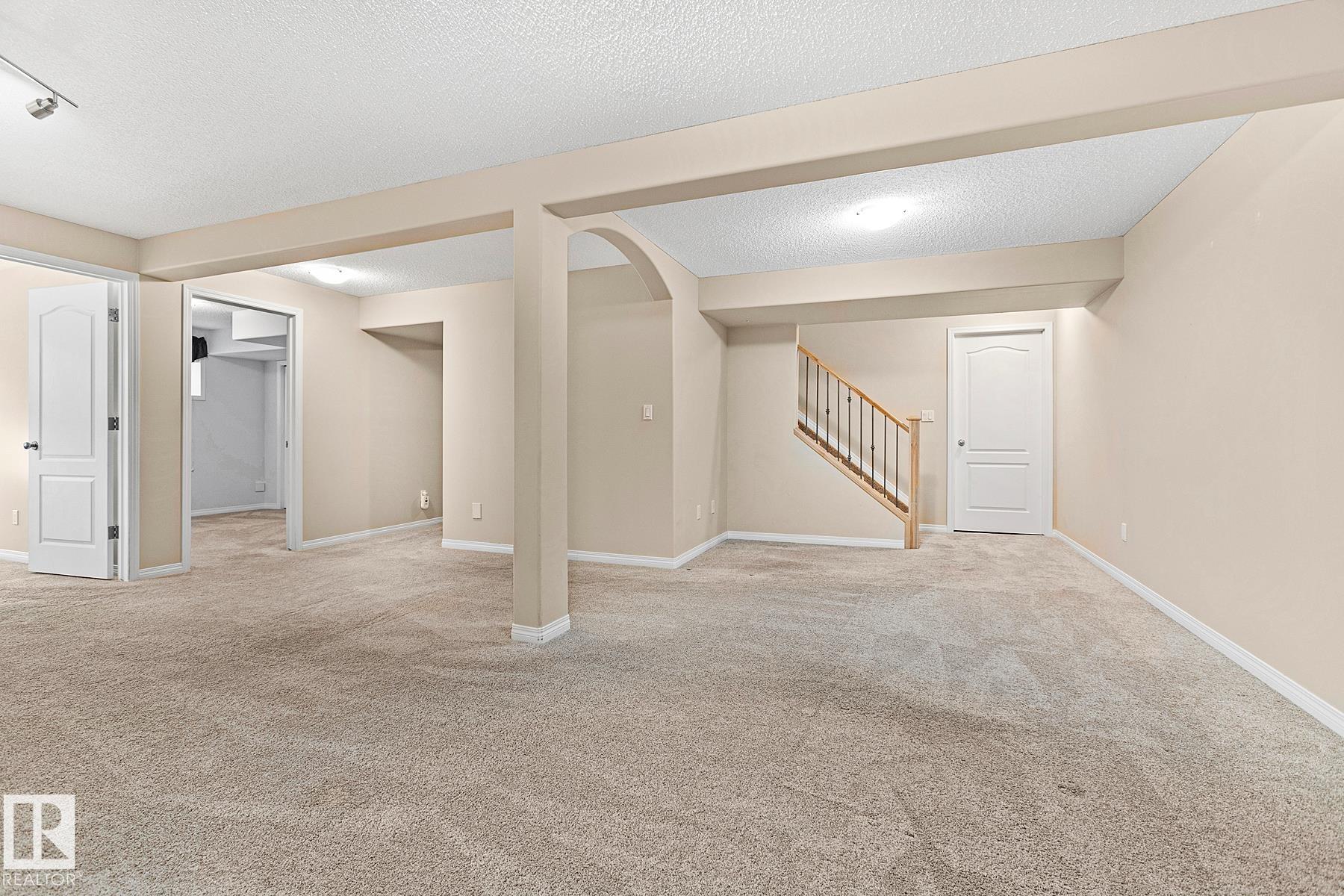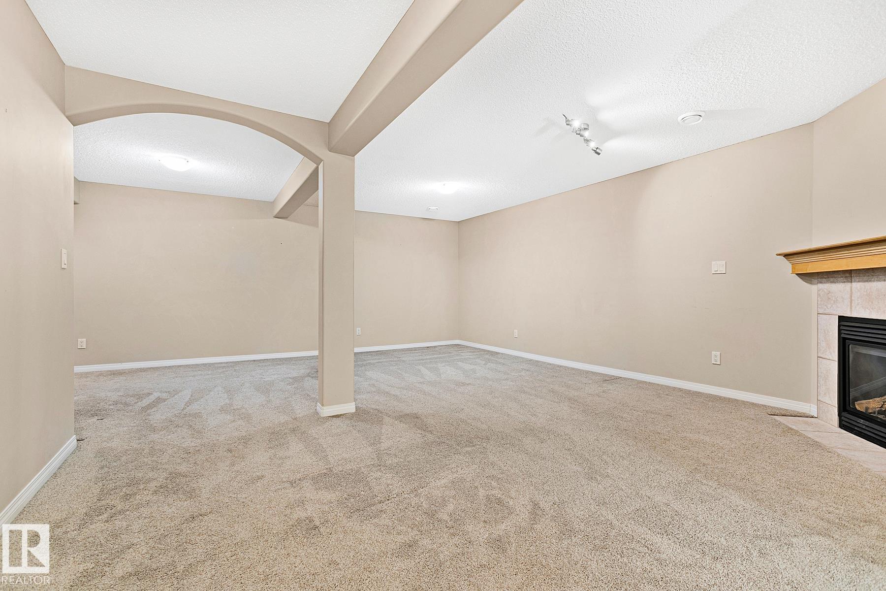 RARE FIND! Executive Adult (45+) living in Charlton Greens. Don't miss out on viewing this well maintained original owner 1,162 sq.ft 1/2 duplex bungalow design. Main floor features include vaulted ceilings & birch hardwood flooring; hickory kitchen cabinets, quartz countertops & glass tiled backsplash, corner pantry, stainless appliances, and an adjoining dinette area; spacious den/ office; 3pc. bath; main floor laundry closet; and primary bedroom w/ laminate flooring, walk-in closet and full 4pc. bath. The fully developed lower level is complete with family room & gas fireplace; 2 additional bedrooms; full 4pc. bath; optional laundry room and an extra storage area. Exterior amenities offer a double attached garage w/ heat & water; maintenance free south exposure deck w/ gas BBQ outlet; lawn & flower bed sprinkler system...and the list goes on. All this is conveniently located in a quiet residential neighbourhood adjacent to Clover Bar Ranch Park, and within a short commute to all local amenities.