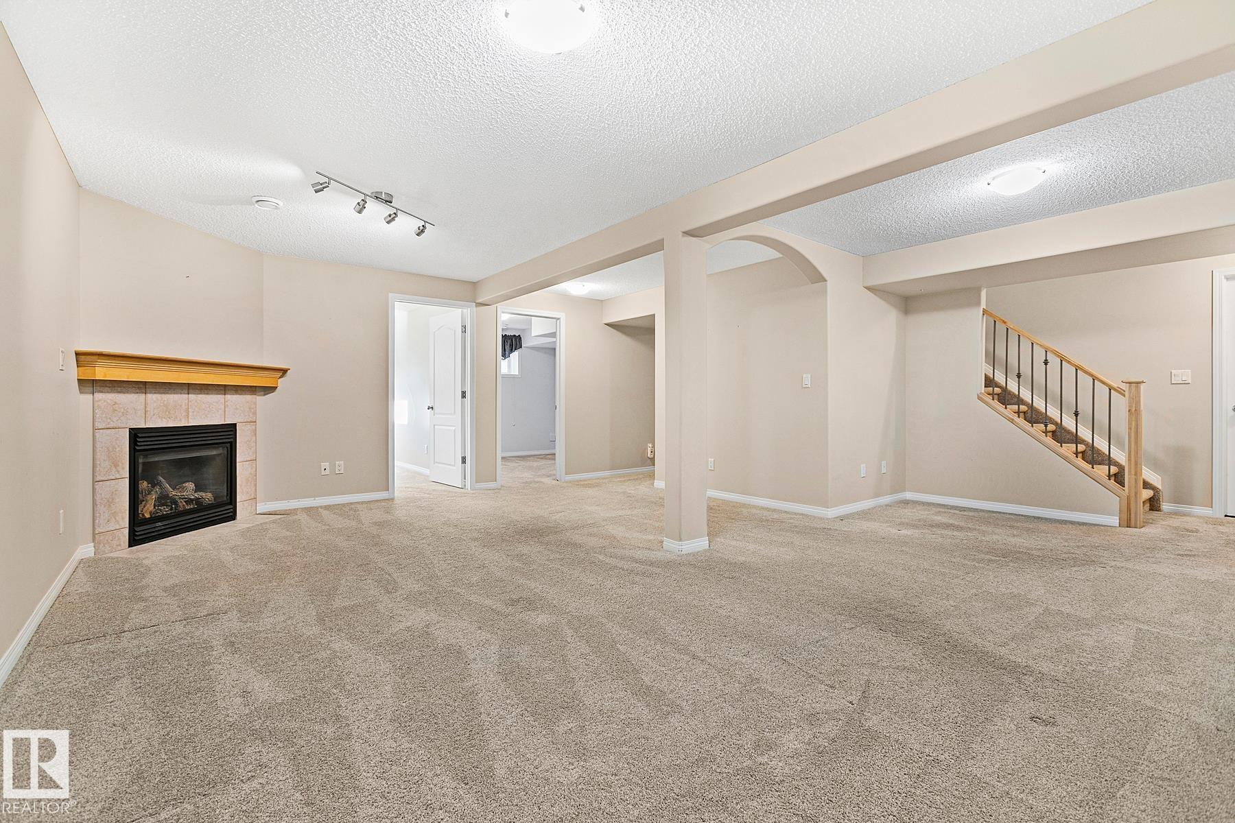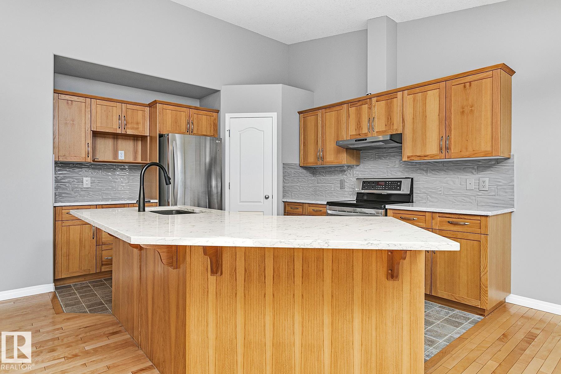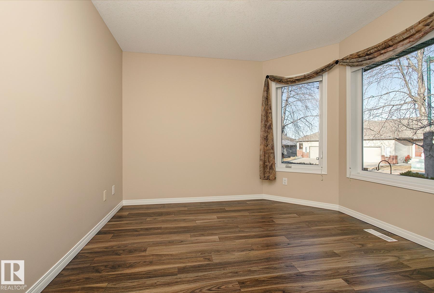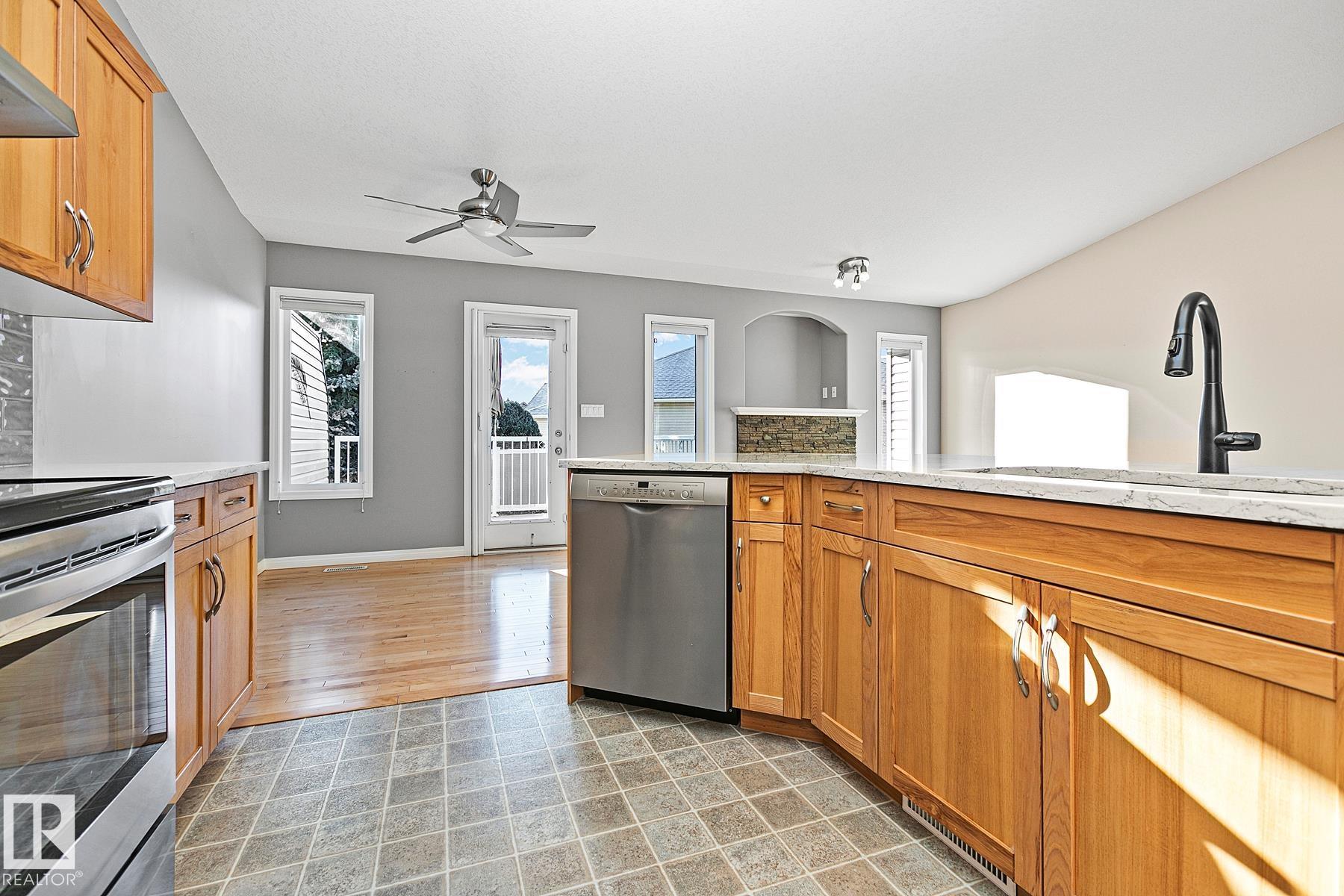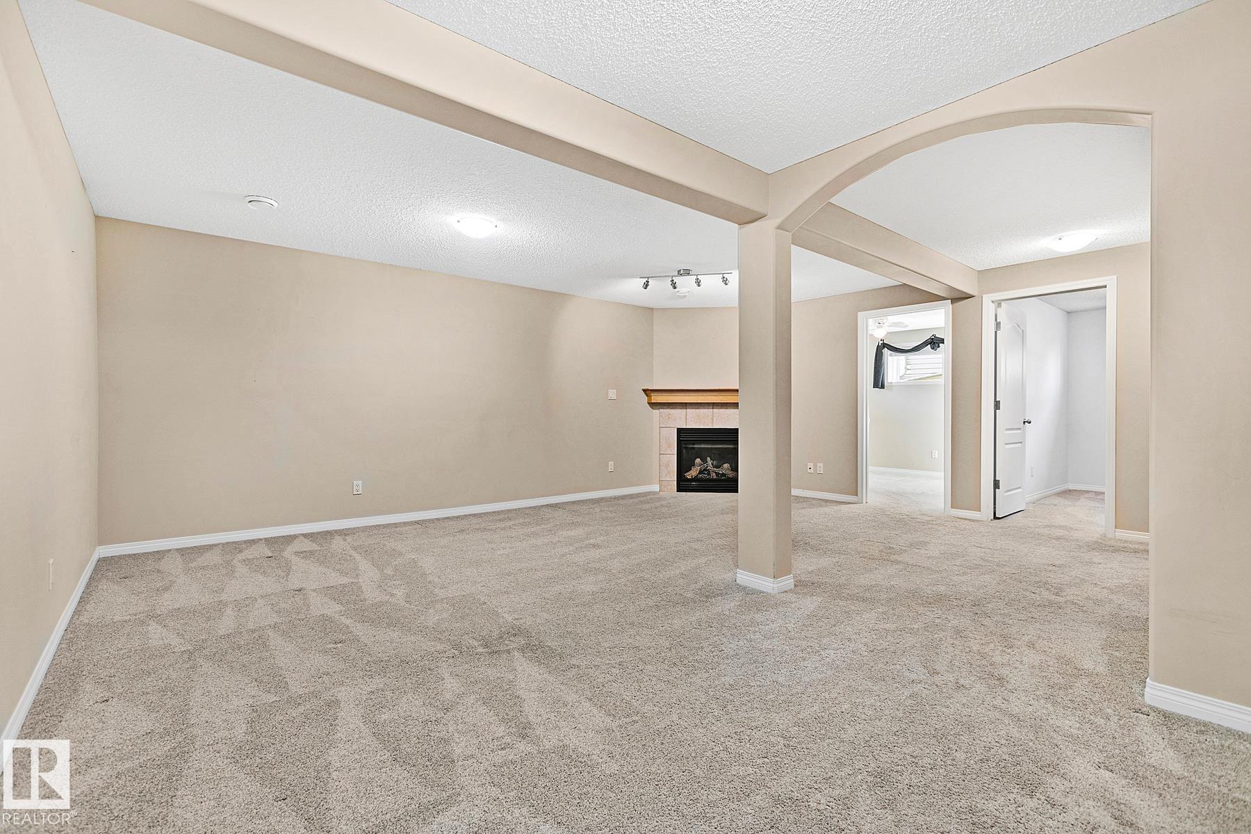 RARE FIND! Executive Adult (45+) living in Charlton Greens. Don't miss out on viewing this well maintained original owner 1,162 sq.ft 1/2 duplex bungalow design. Main floor features include vaulted ceilings & birch hardwood flooring; hickory kitchen cabinets, quartz countertops & glass tiled backsplash, corner pantry, stainless appliances, and an adjoining dinette area; spacious den/ office; 3pc. bath; main floor laundry closet; and primary bedroom w/ laminate flooring, walk-in closet and full 4pc. bath. The fully developed lower level is complete with family room & gas fireplace; 2 additional bedrooms; full 4pc. bath; optional laundry room and an extra storage area. Exterior amenities offer a double attached garage w/ heat & water; maintenance free south exposure deck w/ gas BBQ outlet; lawn & flower bed sprinkler system...and the list goes on. All this is conveniently located in a quiet residential neighbourhood adjacent to Clover Bar Ranch Park, and within a short commute to all local amenities.