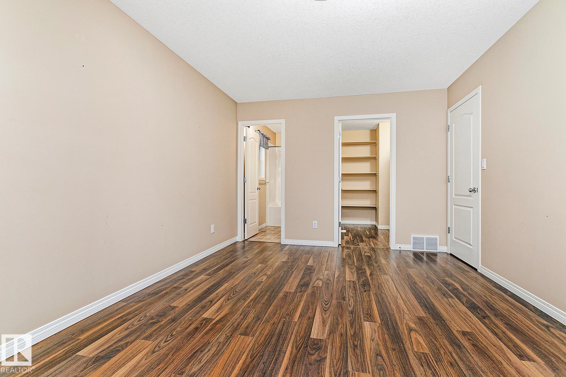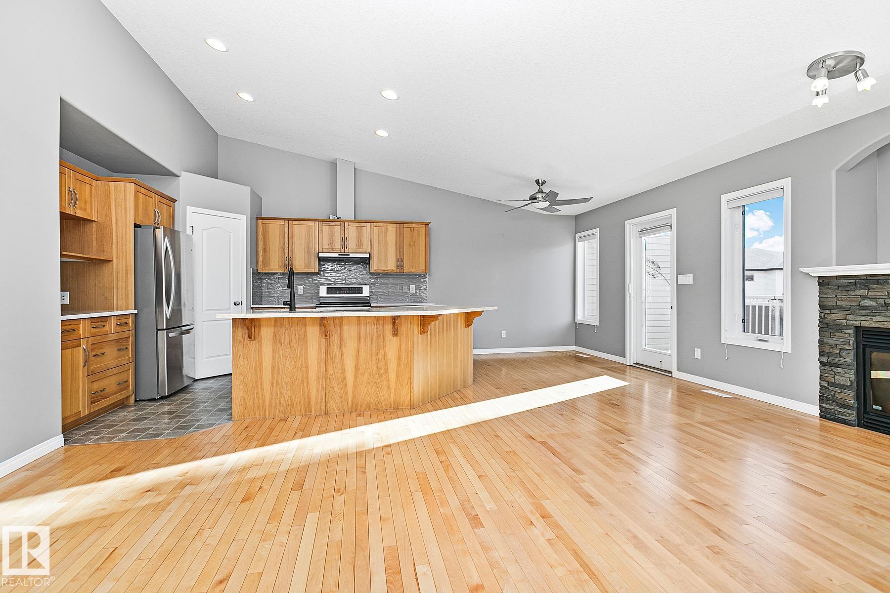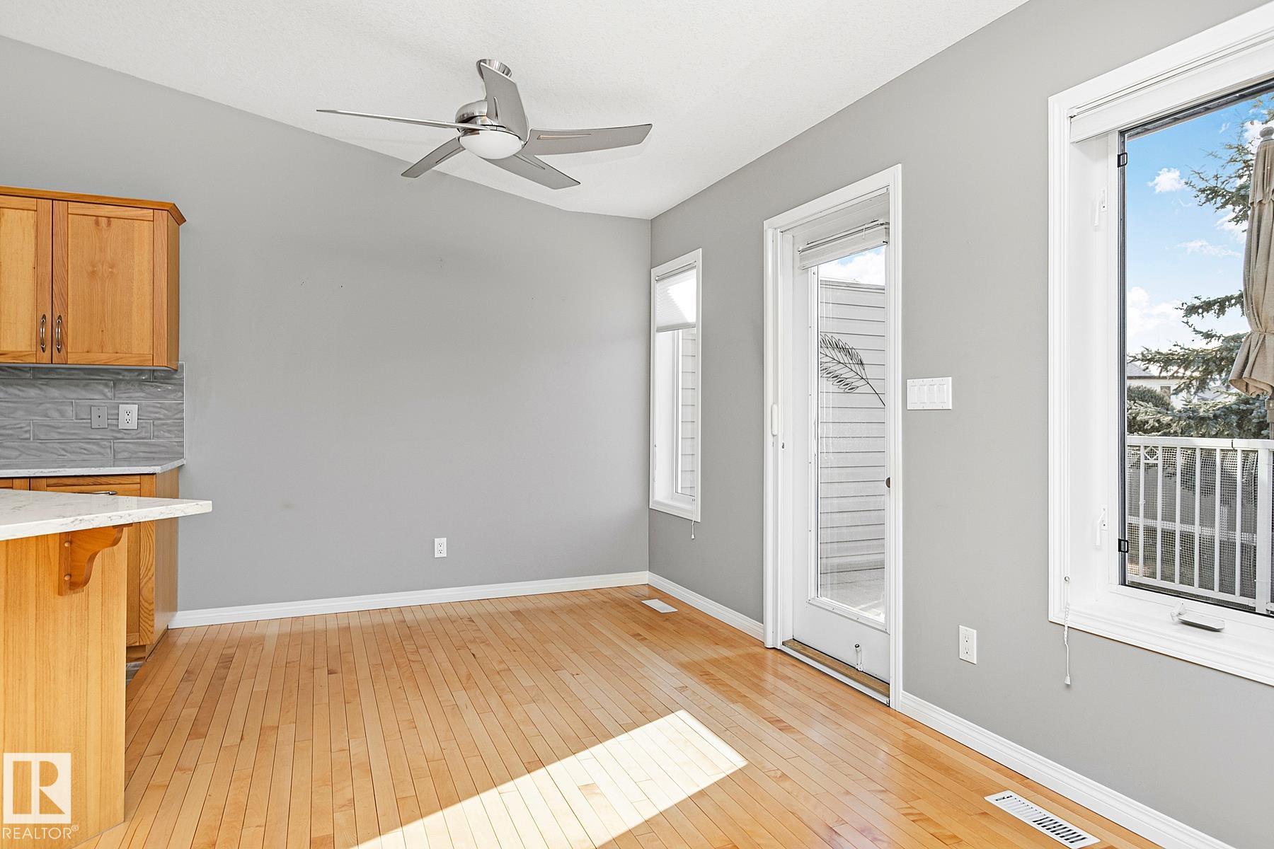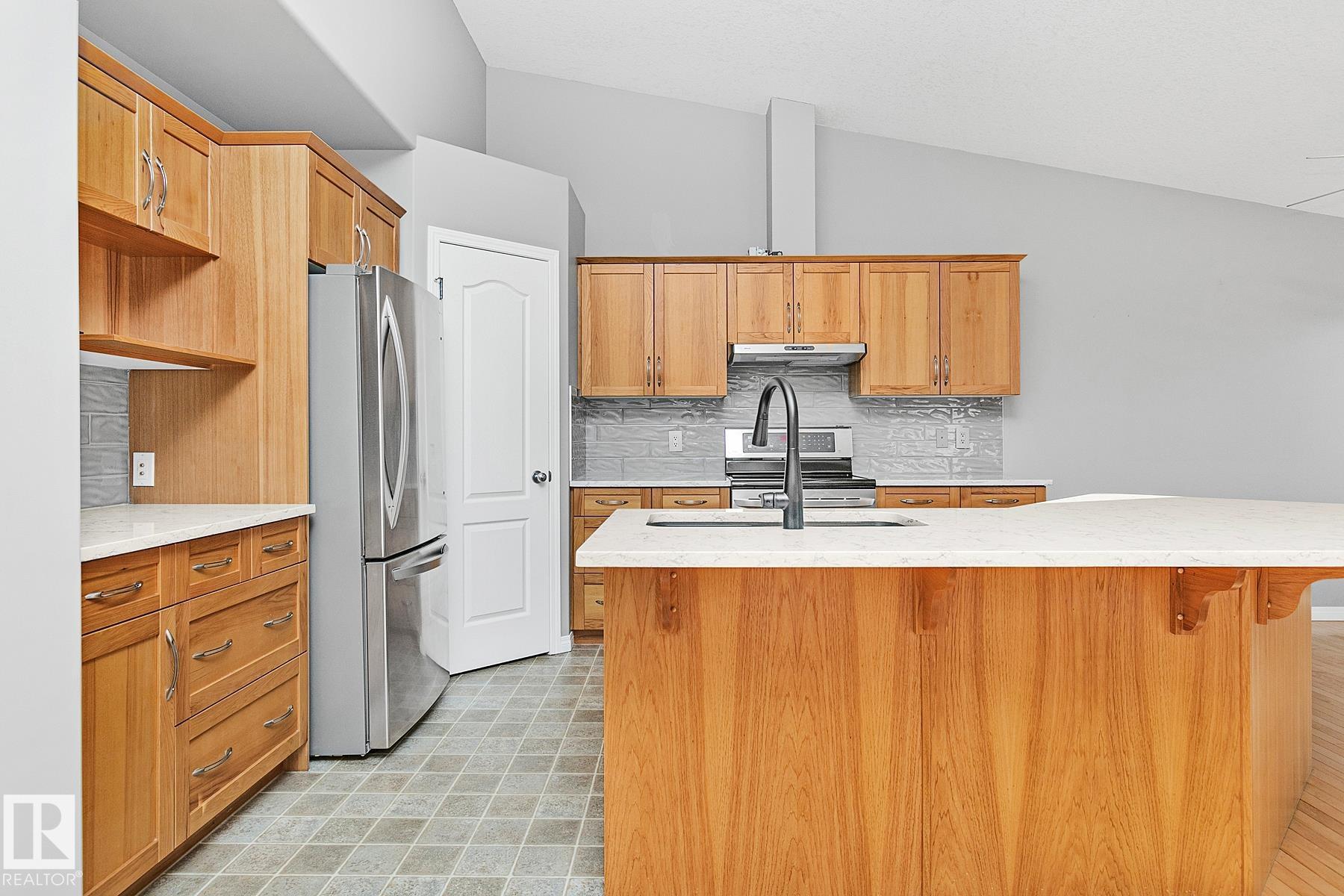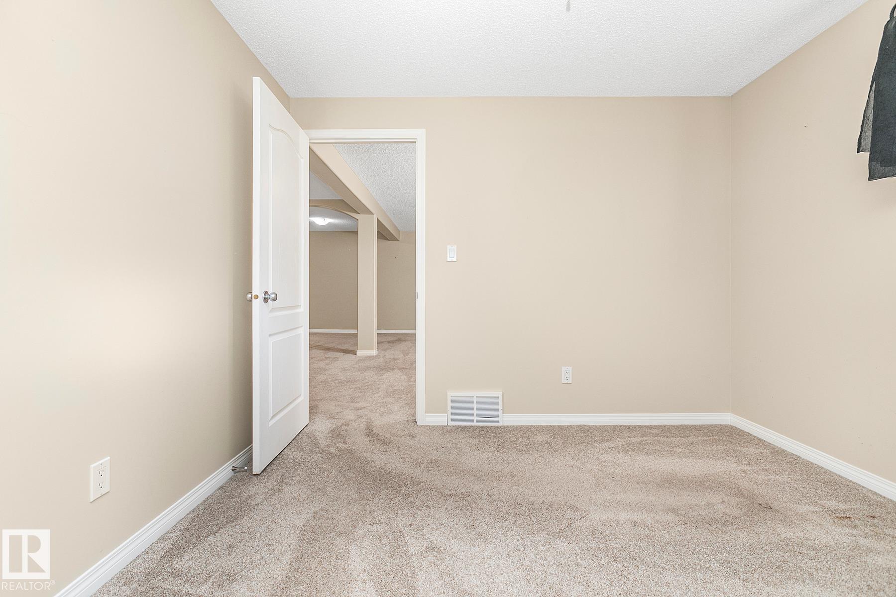 RARE FIND! Executive Adult (45+) living in Charlton Greens. Don't miss out on viewing this well maintained original owner 1,162 sq.ft 1/2 duplex bungalow design. Main floor features include vaulted ceilings & birch hardwood flooring; hickory kitchen cabinets, quartz countertops & glass tiled backsplash, corner pantry, stainless appliances, and an adjoining dinette area; spacious den/ office; 3pc. bath; main floor laundry closet; and primary bedroom w/ laminate flooring, walk-in closet and full 4pc. bath. The fully developed lower level is complete with family room & gas fireplace; 2 additional bedrooms; full 4pc. bath; optional laundry room and an extra storage area. Exterior amenities offer a double attached garage w/ heat & water; maintenance free south exposure deck w/ gas BBQ outlet; lawn & flower bed sprinkler system...and the list goes on. All this is conveniently located in a quiet residential neighbourhood adjacent to Clover Bar Ranch Park, and within a short commute to all local amenities.