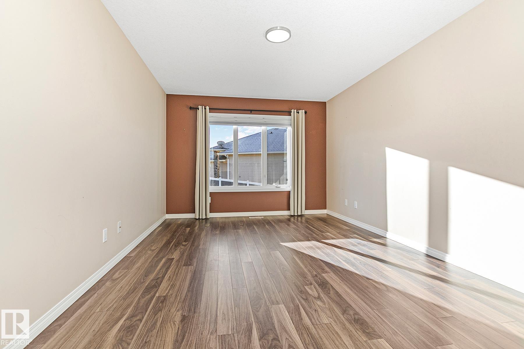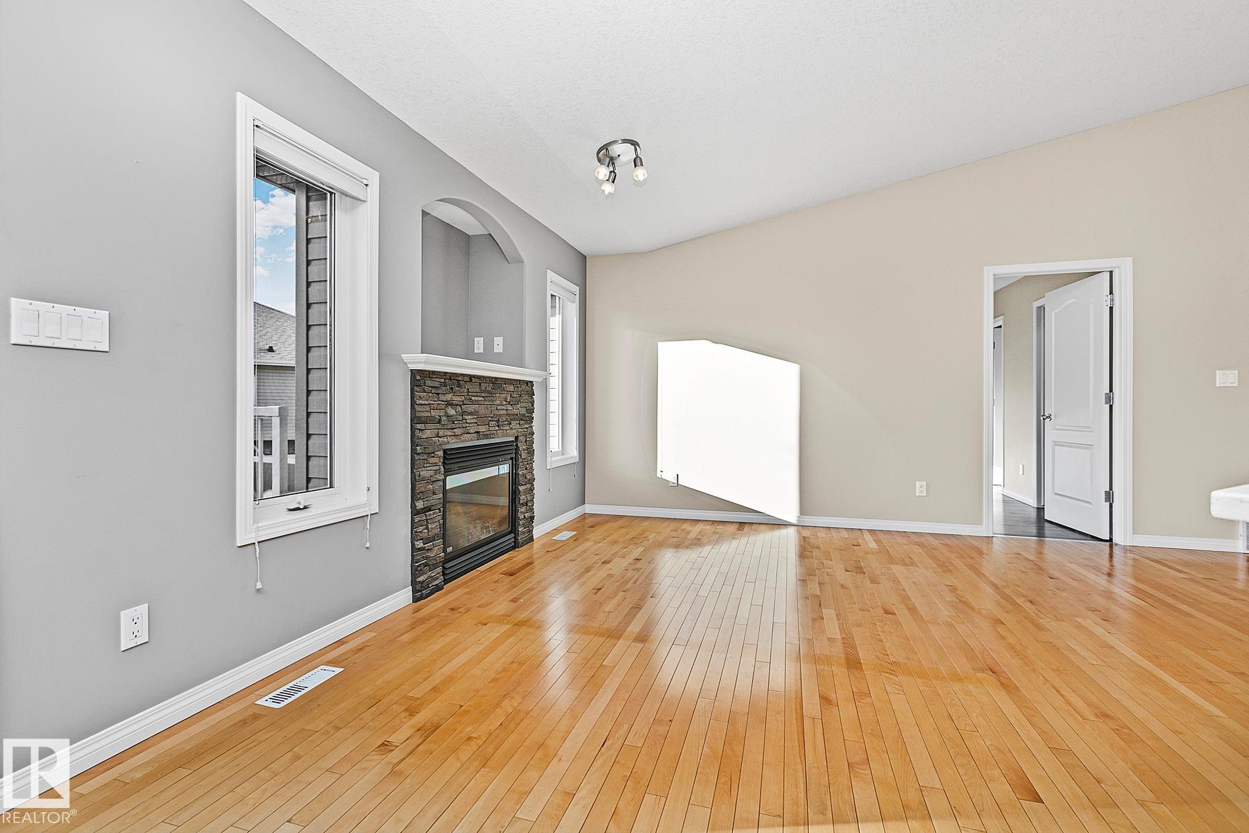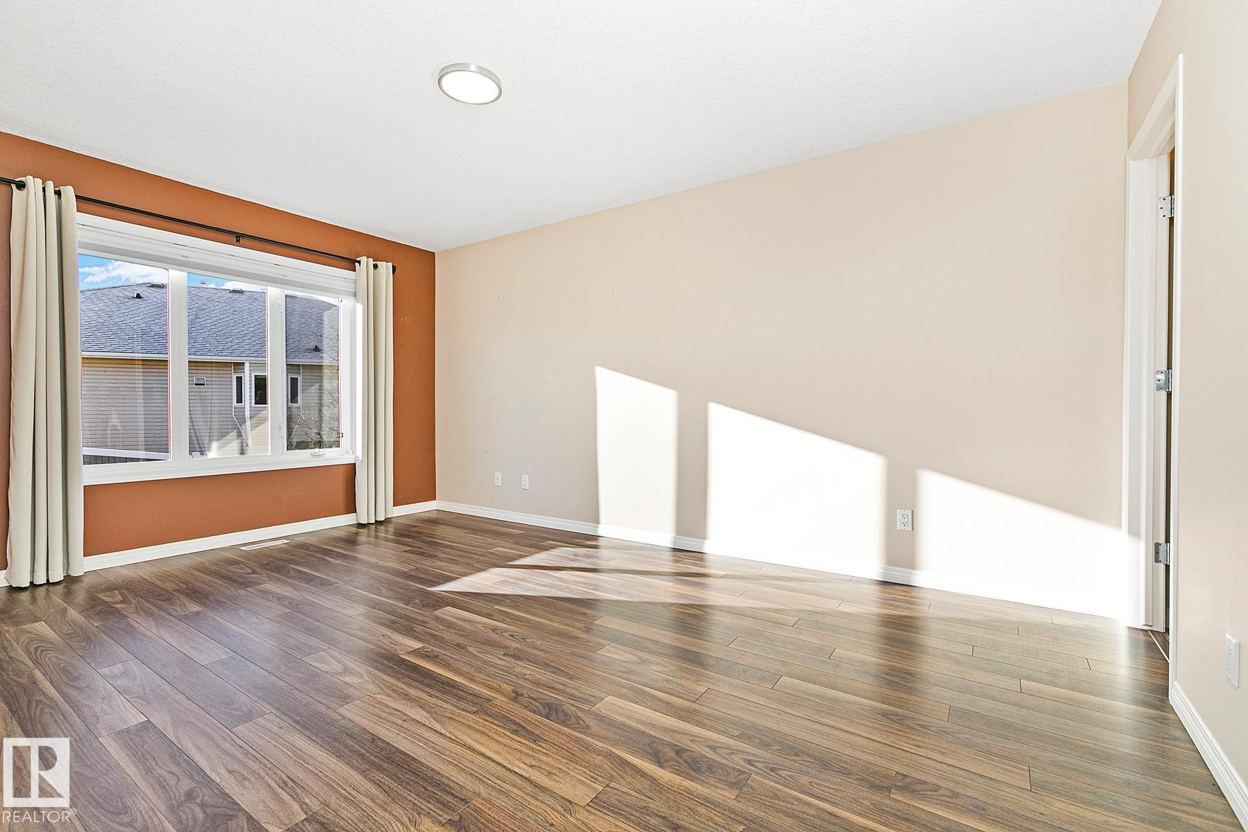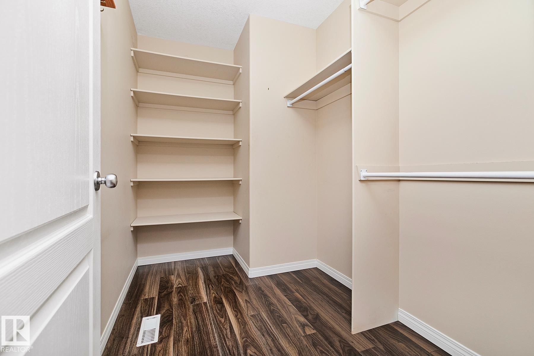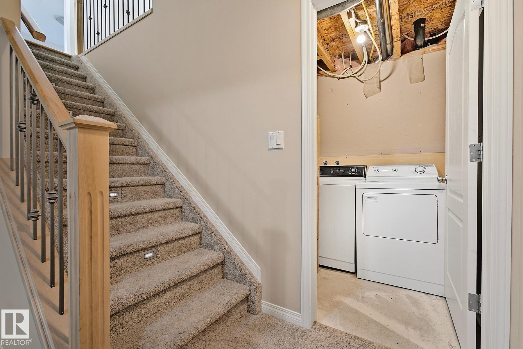 RARE FIND! Executive Adult (45+) living in Charlton Greens. Don't miss out on viewing this well maintained original owner 1,162 sq.ft 1/2 duplex bungalow design. Main floor features include vaulted ceilings & birch hardwood flooring; hickory kitchen cabinets, quartz countertops & glass tiled backsplash, corner pantry, stainless appliances, and an adjoining dinette area; spacious den/ office; 3pc. bath; main floor laundry closet; and primary bedroom w/ laminate flooring, walk-in closet and full 4pc. bath. The fully developed lower level is complete with family room & gas fireplace; 2 additional bedrooms; full 4pc. bath; optional laundry room and an extra storage area. Exterior amenities offer a double attached garage w/ heat & water; maintenance free south exposure deck w/ gas BBQ outlet; lawn & flower bed sprinkler system...and the list goes on. All this is conveniently located in a quiet residential neighbourhood adjacent to Clover Bar Ranch Park, and within a short commute to all local amenities.