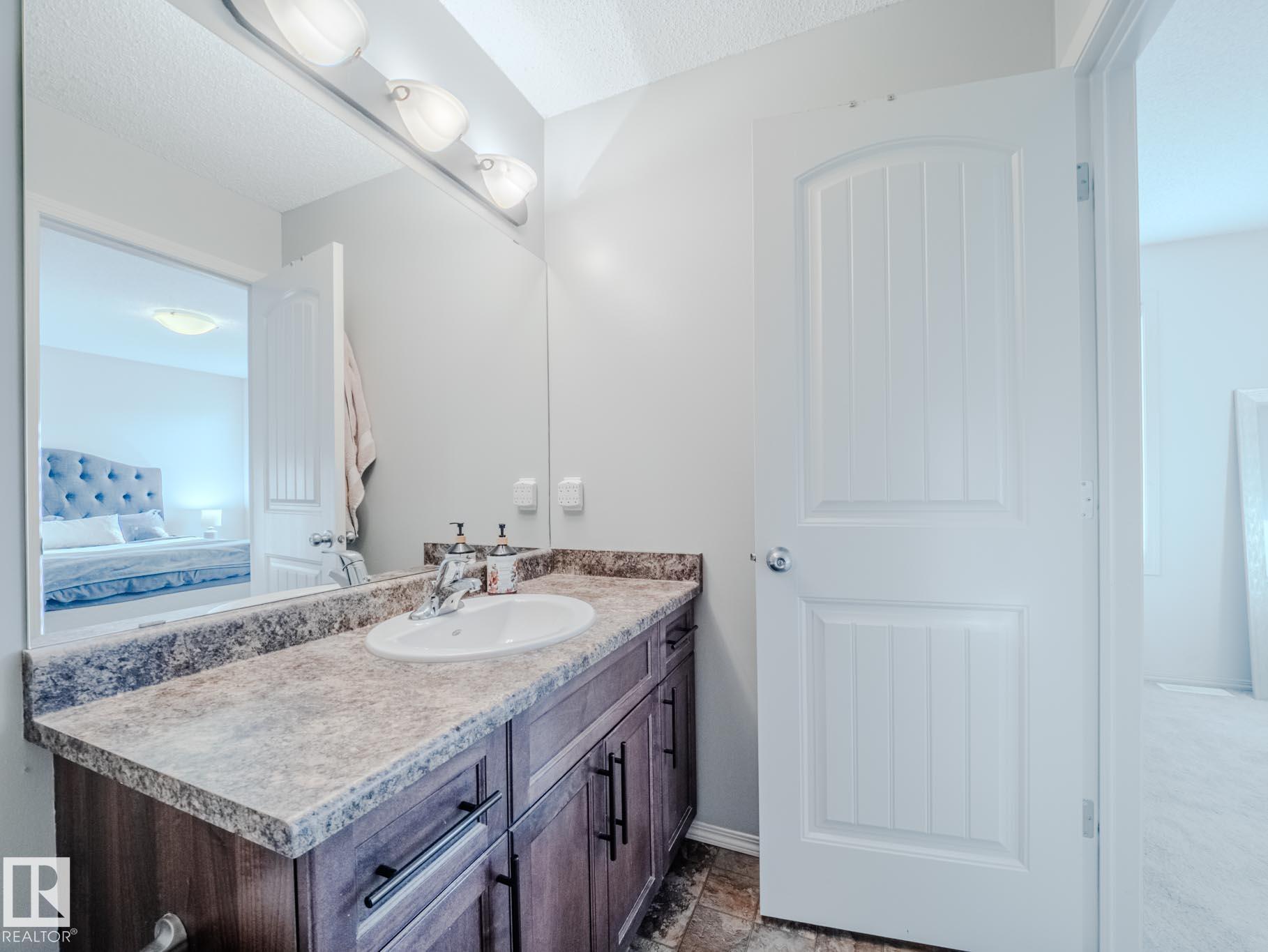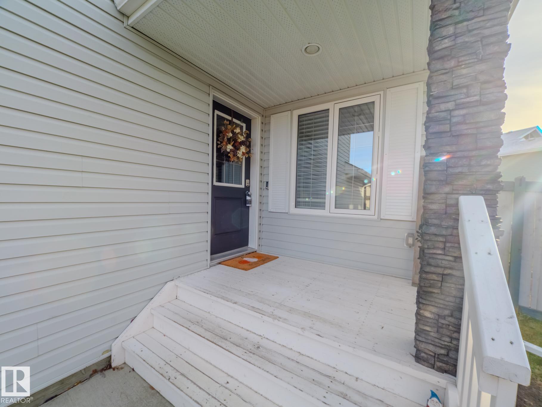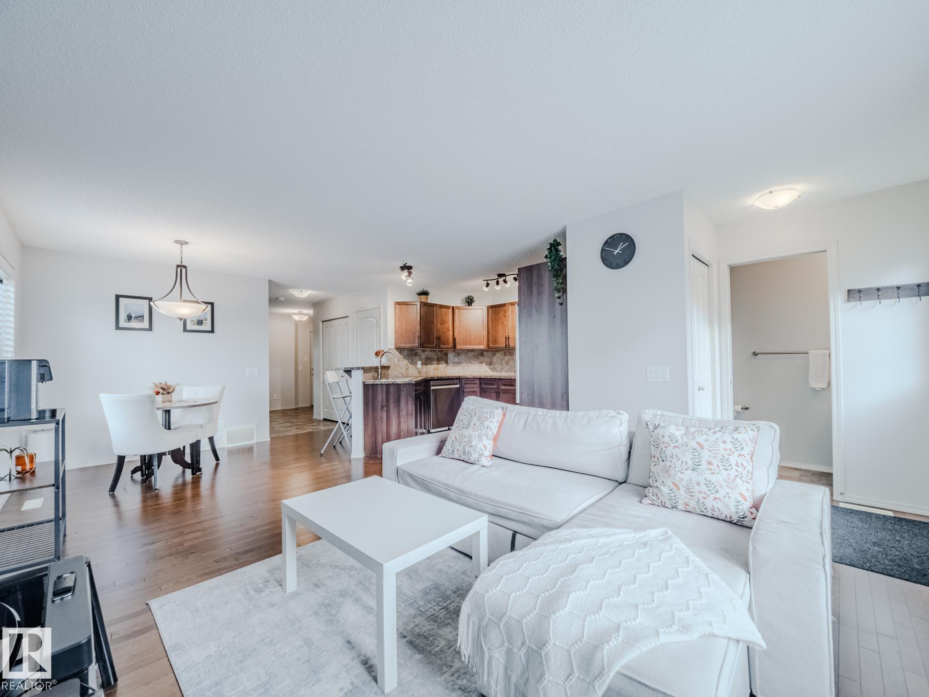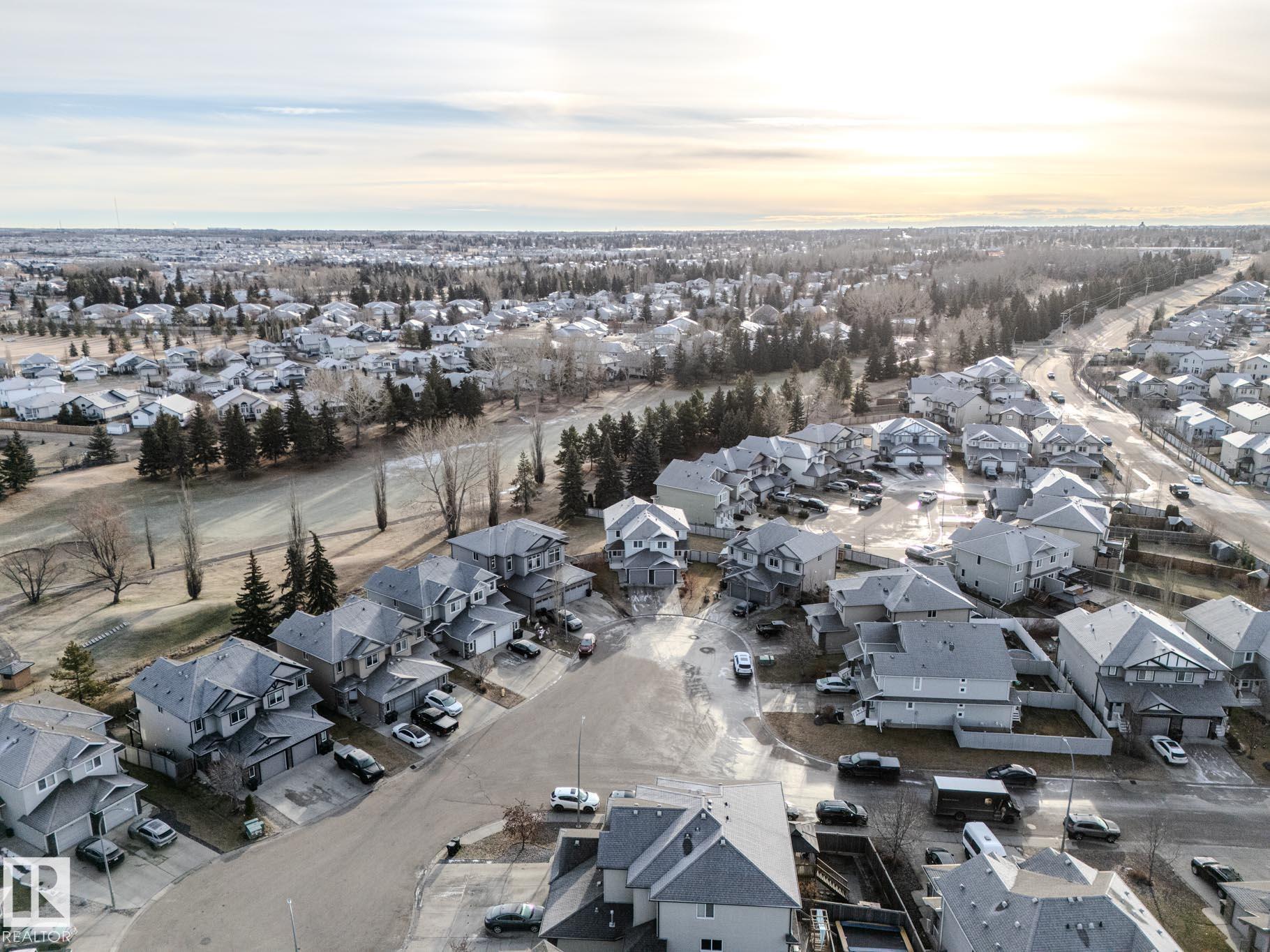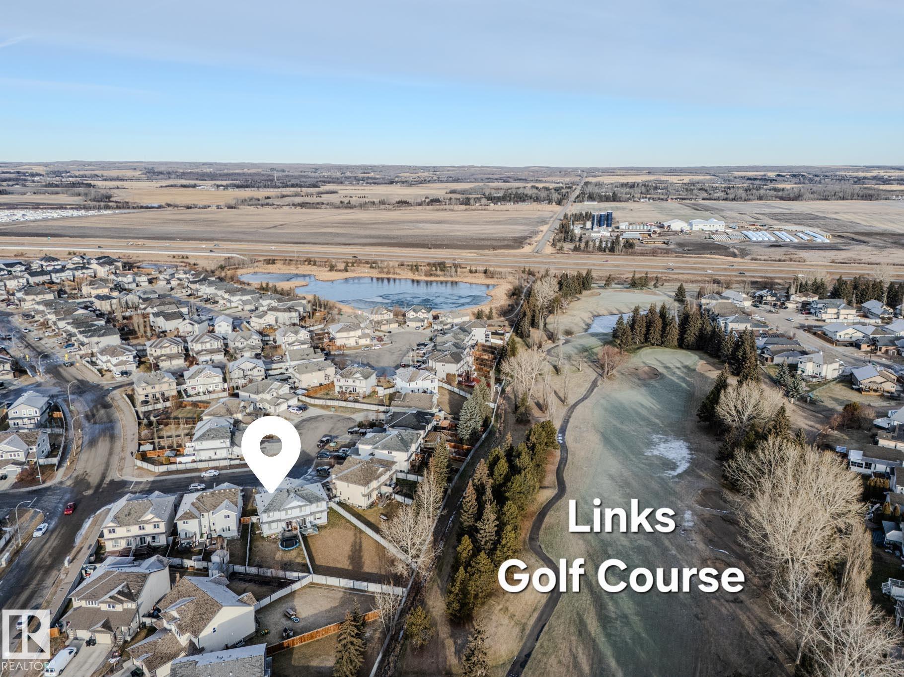 Quick Possession! Nestled on a quiet cul-de-sac in Aspen Glen is this beautiful duplex with over 1500 square feet of living space. Incredibly located on a pie-shaped lot with views of the Links Golf Course. The kitchen has an eat up bar, espresso cabinets, stainless steel appliances & pantry. The bright living room has a large picture window overlooking the massive SE facing backyard. Completing the main floor is a dedicated den and two piece powder room. The upper level features a great size primary bedroom with a walk-in closet and full ensuite. Down the hall are two additional bedrooms, a four piece bathroom & a laundry closet. The unfinished basement has two large windows, providing excellent potential for future development. NEW furnace. Single garage, 21.5' X 11', with shelving and an extra long driveway. The fully fenced backyard has a deck and stone patio with firepit. Situated steps from the Links Golf Course, a man-made lake, parks, walking trails, a large playground, and an outdoor hockey rink.
