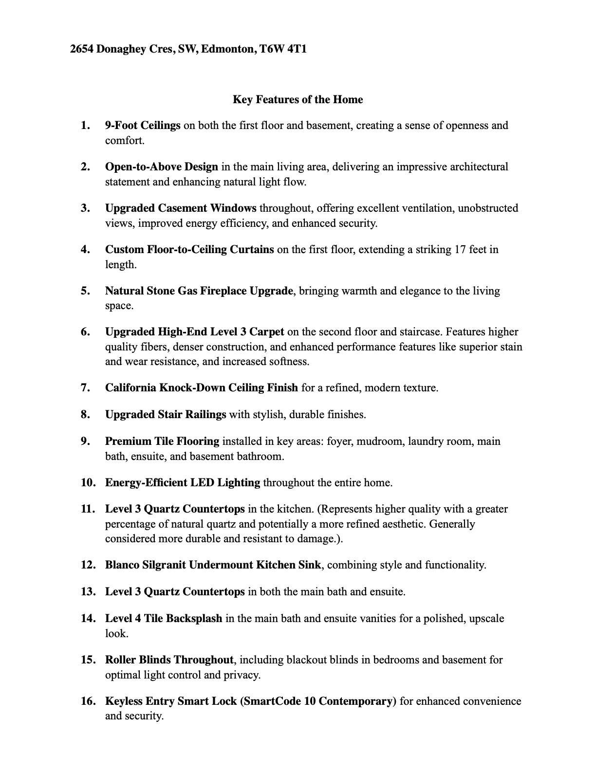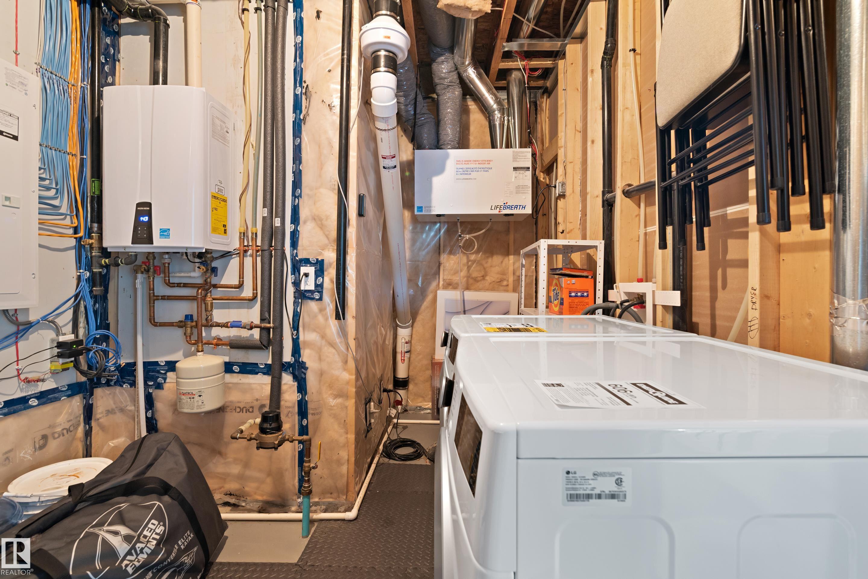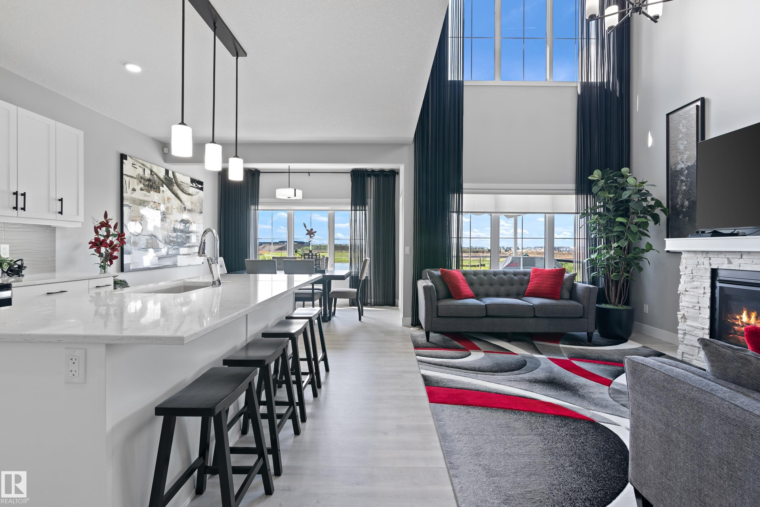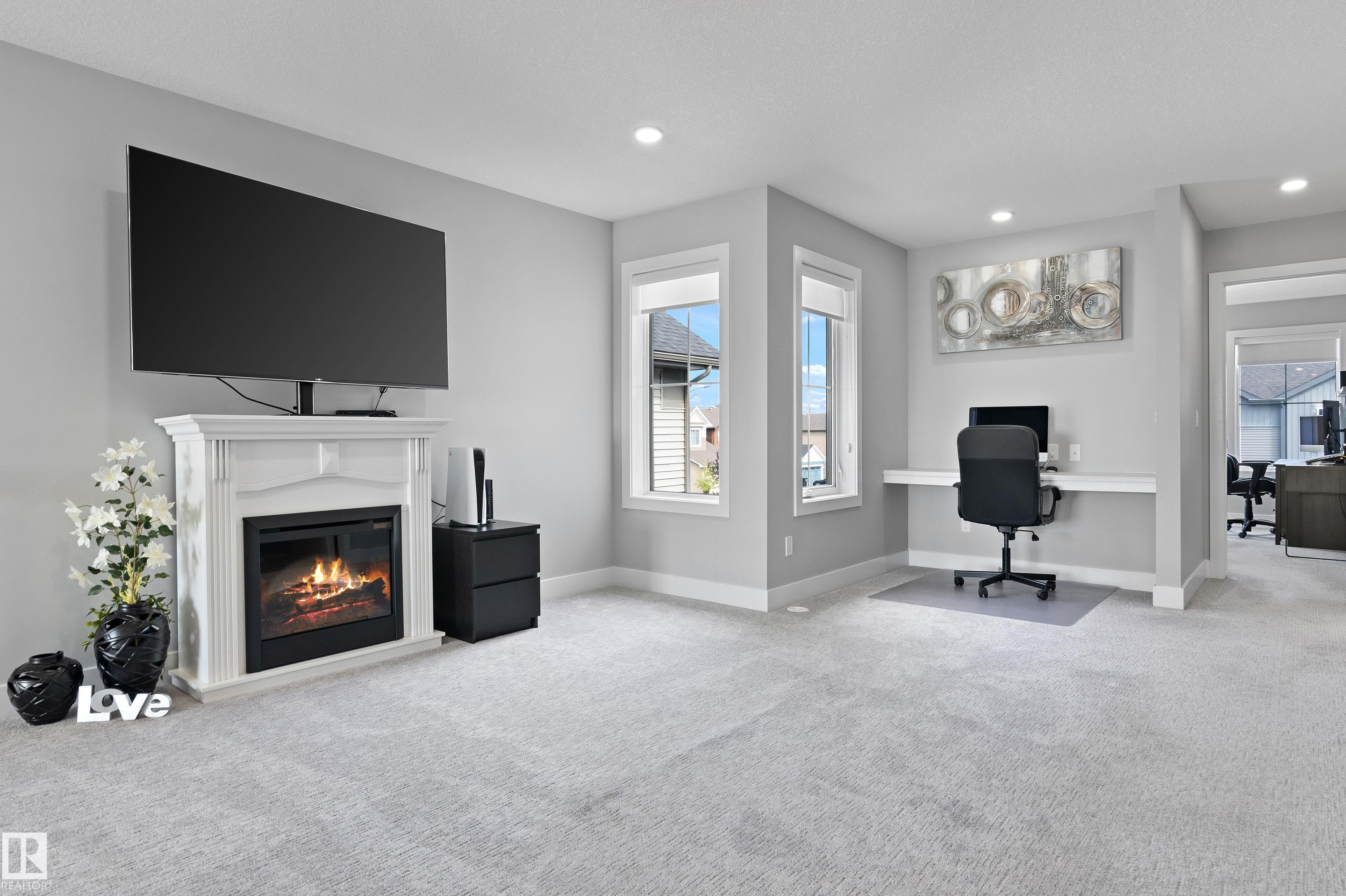 Ready to move in! Amazing pond view modern and super clean home in the heart of Desrochers community. This Landmark Home is thoughtfully designed to offer a blend of style, comfort, and practicality. Upon entrance you will find, spacious foyer, den,2PC bath and a mud room. Contemporary kitchen is complemented by beautiful countertops, large island, SS appliances, and a pantry. Dining area with access to balcony to savor the picturesque pond views. The open-to-above living room with large windows, fills the home with natural light and modern gas fireplace provides comfort. The stairwell leads you upstairs to a spacious bonus room with a study built in desk, laundry, 2 good size bedrooms and 4PC bath. The primary bedroom boasts a luxurious 5PC ensuite and walk-in closet. The WALKOUT finished basement offers 9" ceiling,4PC bath, den, gym, rec room. Second laundry in the basement. Security and Sun control glass tinting coating on windows & subfloor insulation panels. Central AC.