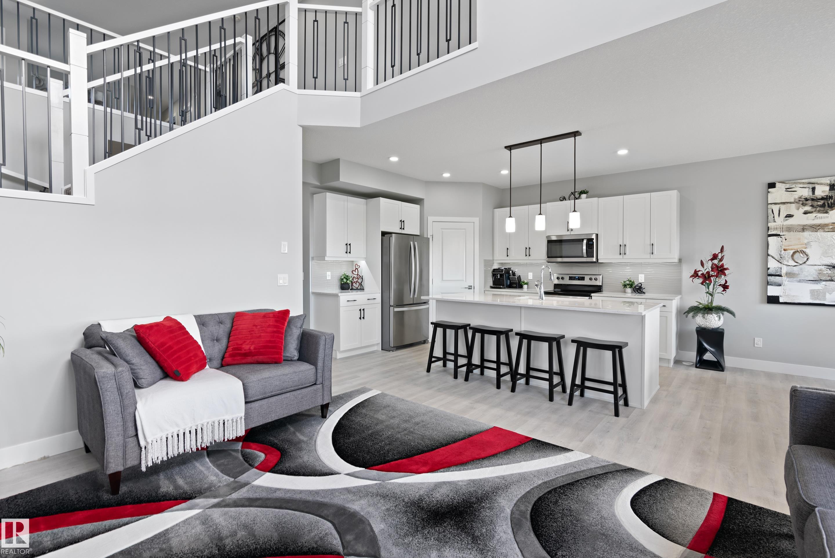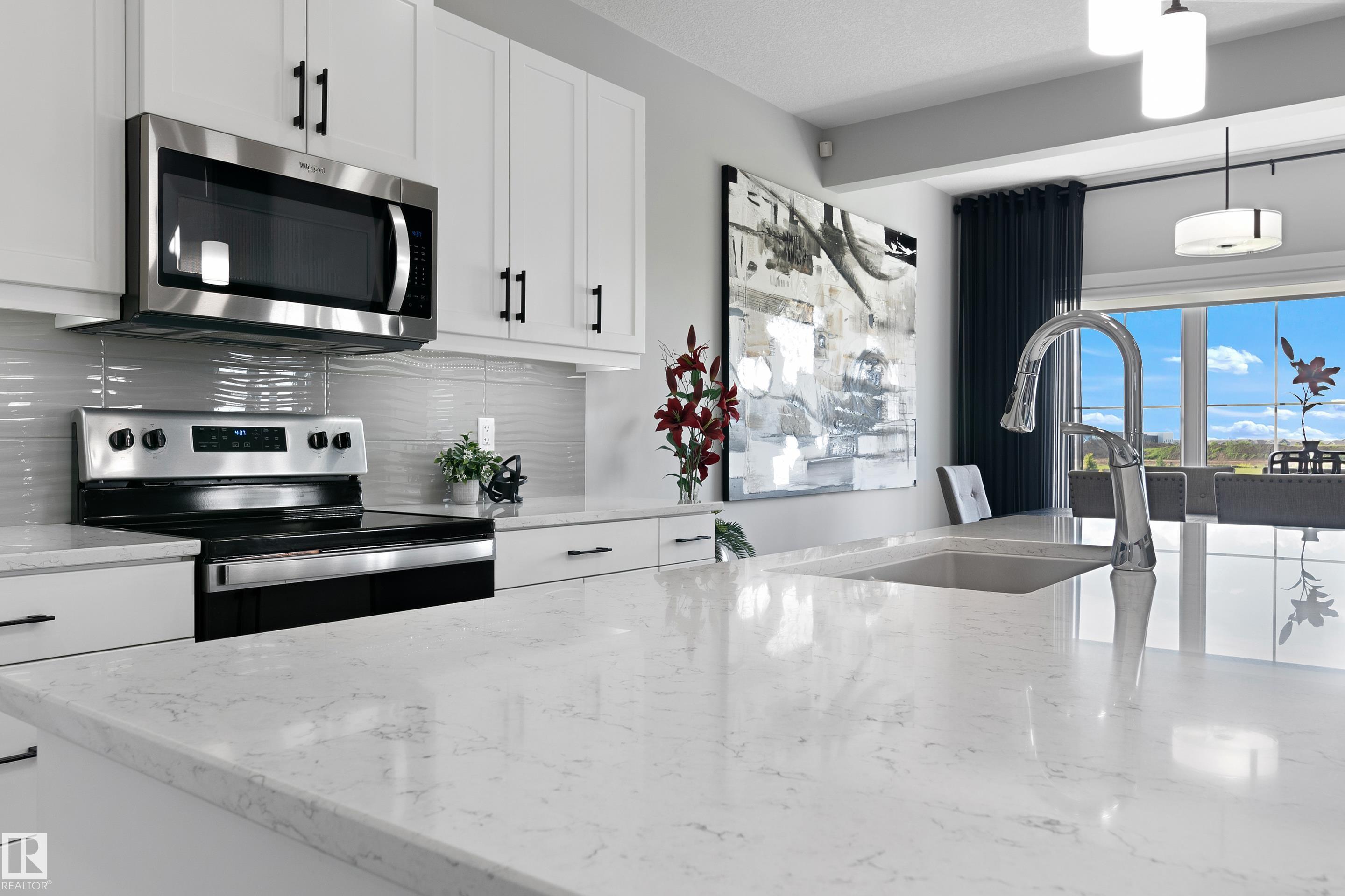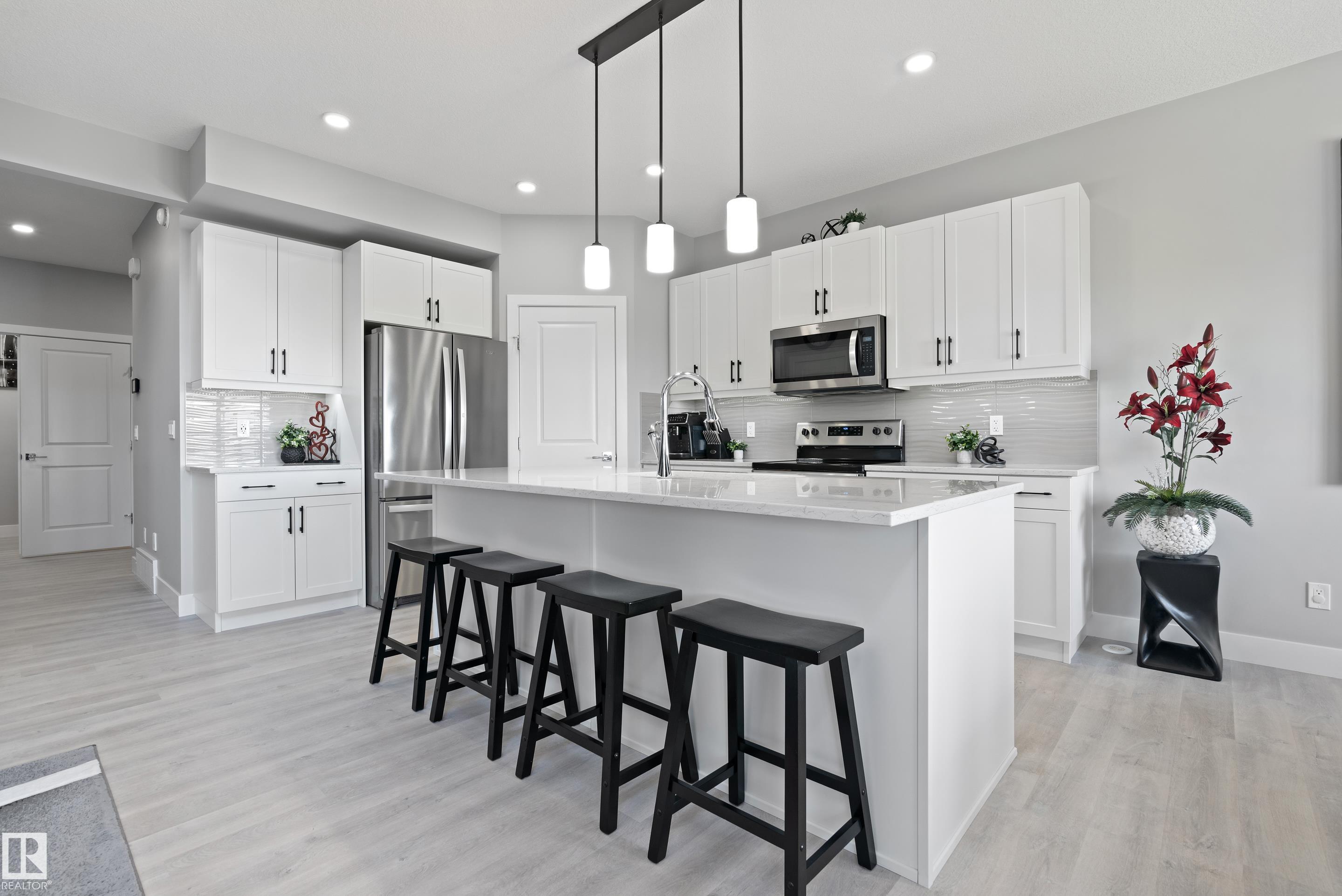 Ready to move in! Amazing pond view modern and super clean home in the heart of Desrochers community. This Landmark Home is thoughtfully designed to offer a blend of style, comfort, and practicality. Upon entrance you will find, spacious foyer, den,2PC bath and a mud room. Contemporary kitchen is complemented by beautiful countertops, large island, SS appliances, and a pantry. Dining area with access to balcony to savor the picturesque pond views. The open-to-above living room with large windows, fills the home with natural light and modern gas fireplace provides comfort. The stairwell leads you upstairs to a spacious bonus room with a study built in desk, laundry, 2 good size bedrooms and 4PC bath. The primary bedroom boasts a luxurious 5PC ensuite and walk-in closet. The WALKOUT finished basement offers 9" ceiling,4PC bath, den, gym, rec room. Second laundry in the basement. Security and Sun control glass tinting coating on windows & subfloor insulation panels. Central AC.