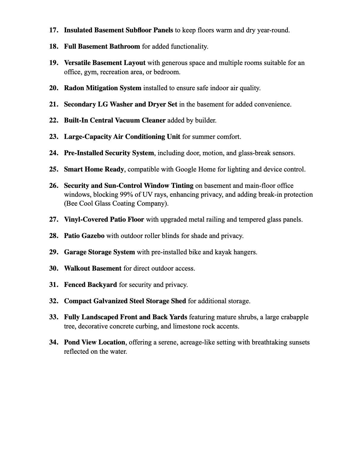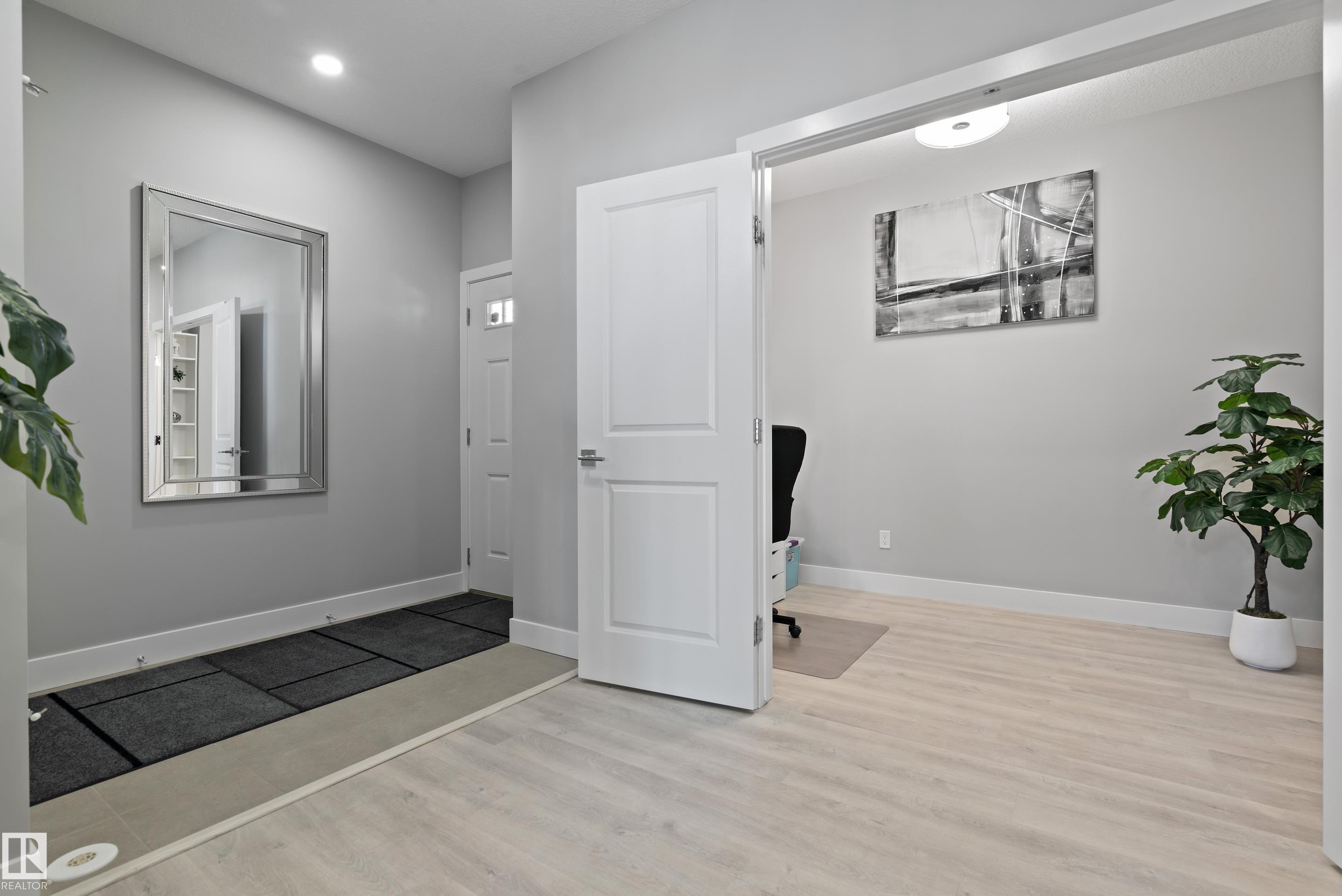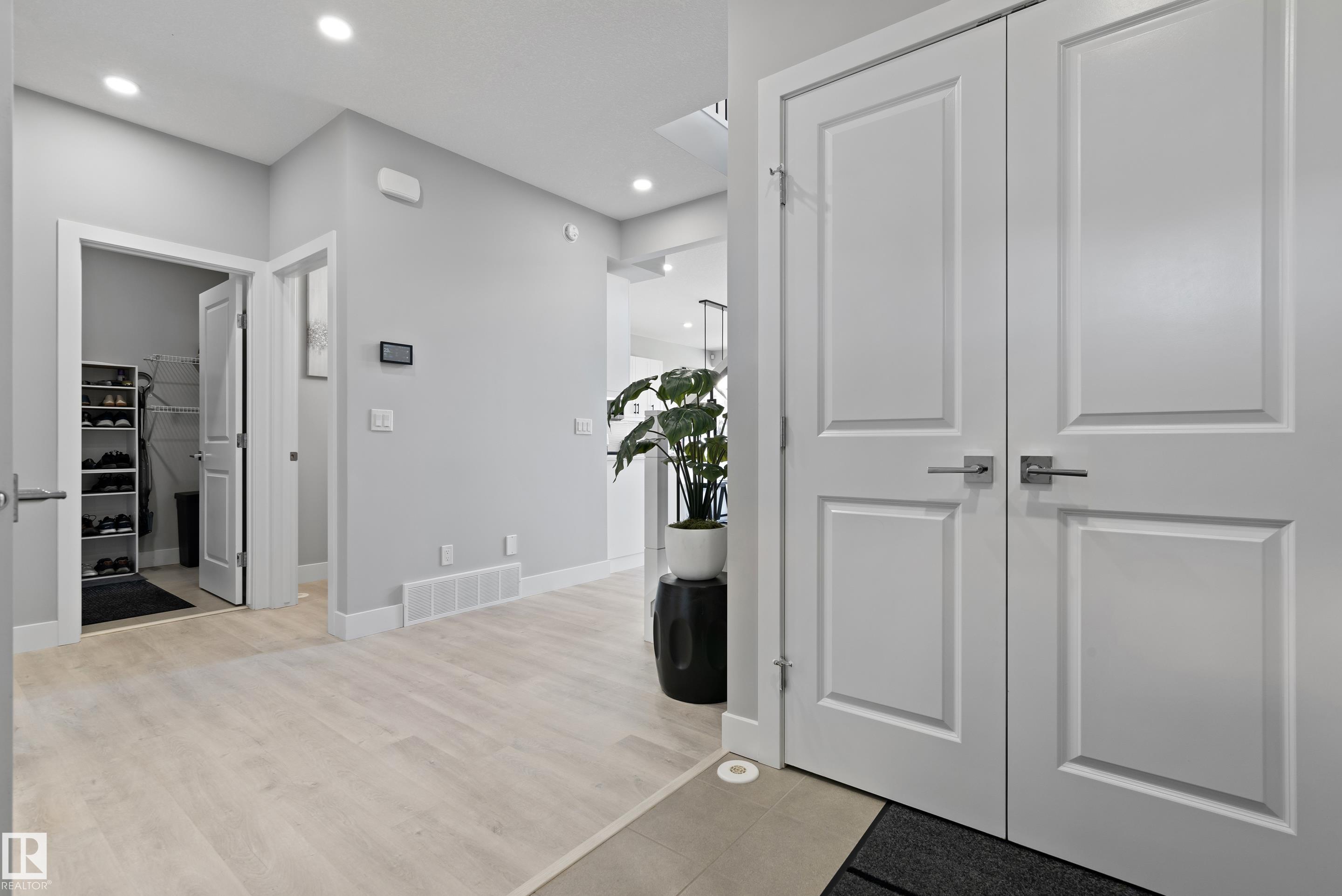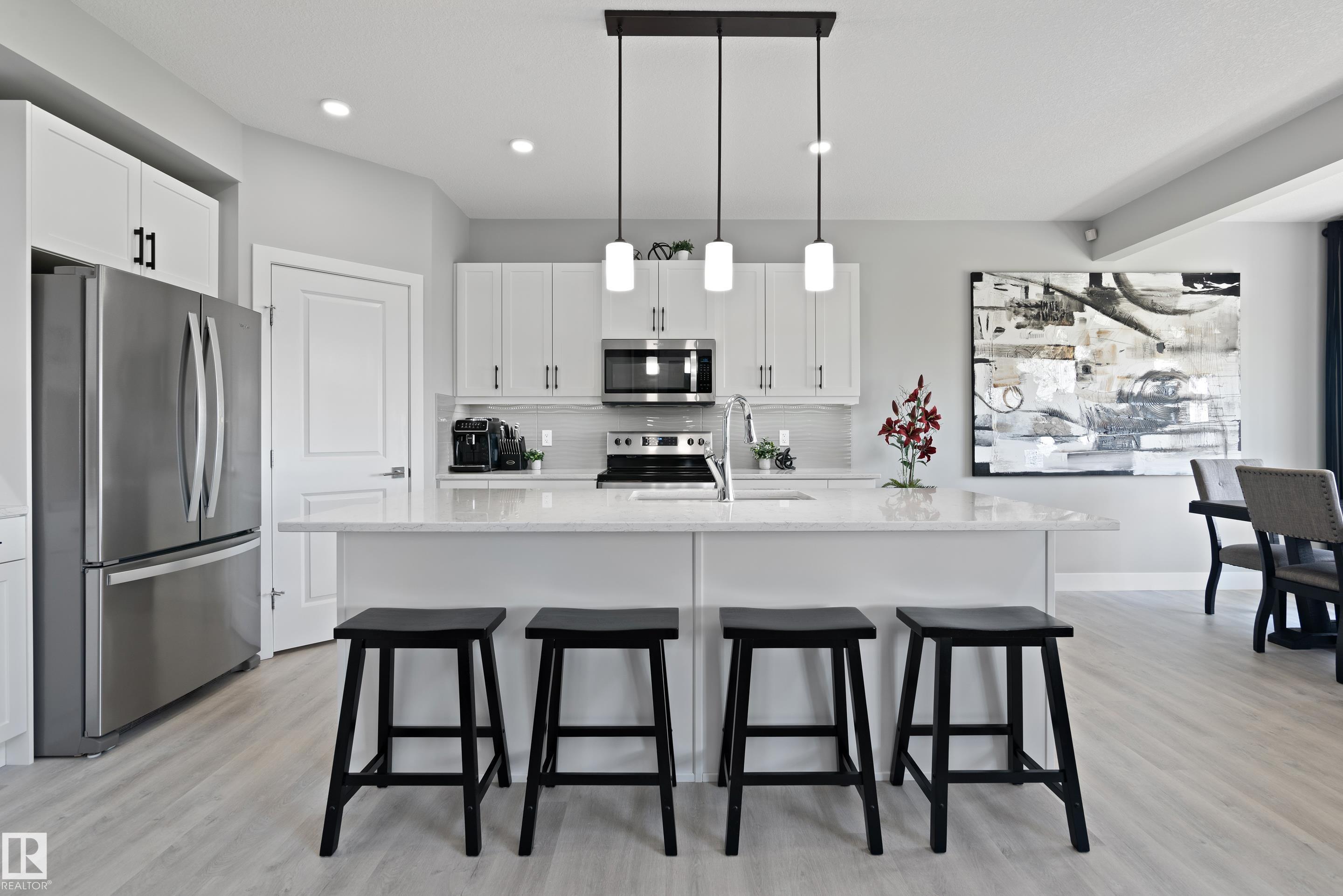 Ready to move in! Amazing pond view modern and super clean home in the heart of Desrochers community. This Landmark Home is thoughtfully designed to offer a blend of style, comfort, and practicality. Upon entrance you will find, spacious foyer, den,2PC bath and a mud room. Contemporary kitchen is complemented by beautiful countertops, large island, SS appliances, and a pantry. Dining area with access to balcony to savor the picturesque pond views. The open-to-above living room with large windows, fills the home with natural light and modern gas fireplace provides comfort. The stairwell leads you upstairs to a spacious bonus room with a study built in desk, laundry, 2 good size bedrooms and 4PC bath. The primary bedroom boasts a luxurious 5PC ensuite and walk-in closet. The WALKOUT finished basement offers 9" ceiling,4PC bath, den, gym, rec room. Second laundry in the basement. Security and Sun control glass tinting coating on windows & subfloor insulation panels. Central AC.