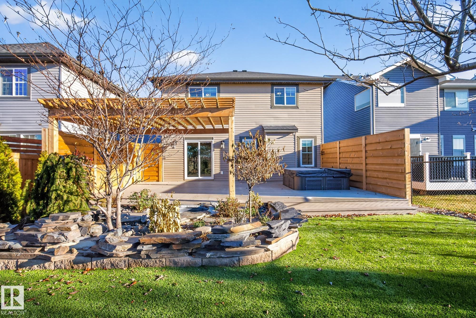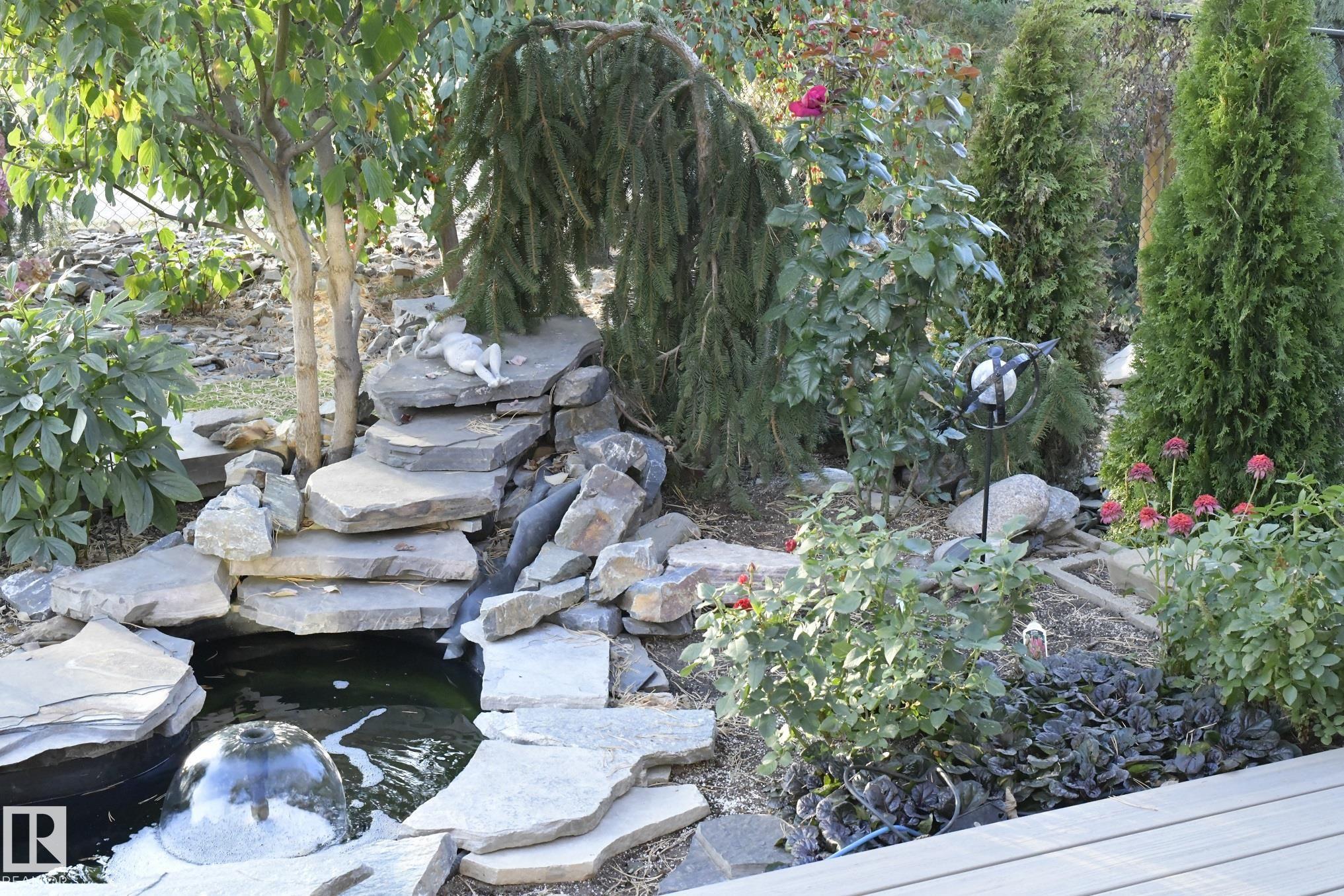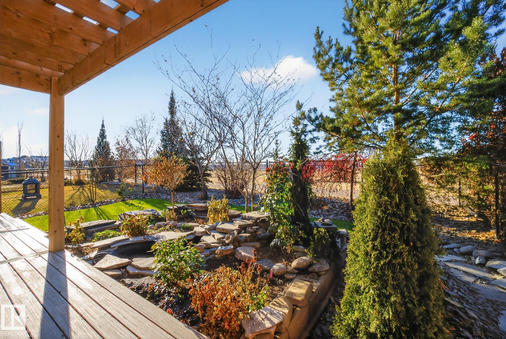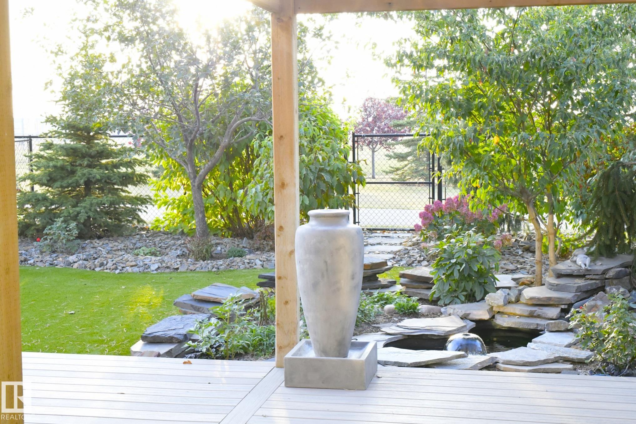Welcome to your 3-bed, 3-bath home sitting on a quiet Emerald Hills street that offers a rare blend of privacy, comfort, and lifestyle. Backing directly onto pristine park space with walking trails, it features stunning views from every window and a bright, well-designed floor plan with fresh paint throughout. Over $40K in new landscaping has transformed the yard into a low-maintenance outdoor oasis with a tranquil pond and waterfall, turf lawn, custom pergola, a huge PVC deck with privacy fencing on both sides, and a hot tub perfectly positioned to enjoy the scenery. Major upgrades include 50-year shingles (2025), new high efficiency furnace (2024), A/C, R/O, garage heater, hot water on demand (2021), and programmable permanent lighting. Enjoy the cozy gas fireplace plus large bonus room all this in a move-in ready well maintained package. This home is just minutes from schools, hospital, shopping, restaurants, and easy highway access. A combination of quality, convenience and peaceful family living.