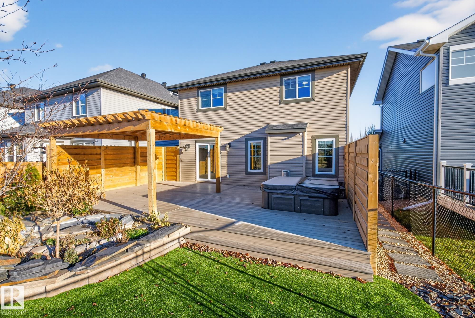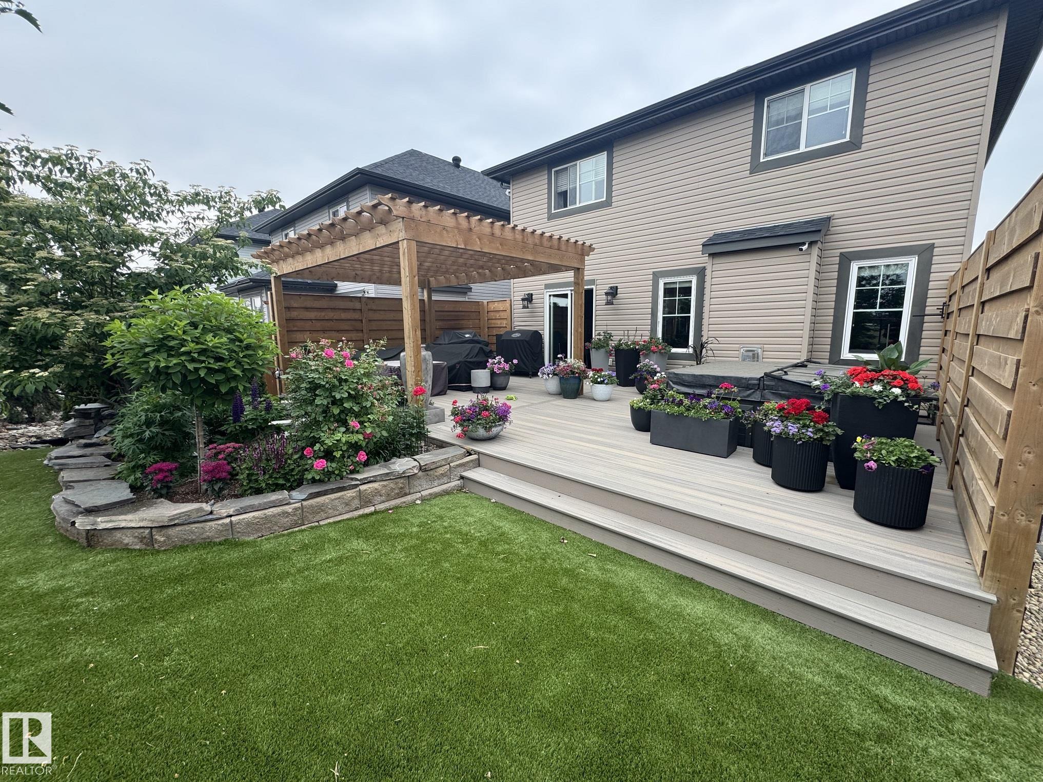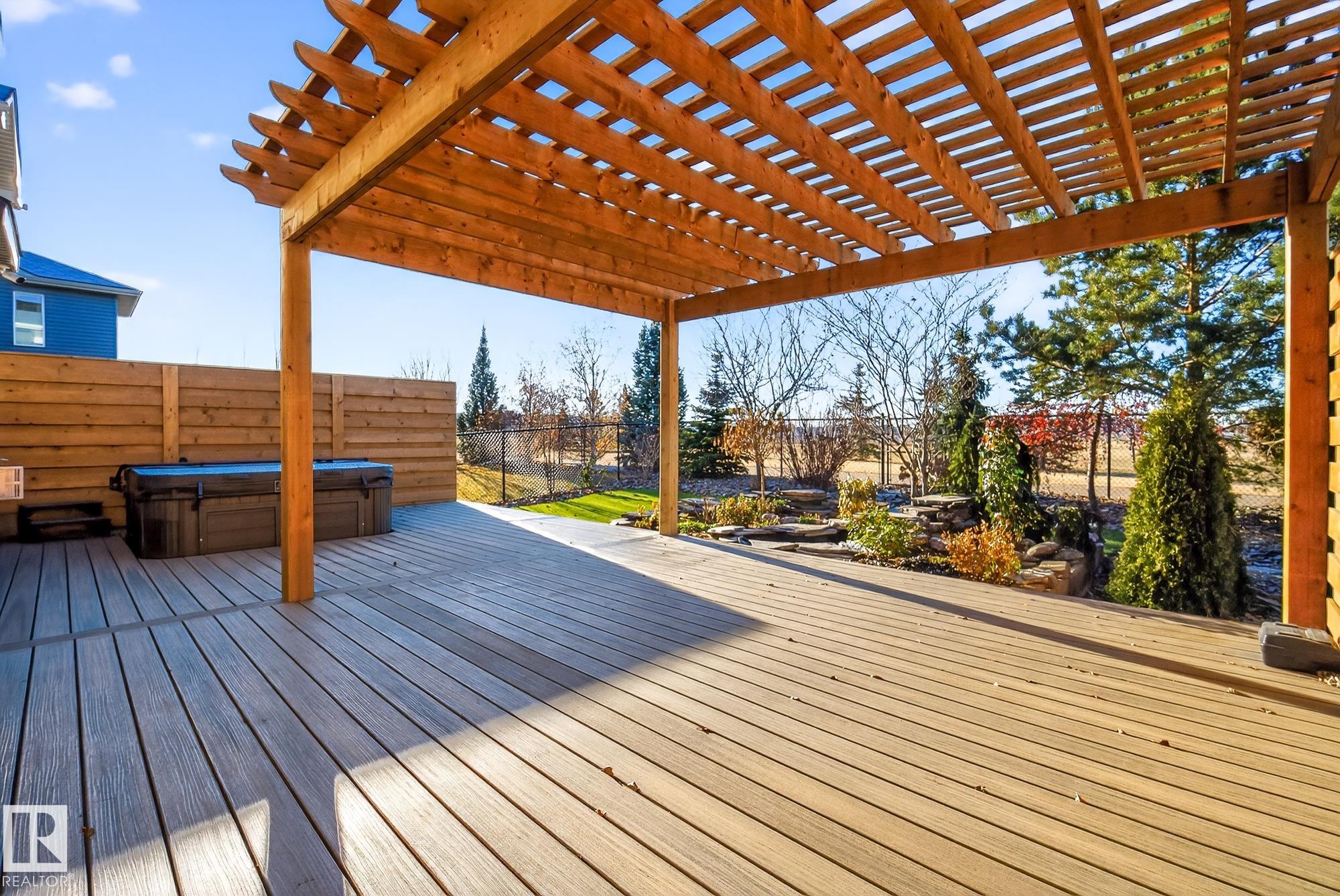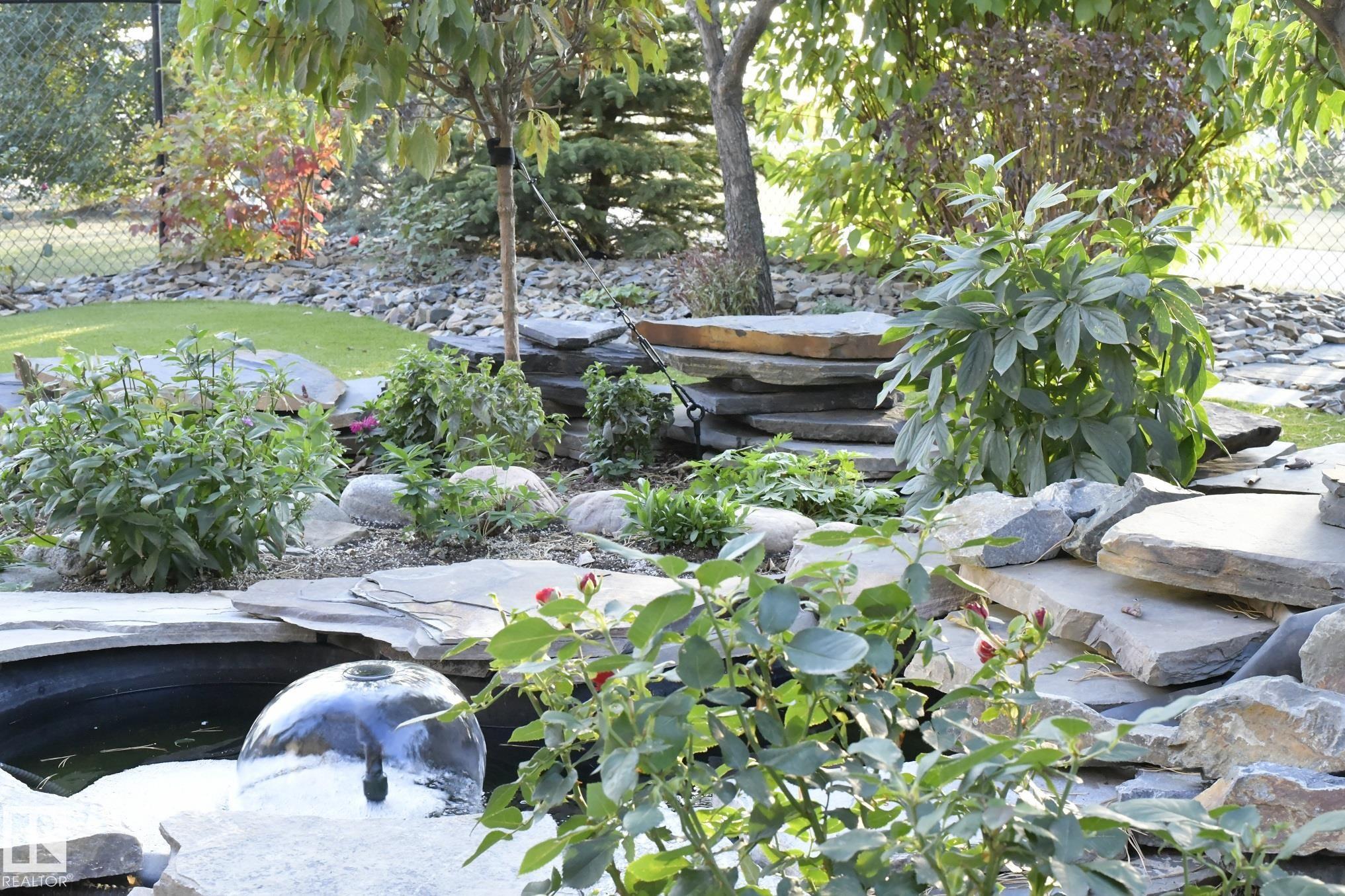 Welcome to your 3-bed, 3-bath home sitting on a quiet Emerald Hills street that offers a rare blend of privacy, comfort, and lifestyle. Backing directly onto pristine park space with walking trails, it features stunning views from every window and a bright, well-designed floor plan with fresh paint throughout. Over $40K in new landscaping has transformed the yard into a low-maintenance outdoor oasis with a tranquil pond and waterfall, turf lawn, custom pergola, a huge PVC deck with privacy fencing on both sides, and a hot tub perfectly positioned to enjoy the scenery. Major upgrades include 50-year shingles (2025), new high efficiency furnace (2024), A/C, R/O, garage heater, hot water on demand (2021), and programmable permanent lighting. Enjoy the cozy gas fireplace plus large bonus room all this in a move-in ready well maintained package. This home is just minutes from schools, hospital, shopping, restaurants, and easy highway access. A combination of quality, convenience and peaceful family living.