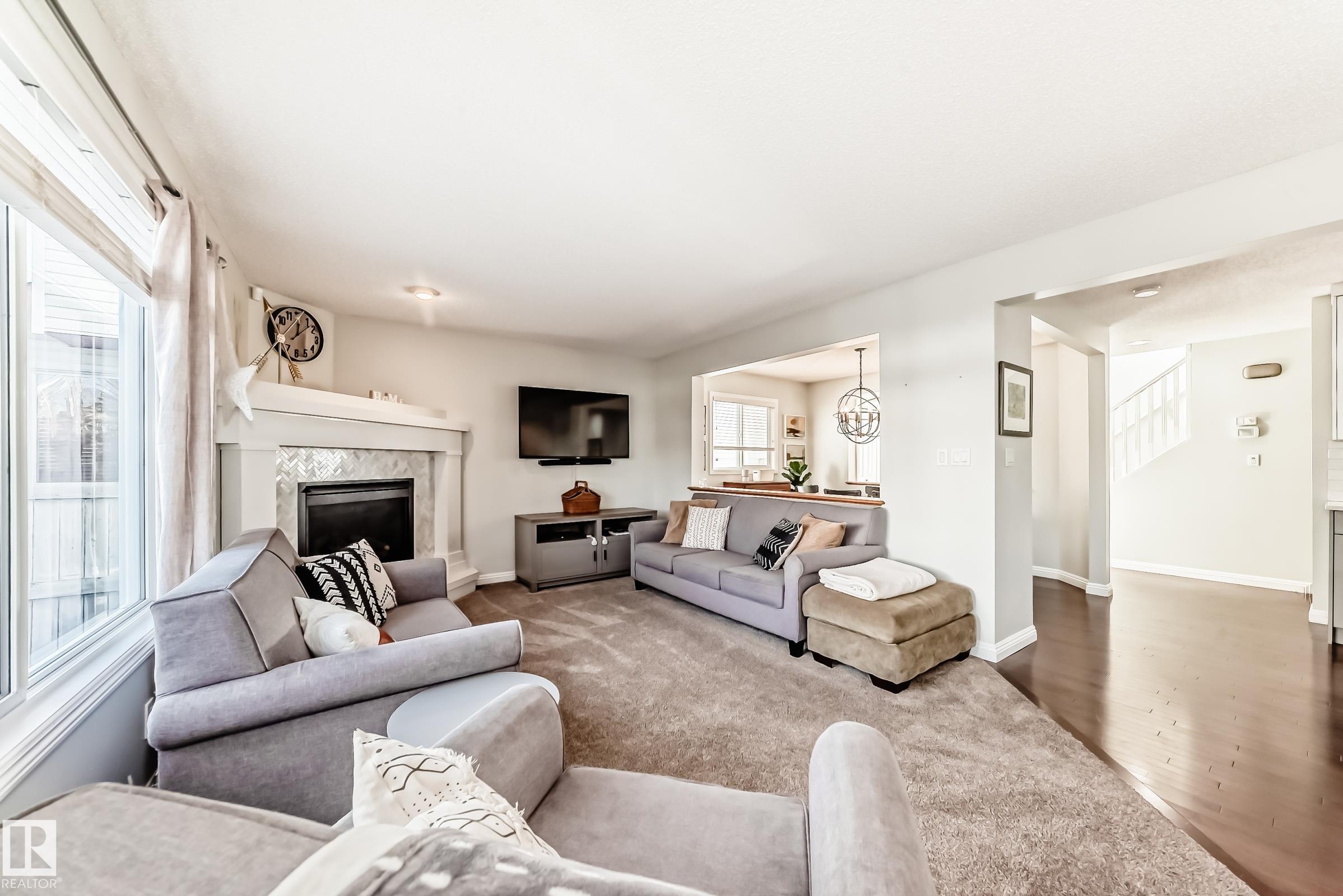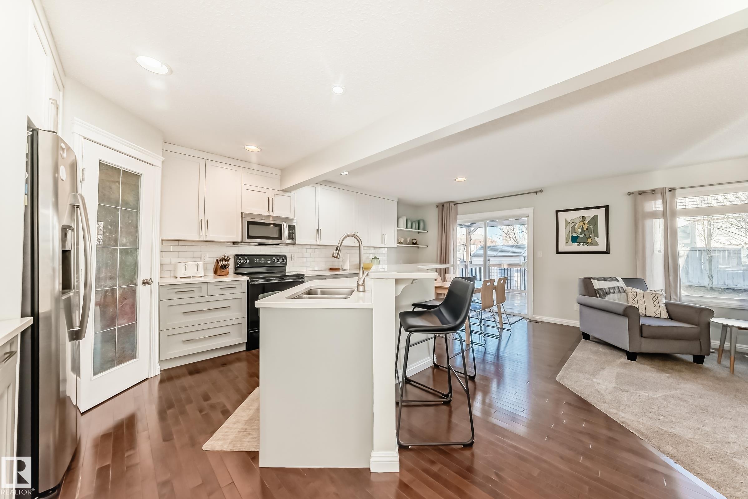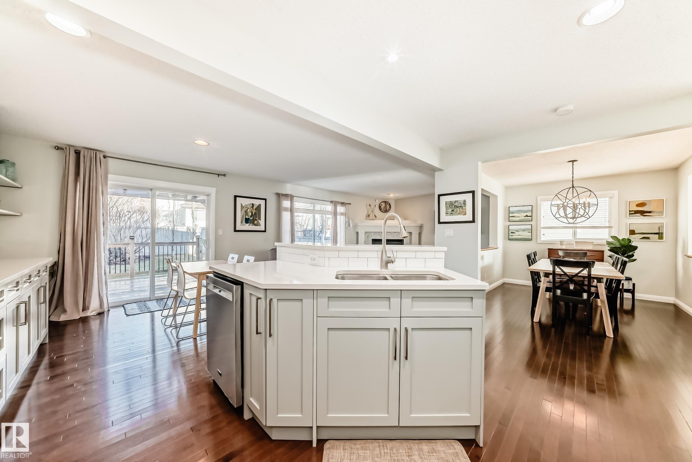 Welcome to this immaculate 5-bedroom family home in The Hamptons, close to schools (Walking distance to k-9 schools), shopping, and all amenities. The main floor greets you with a spacious front entry with plenty of storage, leading to a formal dining area and a well-designed kitchen. It features beautiful two-toned white and grey cabinetry, quartz countertops, corner pantry, and a functional island overlooking the inviting living room, highlighted by a chic herringbone marble-tile fireplace. Sliding doors open to the beautiful deck and backyard. A handy 2-pc bath completes the main level. Upstairs offers an expansive bonus room filled with natural light, a laundry room, and three bedrooms, including a lovely primary retreat with a walk-in closet and a spa-like 5-pc ensuite with double sinks, a soaker tub, and a separate shower. The finished basement adds a family room, two additional bedrooms, and a modern full bath with heated tile flooring. Situated across from a scenic pond, walking trails, and parks.