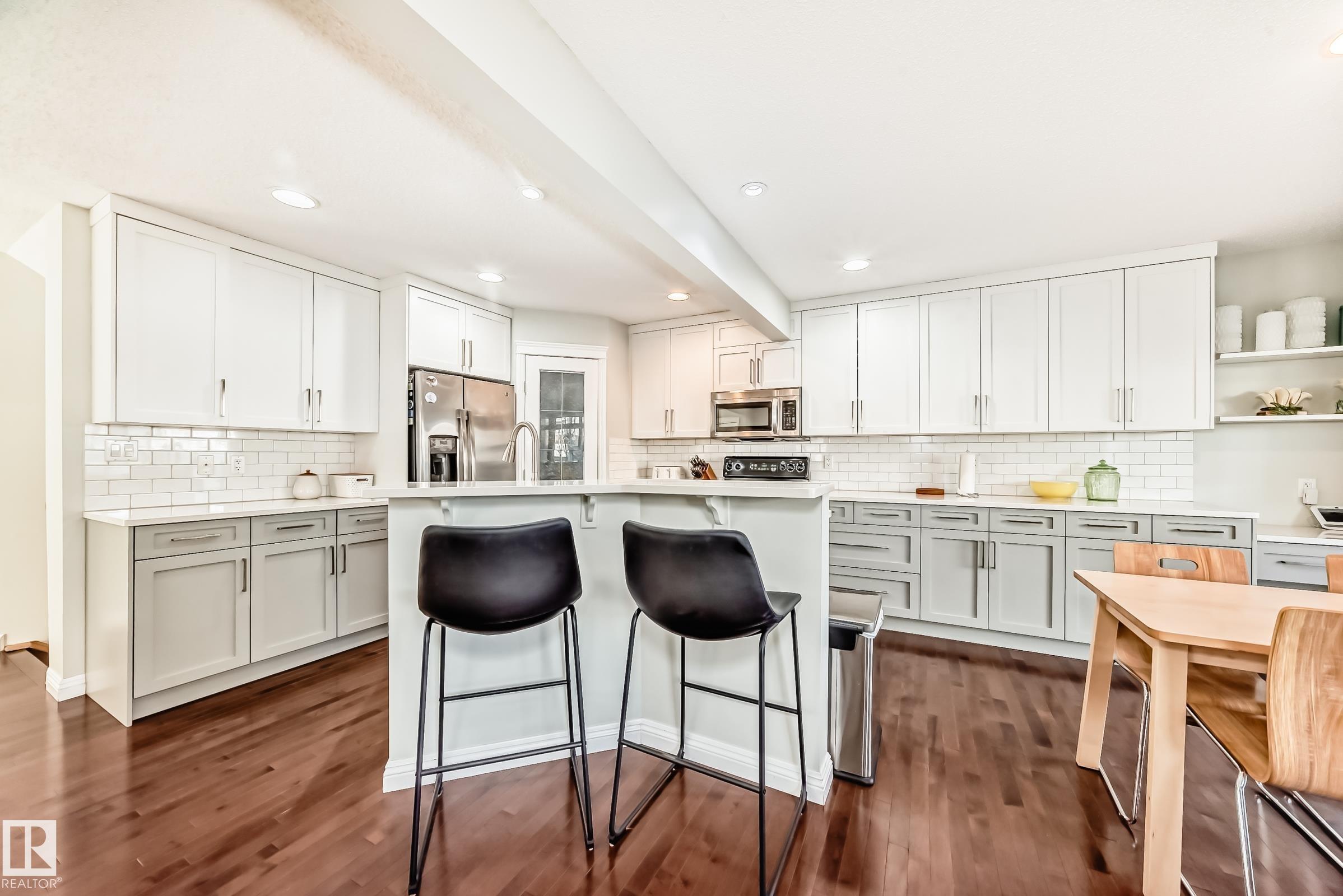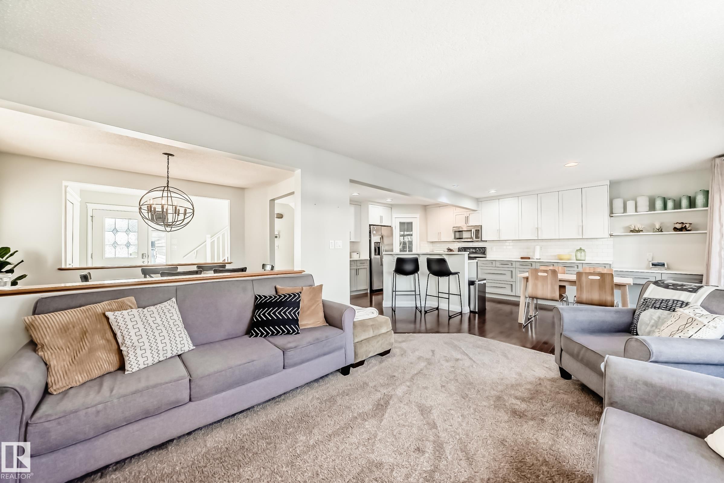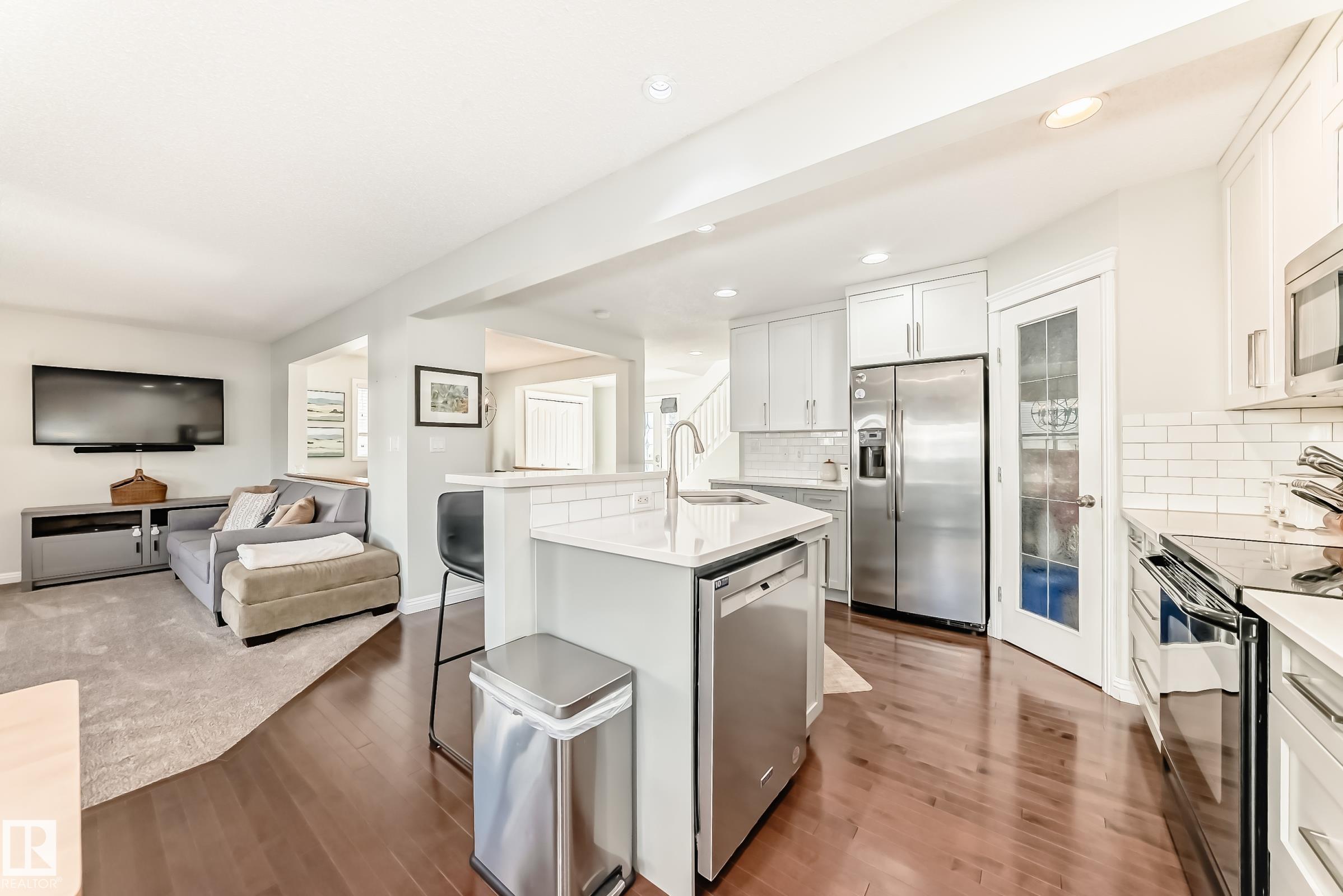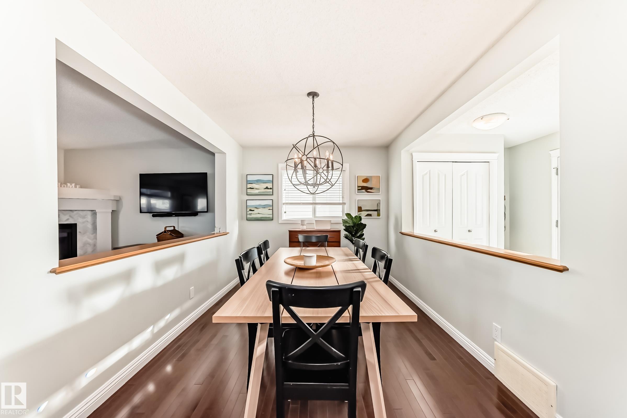 Welcome to this immaculate 5-bedroom family home in The Hamptons, close to schools (Walking distance to k-9 schools), shopping, and all amenities. The main floor greets you with a spacious front entry with plenty of storage, leading to a formal dining area and a well-designed kitchen. It features beautiful two-toned white and grey cabinetry, quartz countertops, corner pantry, and a functional island overlooking the inviting living room, highlighted by a chic herringbone marble-tile fireplace. Sliding doors open to the beautiful deck and backyard. A handy 2-pc bath completes the main level. Upstairs offers an expansive bonus room filled with natural light, a laundry room, and three bedrooms, including a lovely primary retreat with a walk-in closet and a spa-like 5-pc ensuite with double sinks, a soaker tub, and a separate shower. The finished basement adds a family room, two additional bedrooms, and a modern full bath with heated tile flooring. Situated across from a scenic pond, walking trails, and parks.