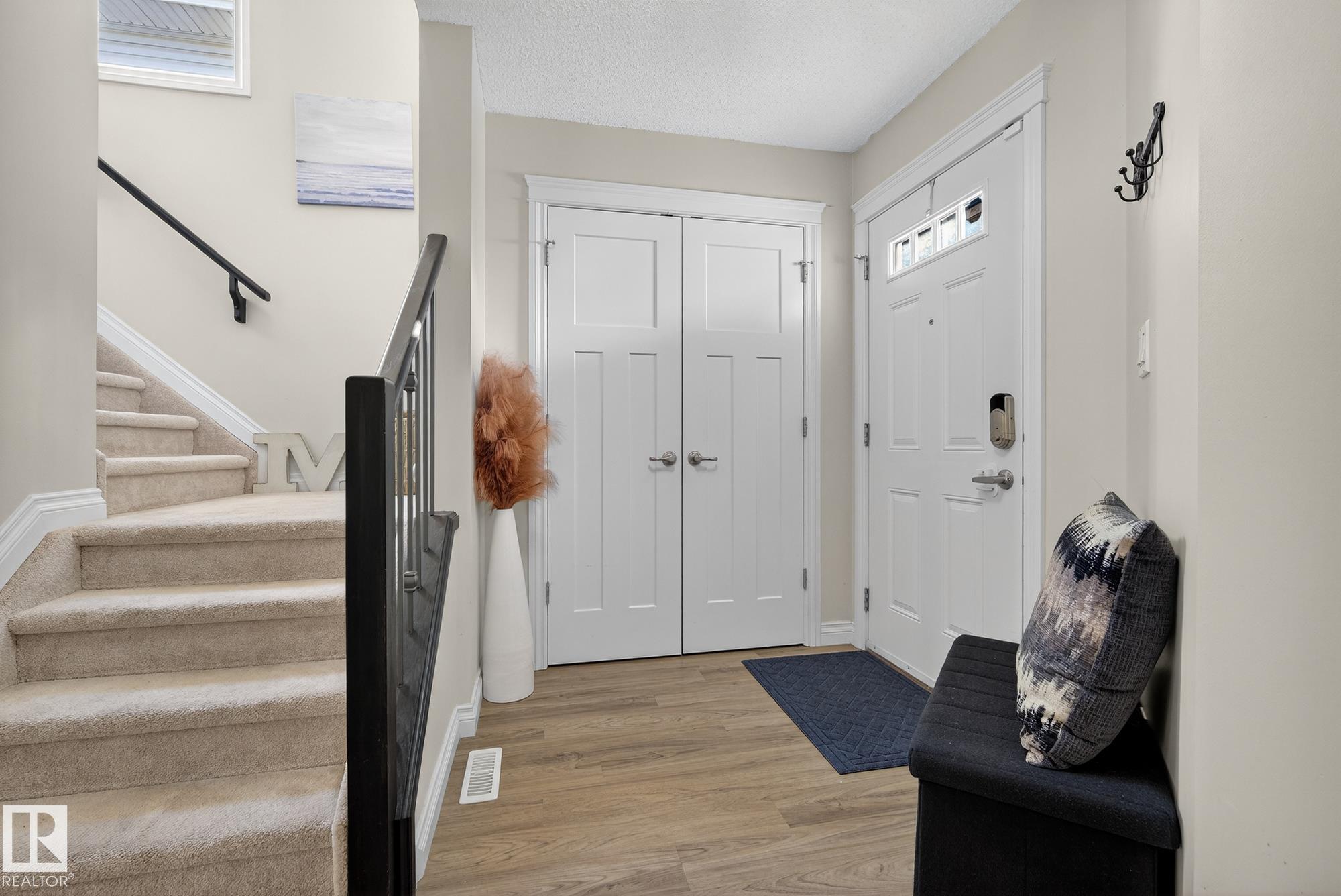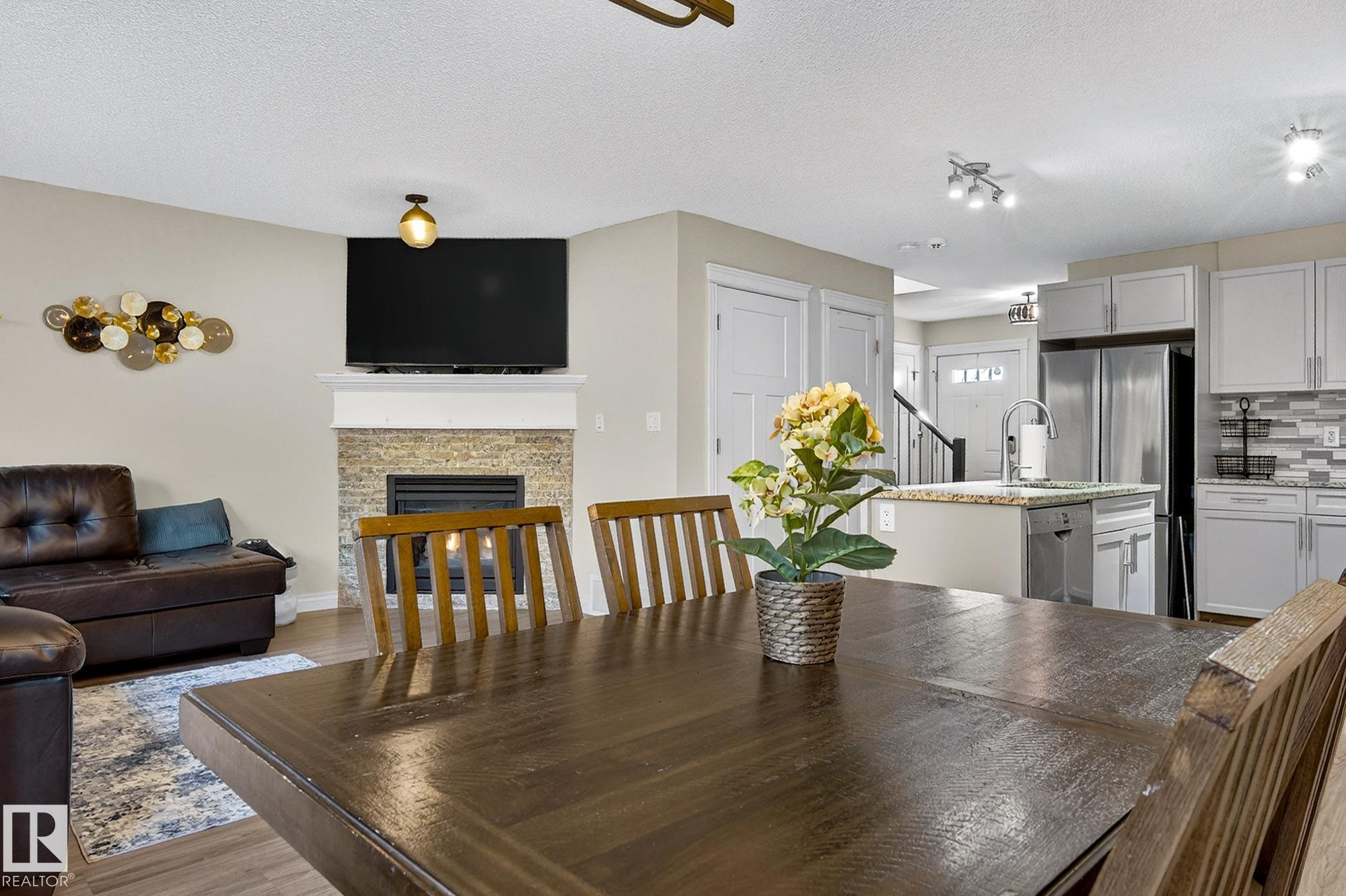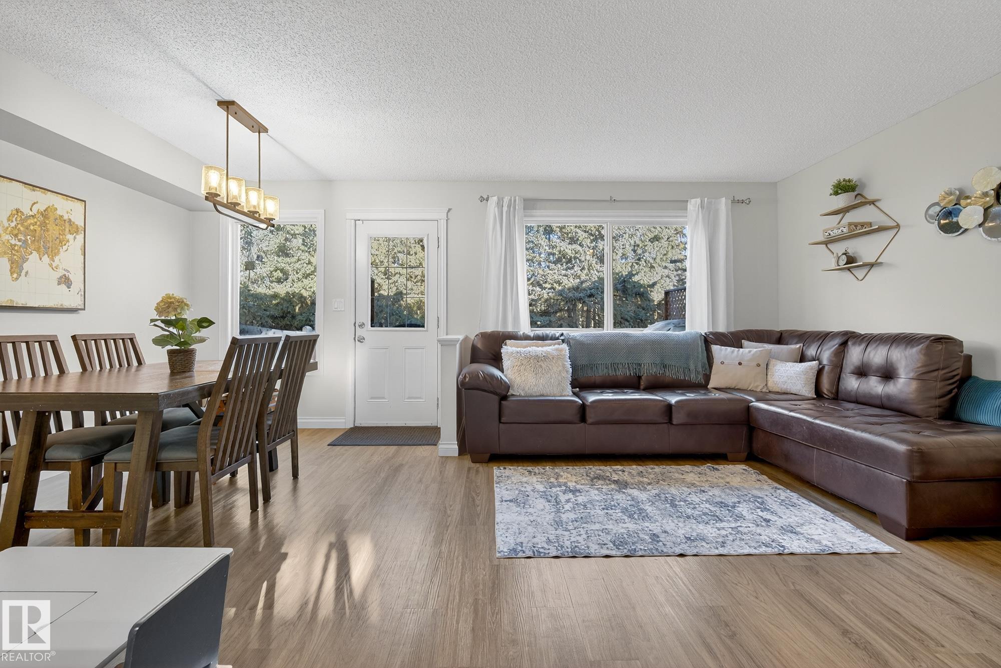 Every so often, you walk into a home and instantly feel at ease, this is one of those places. This 1434 sq ft half duplex offers a bright, comfortable main floor with a cozy gas fireplace, a light kitchen with a pantry, and a dining area that opens onto a raised deck. The backyard is large and peaceful, backing onto trees. Upstairs, the three bedrooms offer space to settle in, and the primary suite feels like its own retreat with a walk-in closet and 3 piece ensuite. The partially finished basement adds room for play, projects, or quiet evenings. Central AC keeps the home comfortable through the warmer months, and the single attached garage and upper laundry make daily routines easier. In a relaxed, family oriented community close to shopping, restaurants, the Tri-Leisure Centre, parks, and bike trails. Not far from Highway 16, making commutes a breeze. This home feels like a place where life slows down just enough to enjoy it.