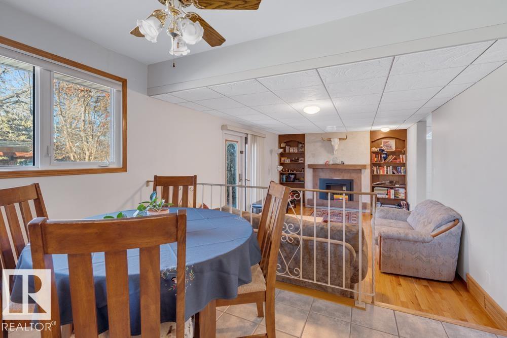 Welcome to 5004 114 St NW ? a beautifully maintained one-and-a-half storey in Brookside, set on a large, sunny and PRIVATE corner lot. This home offers a versatile and family-friendly layout with a bright front living room and bay window, a generous dining area, and a welcoming kitchen overlooking the backyard. The cozy sunken family room features a GAS FIREPLACE and built-ins, creating the perfect everyday gathering space. A main-floor bedroom, laundry room, and powder room add convenience. Upstairs, the spacious primary suite includes a WALK-IN CLOSET and 2-pce ensuite, along with two additional bedrooms and a full bath. The basement hosts a SPACIOUS SAUNA, and a great layout for future development. Important updates include TRIPLE-PANE WINDOWS, furnace, CENTRAL A/C, roof, electrical panel, attic insulation, and vinyl siding. Outside, enjoy the beautifully landscaped yard with OUTDOOR ENTERTAINING SPACE, gazebo, and an oversized double garage. Steps to Brookside School and Whitemud Ravine.