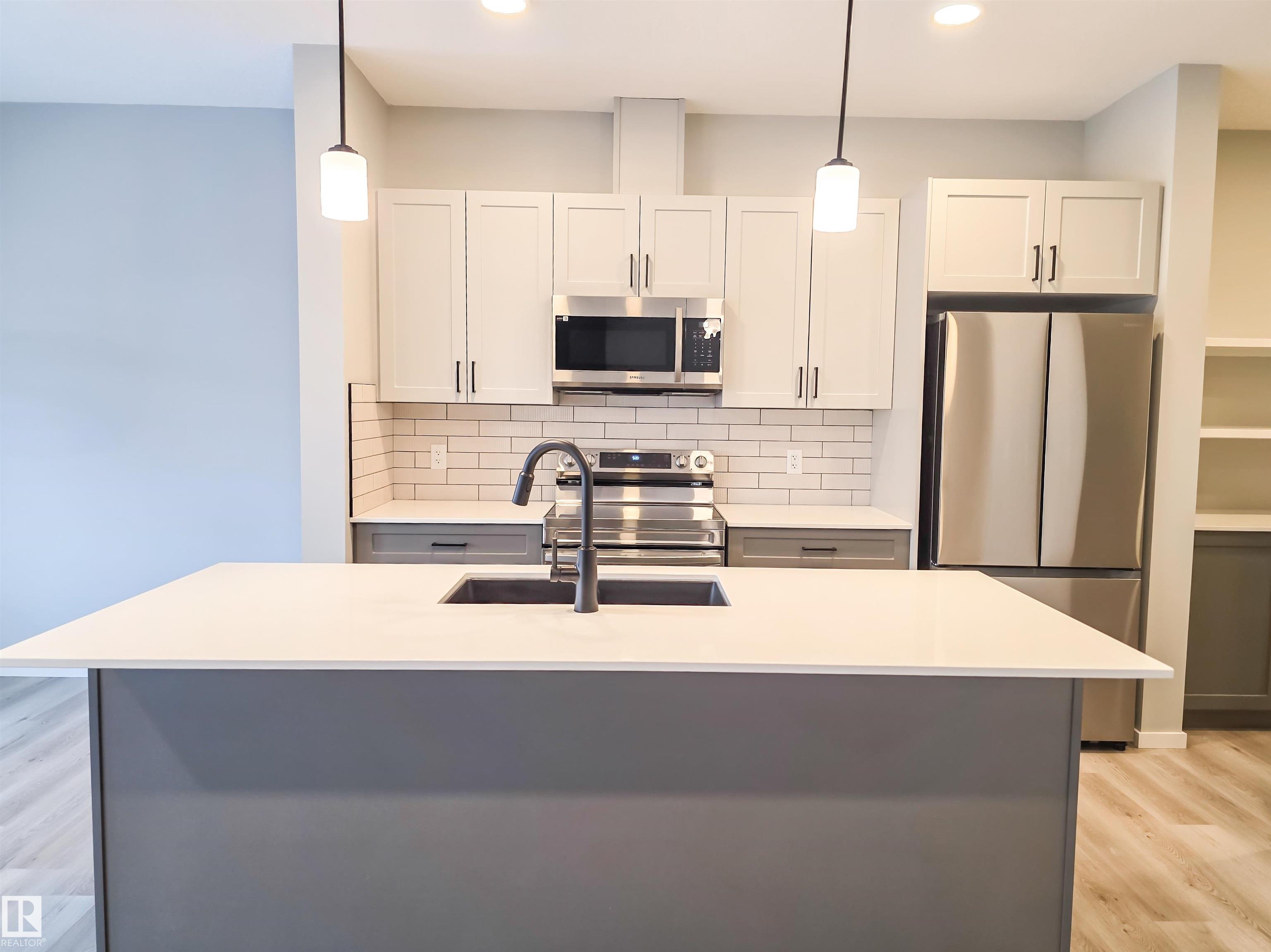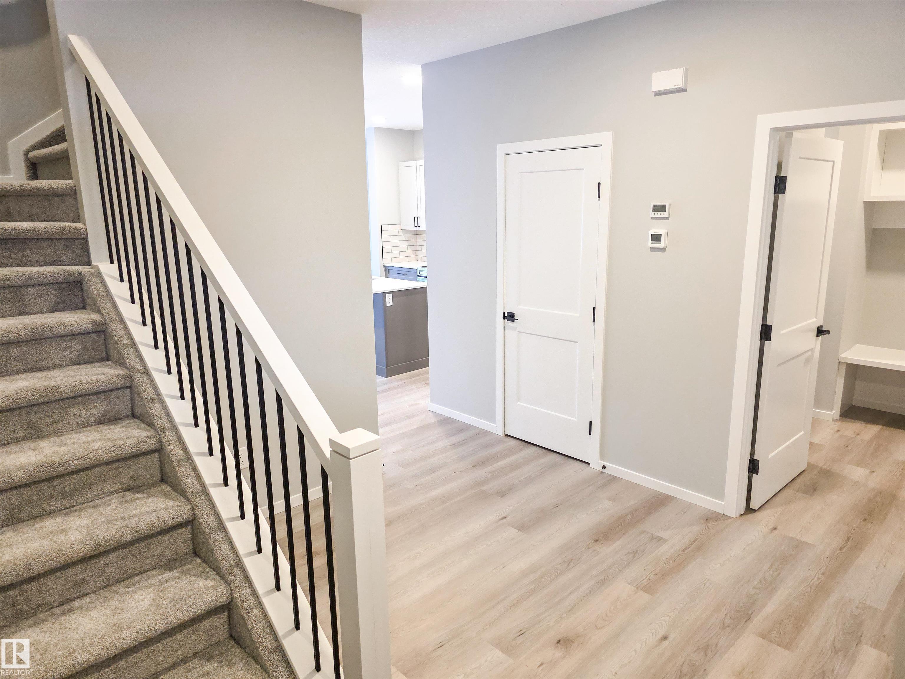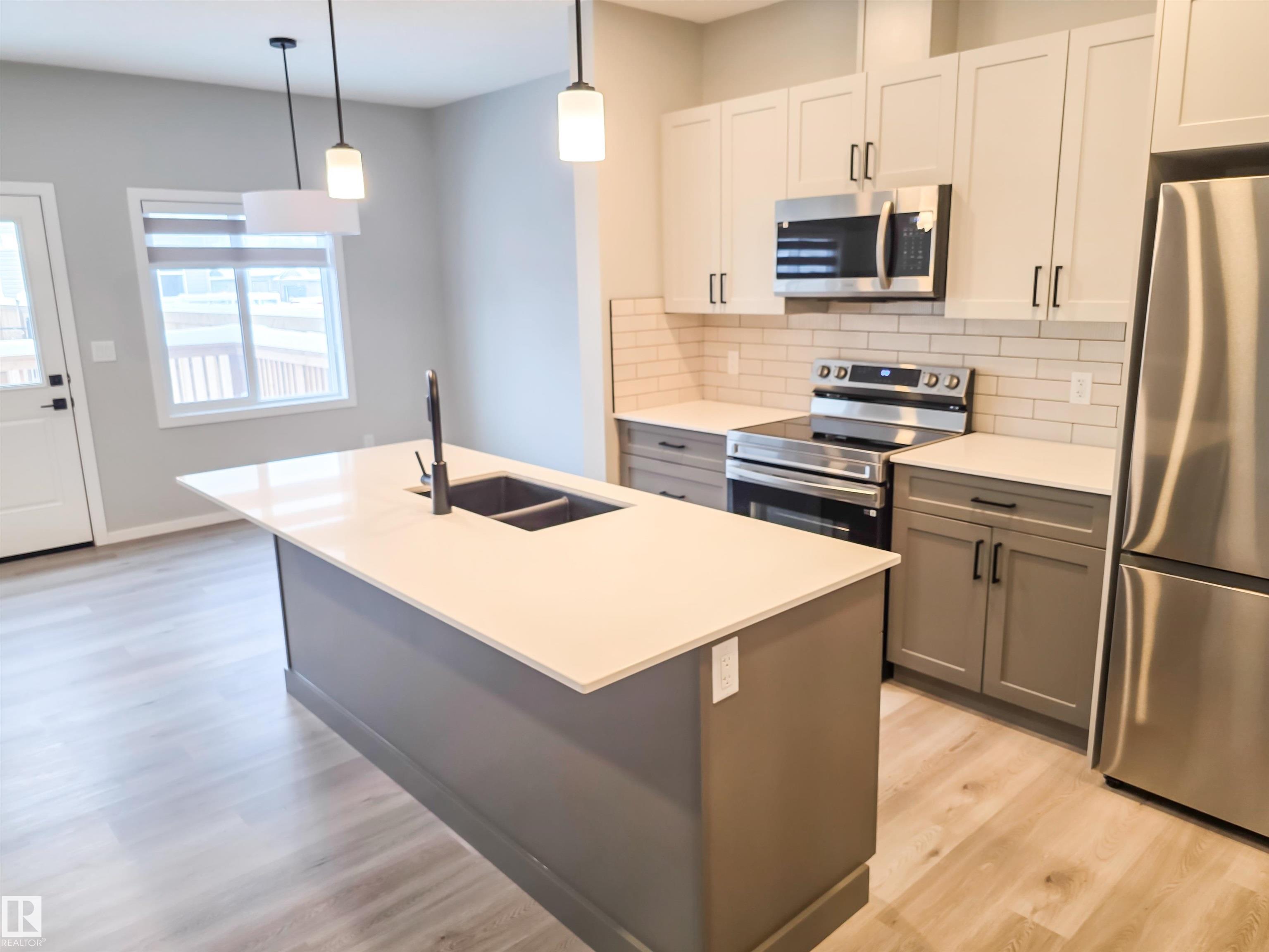IMMEDIATE POSSESSION. This newly built 2-storey half duplex by Alquinn Homes offers exceptional value backing greenspace and a deck already included. The main floor showcases a contemporary open-concept design that seamlessly connects the kitchen, dining, and living areas?ideal for both everyday living and entertaining. The modern kitchen is thoughtfully appointed with a central island, breakfast bar, walk-in pantry, and refined finishes throughout. A practical rear mudroom adds convenience with a built-in bench and cubbies. Upstairs, enjoy the flexibility of a bonus room alongside upper-floor laundry, 2 additional bedrooms, and a full bathroom. The primary suite is a private retreat, featuring a spacious walk-in closet and a beautifully finished 5pc ensuite with elegant fixtures. UPGRADES: deck, partially fenced yard, upgraded appliances, triple-pane windows, upgraded flooring, MDF shelving throughout, double closet doors, soft-close cabinetry, sill granite sinks, and more.