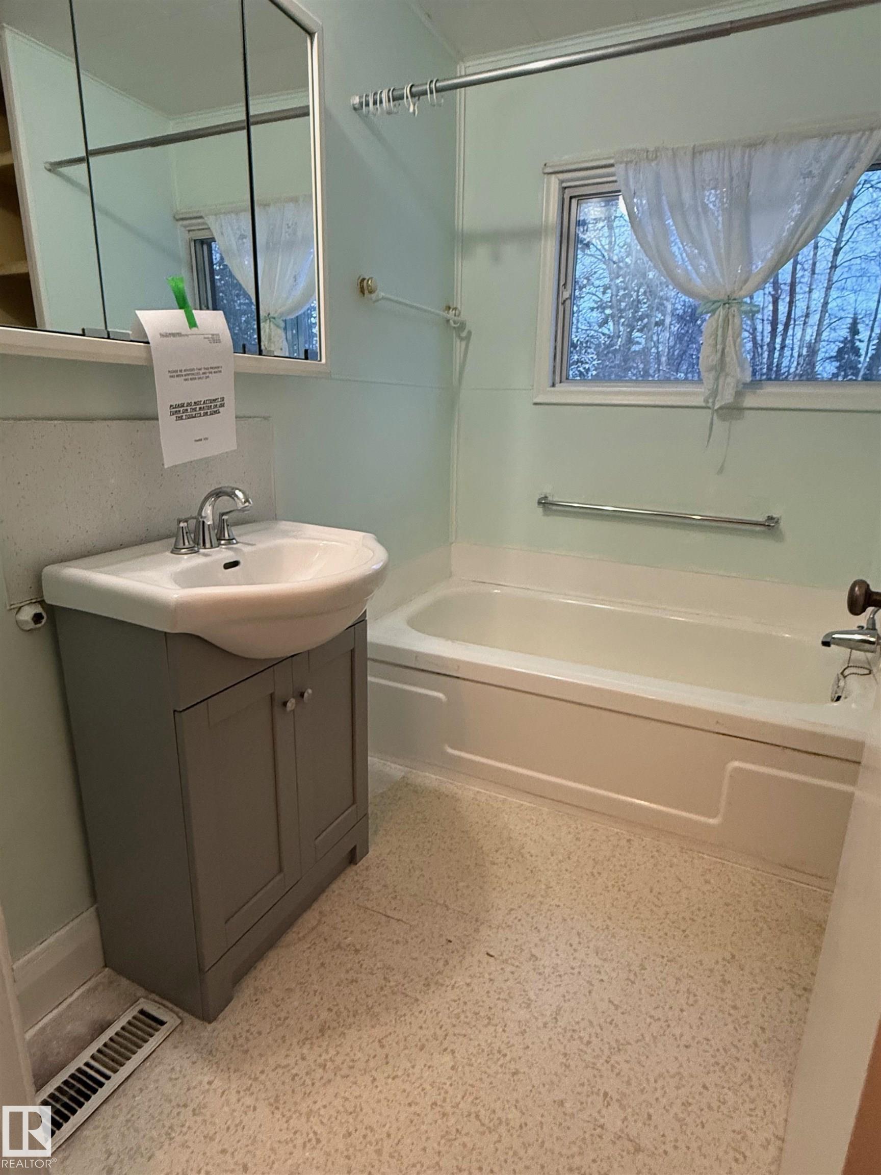 Wonderful opportunity in the Hamlet of Winfield, Alberta. This large half acre property is situated on a corner lot close to school. The home is 2 bedrooms, 1 full bath, a large living area & kitchen, & lots of storage. The partial basement includes a large laundry area & a large crawl space(6.5ft+) next to it. The basement is a walkout too. A single carport with a mezzanine area above as well. Property is sold as is, where is.