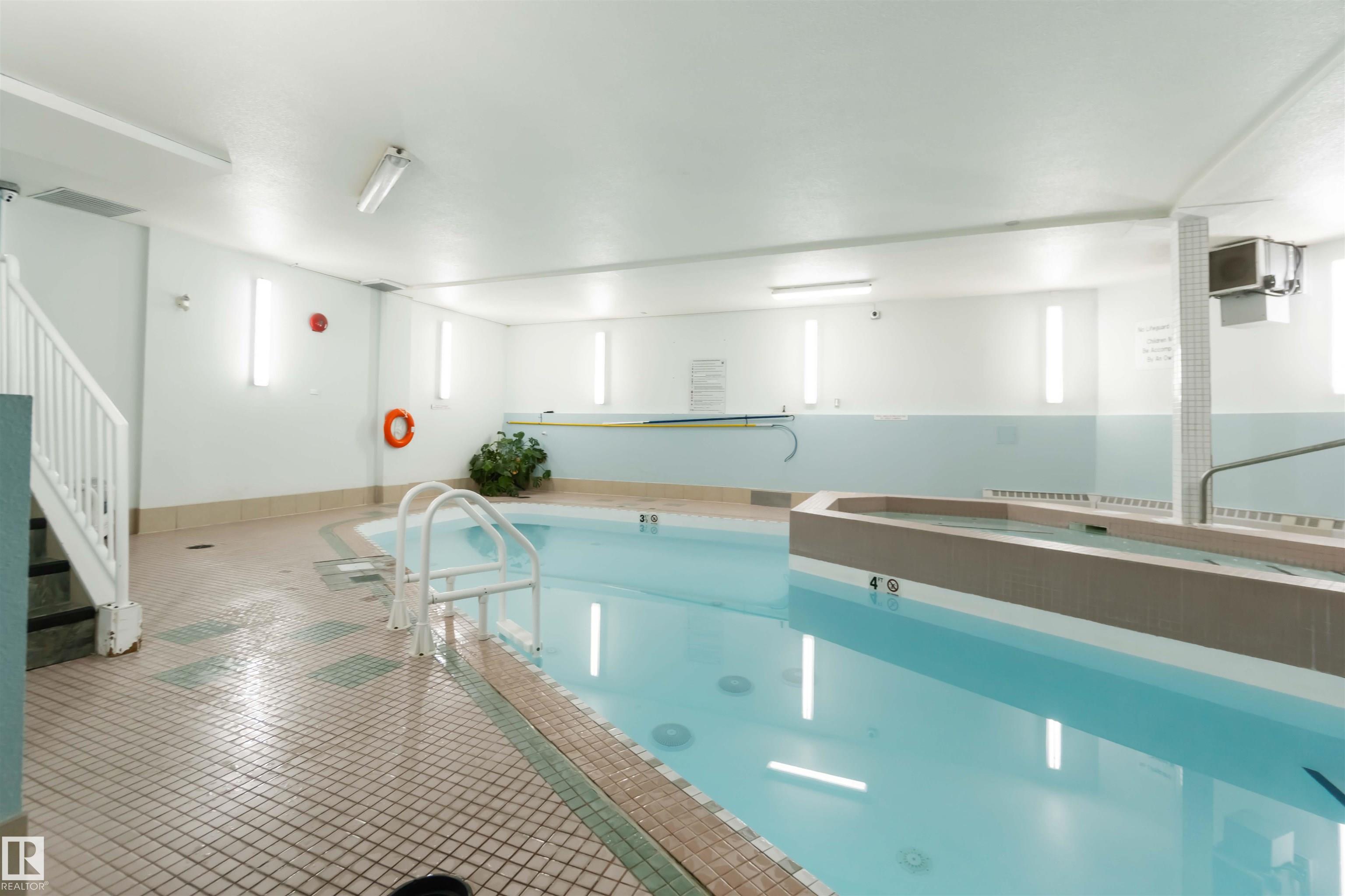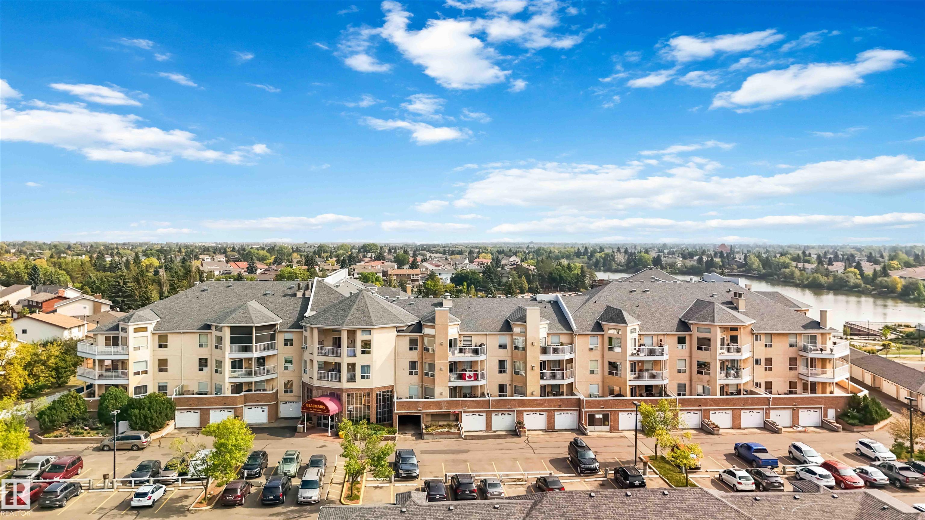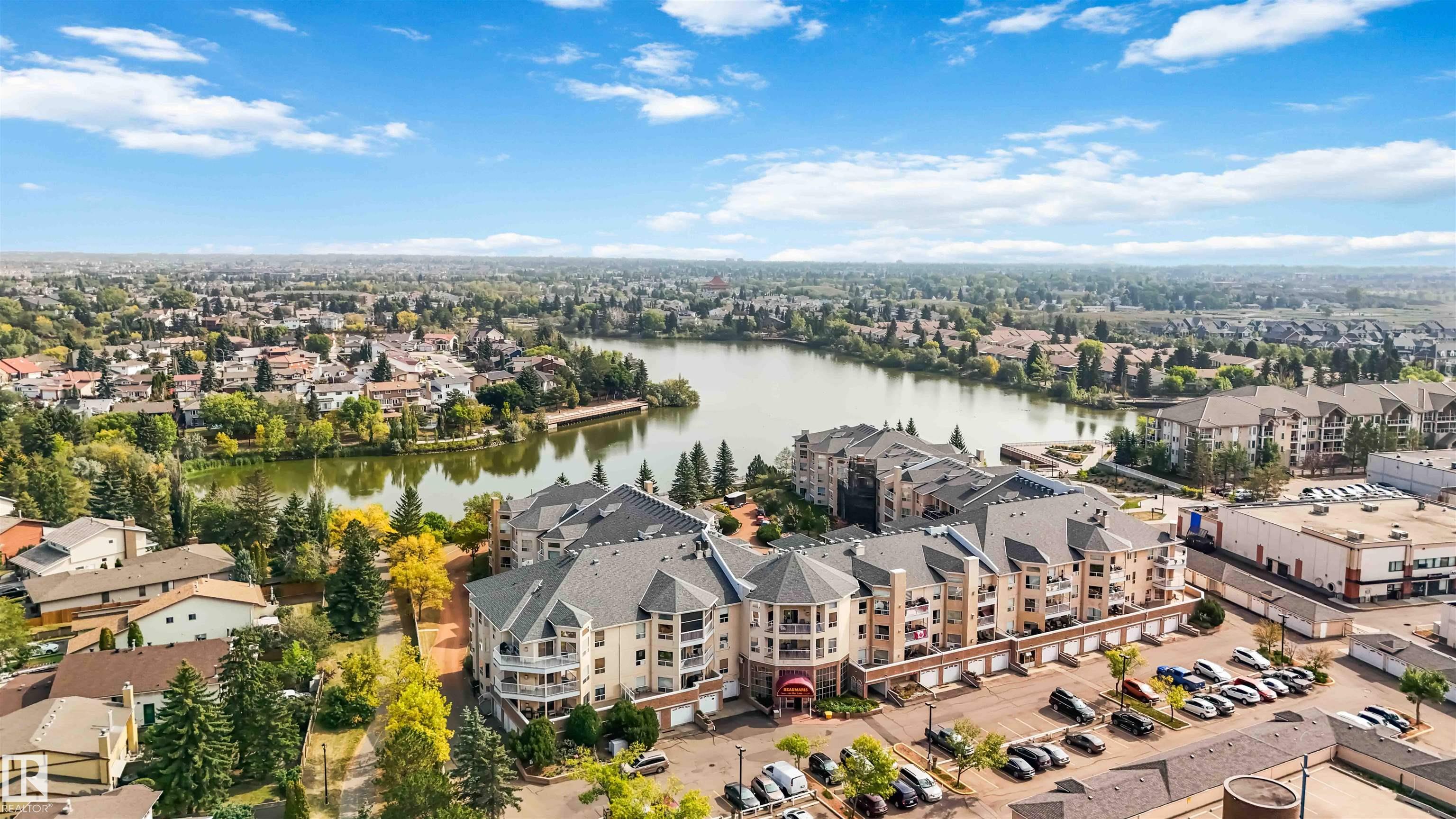 Lakefront 18+ Living at Beaumaris on the Lake! Savour breathtaking courtyard, gazebo, and lake views from the large south-facing balcony of this spacious 1-bedroom plus den, 2 bath condo. The bright, open layout showcases stunning vistas from the living room, dining area, and kitchen. The generous primary suite features a 3 piece ensuite with a private vanity and enclosed shower. A versatile den provides the perfect space for a home office or guest room, while the main 4-piece bath includes a relaxing jetted tub. Recent updates include fresh paint, Hunter Douglas blinds, a new stove, and central A/C. Enjoy ample in suite storage and laundry, plus premium building amenities: indoor pool and hot tub, fitness room, large social room with kitchen, and a two-level guest suite for visitors. Just steps from restaurants, transit, the library, and grocery shopping, this well-maintained complex offers the carefree adult lifestyle you?ve been dreaming of complete with serene lake views.