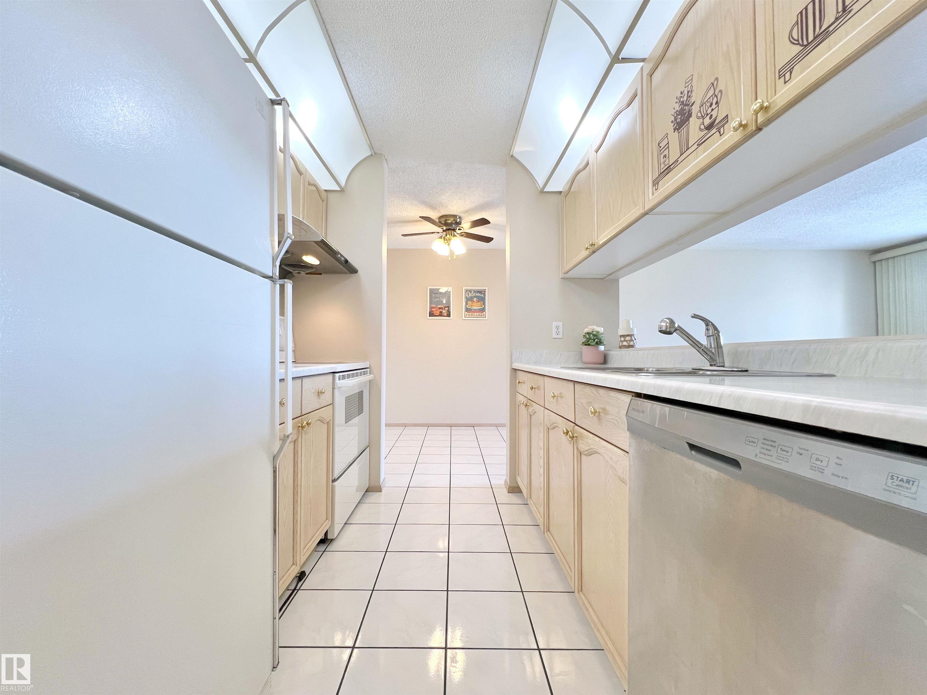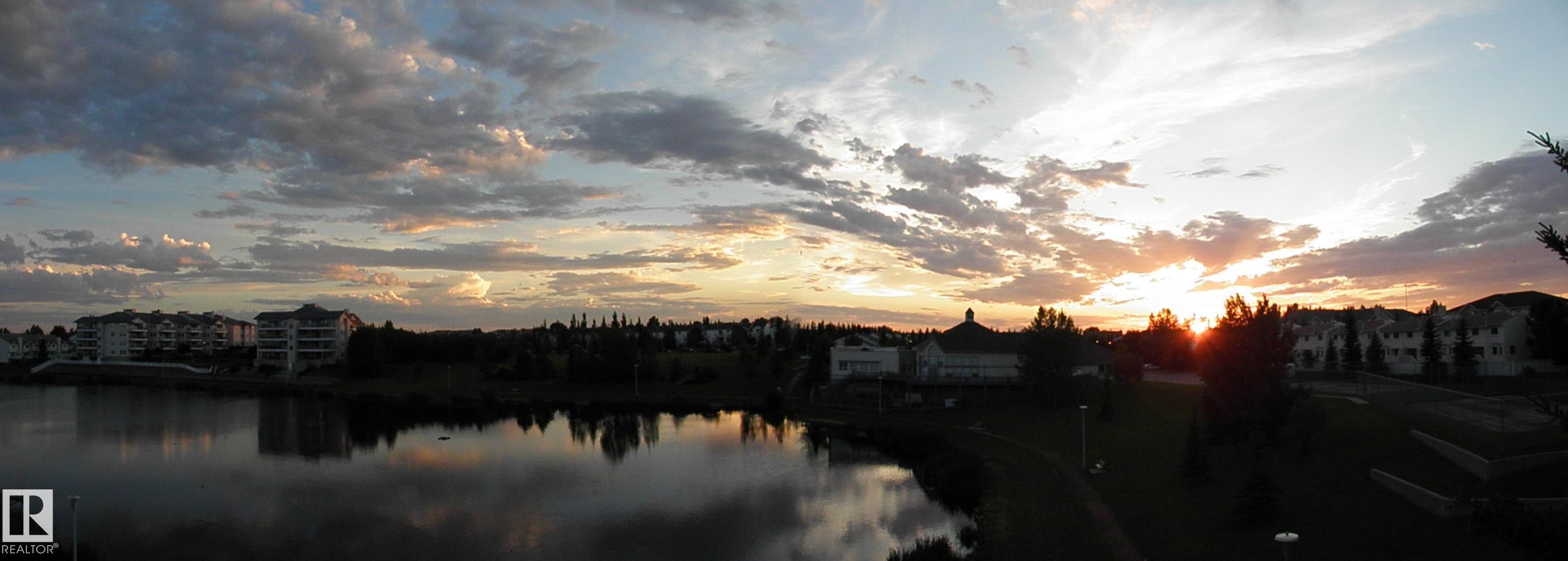 Beautiful Lakefront Living! Finding a residence in lively West Edmonton with scenery like this is truly uncommon ? This 3rd-floor unit looks directly over a quiet lake, giving you privacy, calm surroundings, and amazing sunset views from every room ? Nicely updated with new luxury vinyl flooring and fresh paint, creating a bright and comfortable space ? The layout is practical and easy to live in, with 2 good-sized bdrms featuring custom closet organizers, a walk-through kitchen, in-suite laundry and storage, air conditioning, a brand new toilet and newer dishwasher for added comfort ? Whether relaxing in the living room, resting in the bdrm, or enjoying the west-facing covered balcony, you?ll always have peaceful lake views ? Located just mins from WEM, shopping, schools, restaurants, etc.?It has a covered parking stall, elevator access ? A great choice for first time buyers/ investors - very easy to rent ? perfect for those who want both nature and city convenience. Some photos are virtually staged.