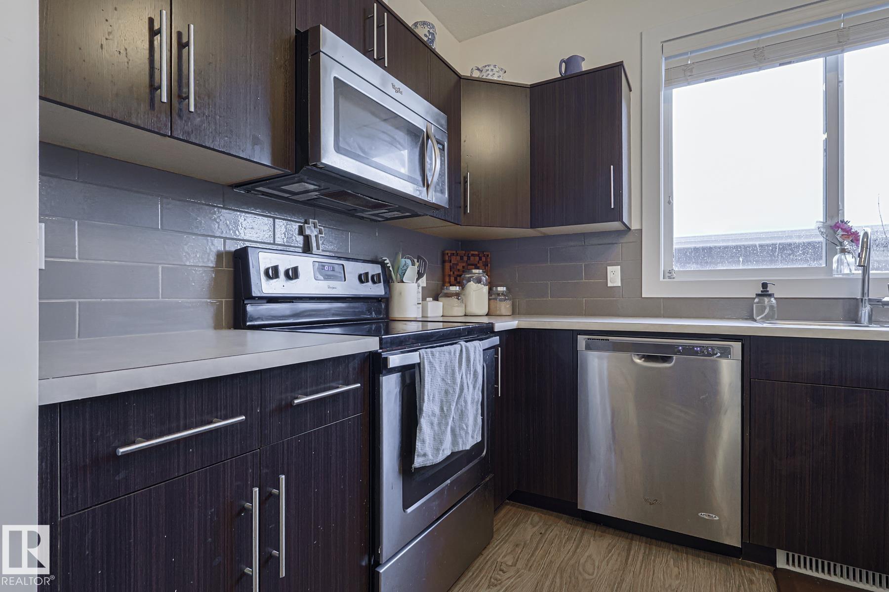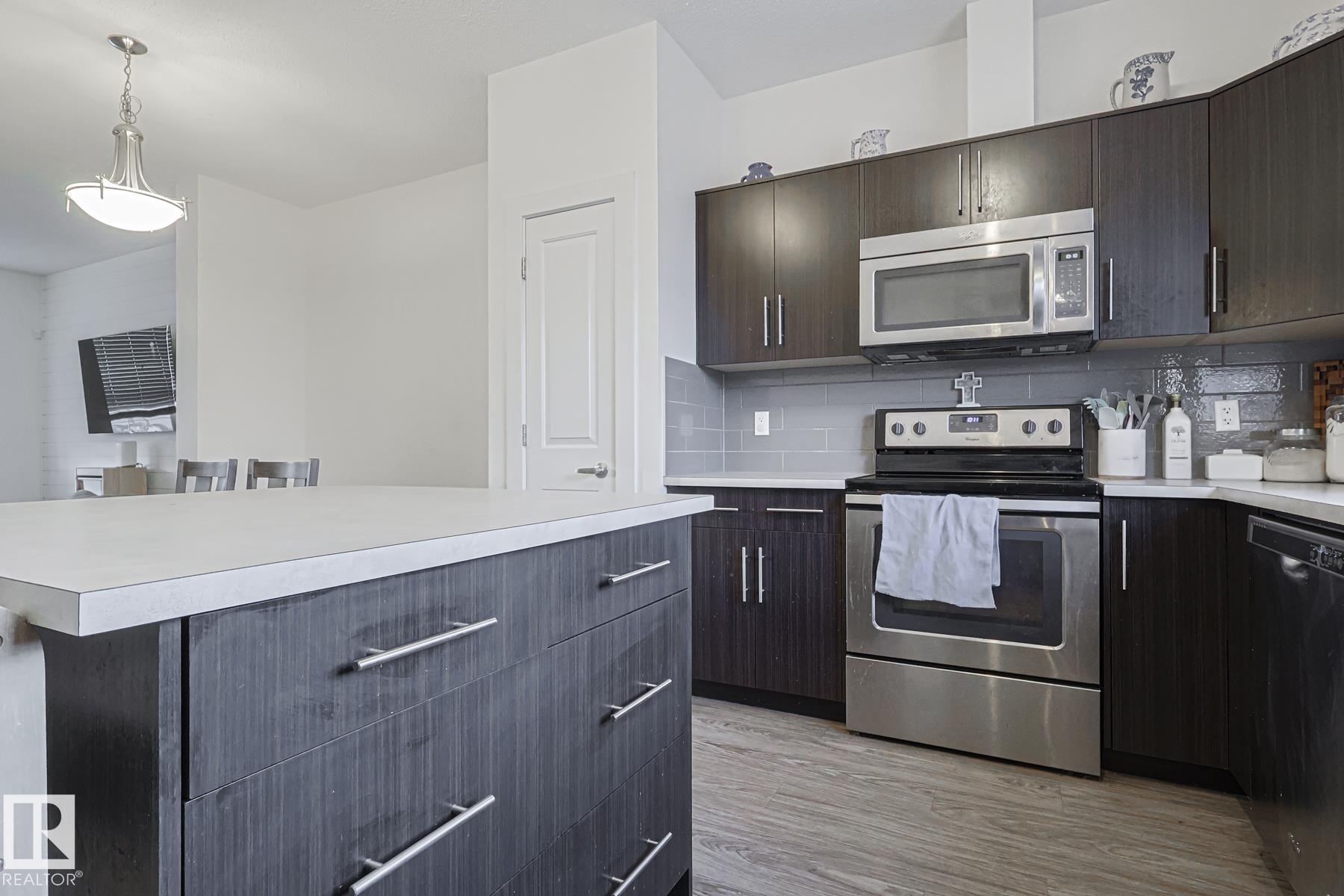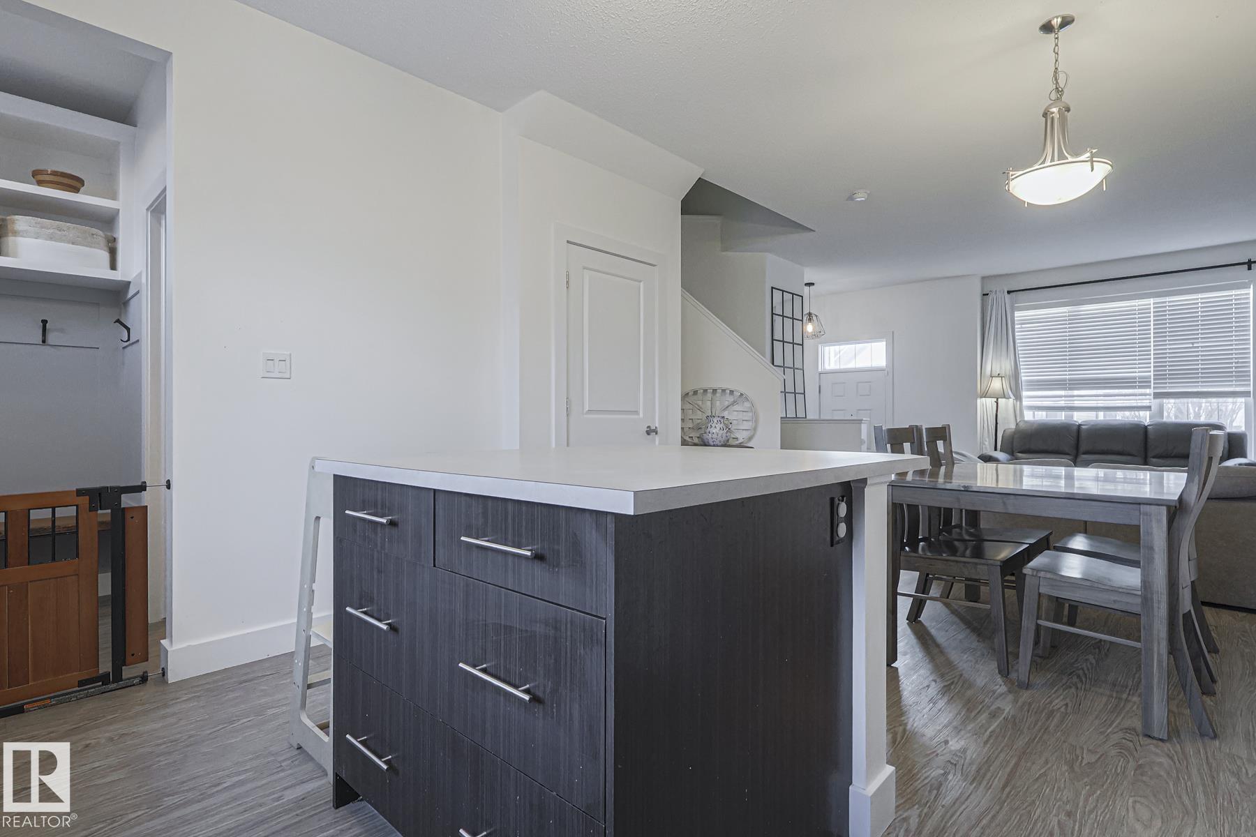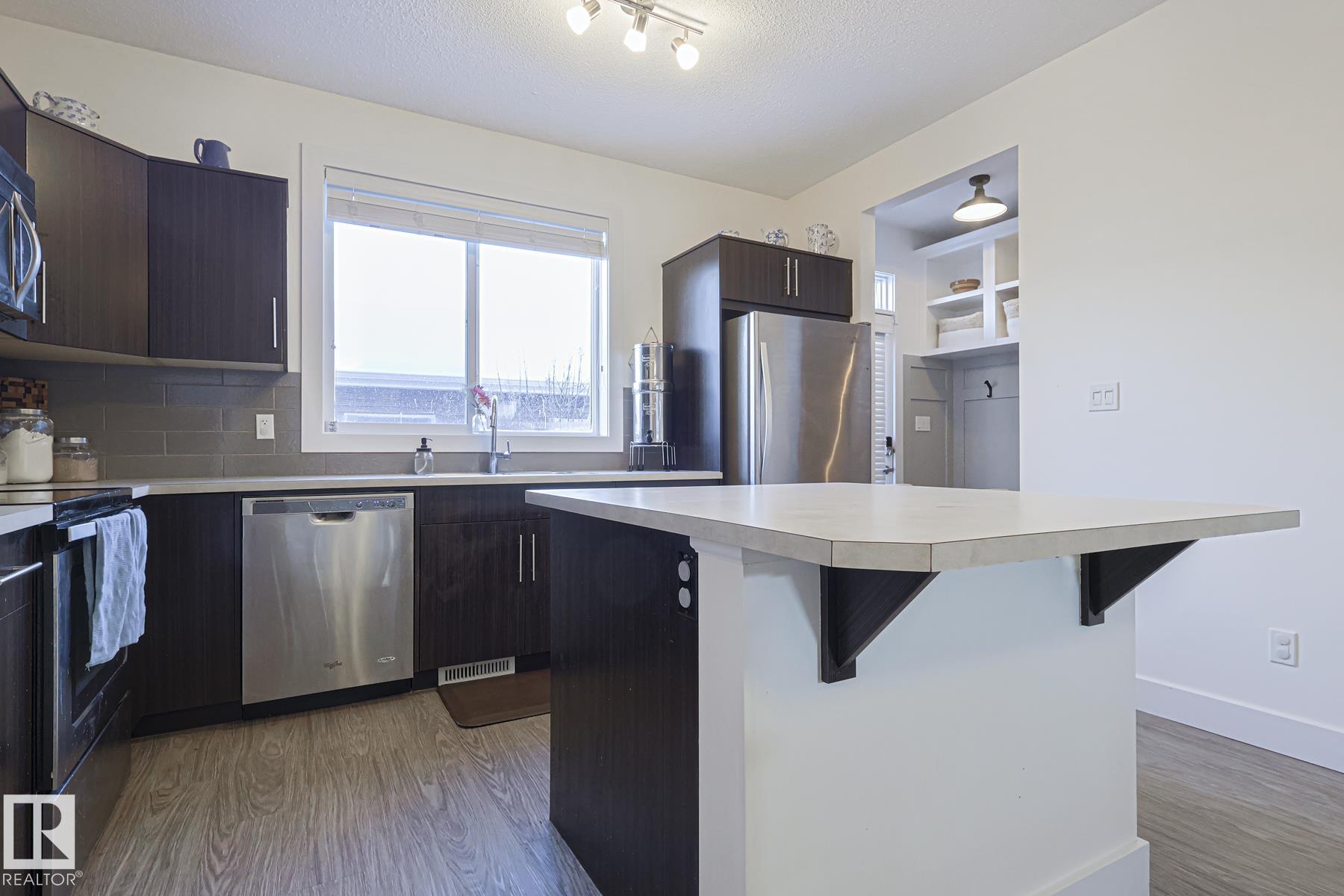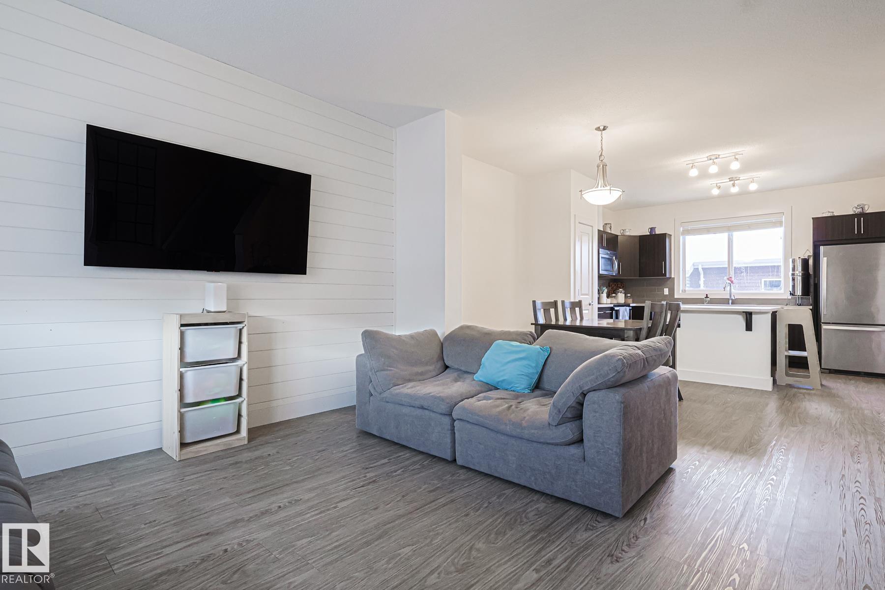 Welcome to Southfork in Leduc! NO CONDO FEES! This townhouse has a lot of sweet lil extras to offer; 9 foot high ceilings, big south facing windows, Shiplap feature walls in the living room and primary bedroom. Beautiful back door Pinterest bench with a 'live edge' wood seat! Great style! Wide open concept on the main floor w loads of natural sunlight and vinyl plank flooring. Modern (and functional!) kitchen with shaker cabinets, plenty of storage space, and a centre Island. Attic recently upgraded to R60 insulation! + 2 HUGE Bedrooms upstairs each with their own walk in closets and ensuites! Don't forget about the half bath on the main floor as well! very neat and tidy little backyard and a detached double garage finish off the property. Just STEPS from father Leduc School, and QUICK access to the Henday! It's All Here!
