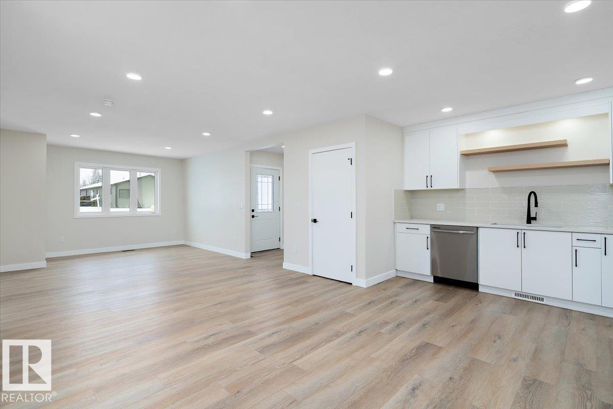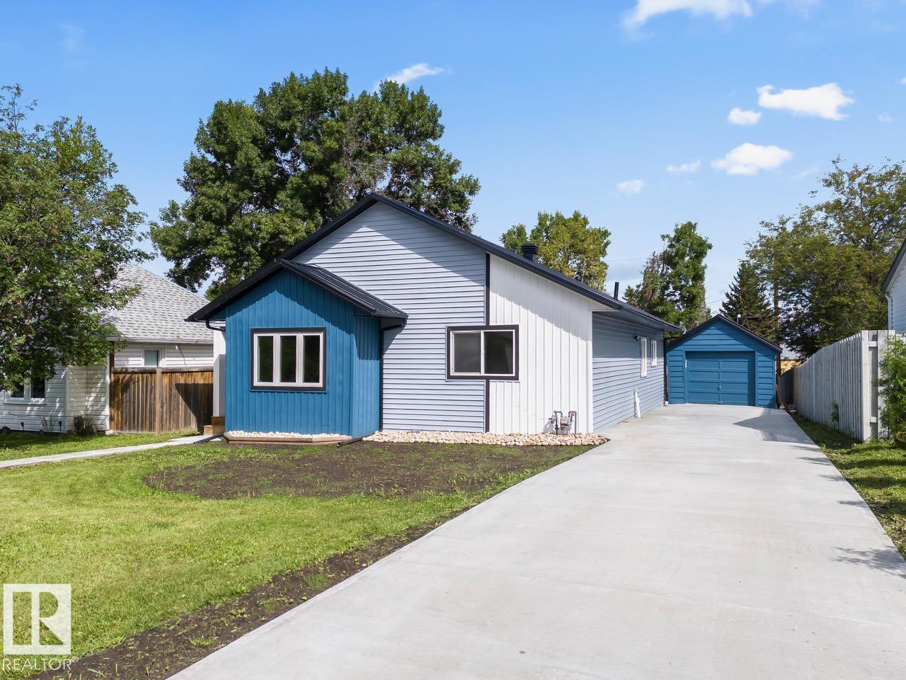 Welcome to 5032 55av in the charming community of Tofield! Upgraded & renovated, 4 bedroom, 2 bathroom bungalow with single oversized, detached garage! Open concept design of living room, dining area, and kitchen greets you upon entering this lovely home. Kitchen features: quartz countertops and stainless steel appliances. Open living & dining area boasts of vinyl plank flooring and LED pot lights. Primary bedroom with 3pc bath, 3 additional bedrooms, 4pc bath, and laundry completes the main floor. Partial basement/crawl space contains the utility room. Backyard has large lawn area, mature trees, and new deck. New concrete driveway provides ample off-street parking. Excellent location- walking distance to park, playground, and downtown amenities. A must see !!!
