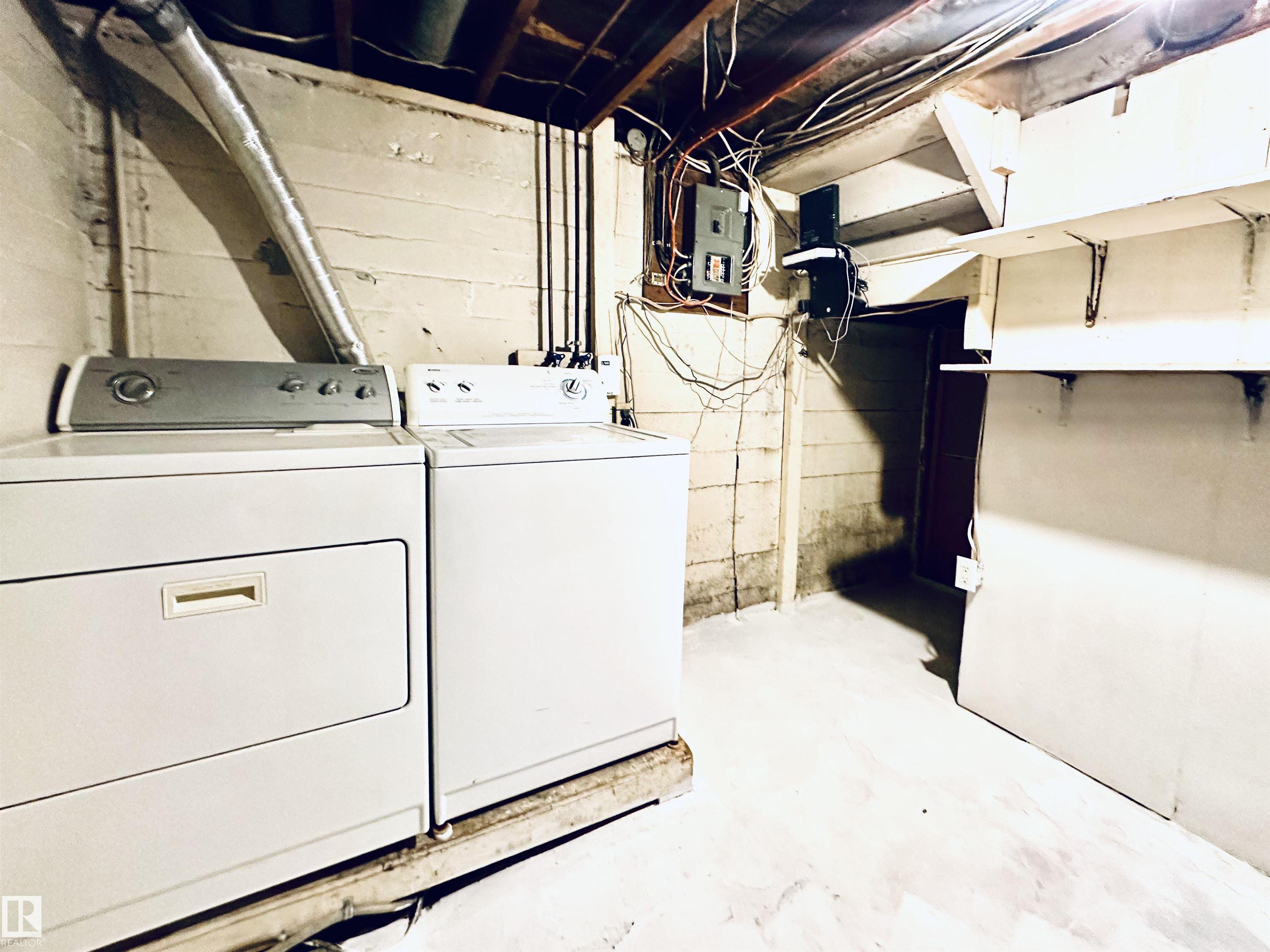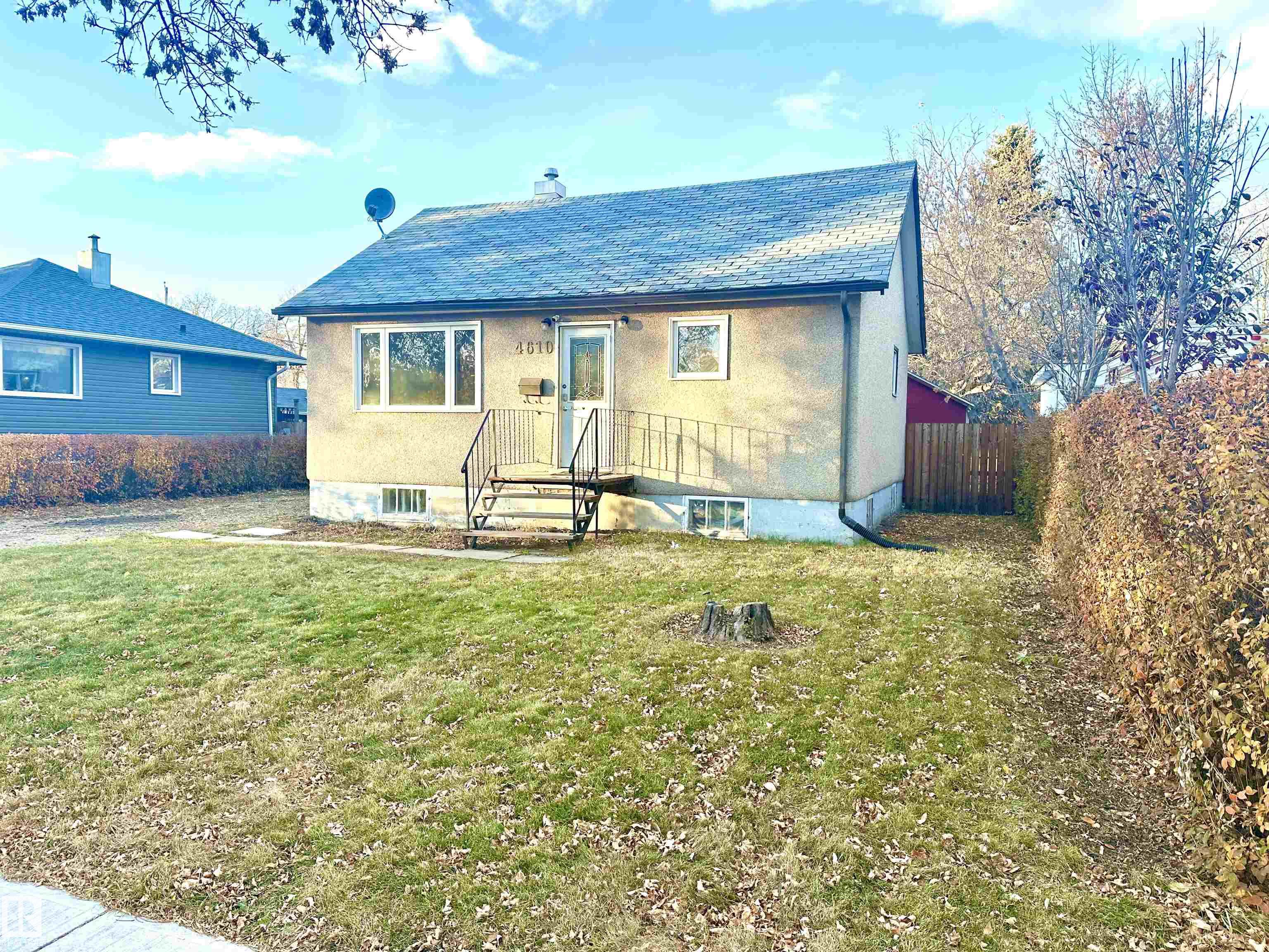 Great location! This cute home comes with a full basement, a fully fenced spacious yard ready for family fun & pets to enjoy. Budget friendly starter home with loads of potential. Located in a mature area of town, with walking distance to schools, playgrounds & downtown Wetaskiwin. The main level offers 2 bedrooms, generous sized living room with a large picture window, 4 pc. bath & a cozy kitchen overlooking the back yard. The bsmt. comes with a 2 pc. bathroom, large family room, laundry, utility & storage plus a flex room with a window. Quick possession is available. There is plenty of room for parking both on & off street. If you're looking for a home to add your creative touch this property may be perfect for all your fabulous design ideas both inside & out. All existing appliances, shed in back yard, plus central air conditioning unit stays.