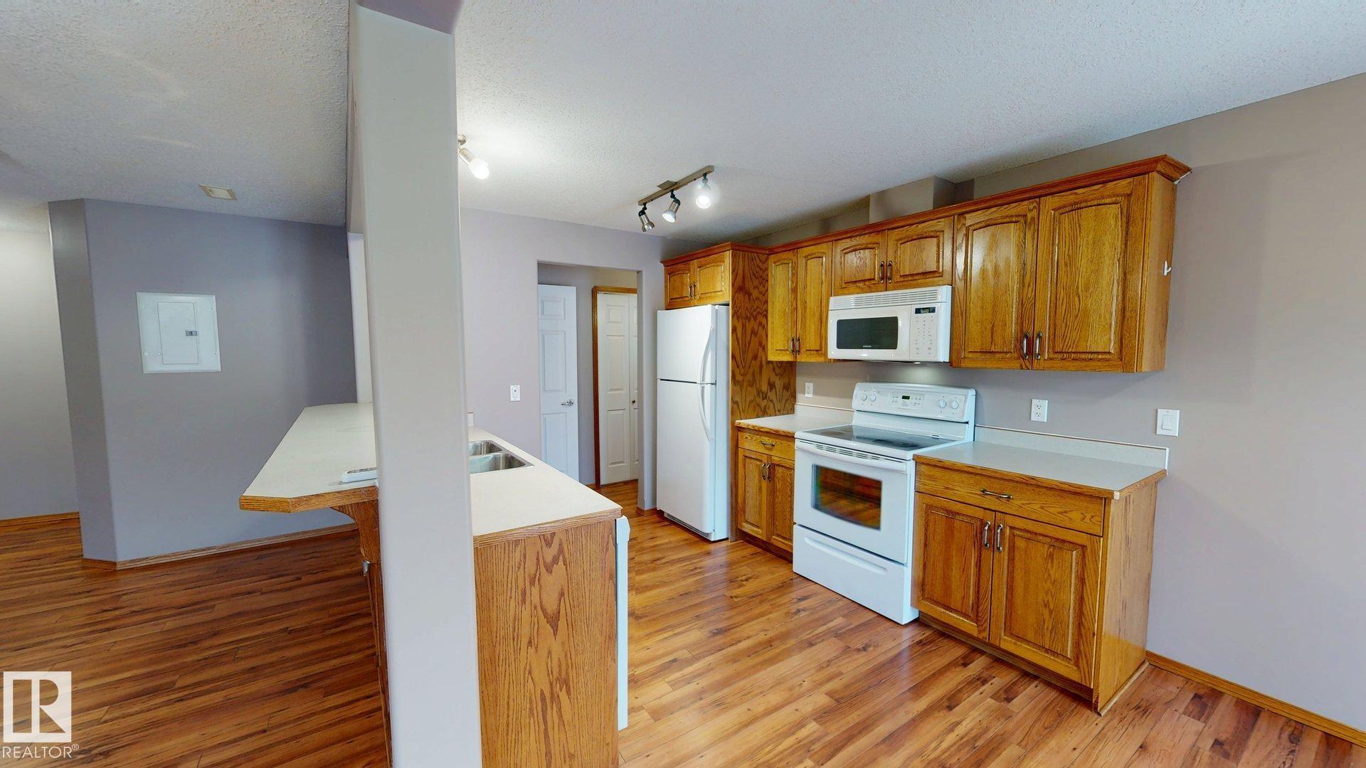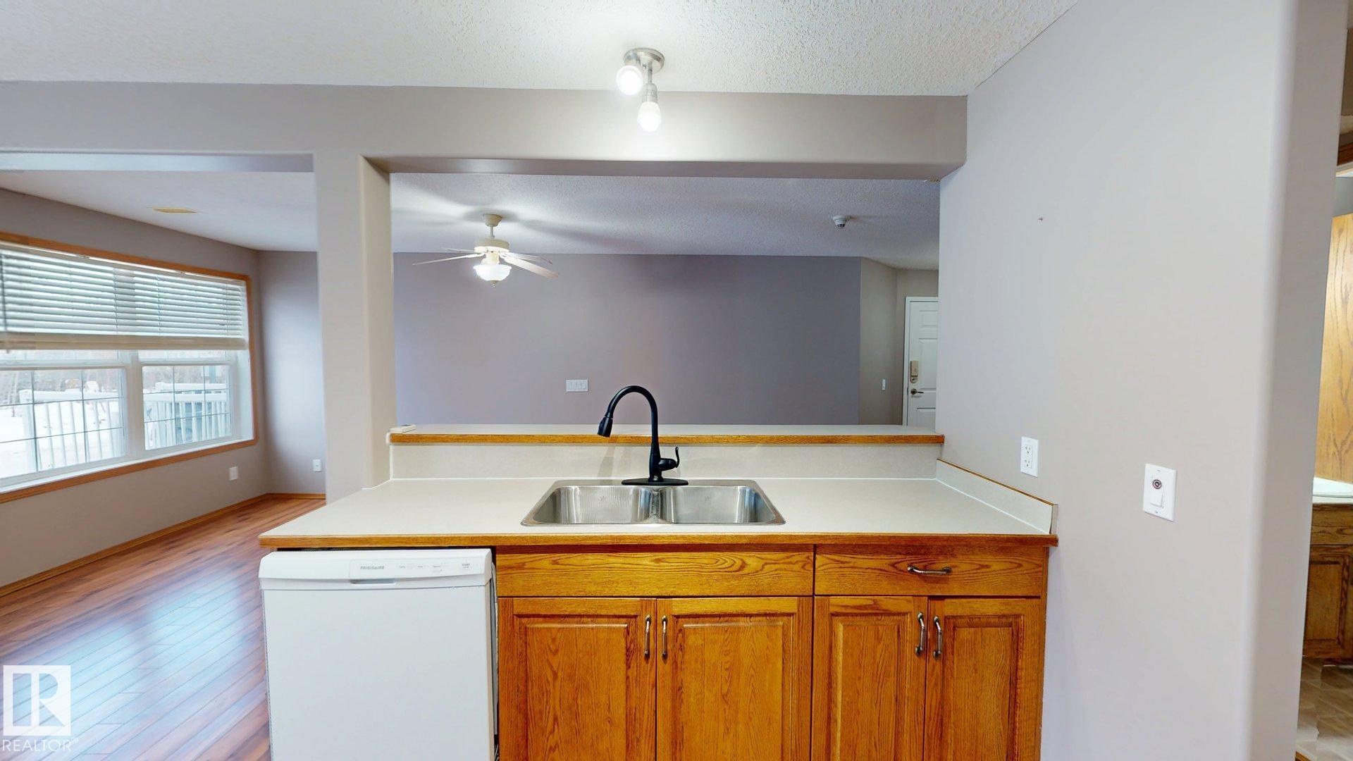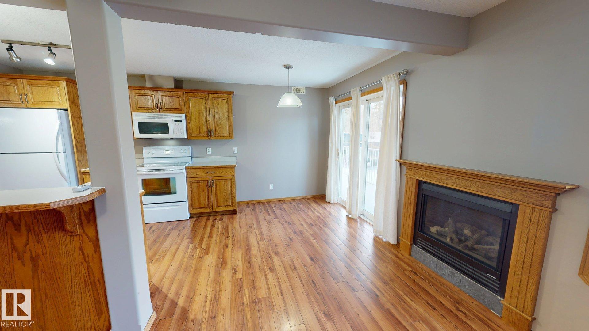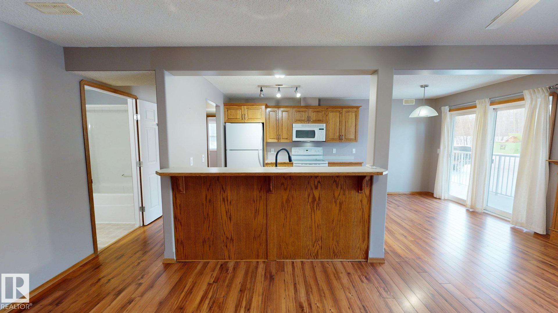 Main floor unit in Rivers condo! Looking for a low maintenance lifestyle with easy access? This is a fantastic opportunity with no stairs and an energized parking stall right outside the door! Inside has been freshly painted and features a bright and spacious floor plan, with 2 bedrooms and a 4 piece bathroom. The kitchen provides an abundance of cabinetry and counter space and over looks the living room that has a natural gas fireplace to keep you warm in the winter. Also off the kitchen are the patio doors leading to the covered deck. Rivers condo is in a great location right across from St. Anthony's school, and just a short walk to Frank Maddock and Powerhouse campus. There are miles of walking trails and is a short drive to all of Drayton Valley's amenities. Monthly condo fee of $559.57 includes exterior Maintenance, heat, parking, professional management, reserve fund contribution, utilities/janitorial/insurance for common areas, water/sewer, land/snow removal.