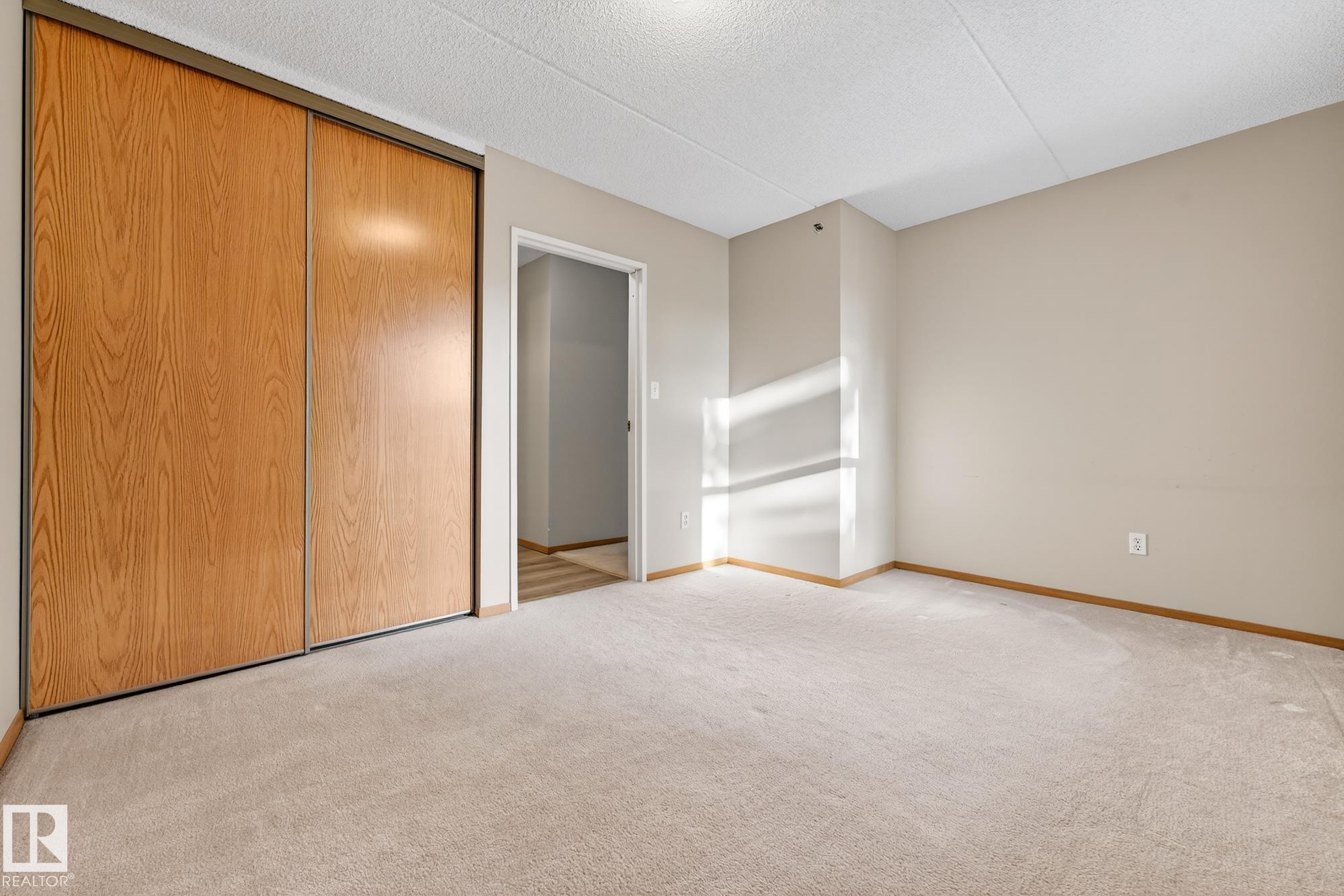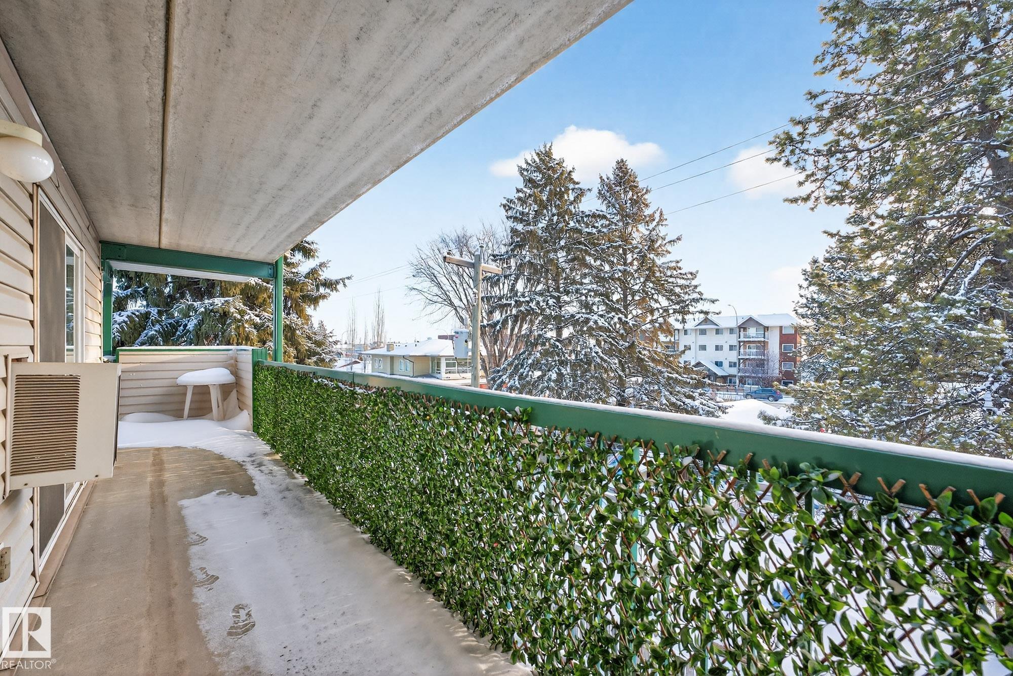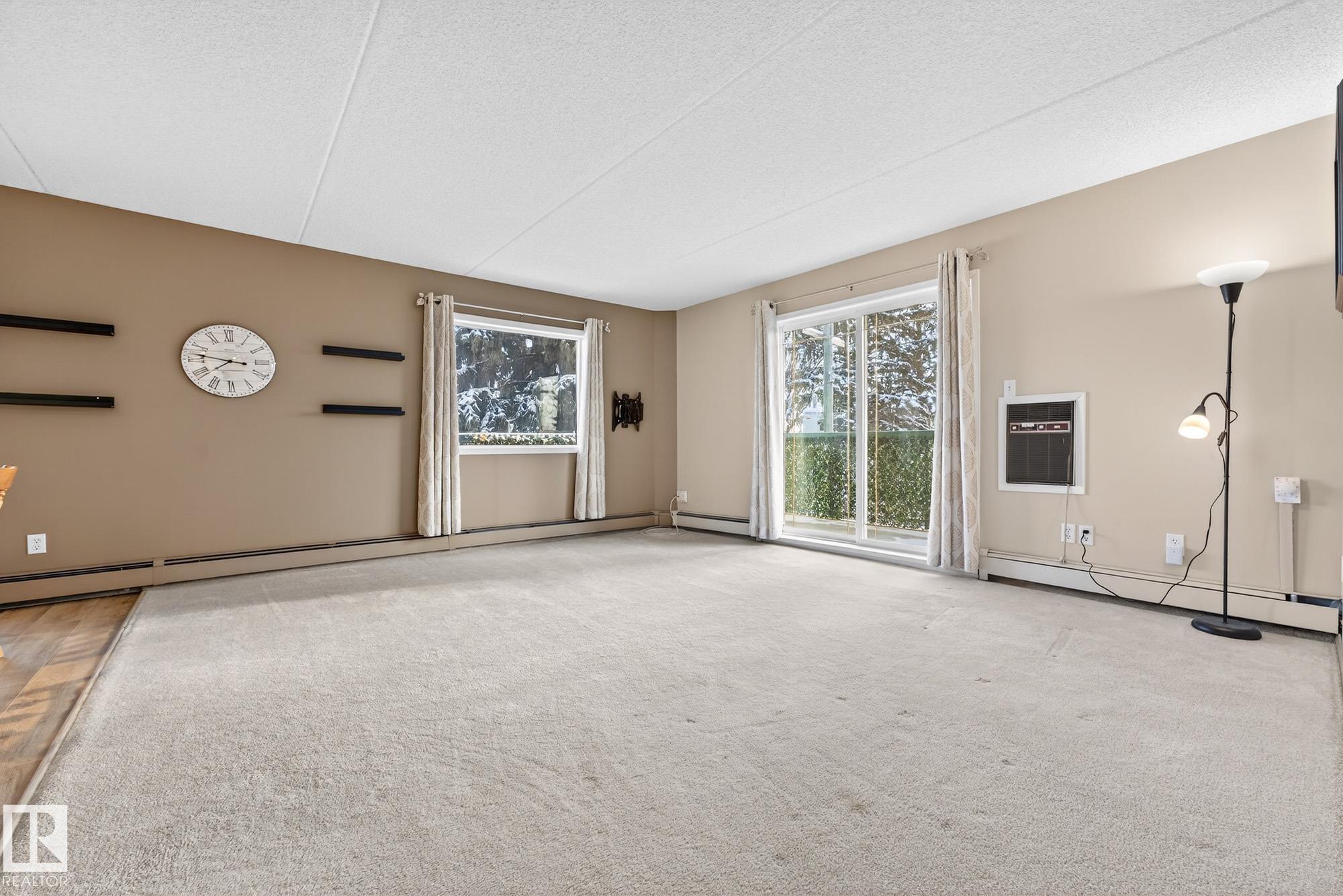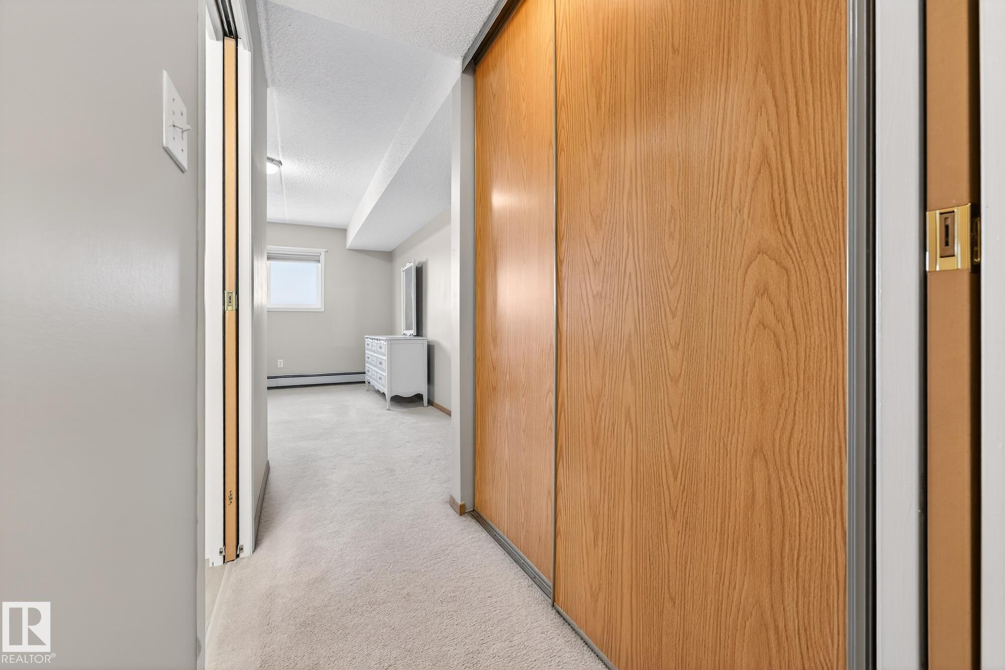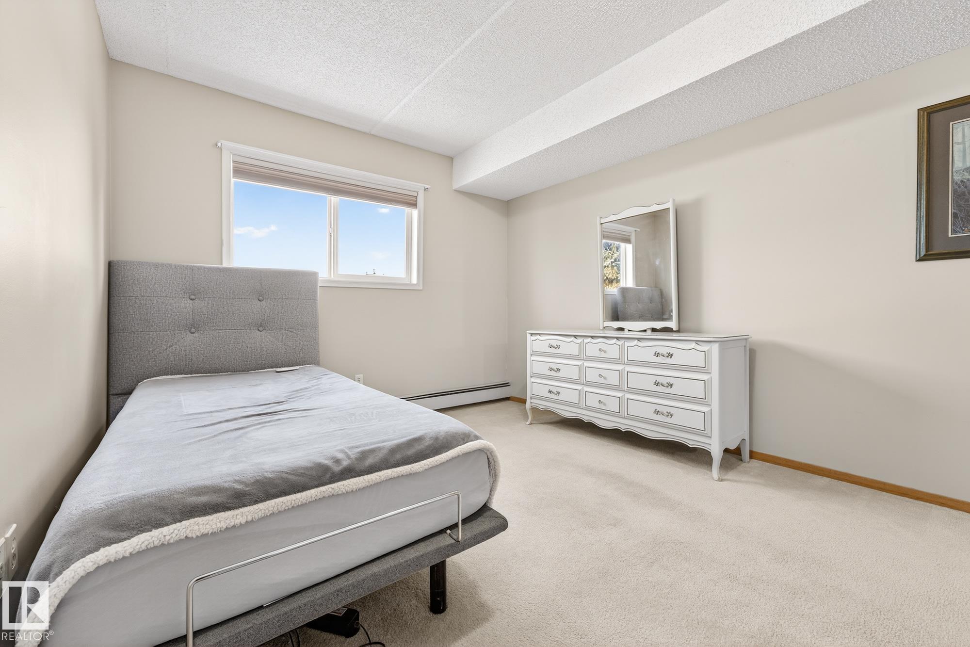 Spacious and well-appointed **corner unit** in a **55+ building (no pets allowed)**. Located on the **third floor**, this **largest suite in the building** features a **large wrap-around balcony** plus an additional **storage room**. Enjoy the comfort of a **steel and concrete construction** with **elevator access**, **wider hallways for wheelchair accessibility**, and a quiet, well-maintained community. The suite offers **newer vinyl plank flooring**, **window coverings included**, **in-suite laundry with storage**, and **A/C**. The functional layout includes a **4-piece main bath** and a **3-piece ensuite with stand-up walk-in shower**. One **assigned parking stall** is included. Within walking distance of all amenities **Condo fees cover cable, heat, water, and sewer**, providing excellent value. The **self-regulated condo board** is made up of resident owners with a strong vested interest in the building. A rare opportunity to own a bright, accessible, and move-in-ready home in a well-run community.