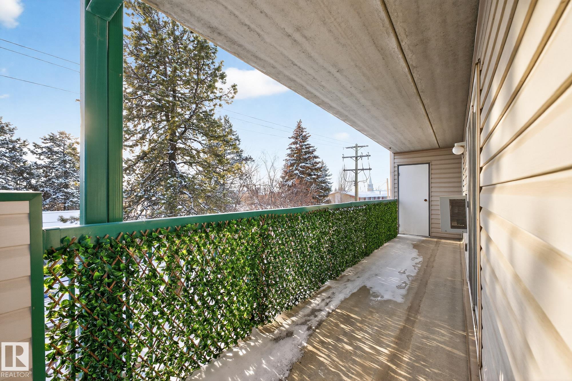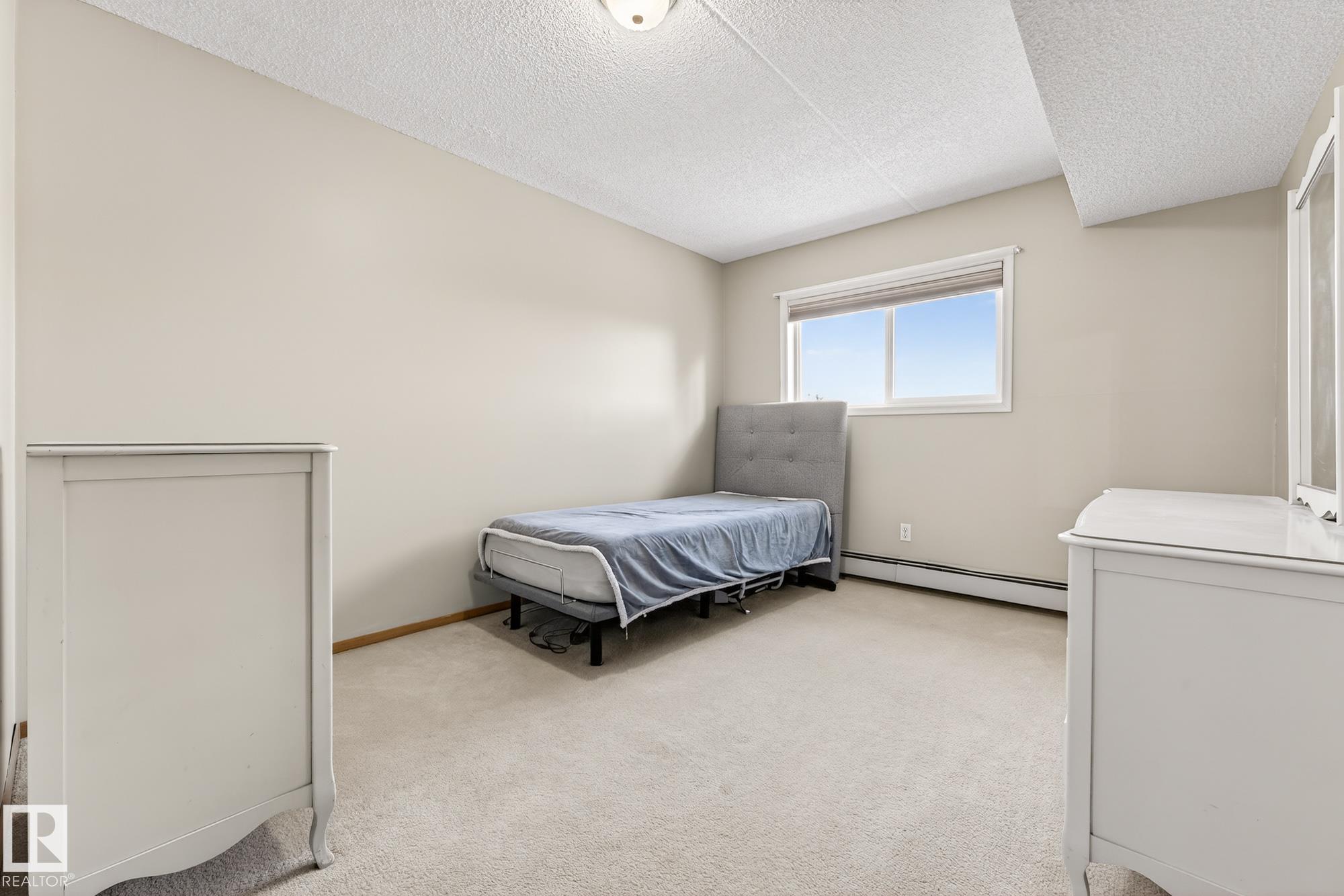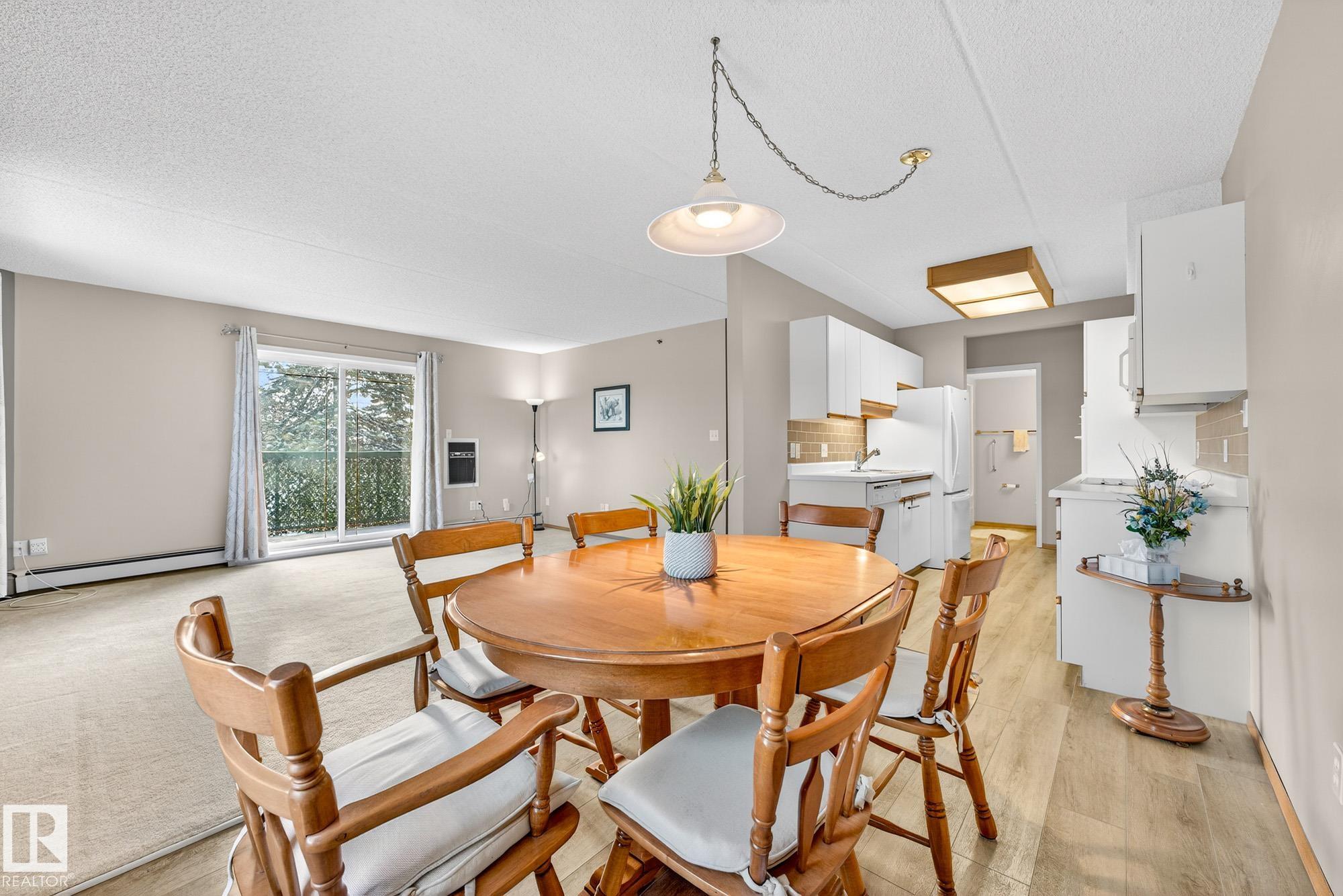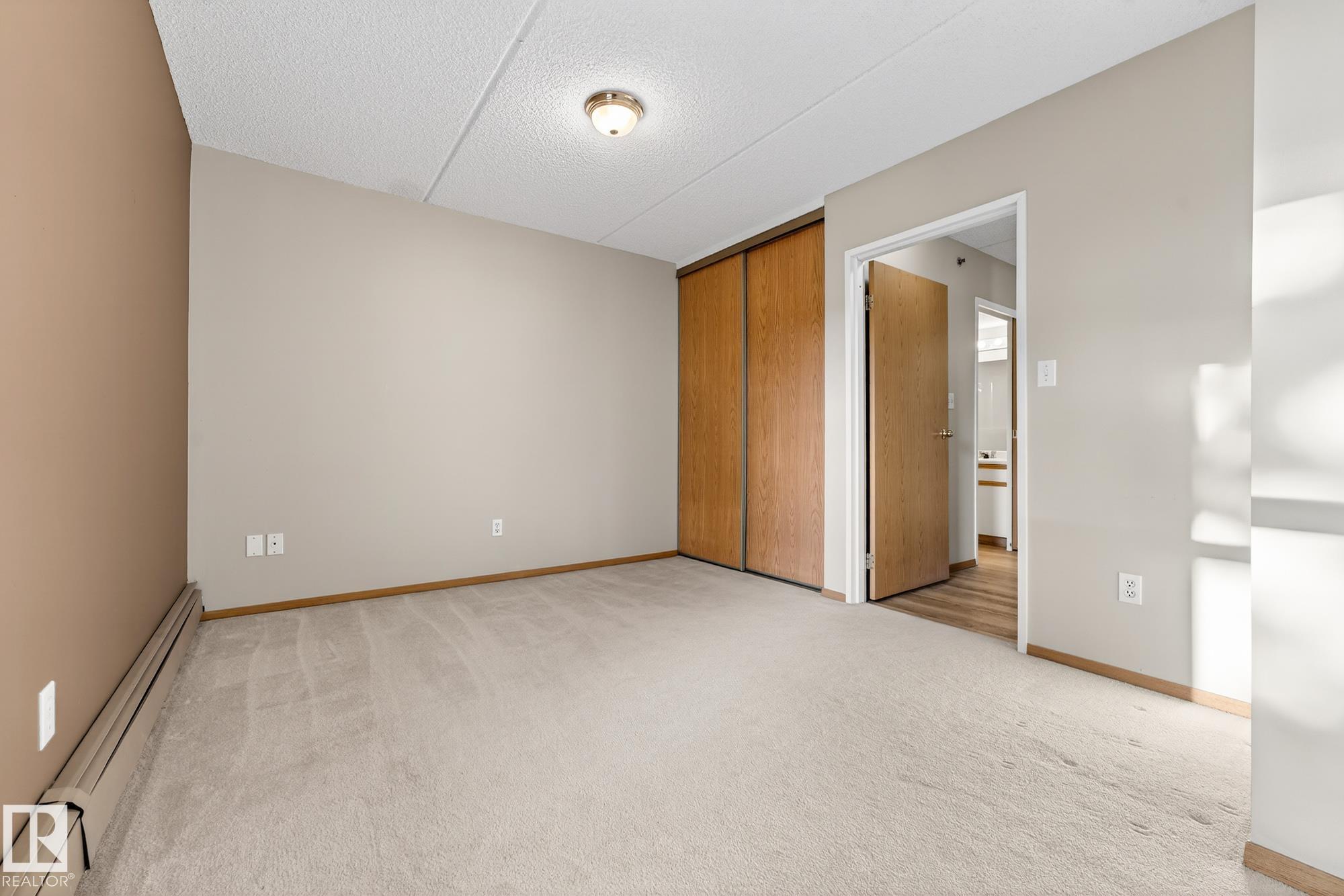 Spacious and well-appointed **corner unit** in a **55+ building (no pets allowed)**. Located on the **third floor**, this **largest suite in the building** features a **large wrap-around balcony** plus an additional **storage room**. Enjoy the comfort of a **steel and concrete construction** with **elevator access**, **wider hallways for wheelchair accessibility**, and a quiet, well-maintained community. The suite offers **newer vinyl plank flooring**, **window coverings included**, **in-suite laundry with storage**, and **A/C**. The functional layout includes a **4-piece main bath** and a **3-piece ensuite with stand-up walk-in shower**. One **assigned parking stall** is included. Within walking distance of all amenities **Condo fees cover cable, heat, water, and sewer**, providing excellent value. The **self-regulated condo board** is made up of resident owners with a strong vested interest in the building. A rare opportunity to own a bright, accessible, and move-in-ready home in a well-run community.