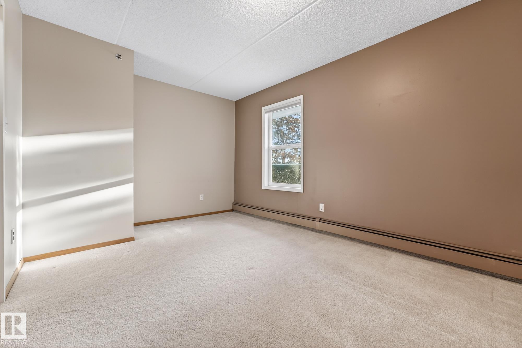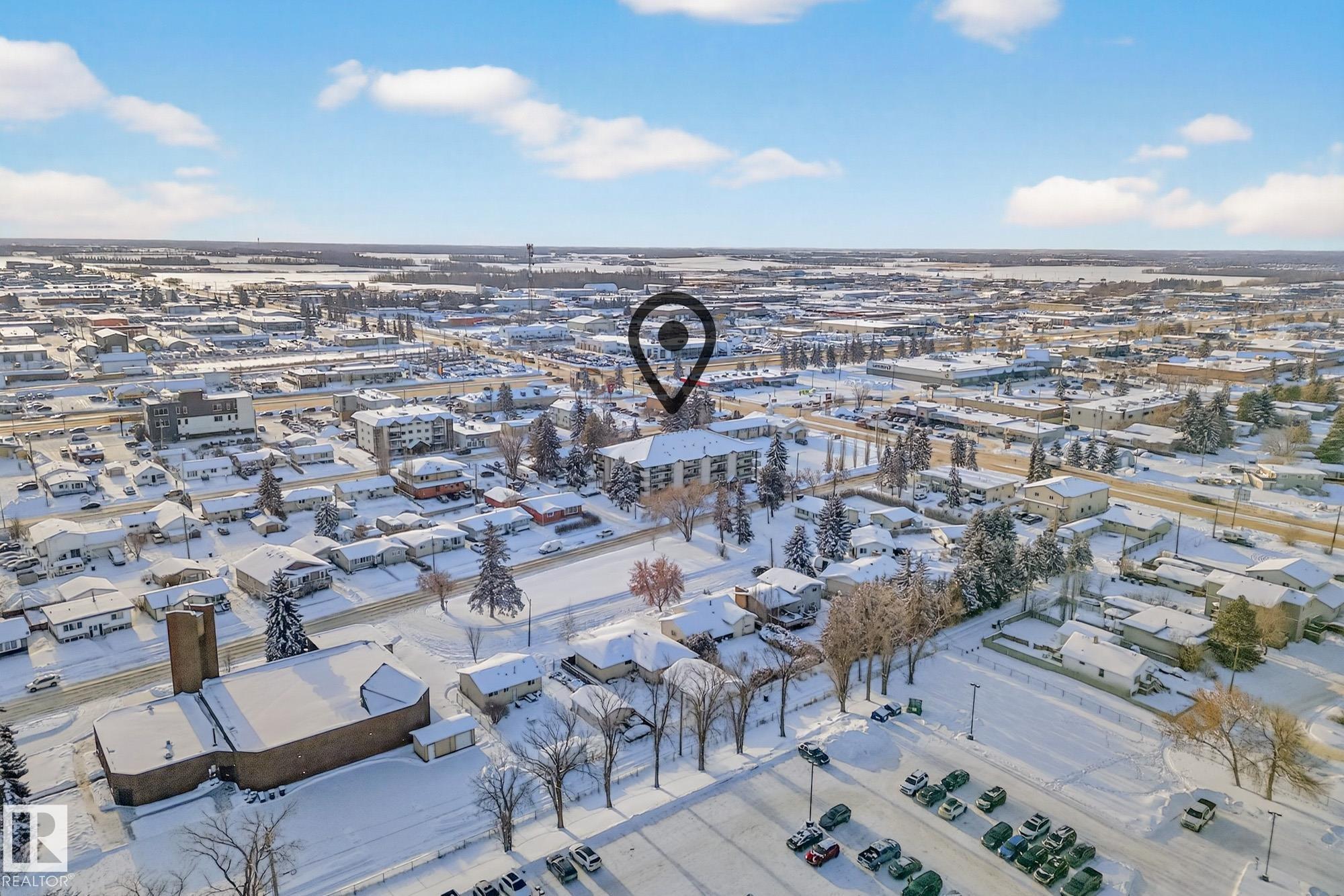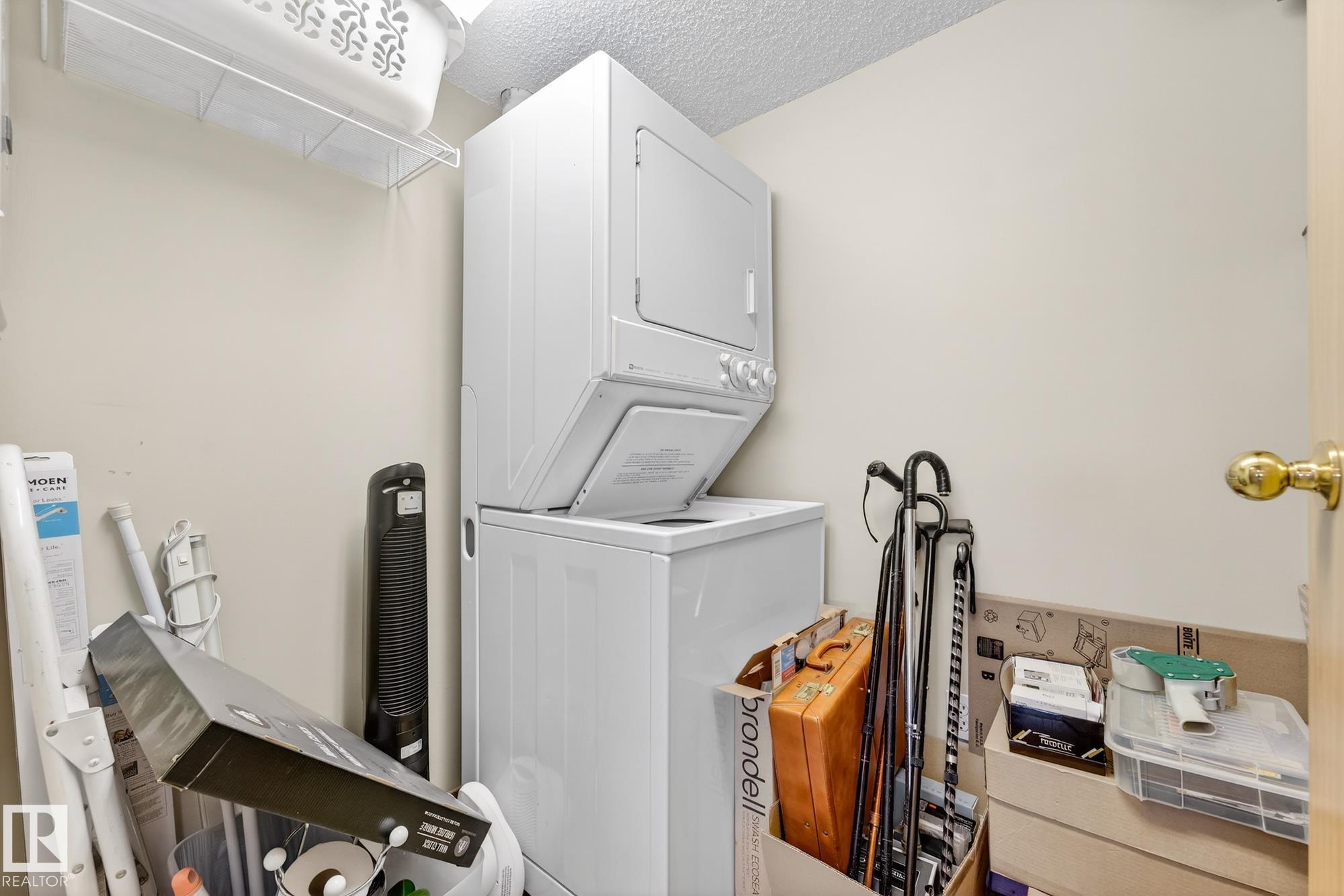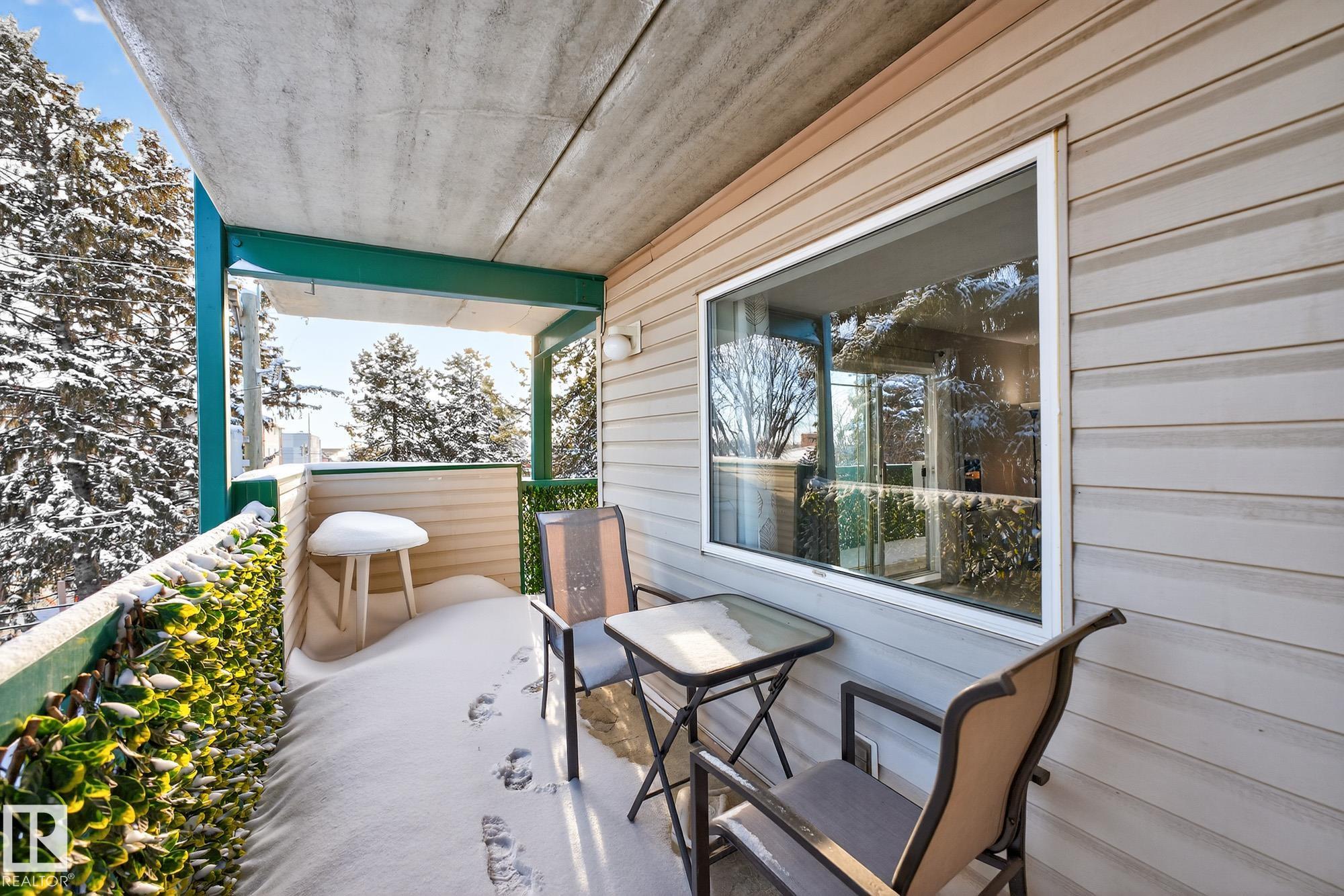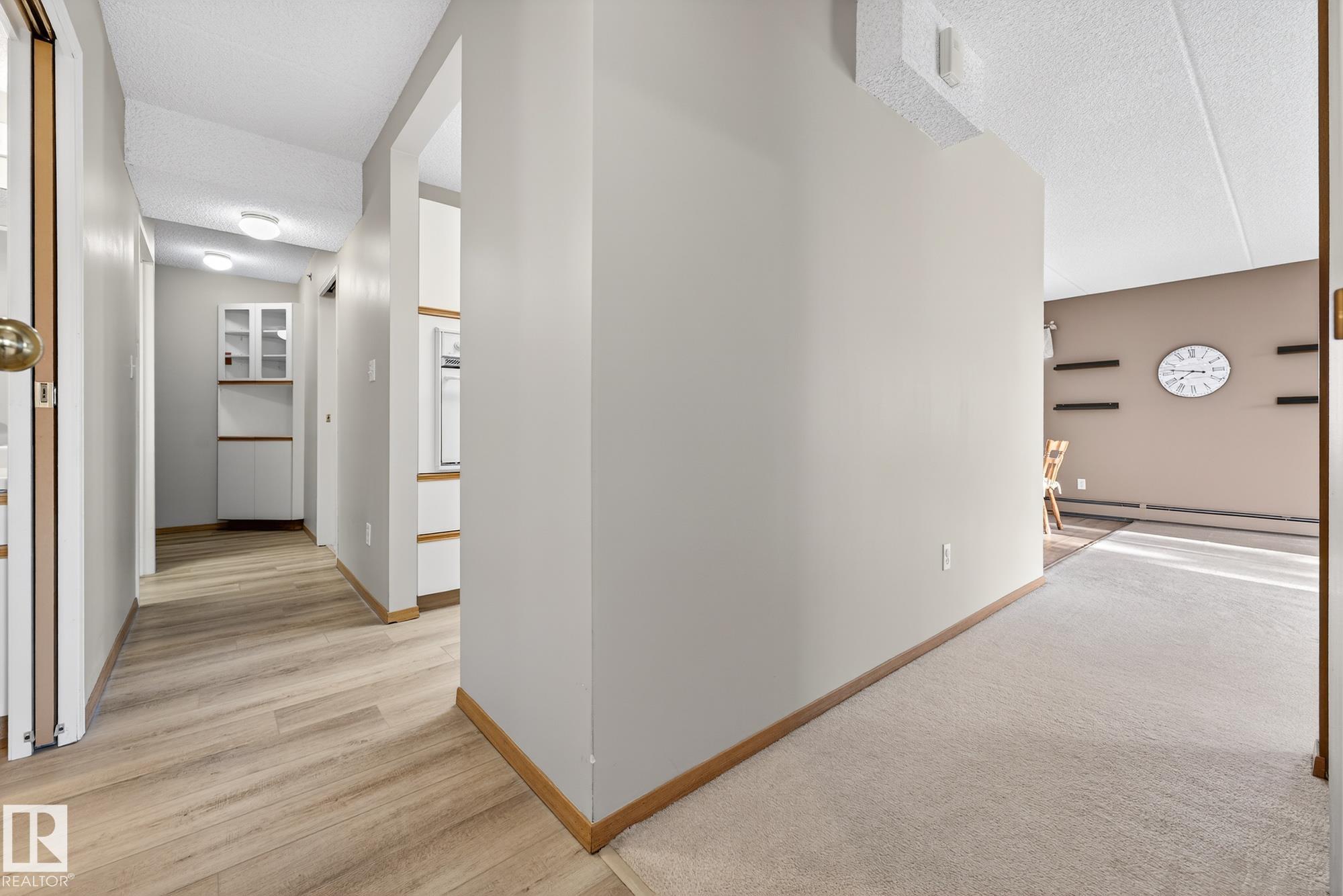 Spacious and well-appointed **corner unit** in a **55+ building (no pets allowed)**. Located on the **third floor**, this **largest suite in the building** features a **large wrap-around balcony** plus an additional **storage room**. Enjoy the comfort of a **steel and concrete construction** with **elevator access**, **wider hallways for wheelchair accessibility**, and a quiet, well-maintained community. The suite offers **newer vinyl plank flooring**, **window coverings included**, **in-suite laundry with storage**, and **A/C**. The functional layout includes a **4-piece main bath** and a **3-piece ensuite with stand-up walk-in shower**. One **assigned parking stall** is included. Within walking distance of all amenities **Condo fees cover cable, heat, water, and sewer**, providing excellent value. The **self-regulated condo board** is made up of resident owners with a strong vested interest in the building. A rare opportunity to own a bright, accessible, and move-in-ready home in a well-run community.