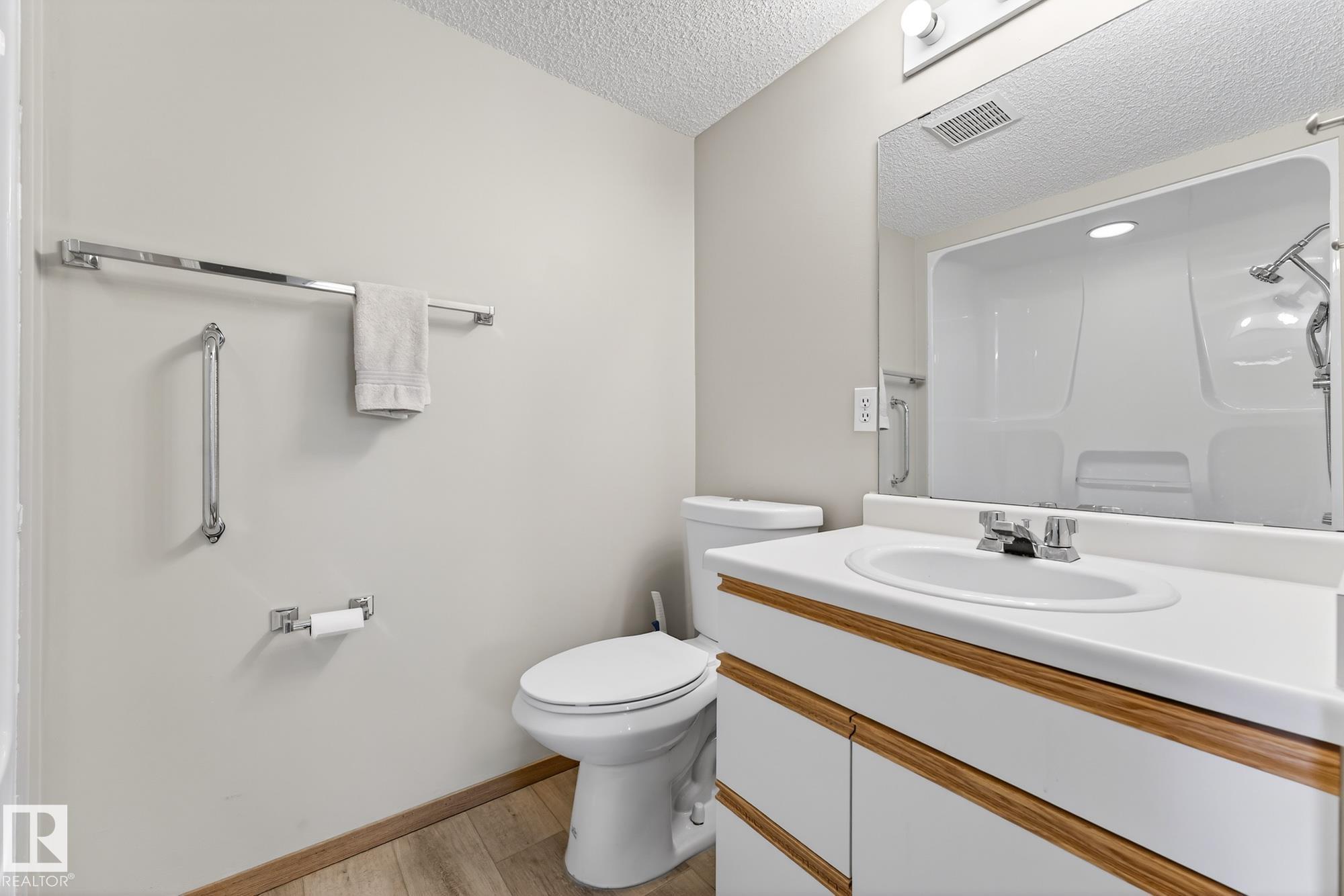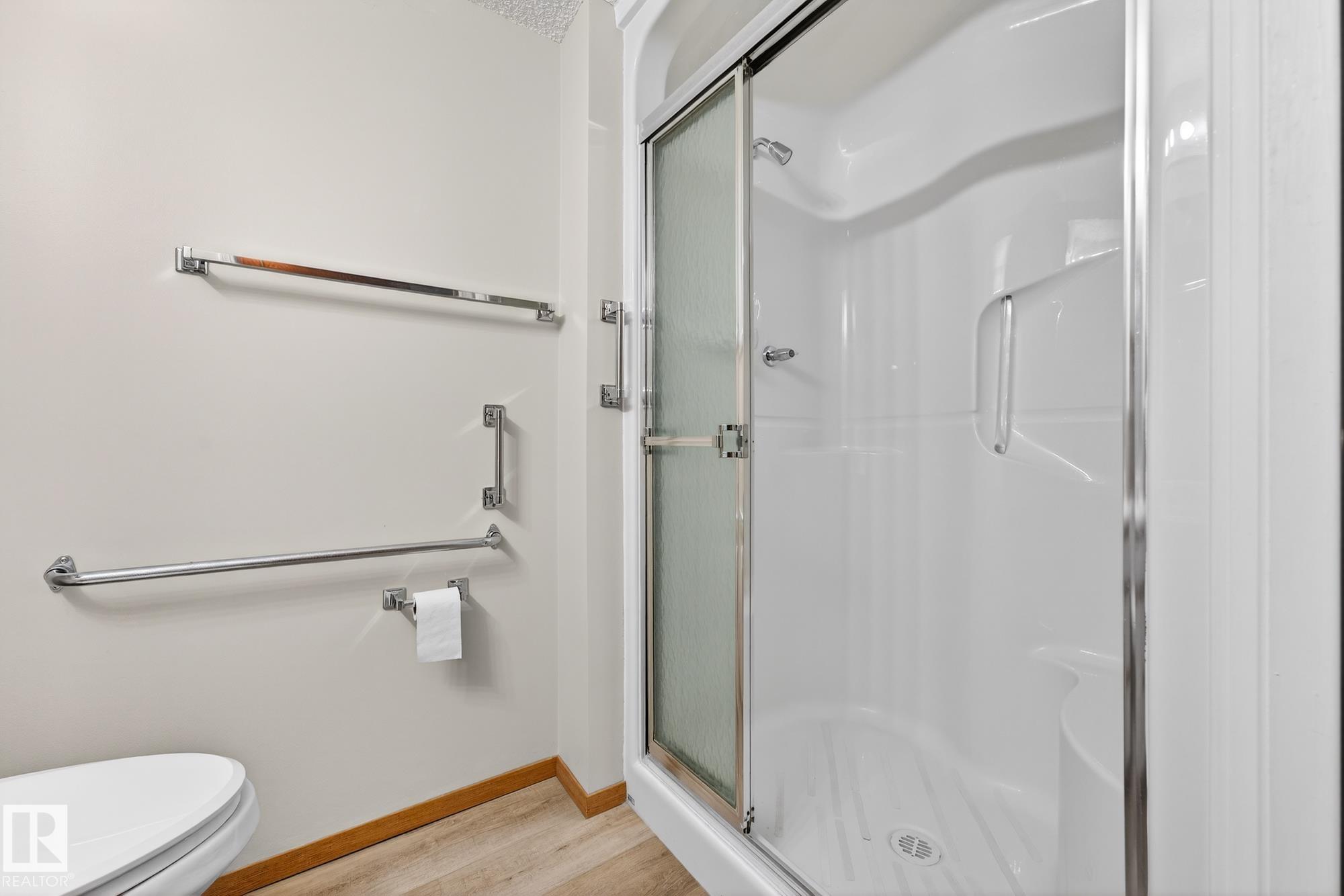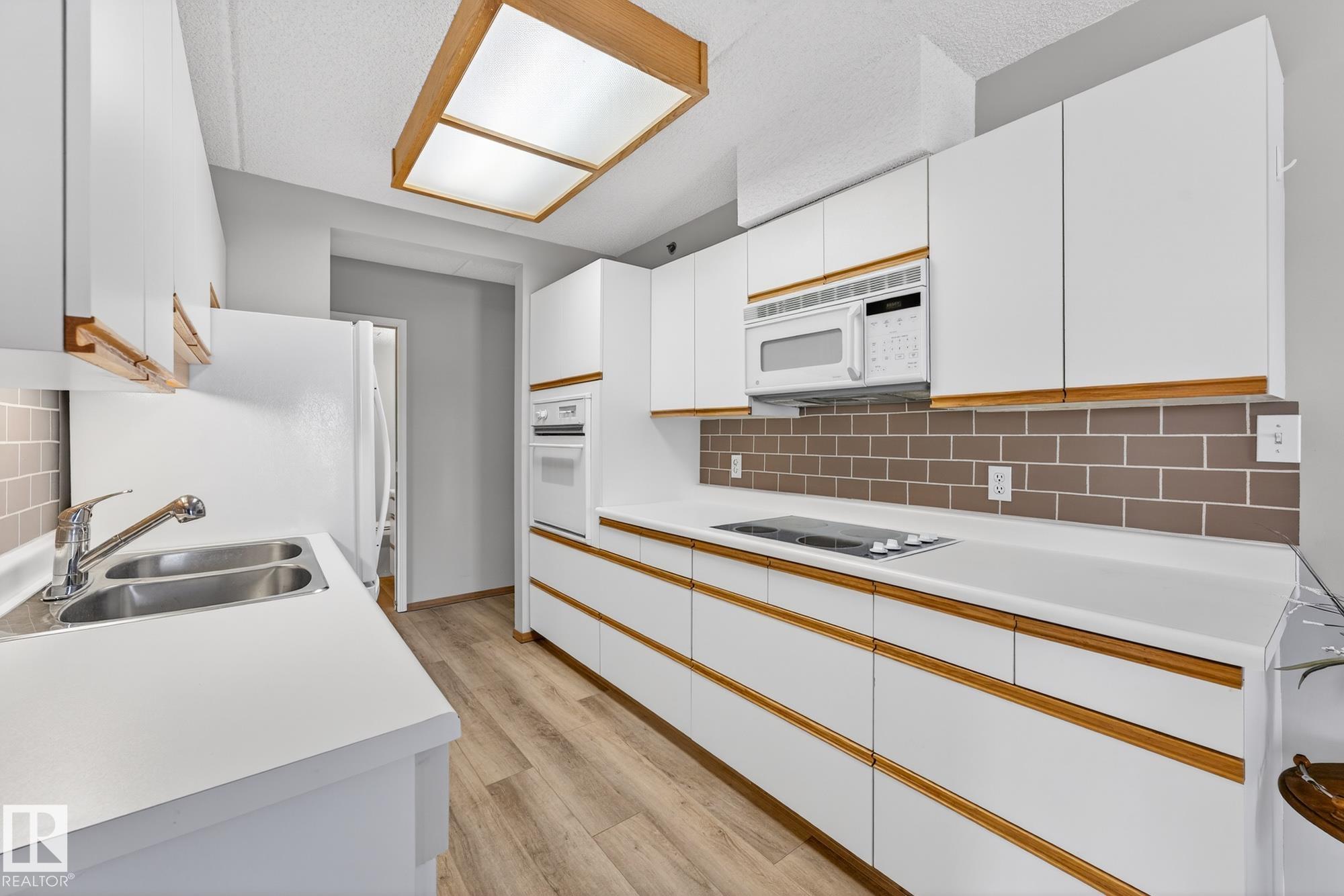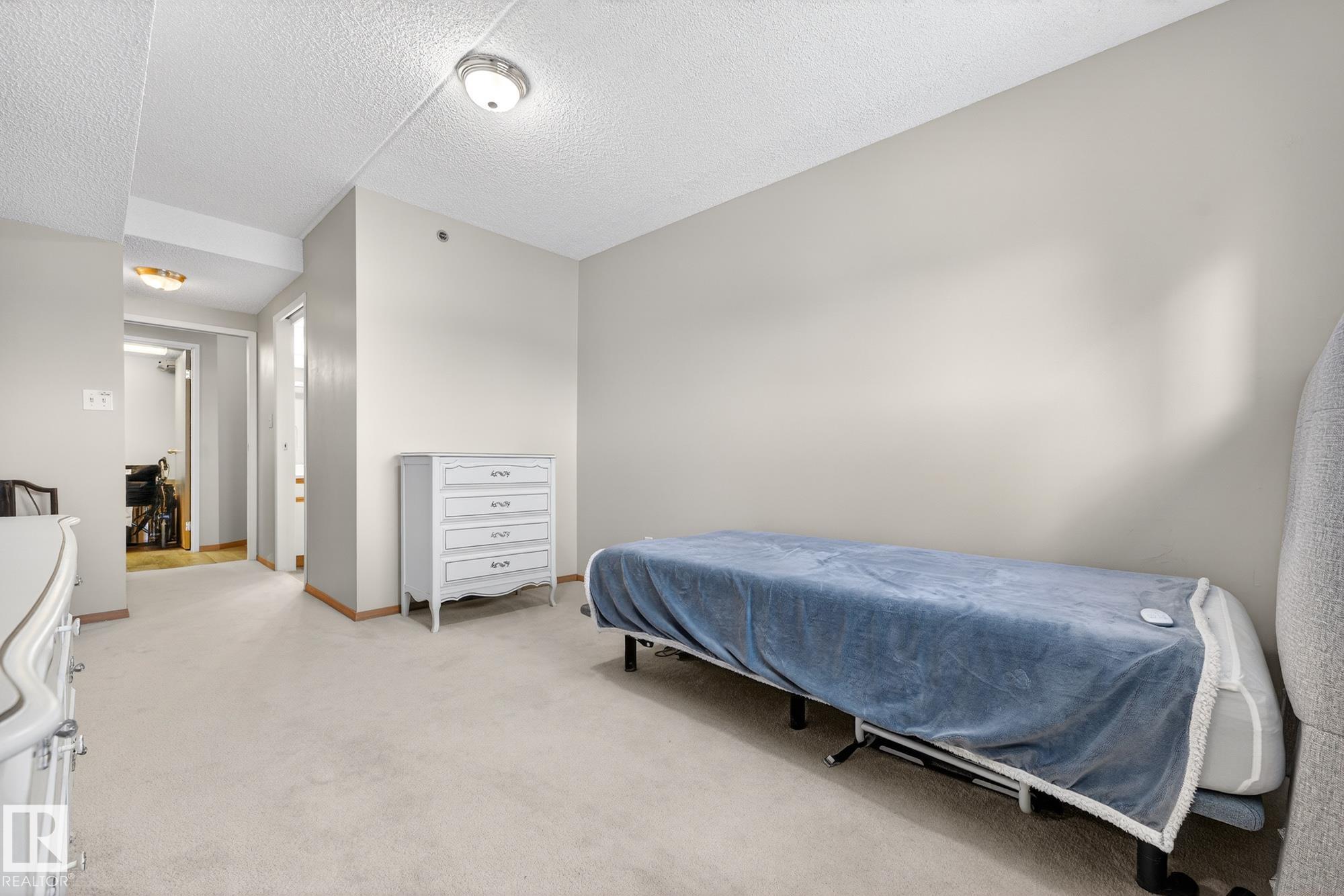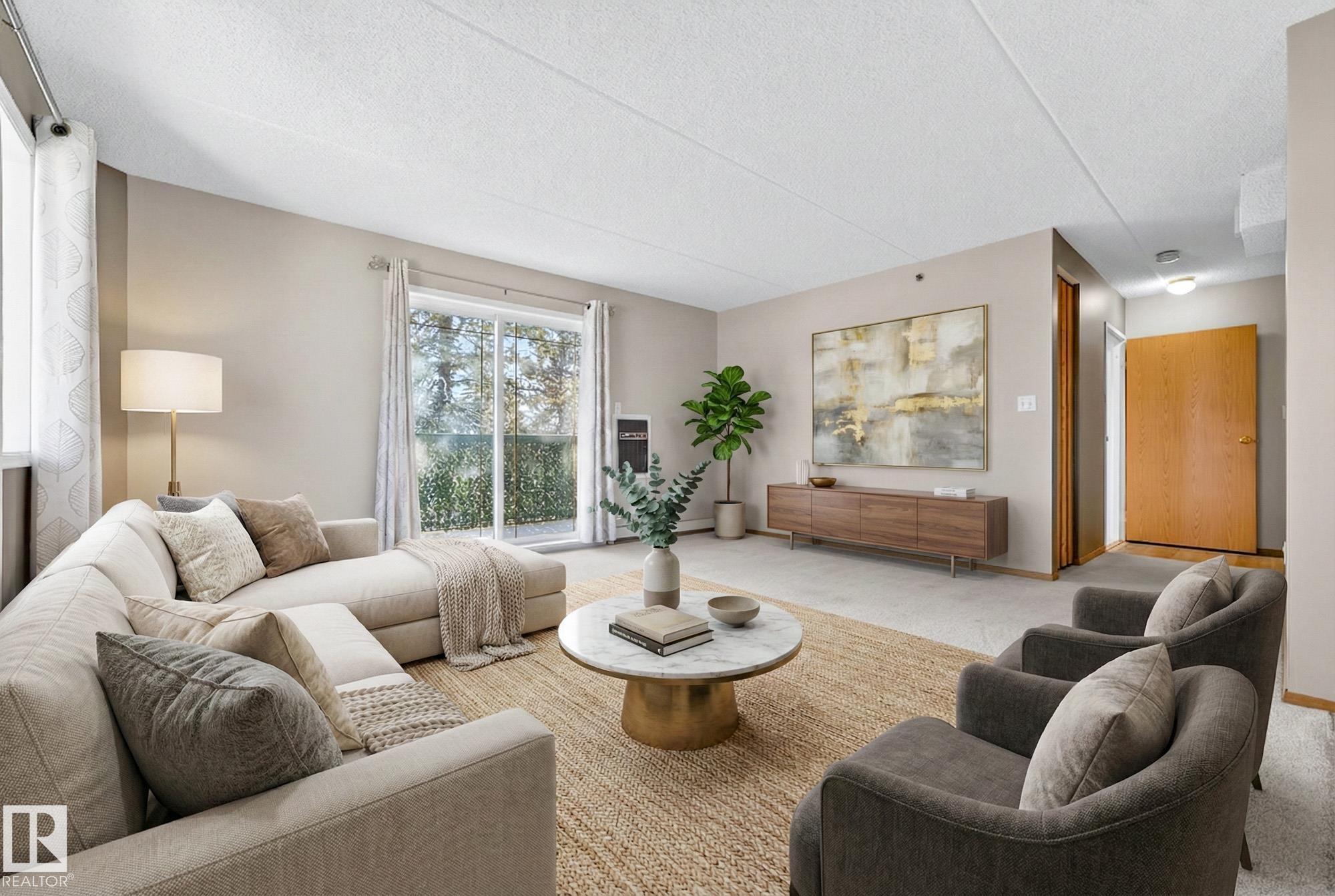 Spacious and well-appointed **corner unit** in a **55+ building (no pets allowed)**. Located on the **third floor**, this **largest suite in the building** features a **large wrap-around balcony** plus an additional **storage room**. Enjoy the comfort of a **steel and concrete construction** with **elevator access**, **wider hallways for wheelchair accessibility**, and a quiet, well-maintained community. The suite offers **newer vinyl plank flooring**, **window coverings included**, **in-suite laundry with storage**, and **A/C**. The functional layout includes a **4-piece main bath** and a **3-piece ensuite with stand-up walk-in shower**. One **assigned parking stall** is included. Within walking distance of all amenities **Condo fees cover cable, heat, water, and sewer**, providing excellent value. The **self-regulated condo board** is made up of resident owners with a strong vested interest in the building. A rare opportunity to own a bright, accessible, and move-in-ready home in a well-run community.