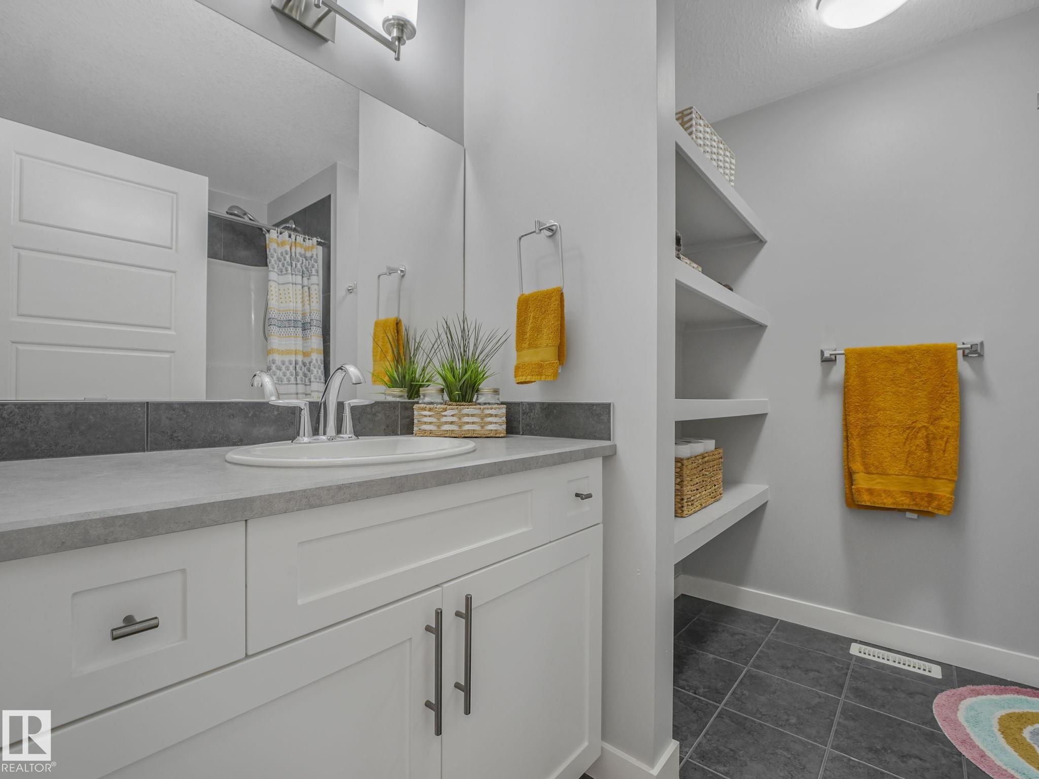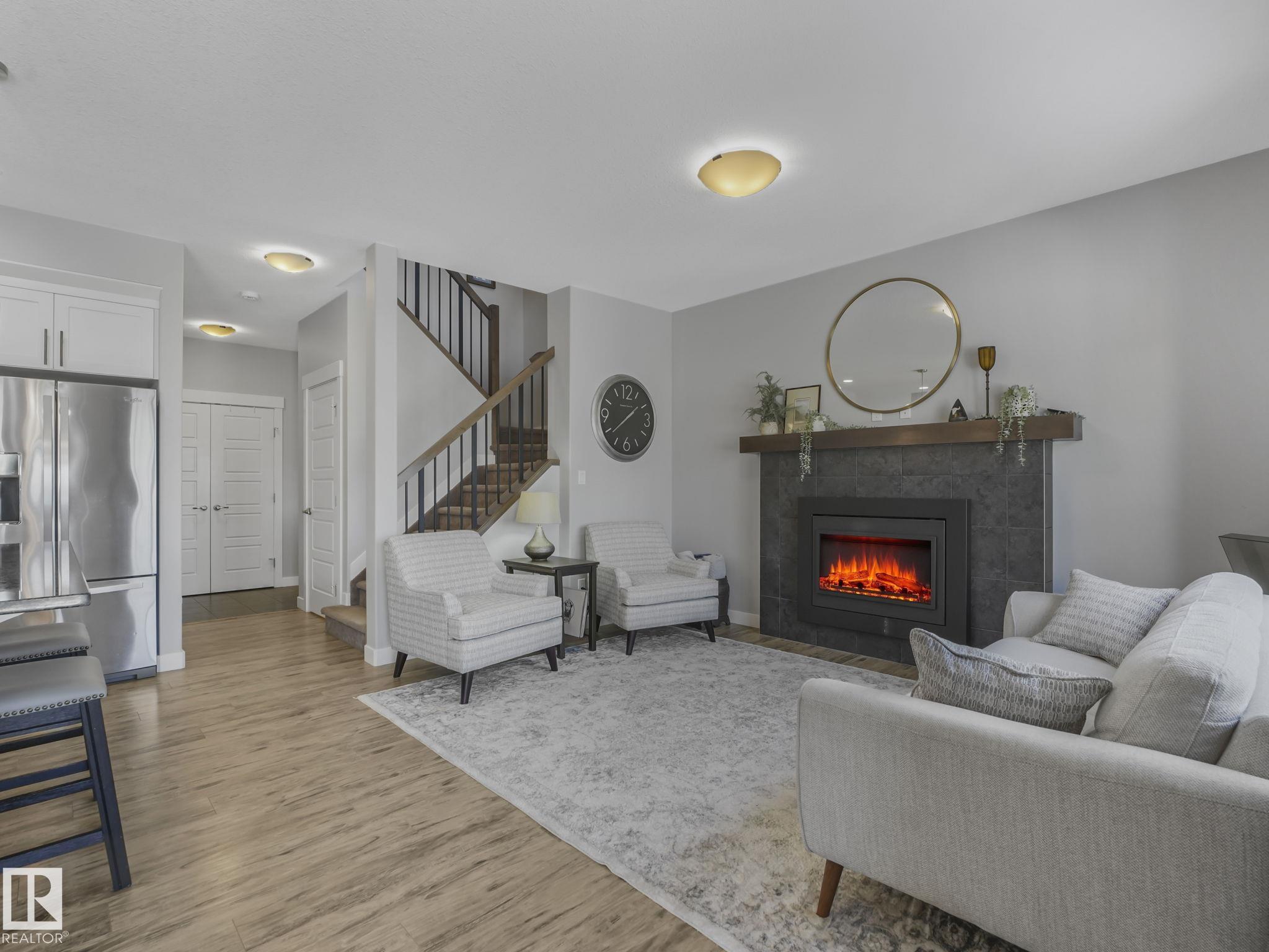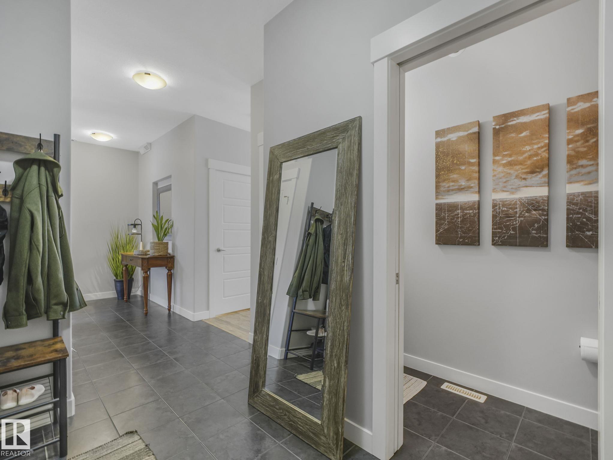 This lovely 1834 sq. ft. home is backing onto the 60 acre Jubilee Park with walking trails, playground and spray park right out your gate and all tucked into a quiet side street. The large west facing deck with a pergola and a fenced yard is enhanced by mature trees along the back fence ensuring your privacy. The open concept design on the main floor features quartz countertops in the kitchen, a dining space and a lovely gas fireplace in the living room all enhanced by beautiful triple pane west facing windows and air conditioned comfort. Upstairs features a generous primary suite with 3 pc. ensuite and large walk in closet, a large loft/bonus room 2 additional bedrooms and laundry. You are within easy walking distance to the Prescott k-9 school and a child care center. The attached double garage has parking for 2 extra vehicles on the parking pad. The partly finished basement offers an extra living area and is roughed in for plumbing. This great location is with easy access to Highways 16 and 16a.