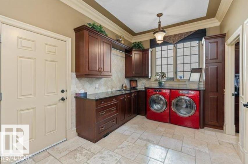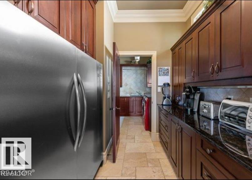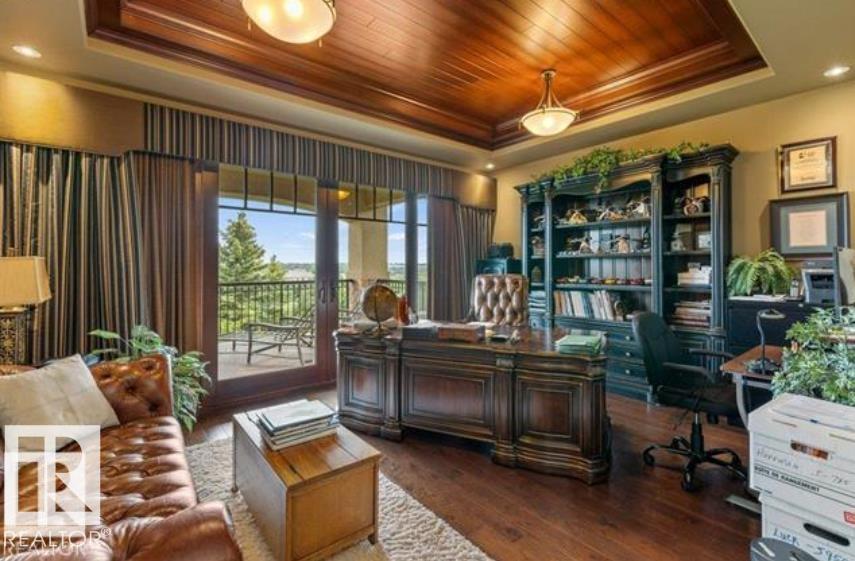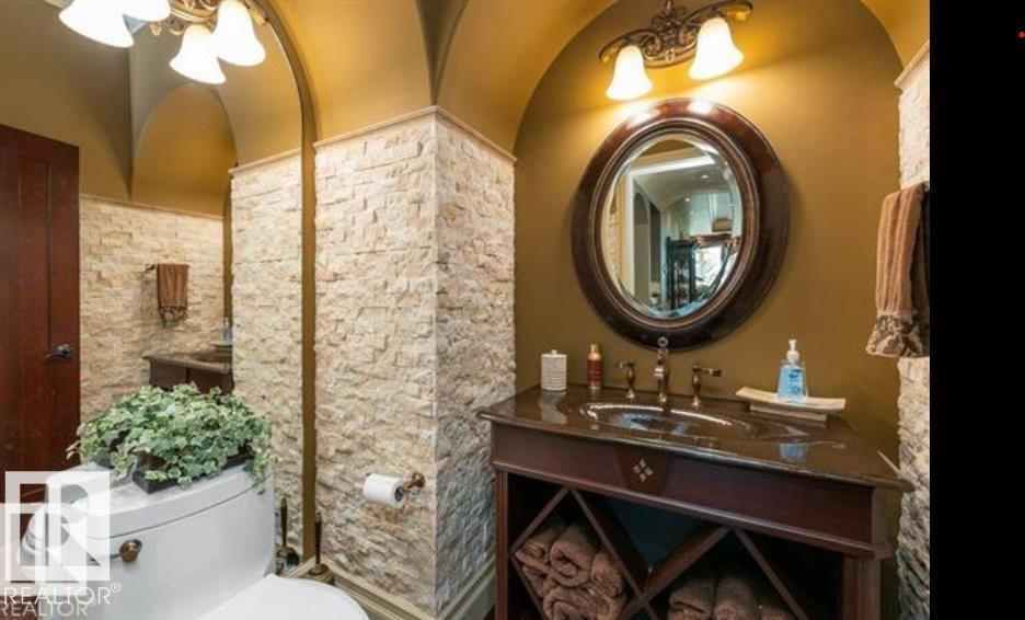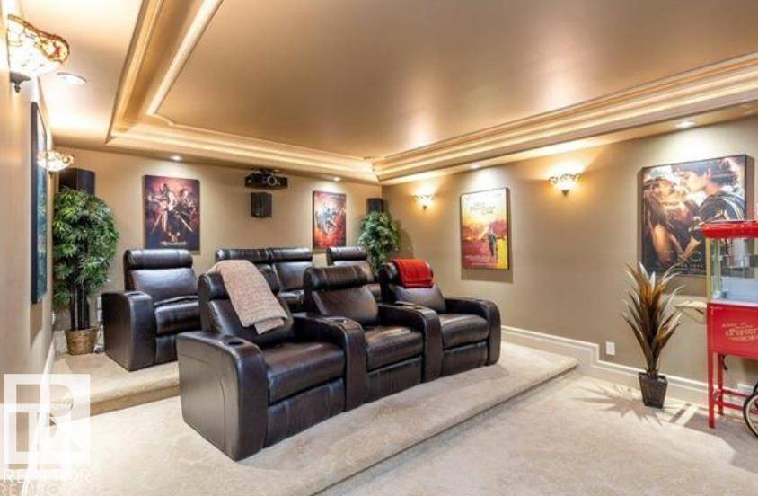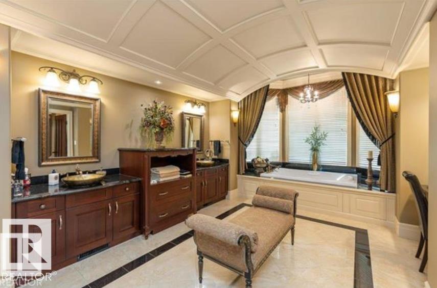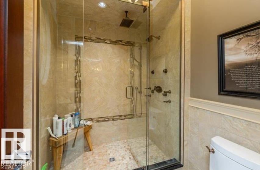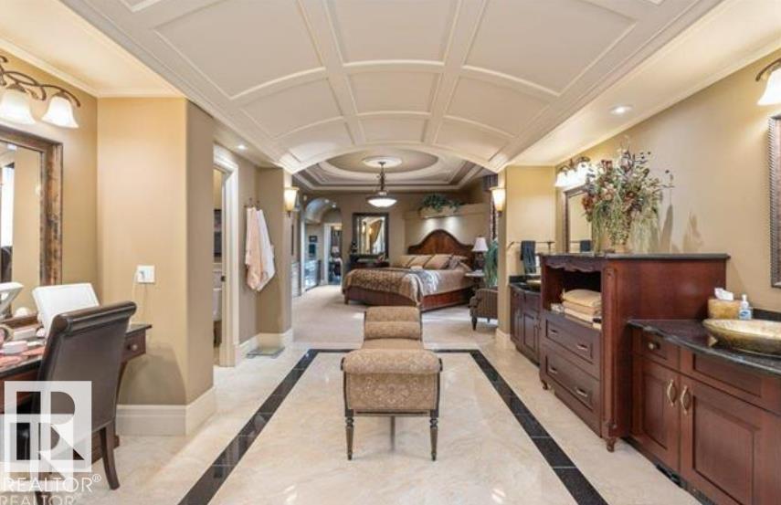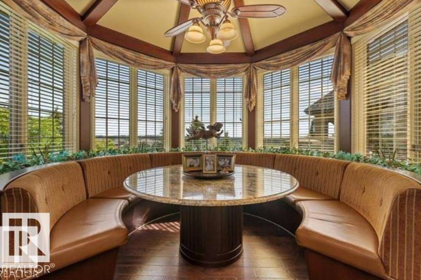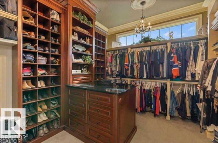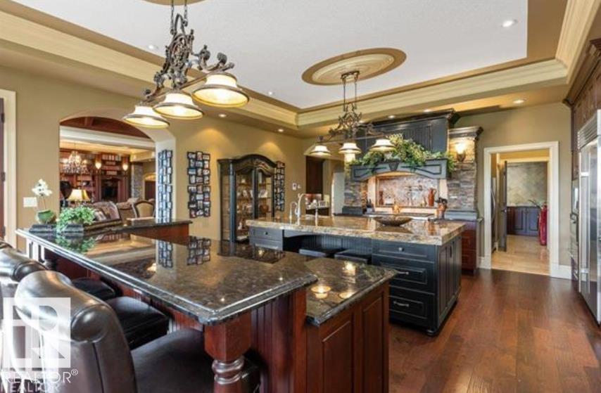 Wow! Wow! Wow! This Audie Benson Estate Homes showhome is the grandest of the grand! 7100 sq ft of luxury living on .72 acres of gorgeous river valley views in prestigious Riverstone Pointe, minutes out of St. Albert & to the Anthony Henday. The curb appeal is unsurpassed with drive through portico, natural iron stone, copper chimneys & capolas & iron security gate. Step across the threshold into an elegant foyer w/views of the Great Room, boasting 20' open vaulted cherry ceilings, an exquisite formal dining room & music room, wall-to-wall & floor to ceiling library complete with sliding ladder. The den is perfectly situated off the luxurious master suite & library. This magnificent walkout bungalow boasts awards for best kitchen & best ensuite in North America. Main floor access to the south backing upper patio, with views of double waterfalls, bridges & rose gardens. The lower level includes a gathering room, games room, theatre, old world wine cellar, fitness room w/massage area. 53-25015 TWP ROAD 544A