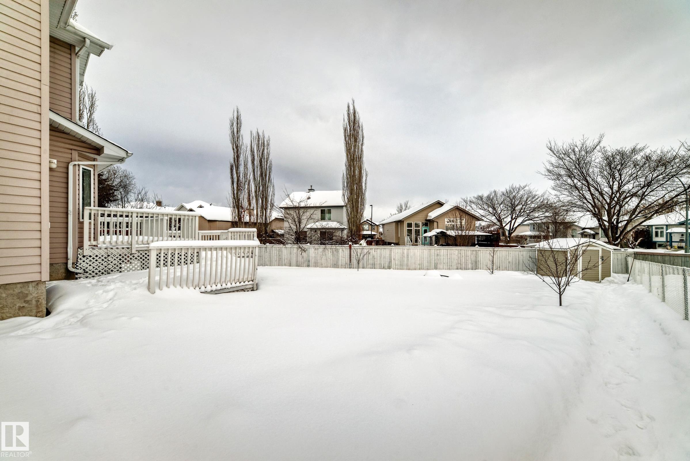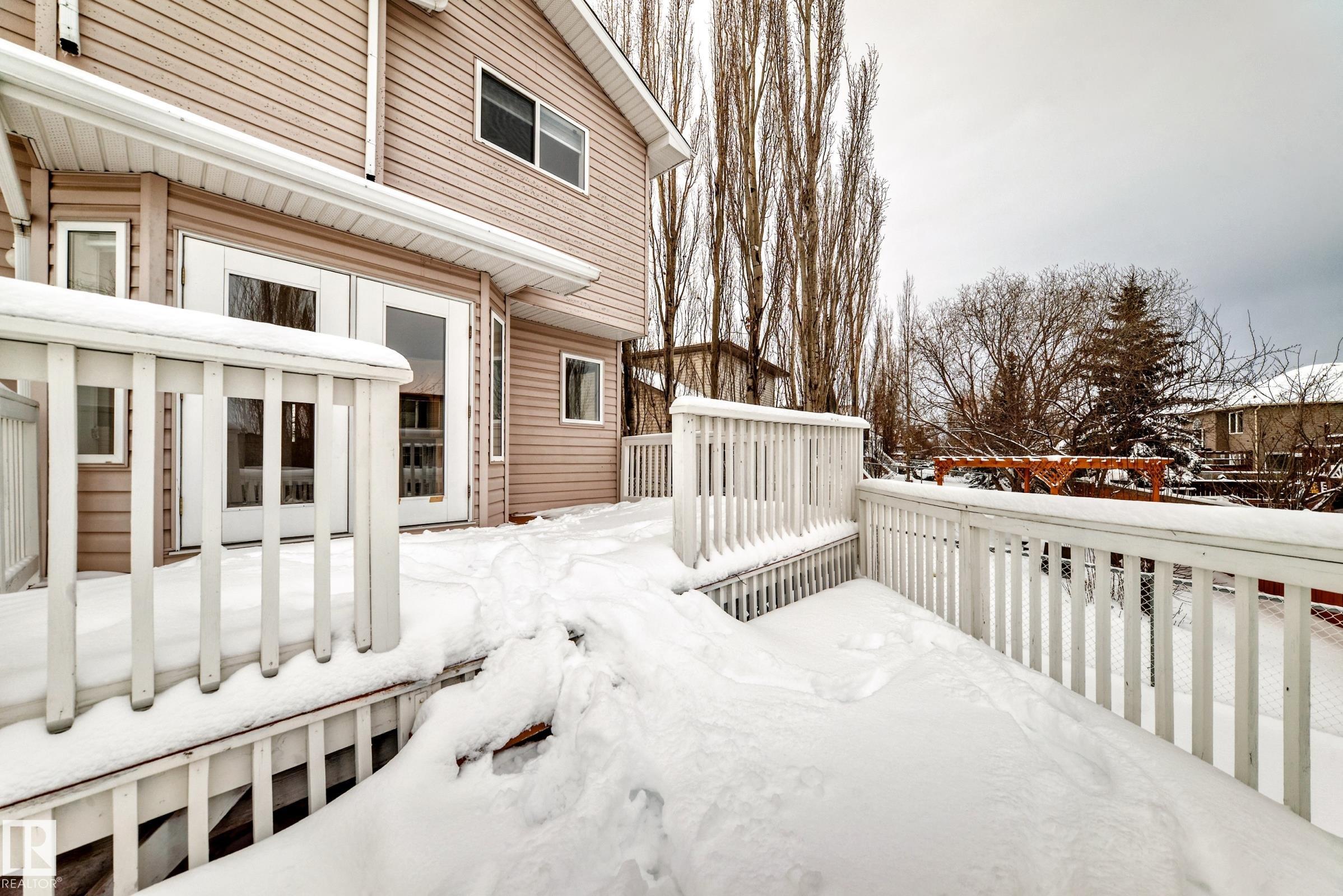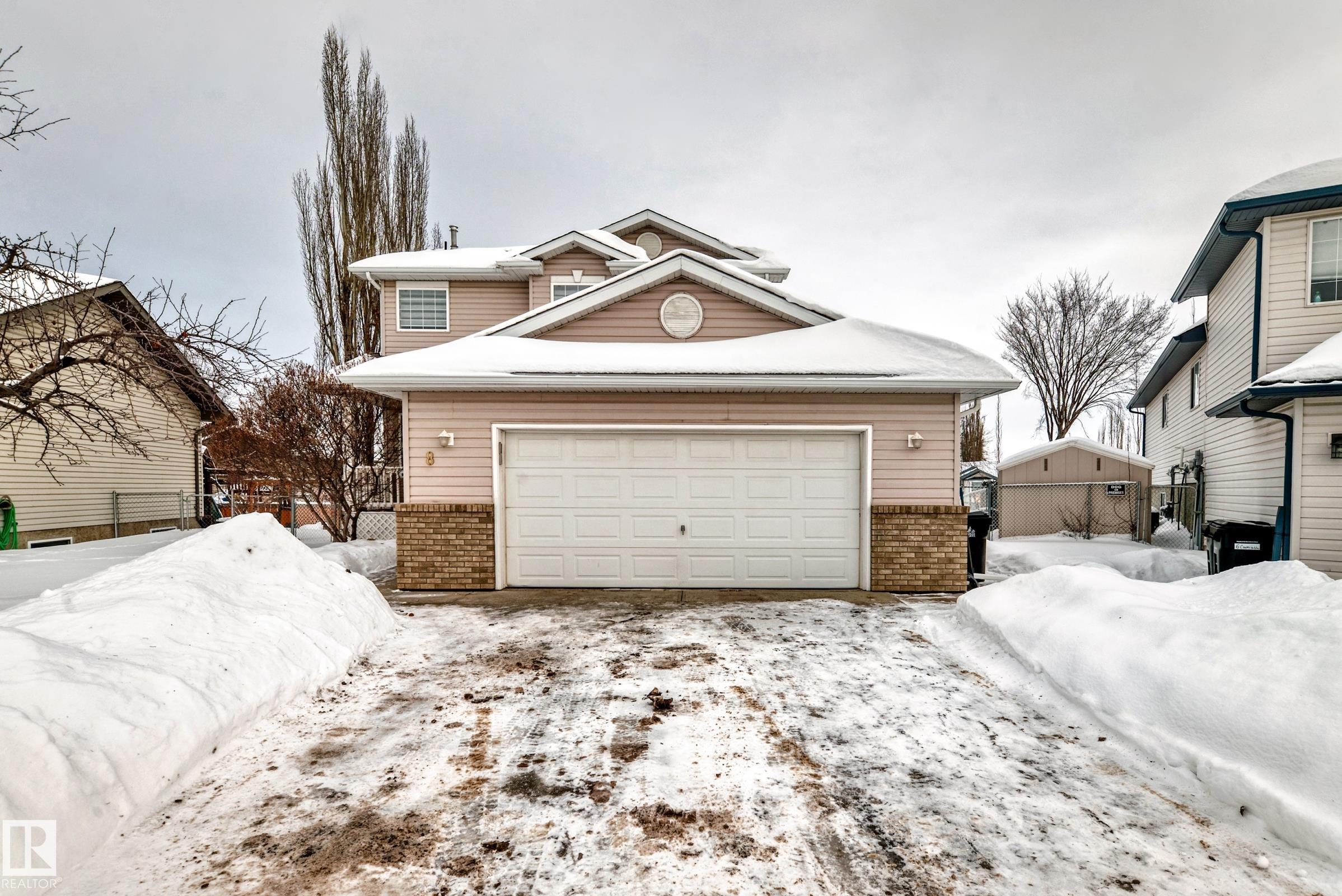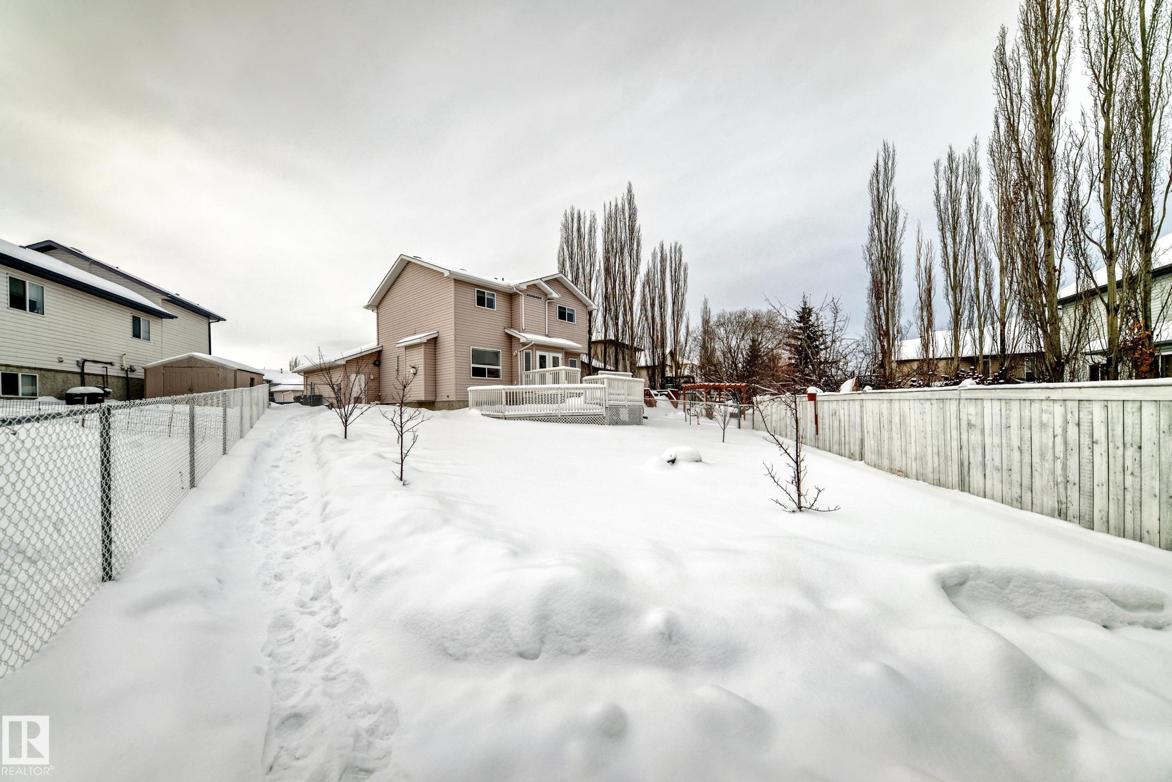 This move-in-ready property features refinished hardwood floors, fresh paint, two-tone custom cabinetry with quartz countertops, s/s appliances, and an open-concept main floor. Offering 4 bedrooms & 4 bathrooms, main floor laundry, there is plenty of space for the whole family. Upstairs boasts a spacious primary retreat with walk-in closet & 4-pc ensuite, 2 additional bedrooms & updated 4-pc bath. The fully developed basement offers a large rec room, 4th bedroom, and renovated 4-piece bathroom?ideal for guests or growing families. Additional highlights include an o/s attached insulated garage, updated furnace, venting, humidifier, and hot water tank Dec 24, and shingles replaced in 2022. Situated on a massive pie lot on a quiet street w/ backyard oasis - multi-tier deck, fruit trees, fire pit, and plenty of space for kids or pets. Located near Spruce Groves largest forested trail system, parks, ice rink, schools and all amenities, with quick access to commuting highways, this home truly has it all!