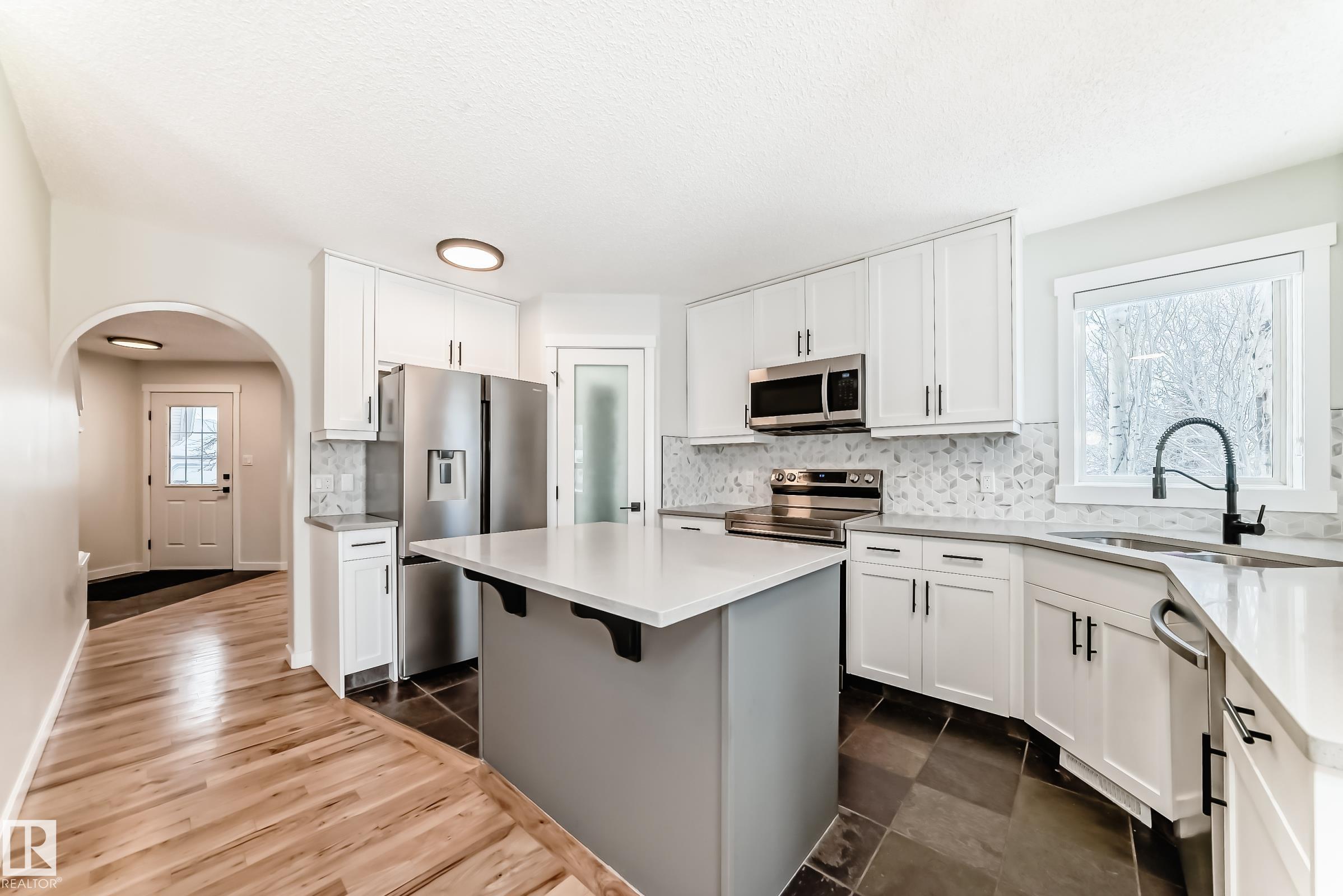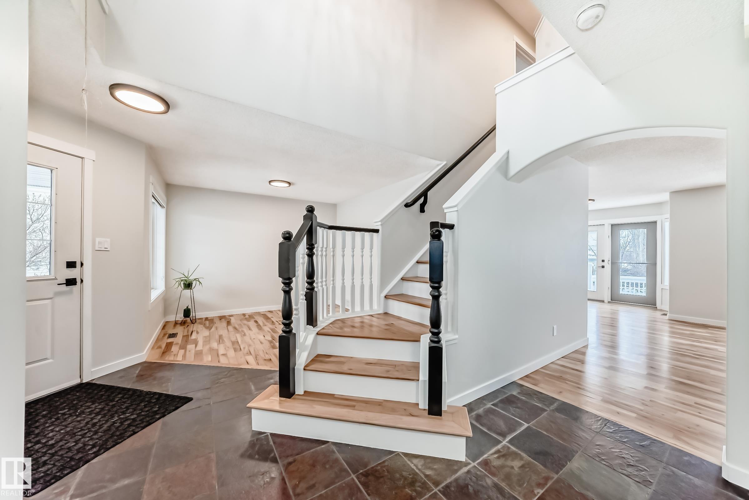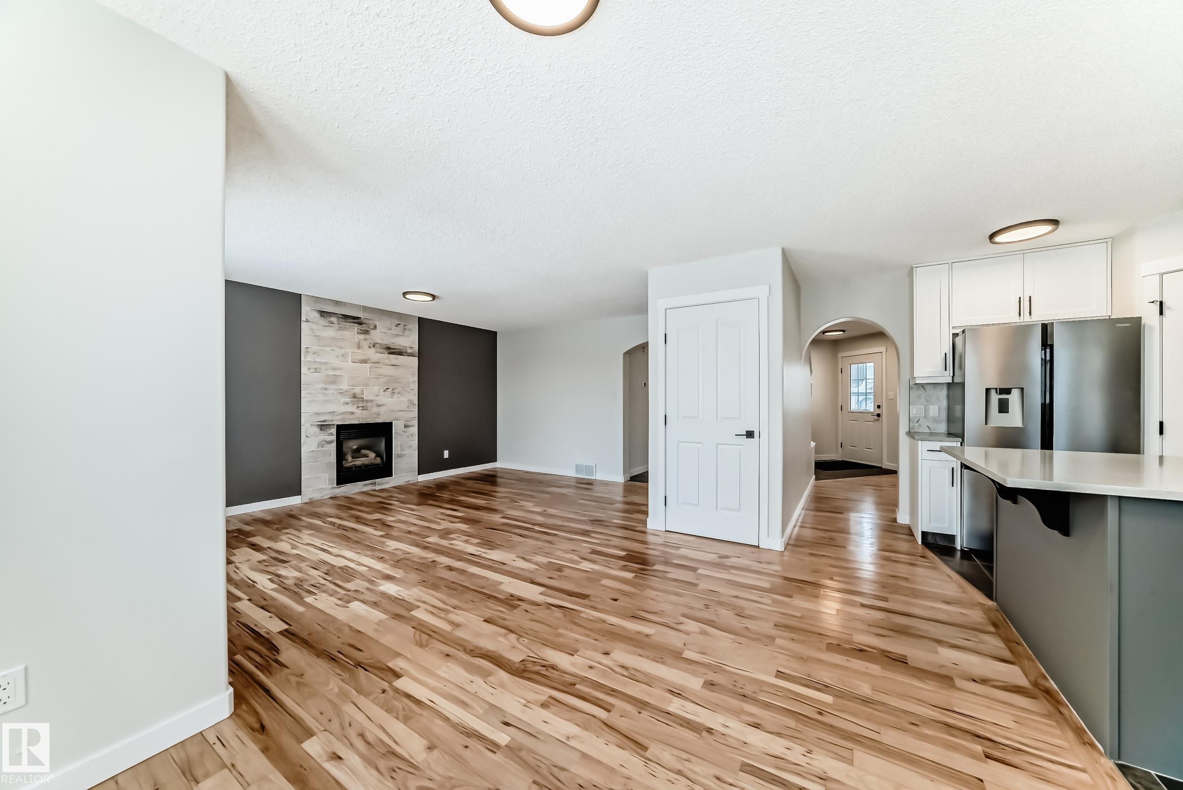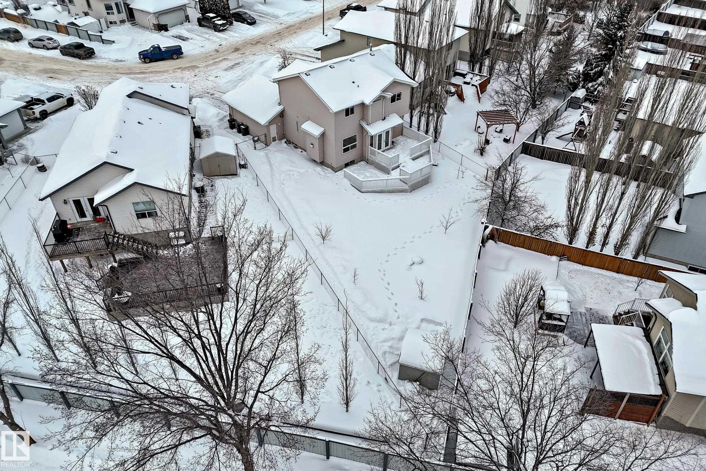 This move-in-ready property features refinished hardwood floors, fresh paint, two-tone custom cabinetry with quartz countertops, s/s appliances, and an open-concept main floor. Offering 4 bedrooms & 4 bathrooms, main floor laundry, there is plenty of space for the whole family. Upstairs boasts a spacious primary retreat with walk-in closet & 4-pc ensuite, 2 additional bedrooms & updated 4-pc bath. The fully developed basement offers a large rec room, 4th bedroom, and renovated 4-piece bathroom?ideal for guests or growing families. Additional highlights include an o/s attached insulated garage, updated furnace, venting, humidifier, and hot water tank Dec 24, and shingles replaced in 2022. Situated on a massive pie lot on a quiet street w/ backyard oasis - multi-tier deck, fruit trees, fire pit, and plenty of space for kids or pets. Located near Spruce Groves largest forested trail system, parks, ice rink, schools and all amenities, with quick access to commuting highways, this home truly has it all!