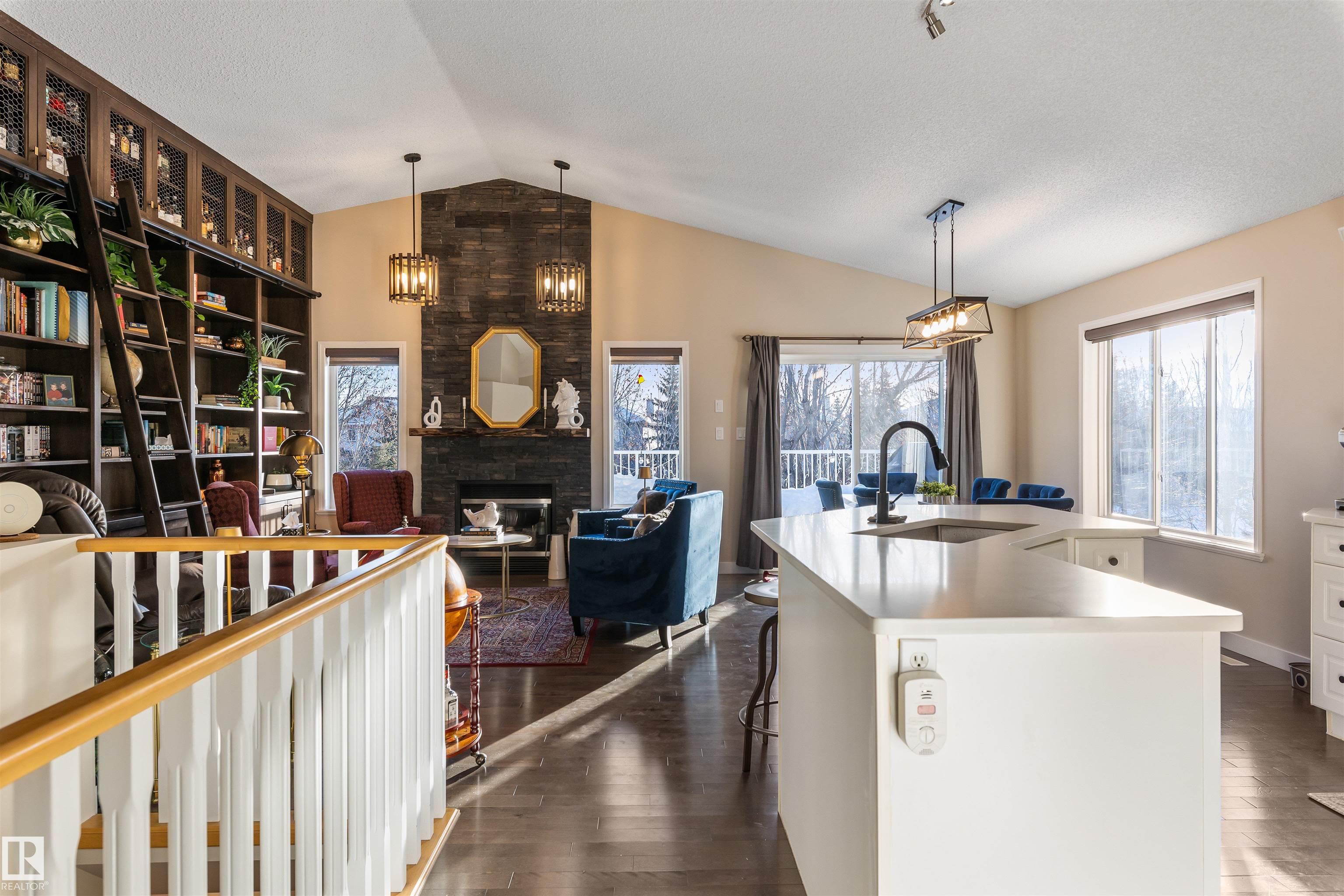 On a quiet crescent in Northridge, discover this charming WALKOUT BUNGALOW backing onto Newbury PARK. This home has great curb appeal w/ a covered front deck. The entrance welcomes guests into an OPEN DESIGN featuring a white kitchen w/ QUARTZ counters, eating bar island, corner pantry, tile backsplash, pot/pan drawers, crown moulding trim on the upper cabinets & s/s appliances. The living room has soaring VAULTED CEILINGS, a gas f/p w/ stone front, a wood mantle & a stunning library wall. The dining nook has access out to the maintenance free back deck w/ gorgeous park views. A French door leads into a front office w/ hardwood flooring which flows throughout most of the main floor. The garage entrance has the laundry facilities. There are 2 main floor bedrooms, a 4pce bath & a 3pce ensuite. The fully finished WALKOUT basement has a 2nd kitchen, family room w/ f/p, 3rd bedroom, hobby room, 4pce bath & a 2nd laundry room. A double attached OVERSIZED HEATED garage completes this excellent property!