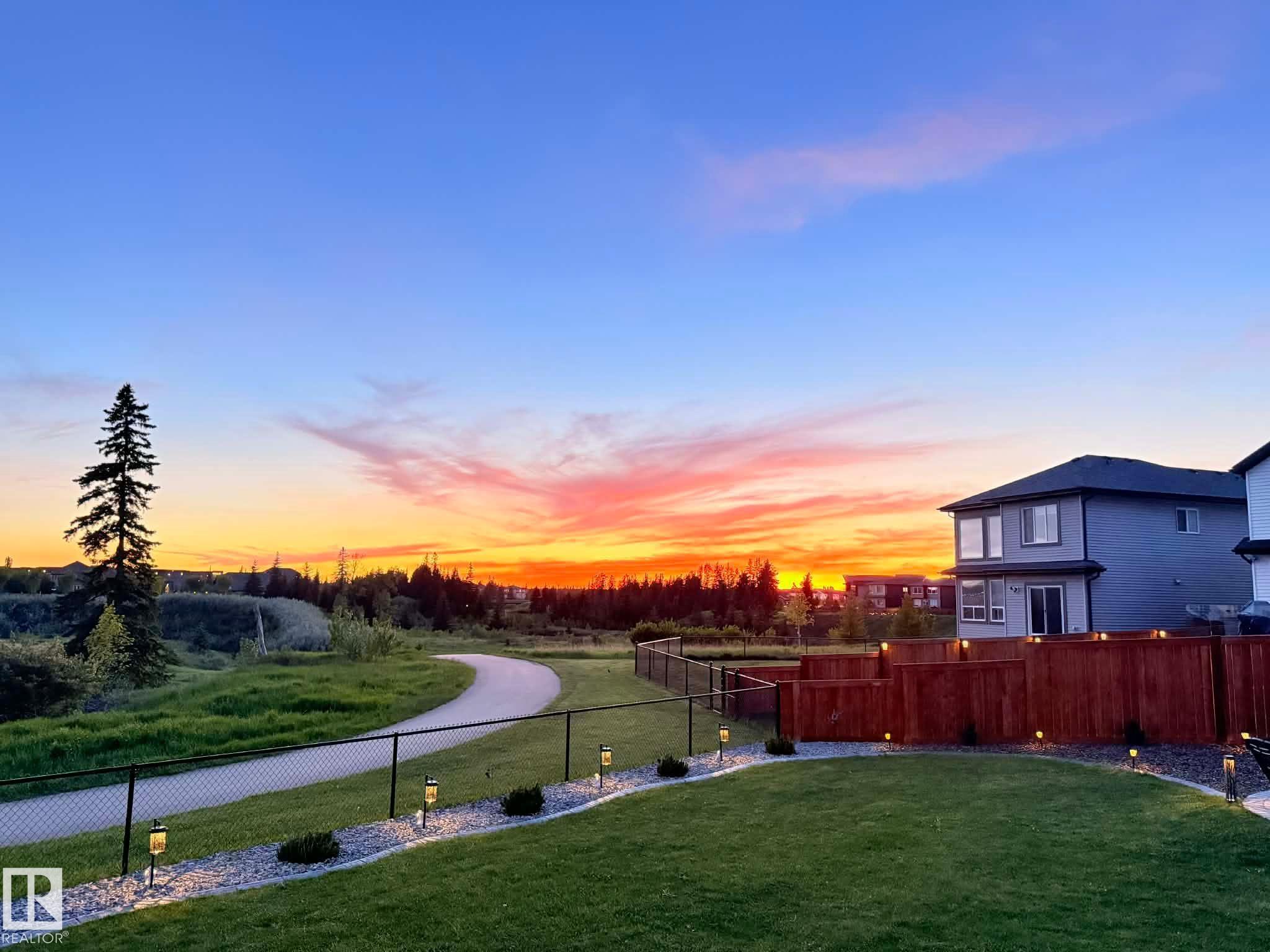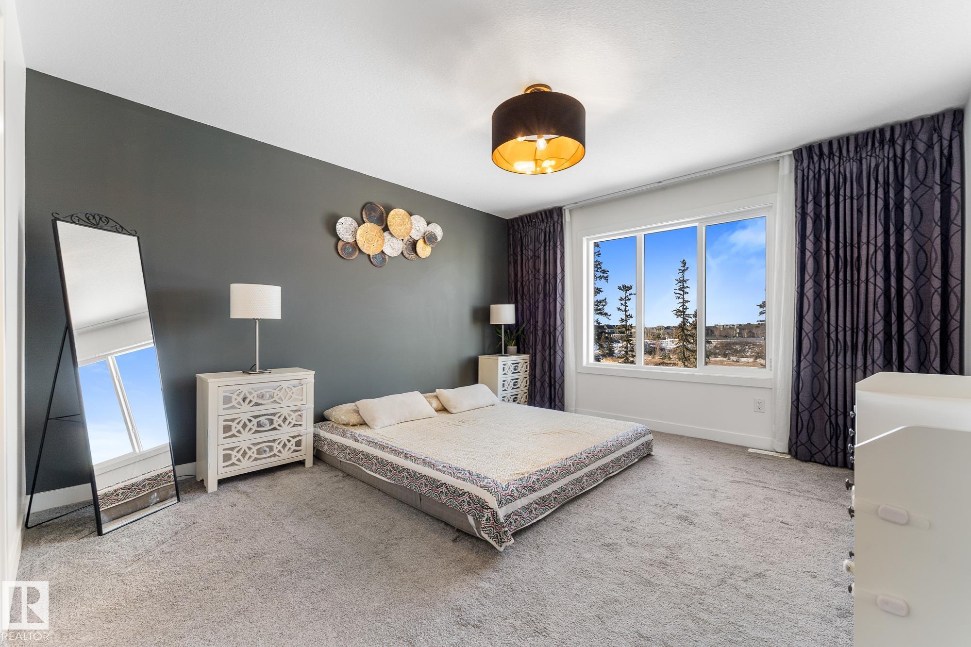 Cavanagh | 2,041 Sq Ft | Cul-de-Sac | Ravine Backing | Premium Oversized Lot | Backyard Dream Rare lot. Quiet cul-de-sac. Ravine views. Real value. Welcome to this exceptionally maintained 2,056 sq ft two-storey in Cavanagh, perfectly positioned on one of the largest lots in the community, backing directly onto a scenic ravine with no rear neighbours just privacy and open skies. Main floor features a private office, powder room & a dramatic open-to-below living room filled with natural light. The gourmet kitchen impresses with quartz countertops, gas stove, chimney hood fan, modern cabinetry, walk-through pantry, and a large island. Upstairs offers 3 bright bedrooms, including a spacious primary with walk-in closet, full bath, and bonus room. Fully finished backyard showcases a pergola-covered 28' wide composite deck, 30'paver pathway to fire pit, concrete edging, and blooming trees. Unspoiled basement with carpet laid. Central AC to keep cool in summer.