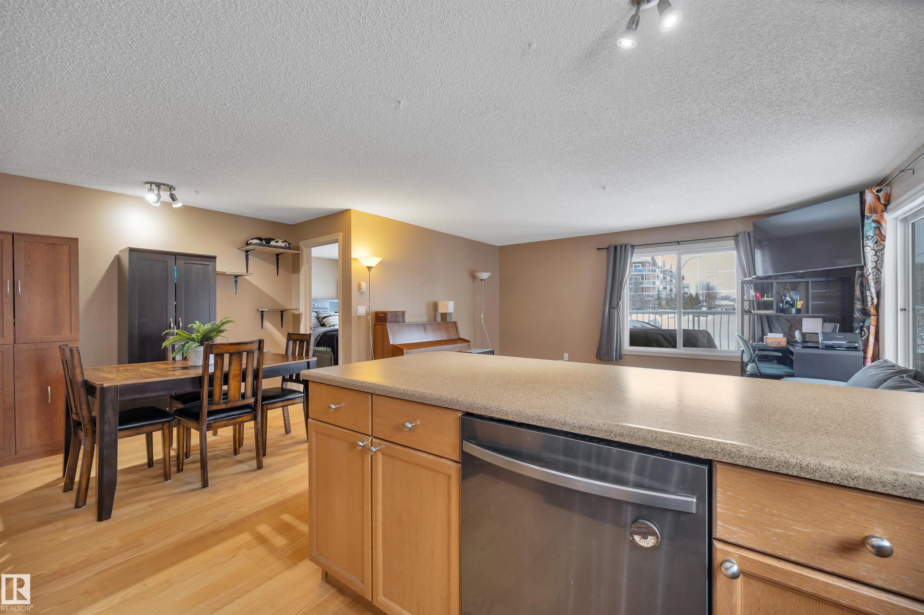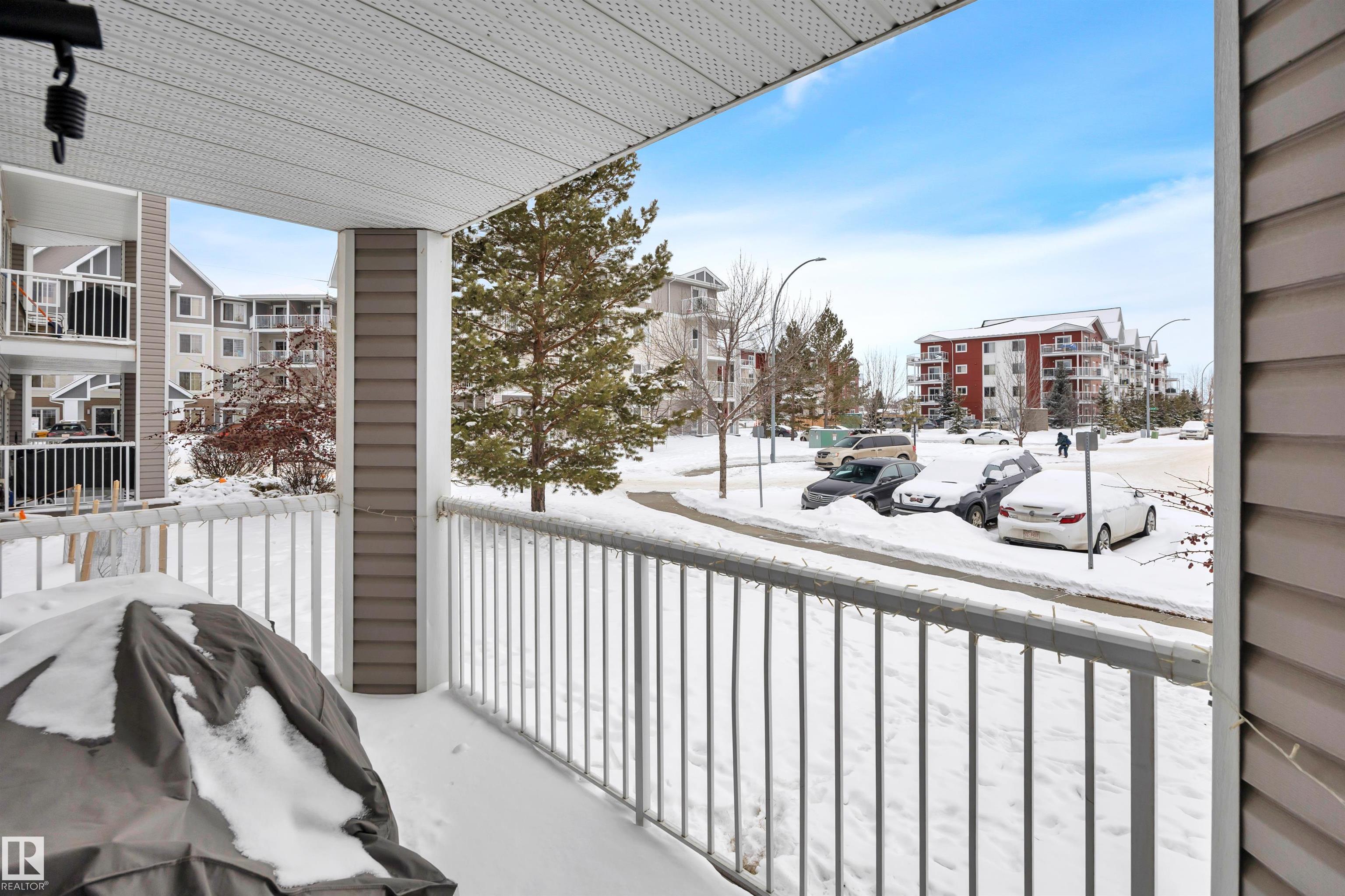 Welcome home to this spacious 2-bedroom, 2-bathroom CORNER condo offering 1,029 sq ft of bright, functional living and a beautiful wrap-around deck perfect for relaxing or entertaining. A generous entry leads to the large eat-in kitchen featuring abundant cabinetry, ample counter space, newer appliances, and plenty of storage. The open-concept layout flows seamlessly into the sun-filled living area, where expansive windows bring in natural light from multiple exposures. The primary suite includes a walk-through closet and private 3-piece ensuite, while the second bedroom and full bath are ideal for guests, a home office, or shared living. Enjoy the convenience of in-suite laundry, titled underground parking, and an additional storage cage. Building amenities include a fitness center and social room, and condo fees cover heat and water. Located within walking distance to shopping, dining, and everyday amenities, with quick access to Whitemud & Henday this home offers exceptional convenience!!!