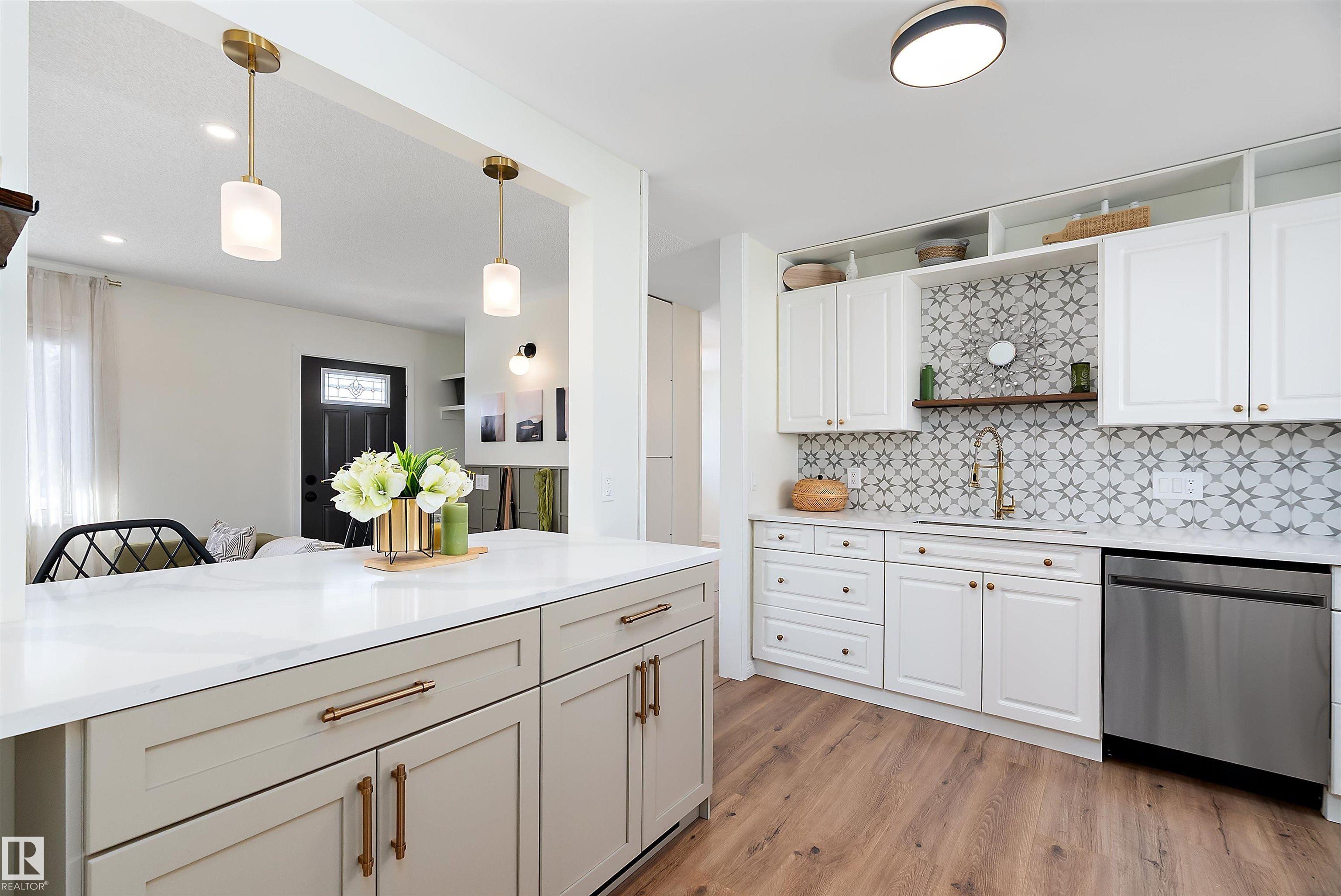 Beautifully renovated home in the heart of Ottewell, offering modern upgrades in one of southeast Edmonton?s most established family communities. Renovations throughout the main floor and basement were completed with permits for peace of mind. Fresh paint, new lighting, new flooring, and a modern farmhouse design create a bright, stylish living space. The redesigned kitchen features a center island, new granite countertops, and all new stainless steel appliances. Major updates include a new ABS drain line and backwater valve, plus upgraded HERR custom egress windows in the basement. Newer main floor windows and a newer poured concrete driveway add further value. Families will appreciate being within walking distance to multiple public and Catholic elementary, junior high, high school, and post-secondary institutions (The Kings University), along with convenient access to major roadways and an easy commute to downtown. A turnkey opportunity in a highly sought after neighbourhood.