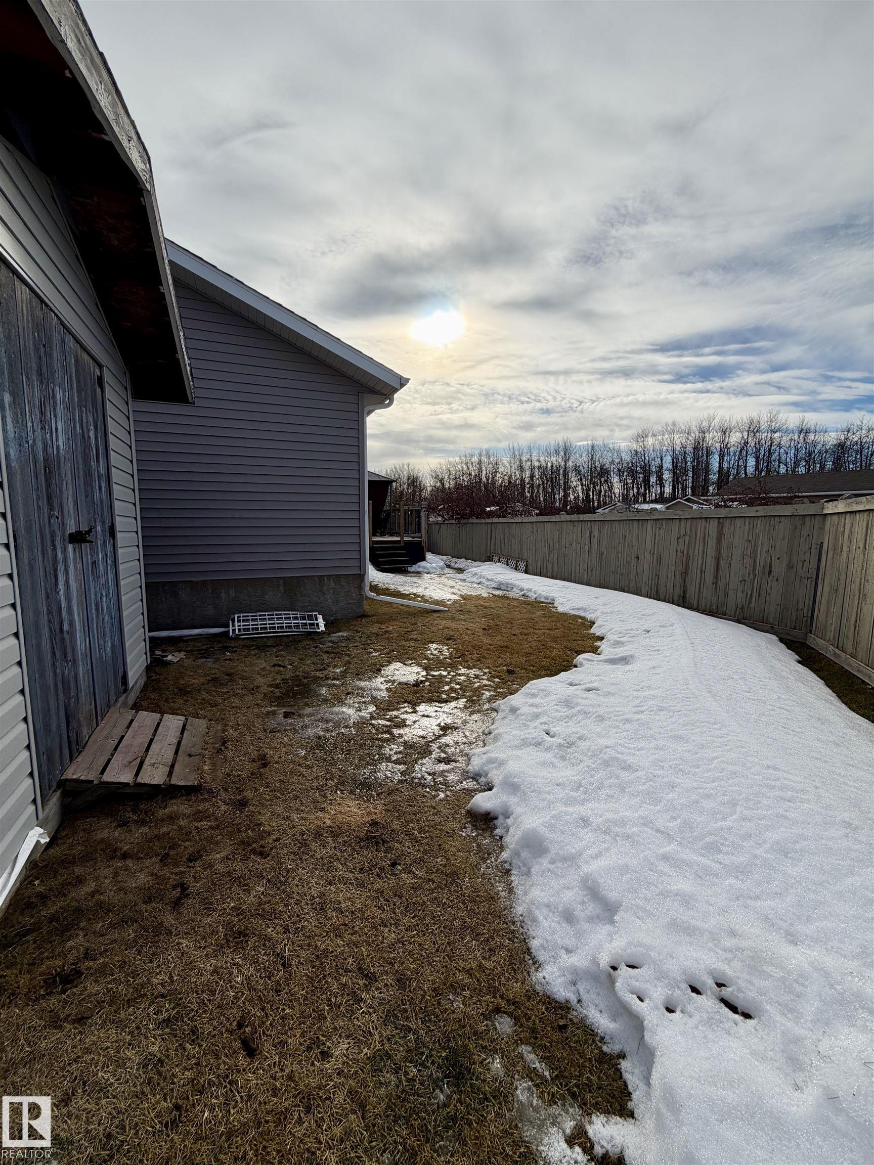 GREAT LOCATION! Within minutes of full ammenties from both Spruce Grove and Stony Plain. Beautifully updated 1,333.66 sq ft home offering 2 bedrooms (one being the large Primary suite with large walk in closet and full ensuite), 2 full bathrooms with A/C for year-round comfort. Featuring upgraded vinyl flooring, updated Stainless Steal kitchen appliances, and newer washer and dryer, this home is move-in ready. Major mechanical updates include a newer hot water tank and furnace for added peace of mind. The bright, open layout showcases vaulted ceilings, skylights, and plenty of large windows that flood the space with natural light. Exterior upgrades include durable vinyl siding and a matching storage shed. Step outside to a spacious, fully fenced yard with a large deck and gazebo?perfect for kids, pets, or entertaining?with excellent potential to build an oversized single garage (engineered plans done and approved by the town. A fantastic opportunity combining comfort, updates, and future possibilities!